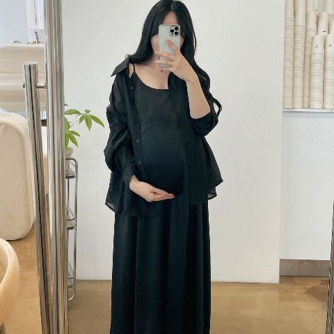 실크소재 끈 워피스와 뒷트임이 포인트인 거즈셔츠가 세트입니다!