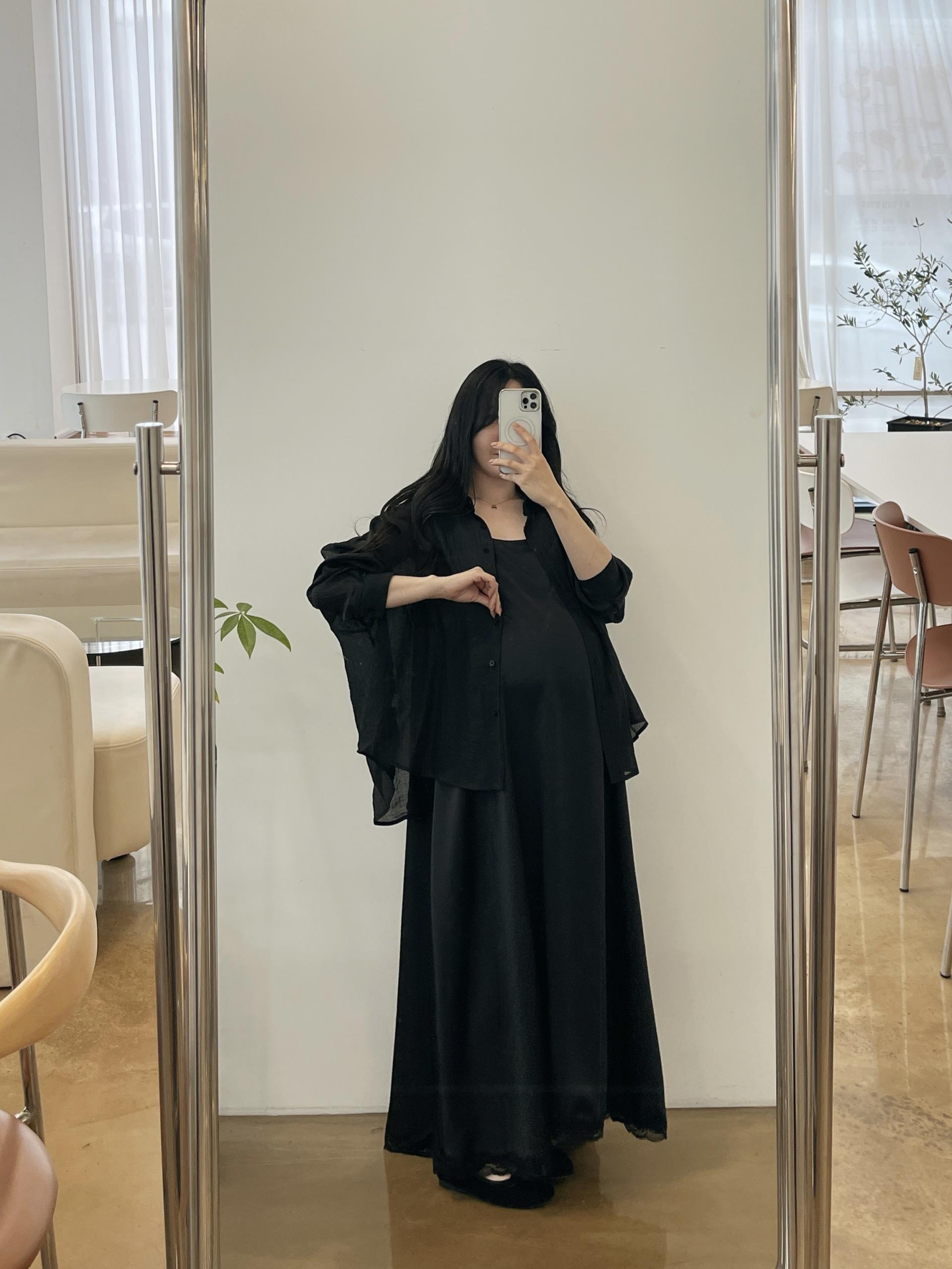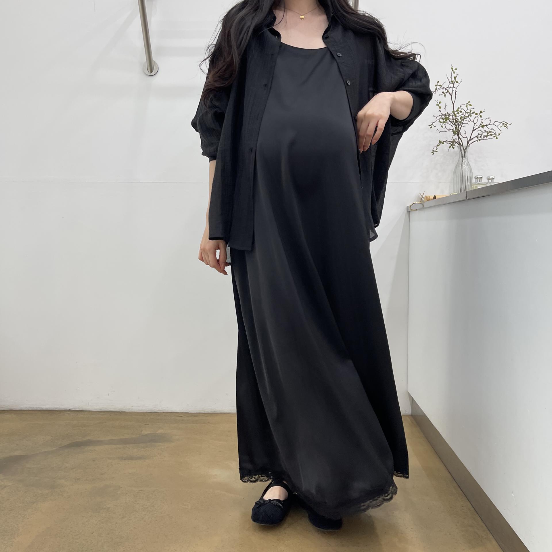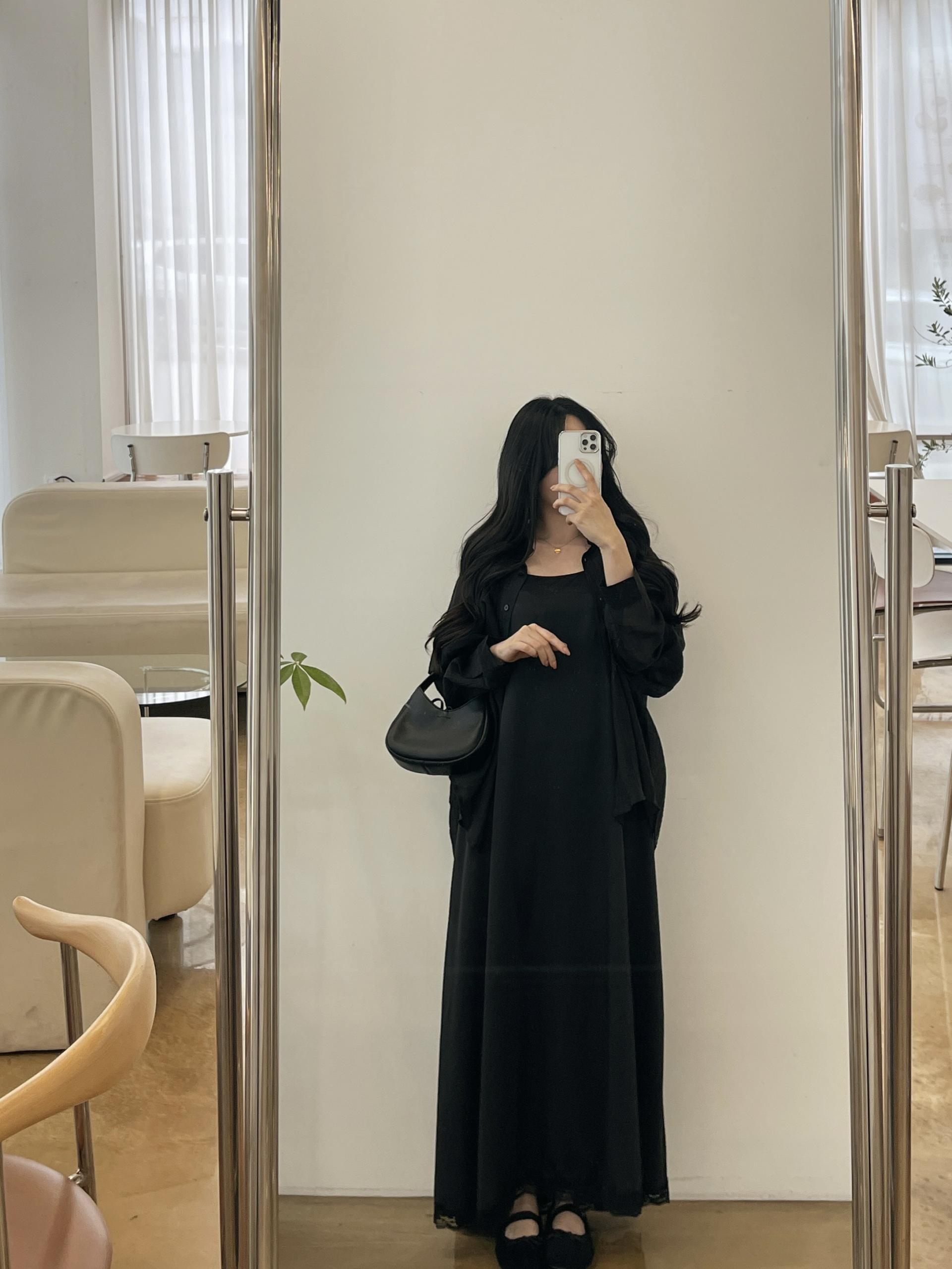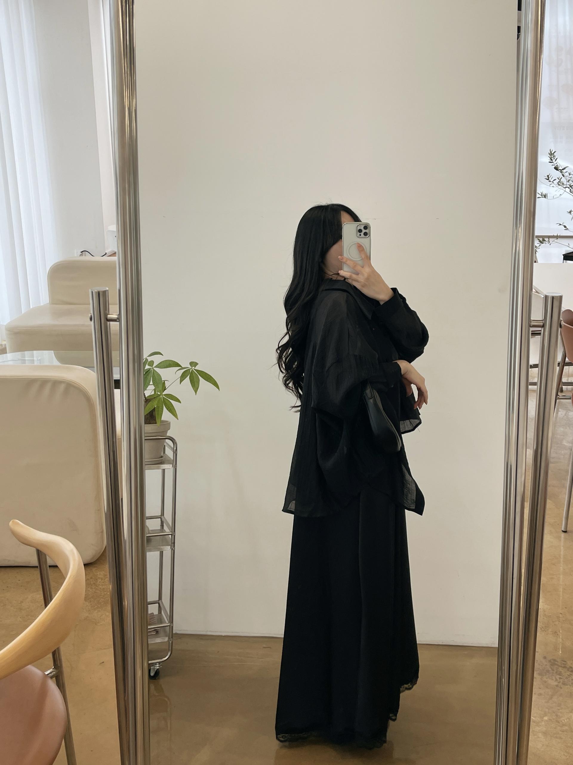 실키 끈 원피스(기장조절가능) + 뒷트임 거즈셔츠