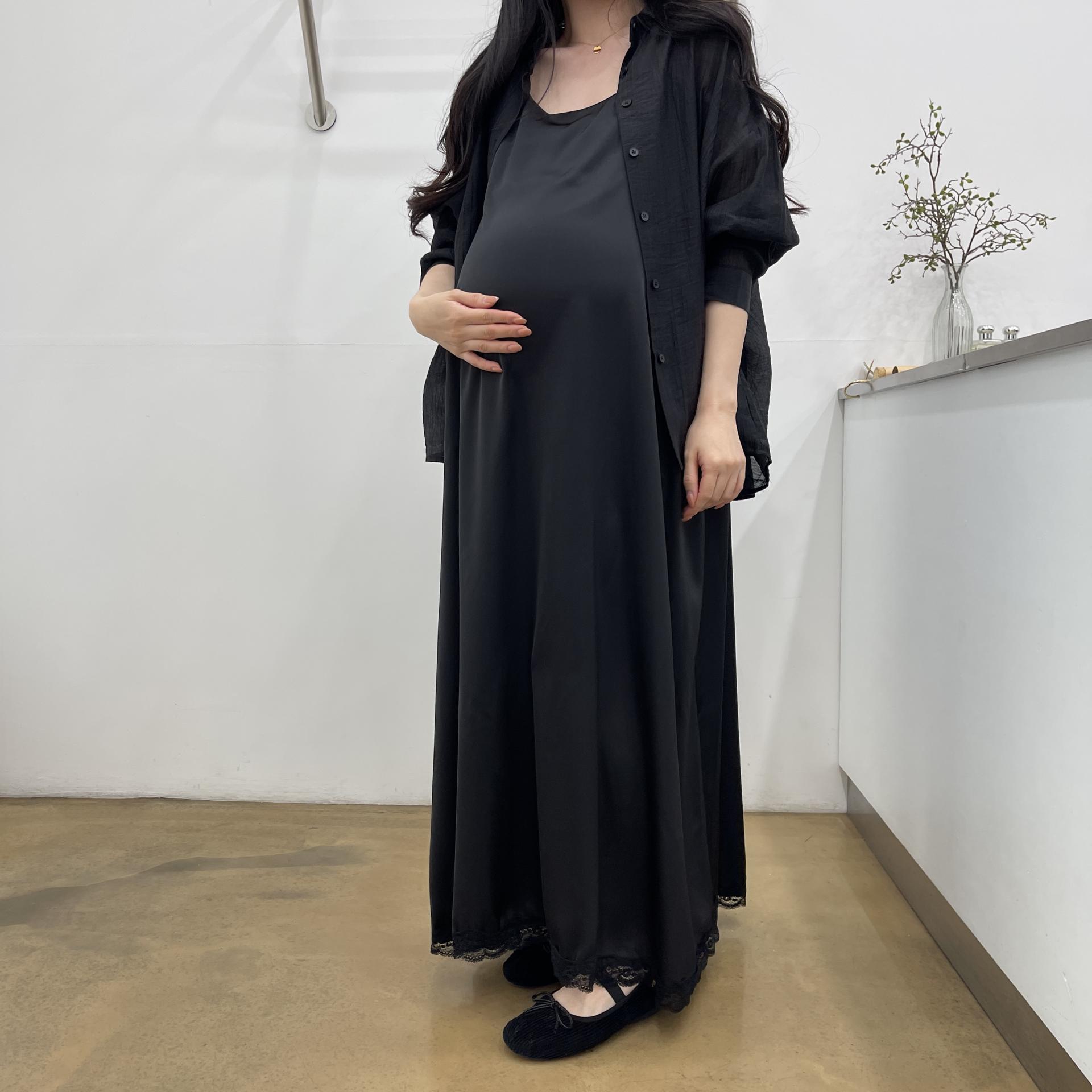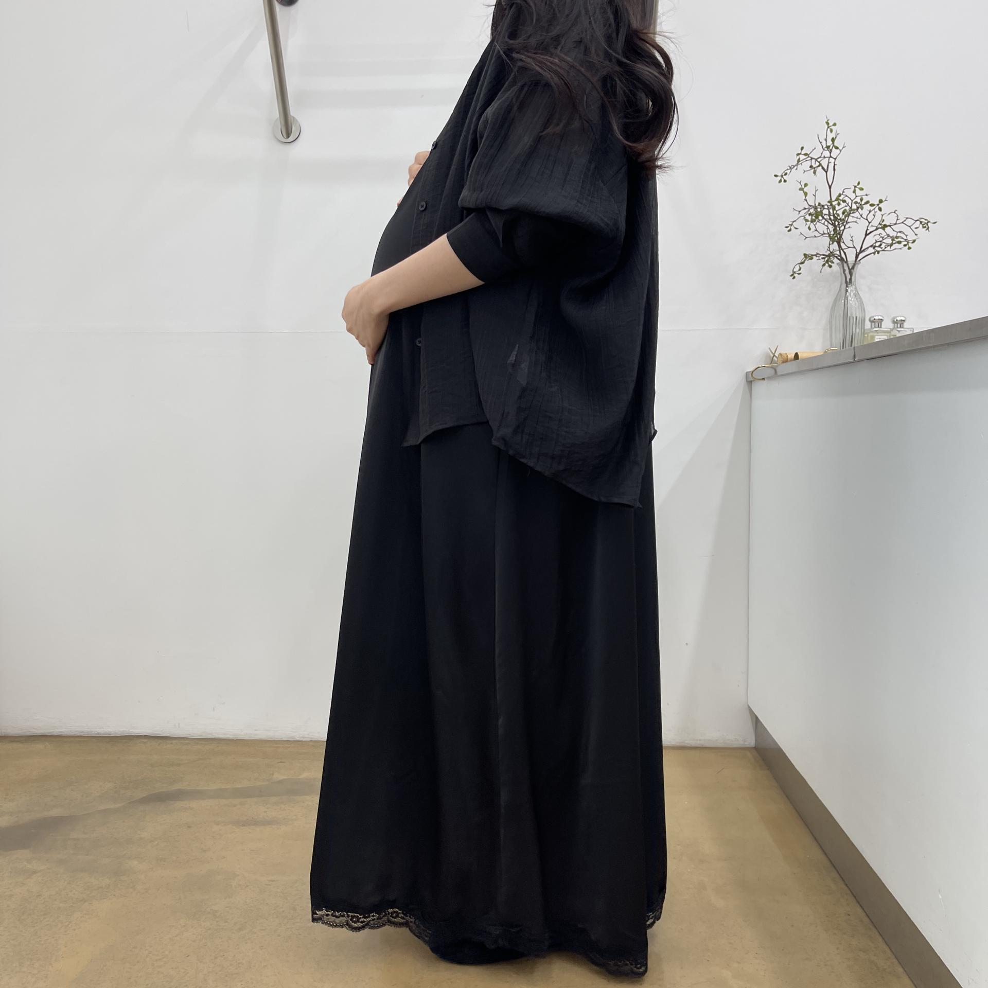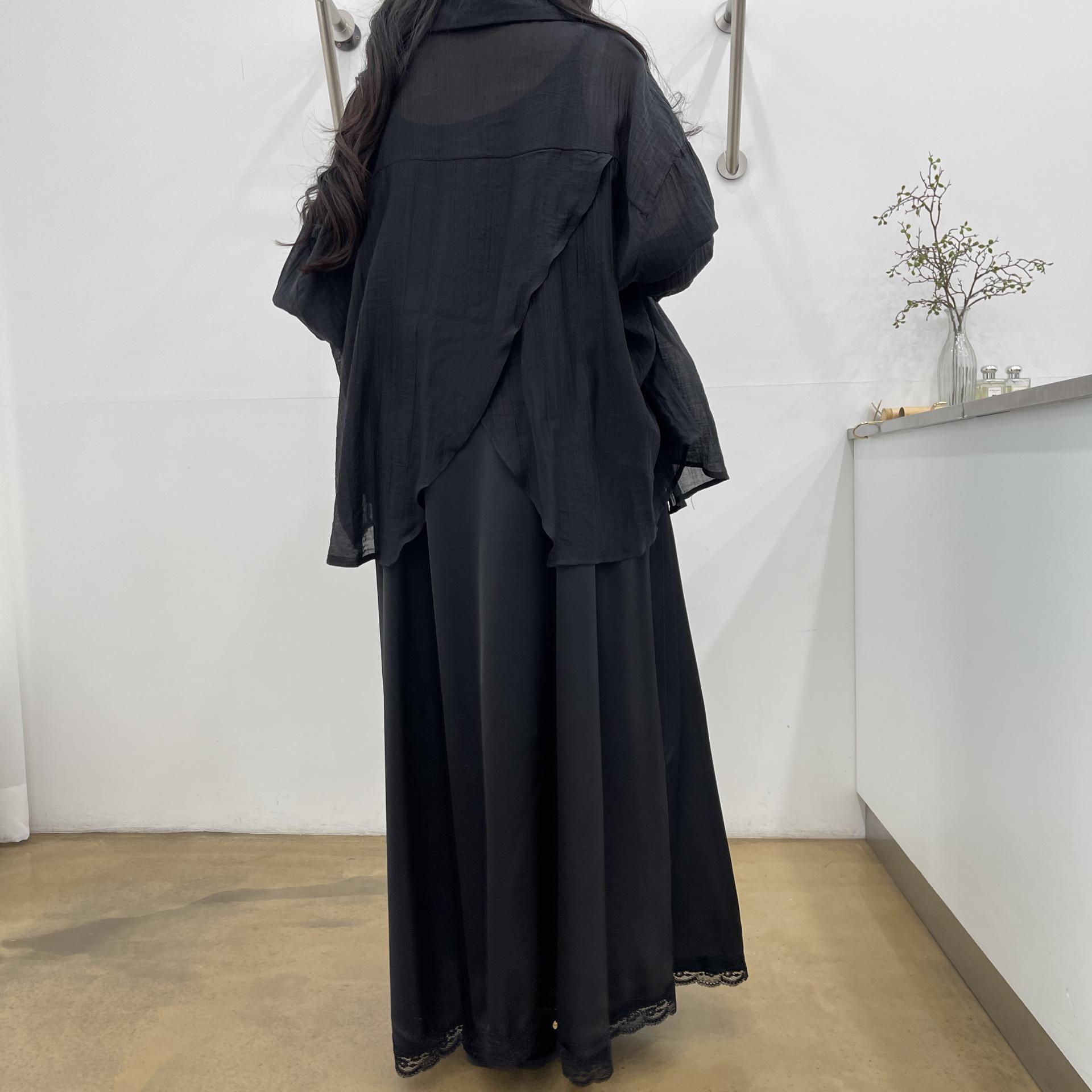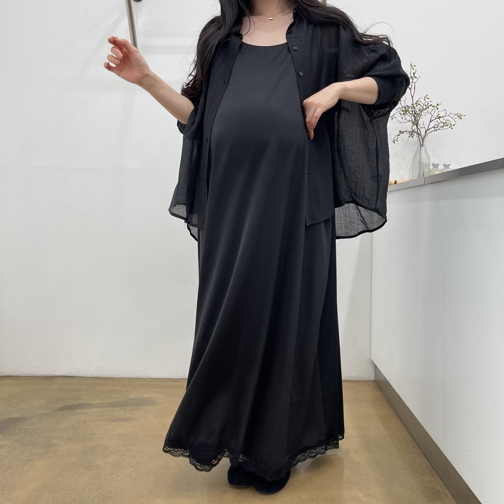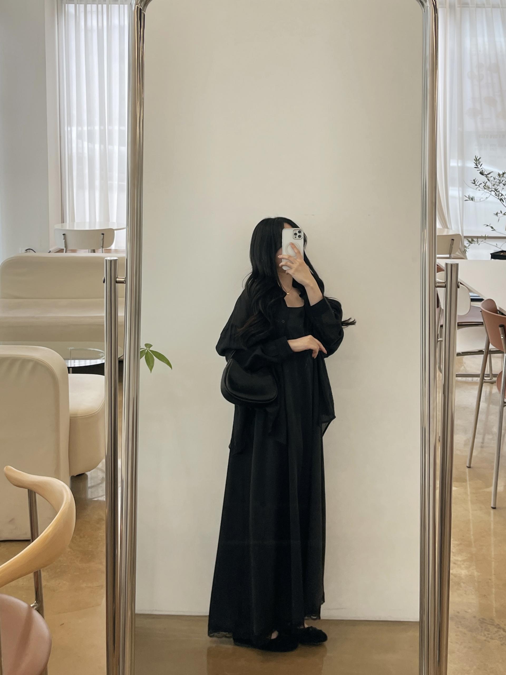 실키 끈 원피스(기장조절가능) + 뒷트임 거즈셔츠