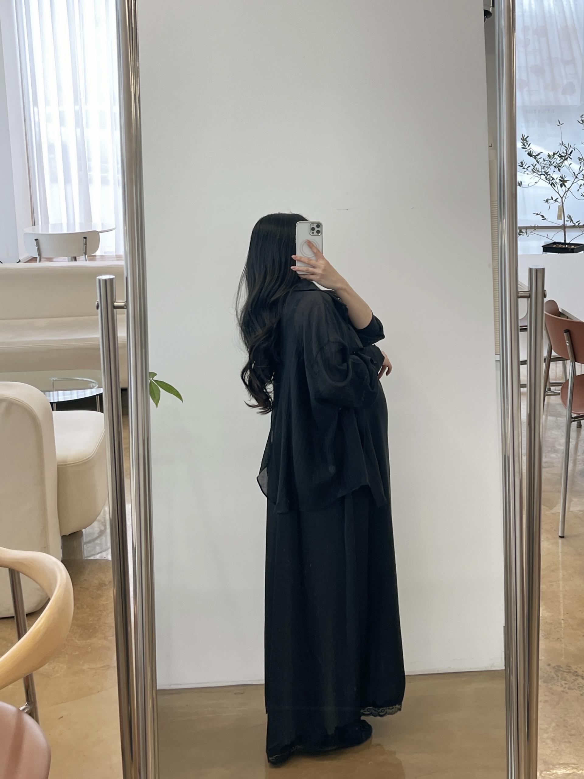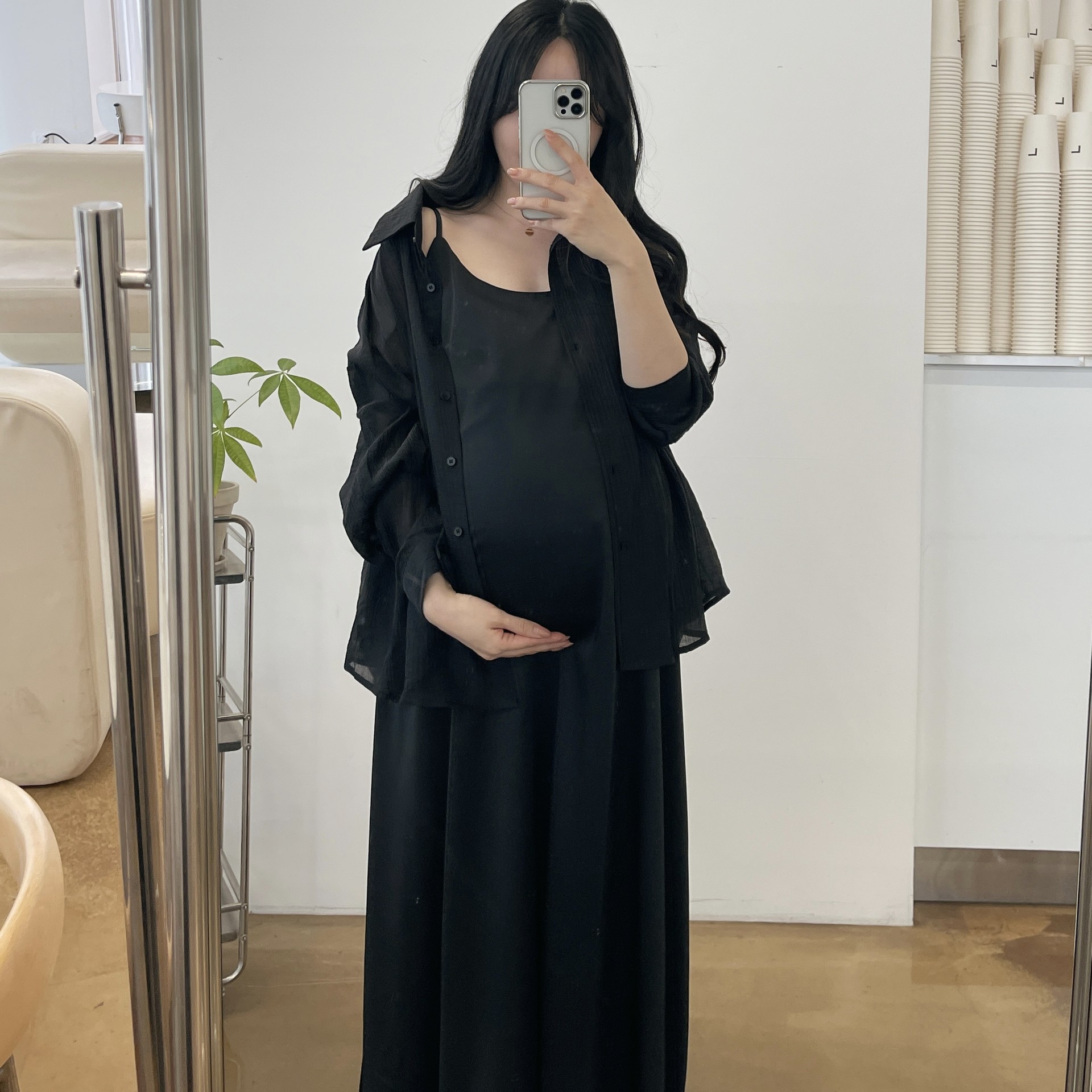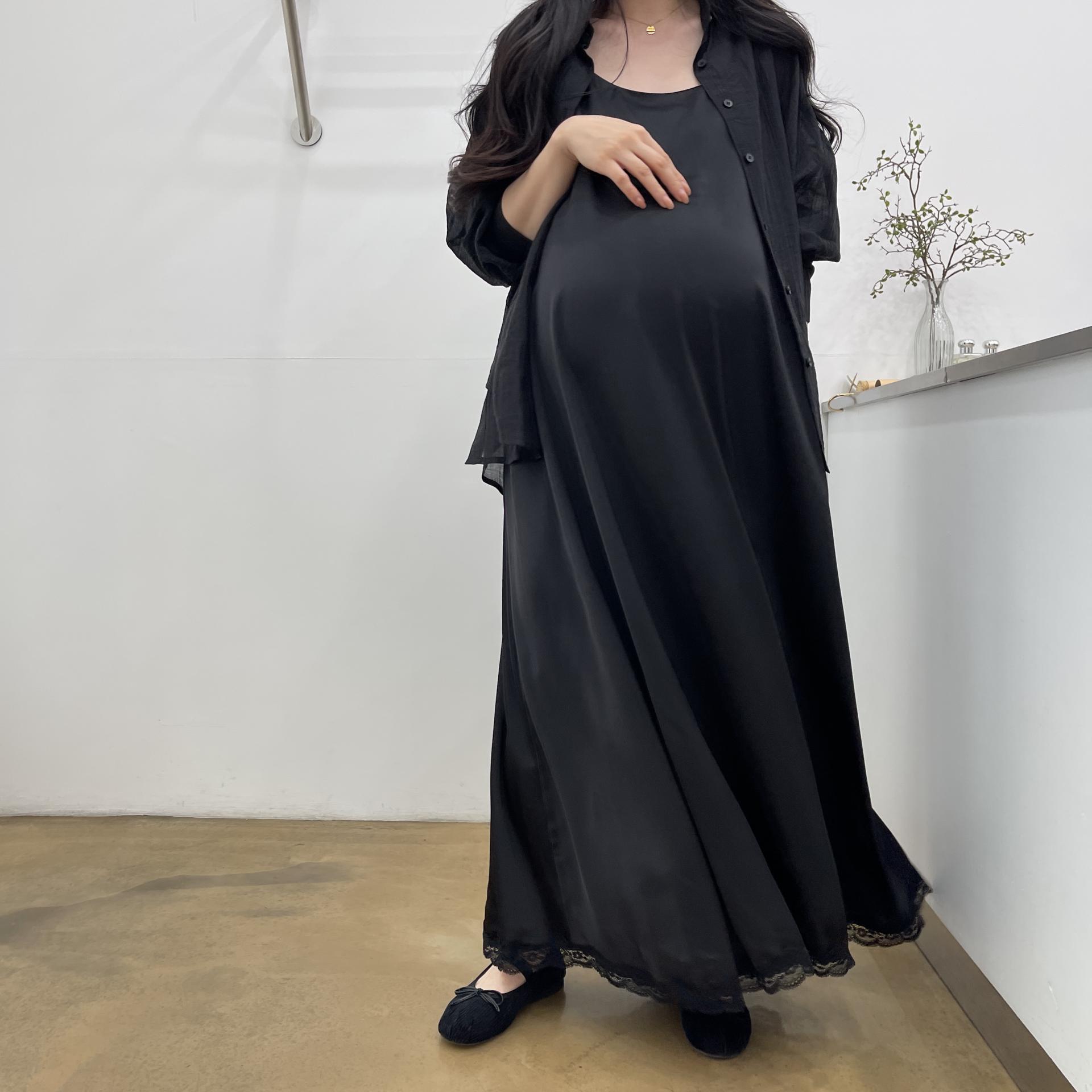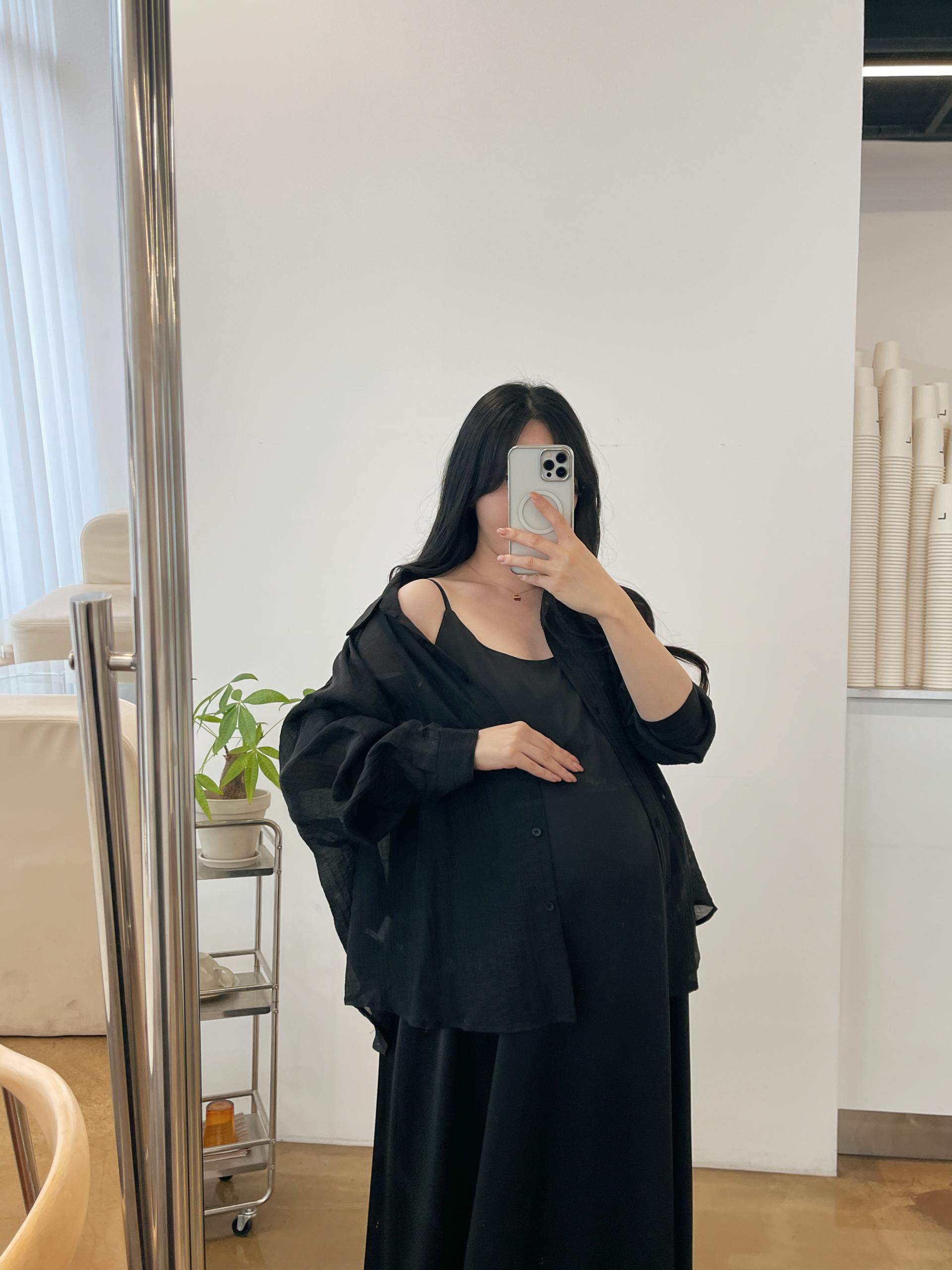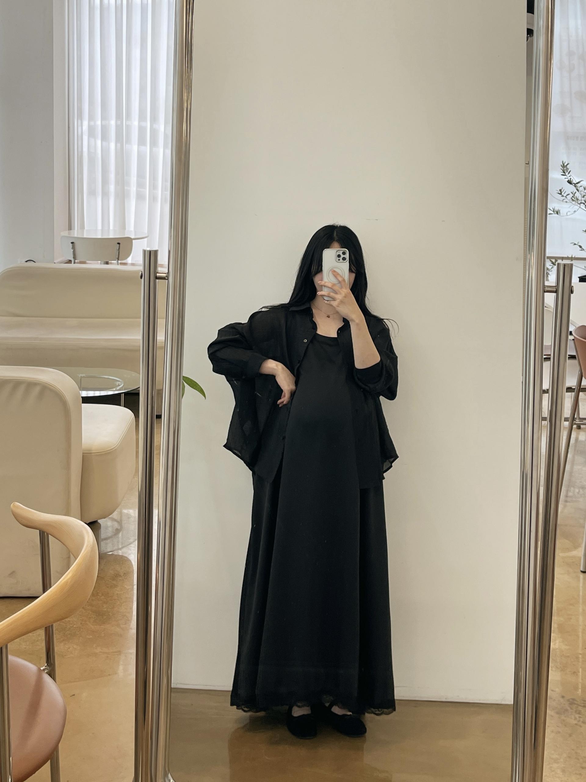 실키 끈 원피스(기장조절가능) + 뒷트임 거즈셔츠