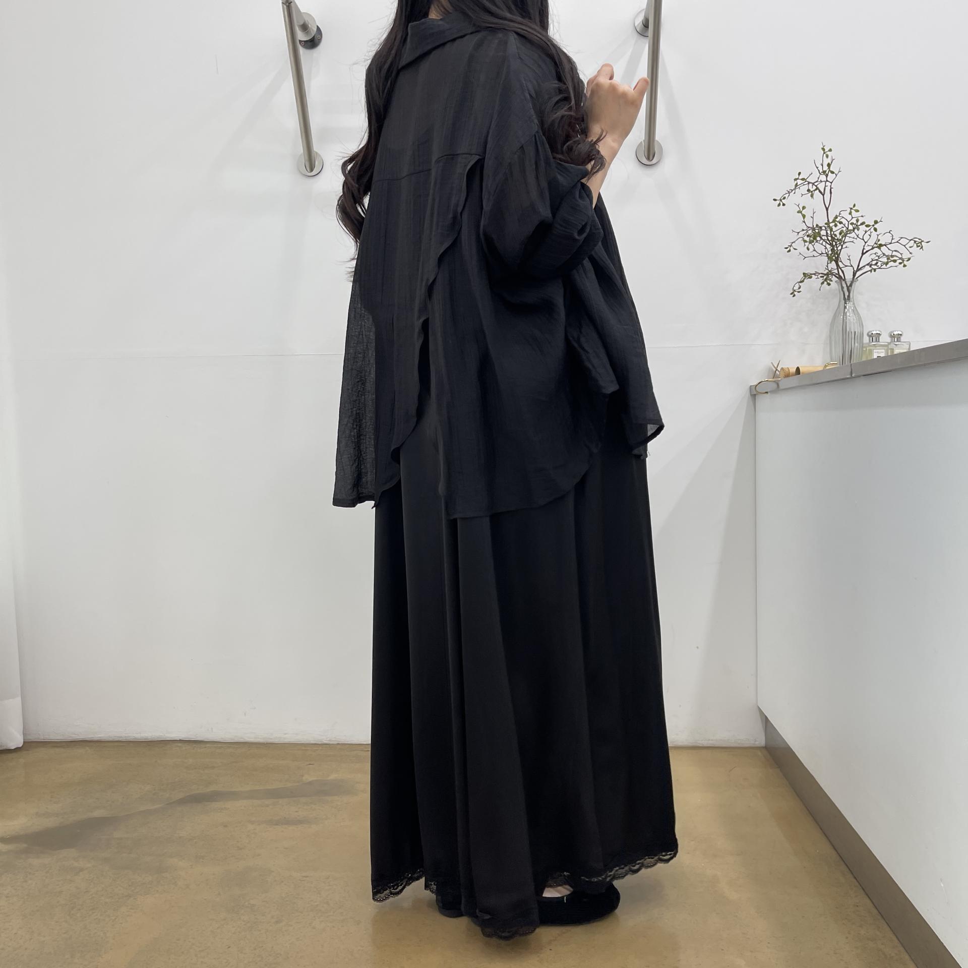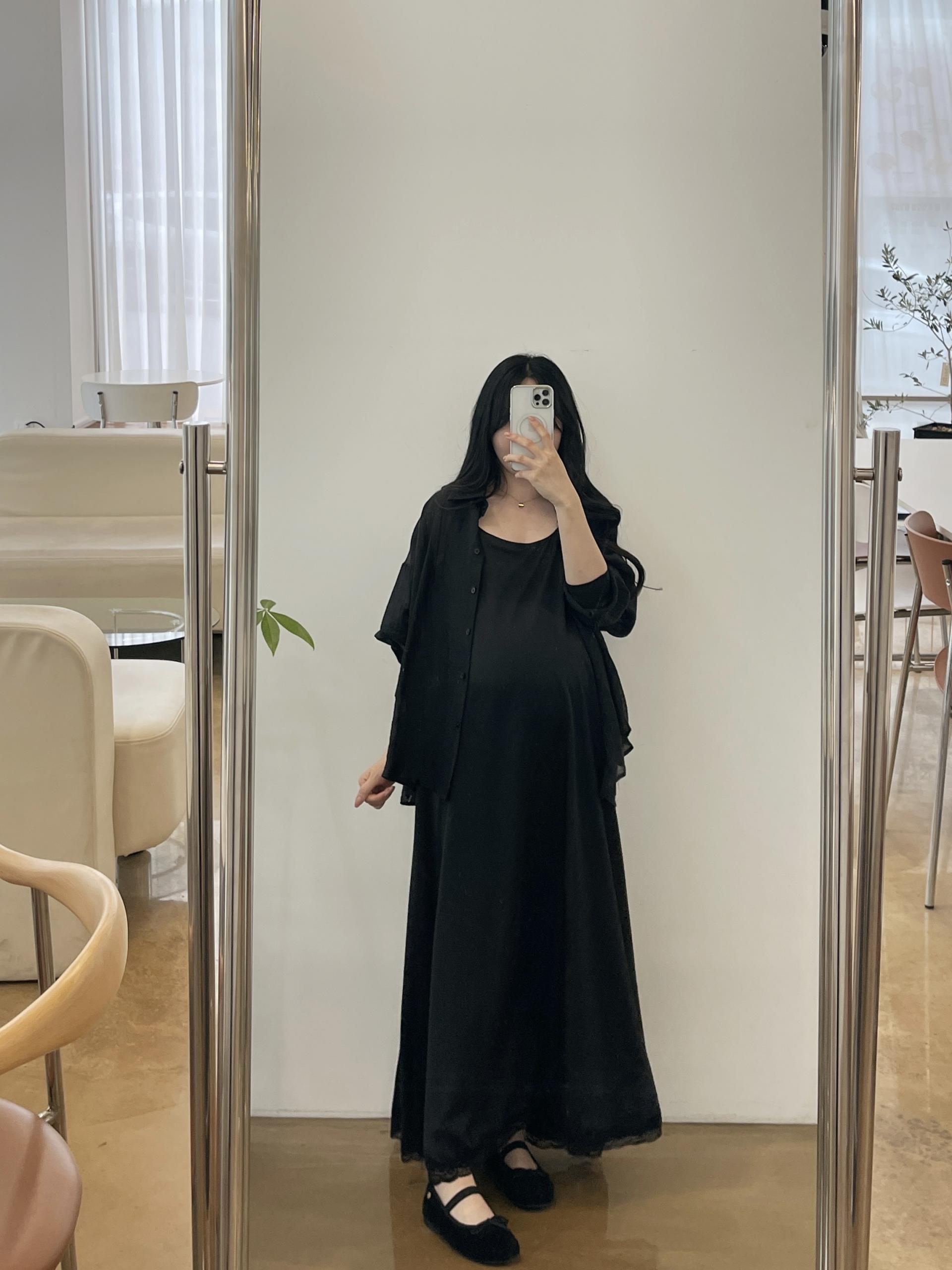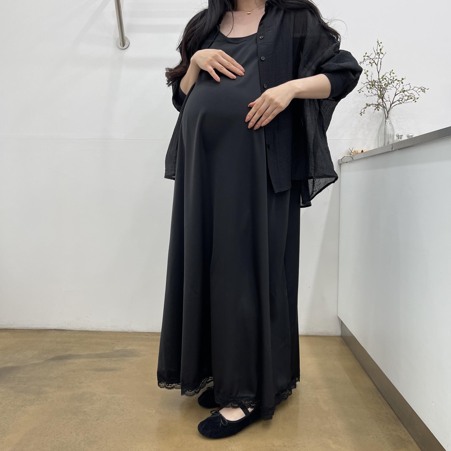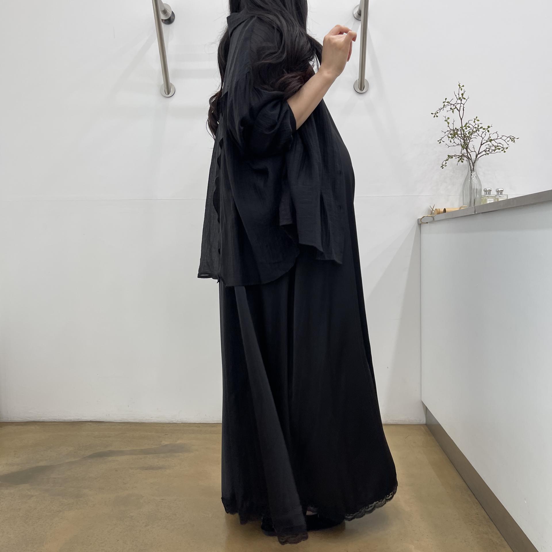 실키 끈 원피스(기장조절가능) + 뒷트임 거즈셔츠