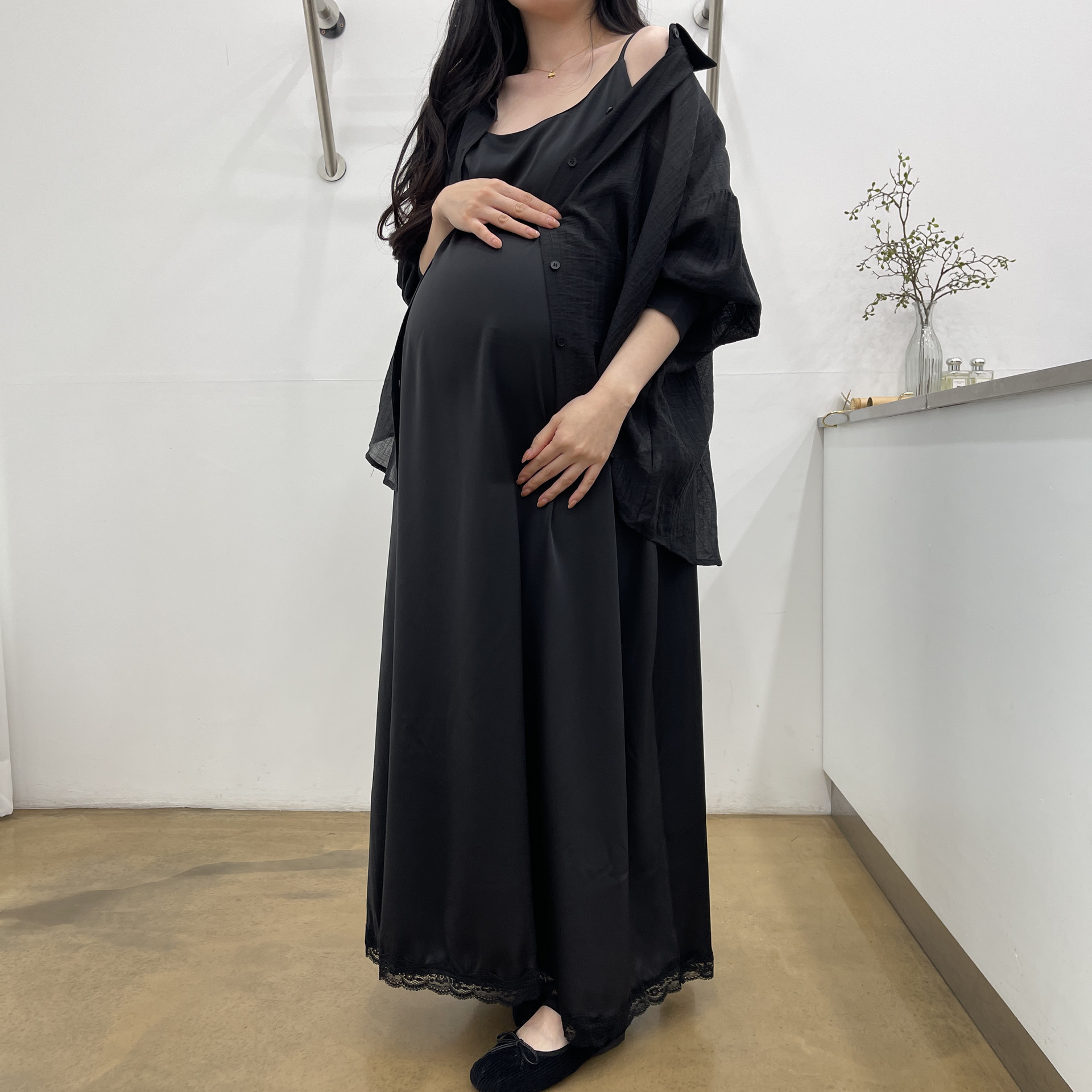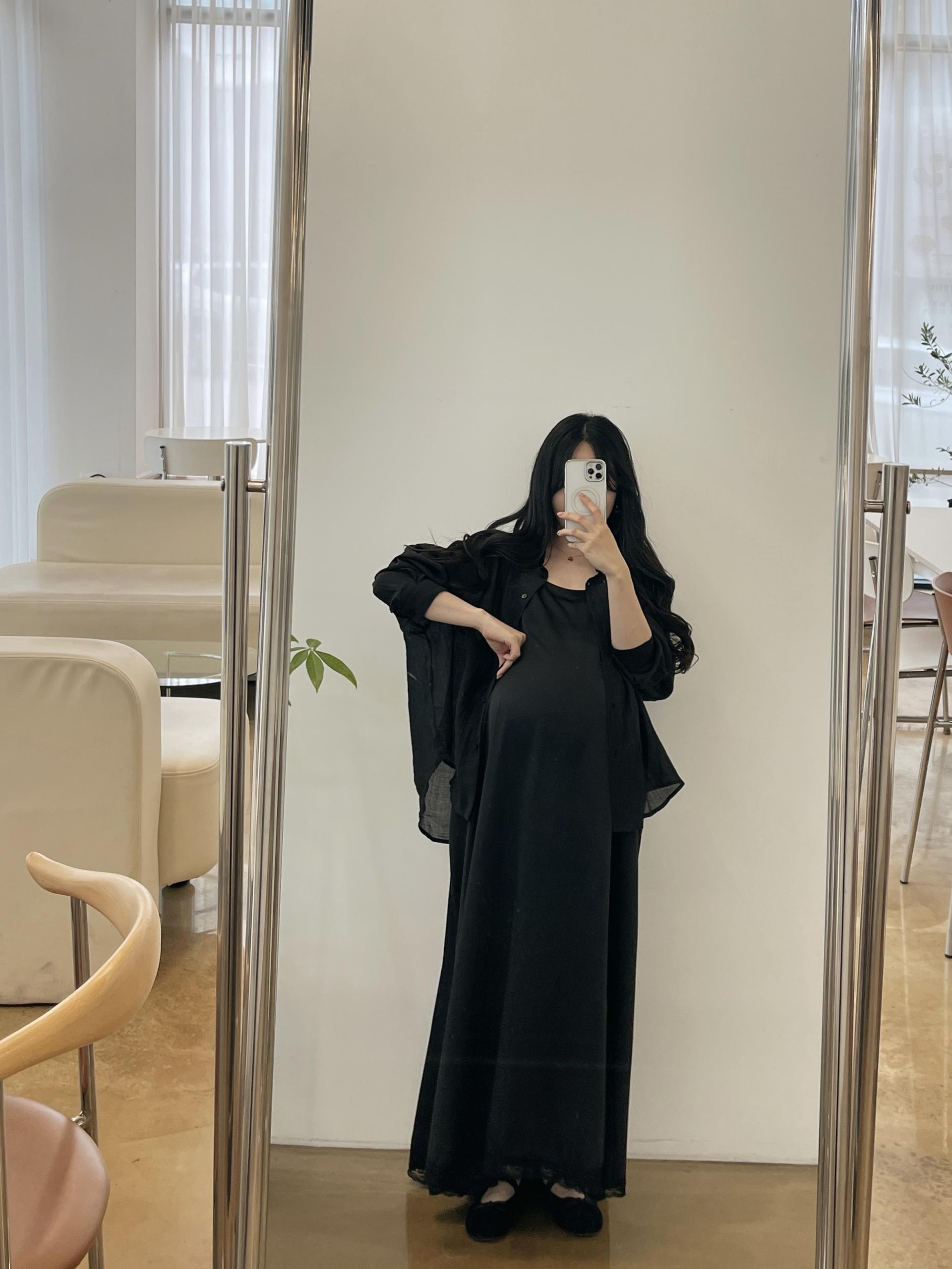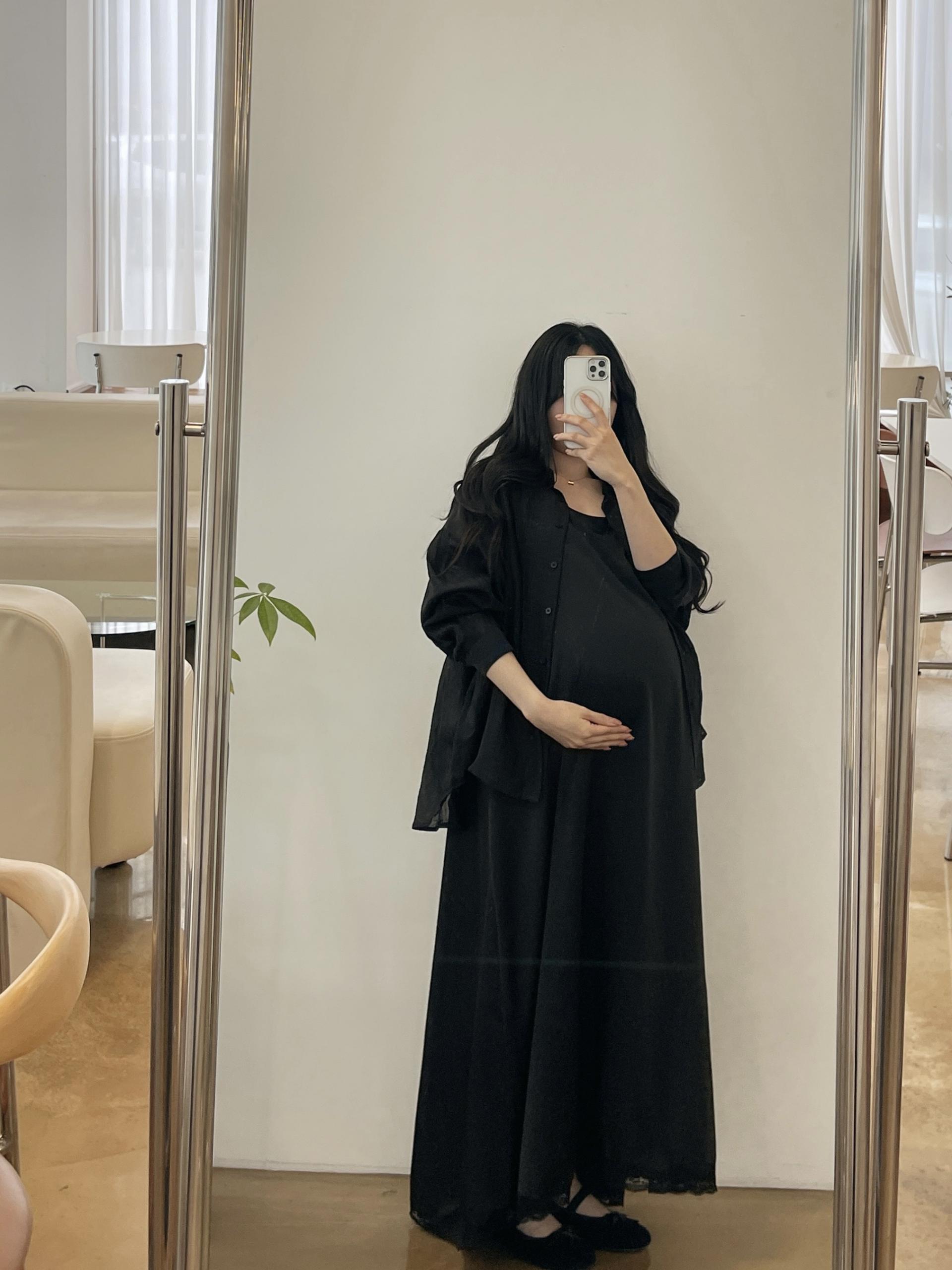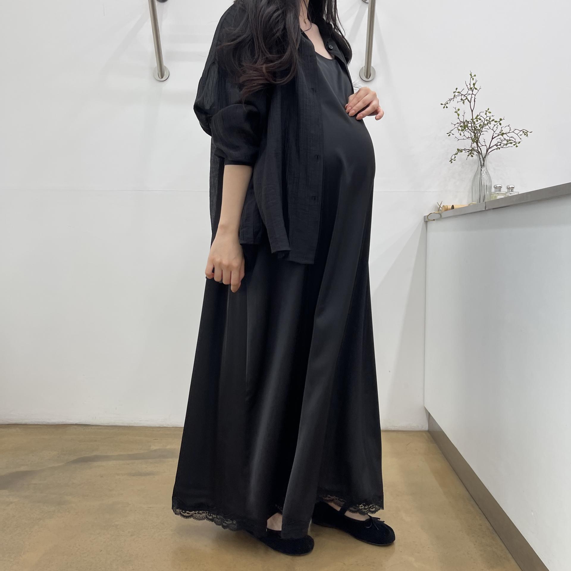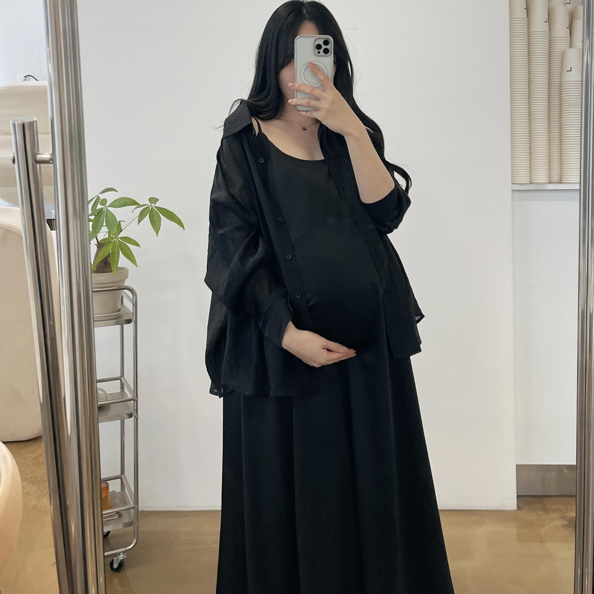 실키 끈 원피스(기장조절가능) + 뒷트임 거즈셔츠