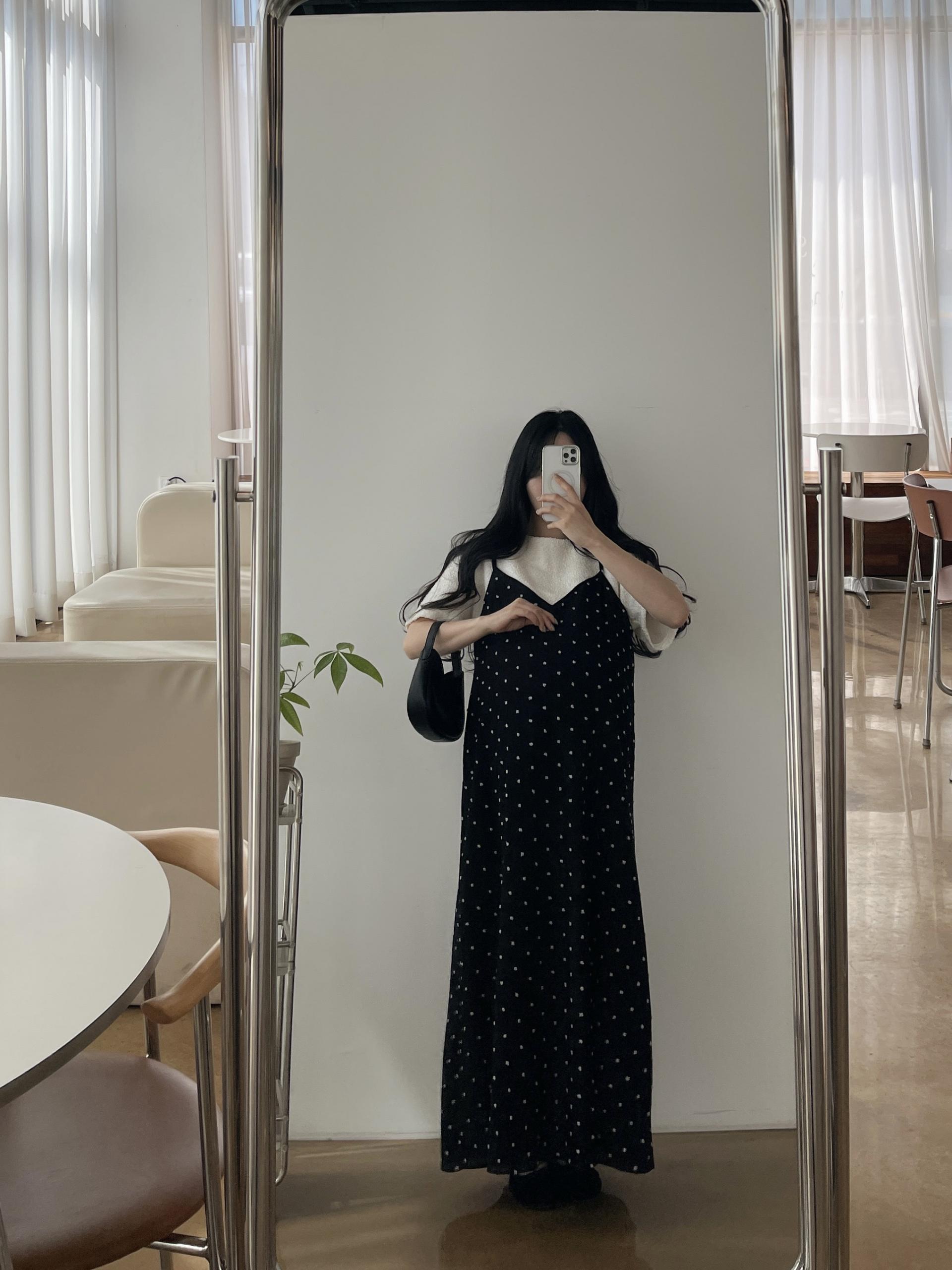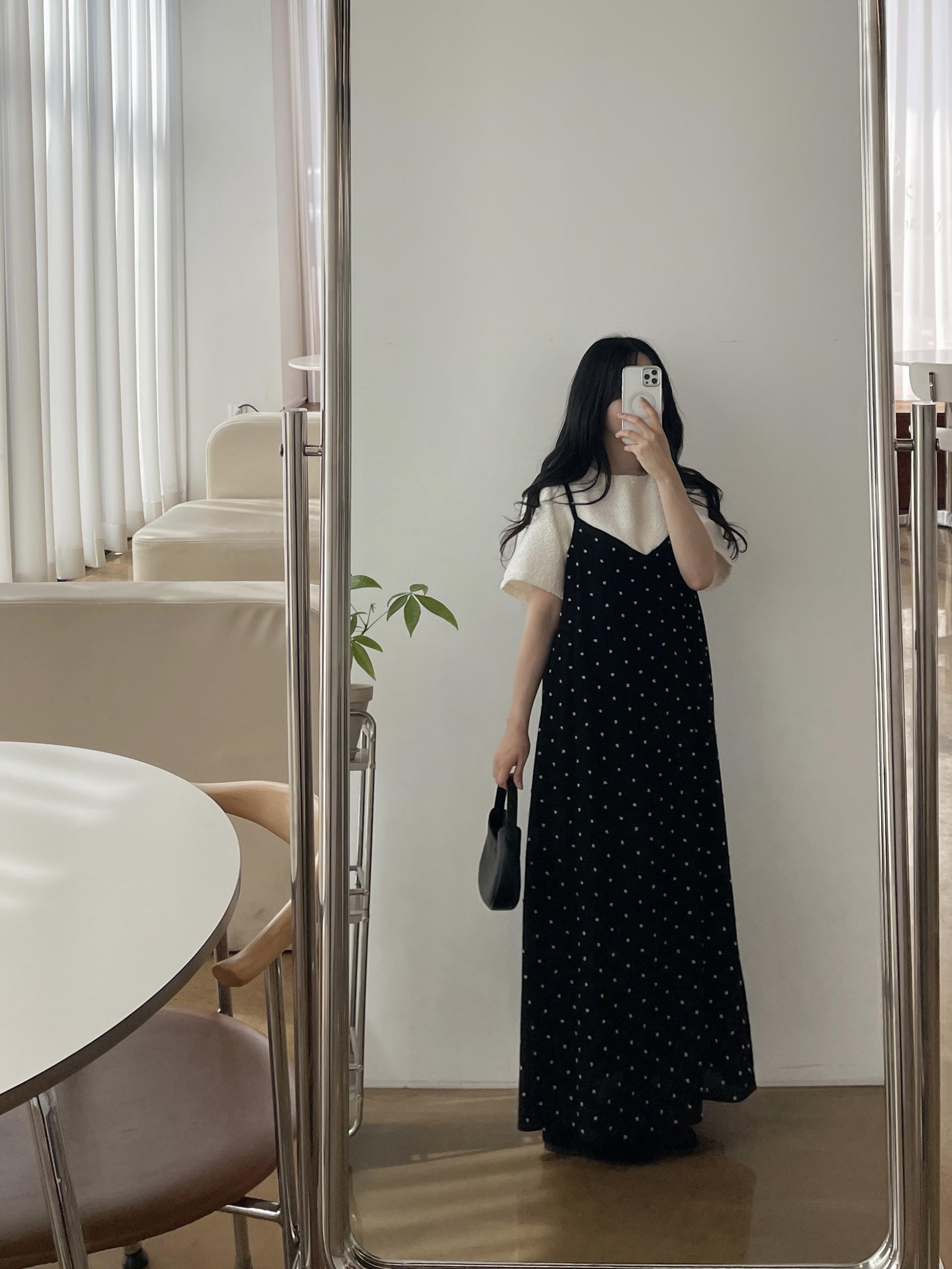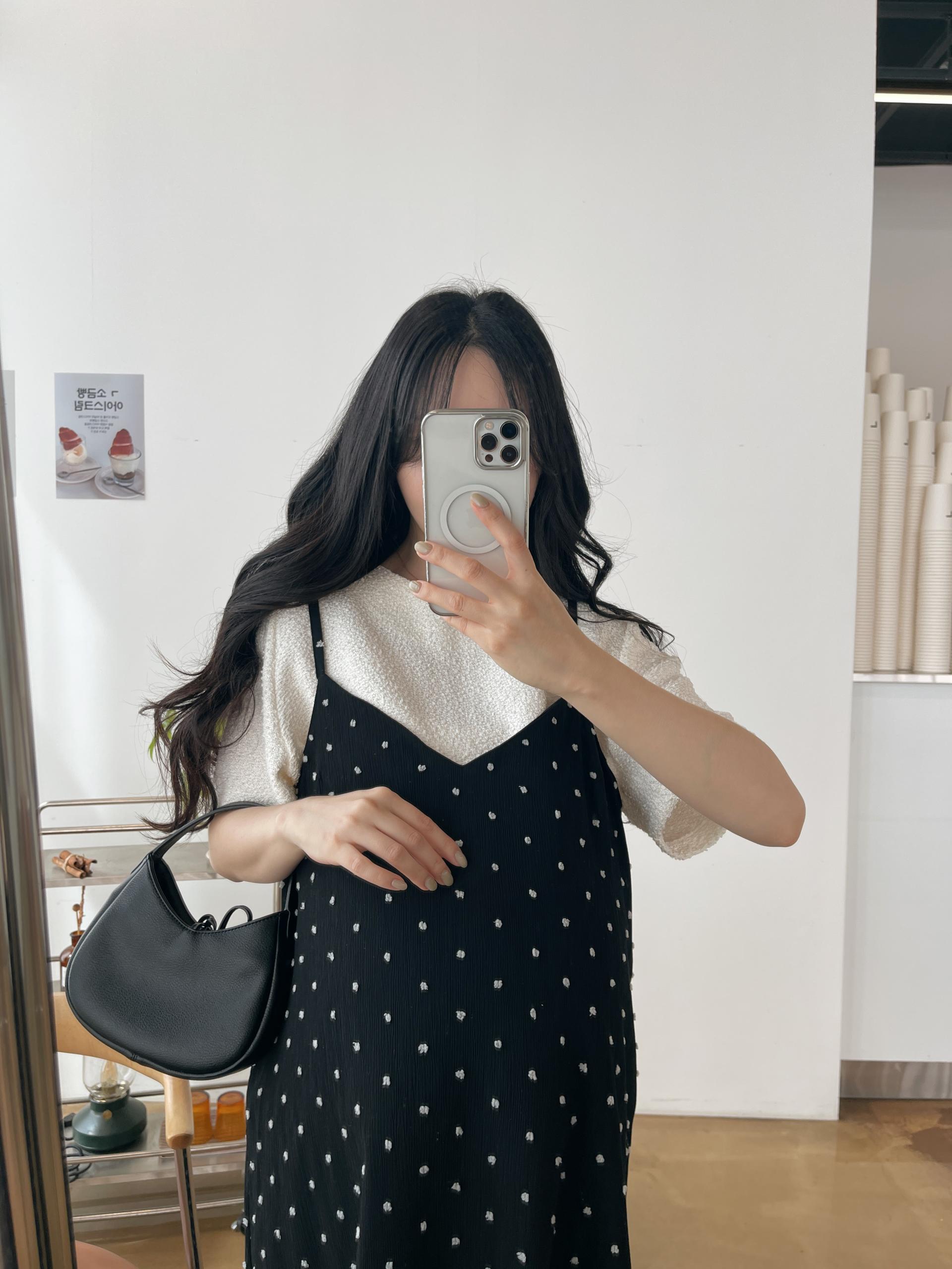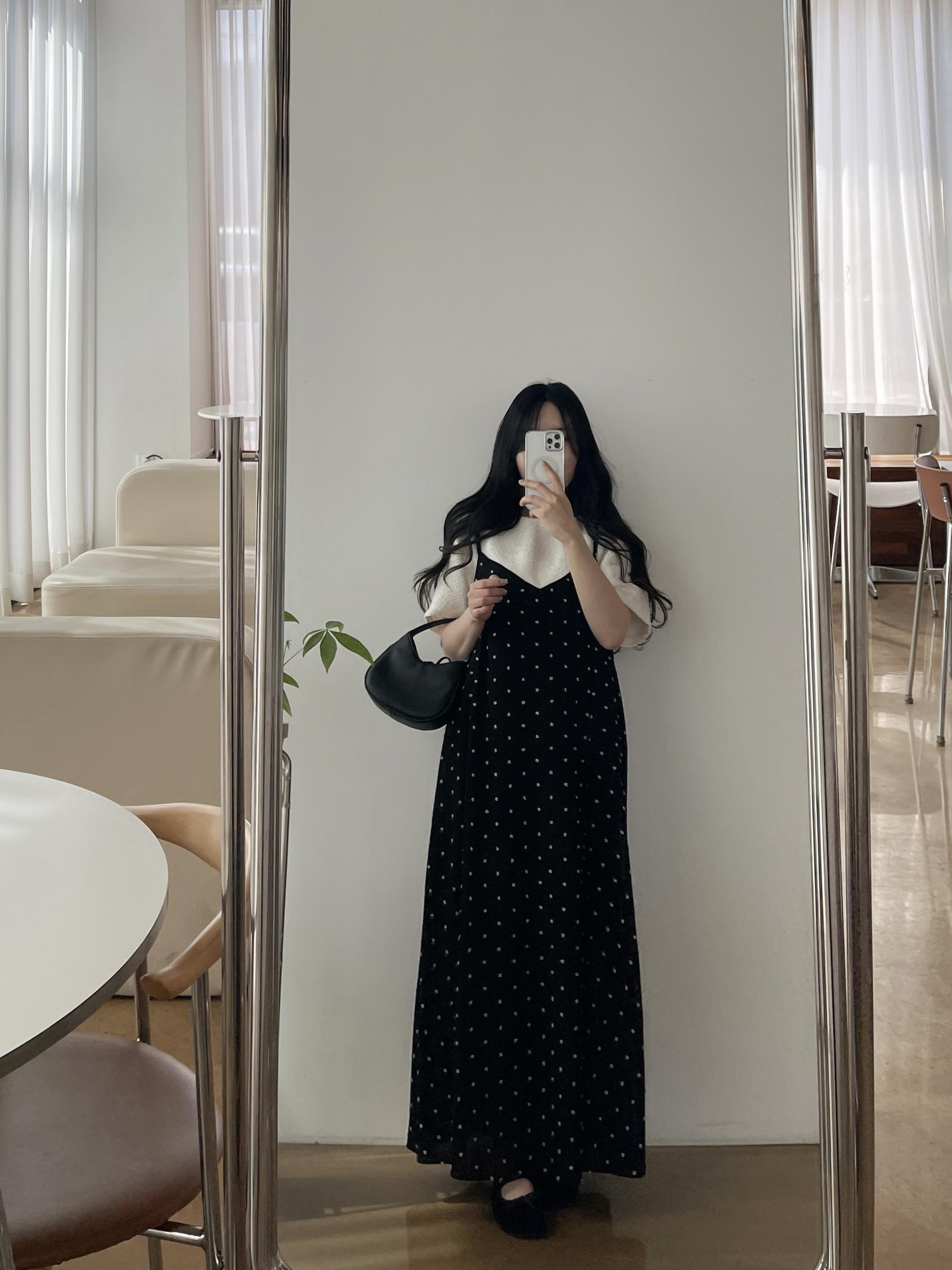 도트가 입체적으로 퐁퐁 들어가 있어 더 귀엽고 유니크하게 입는 원피스입니다!