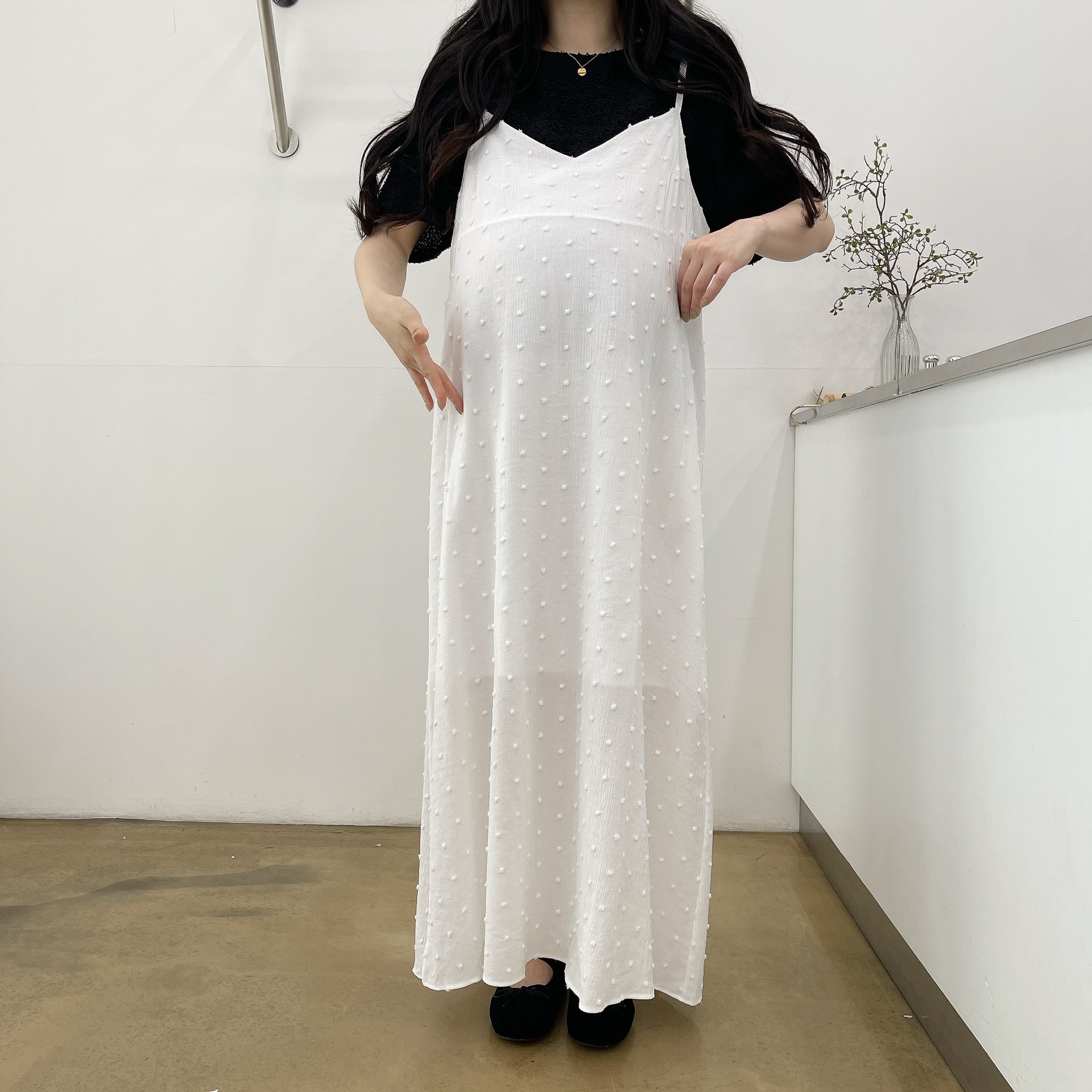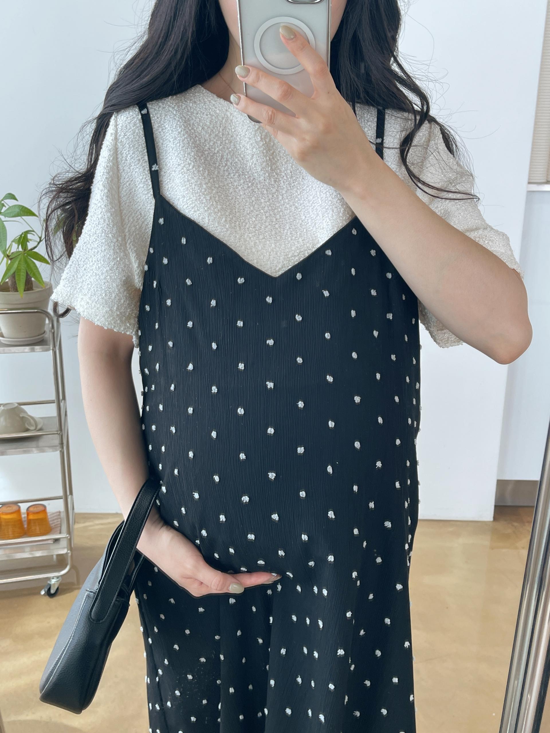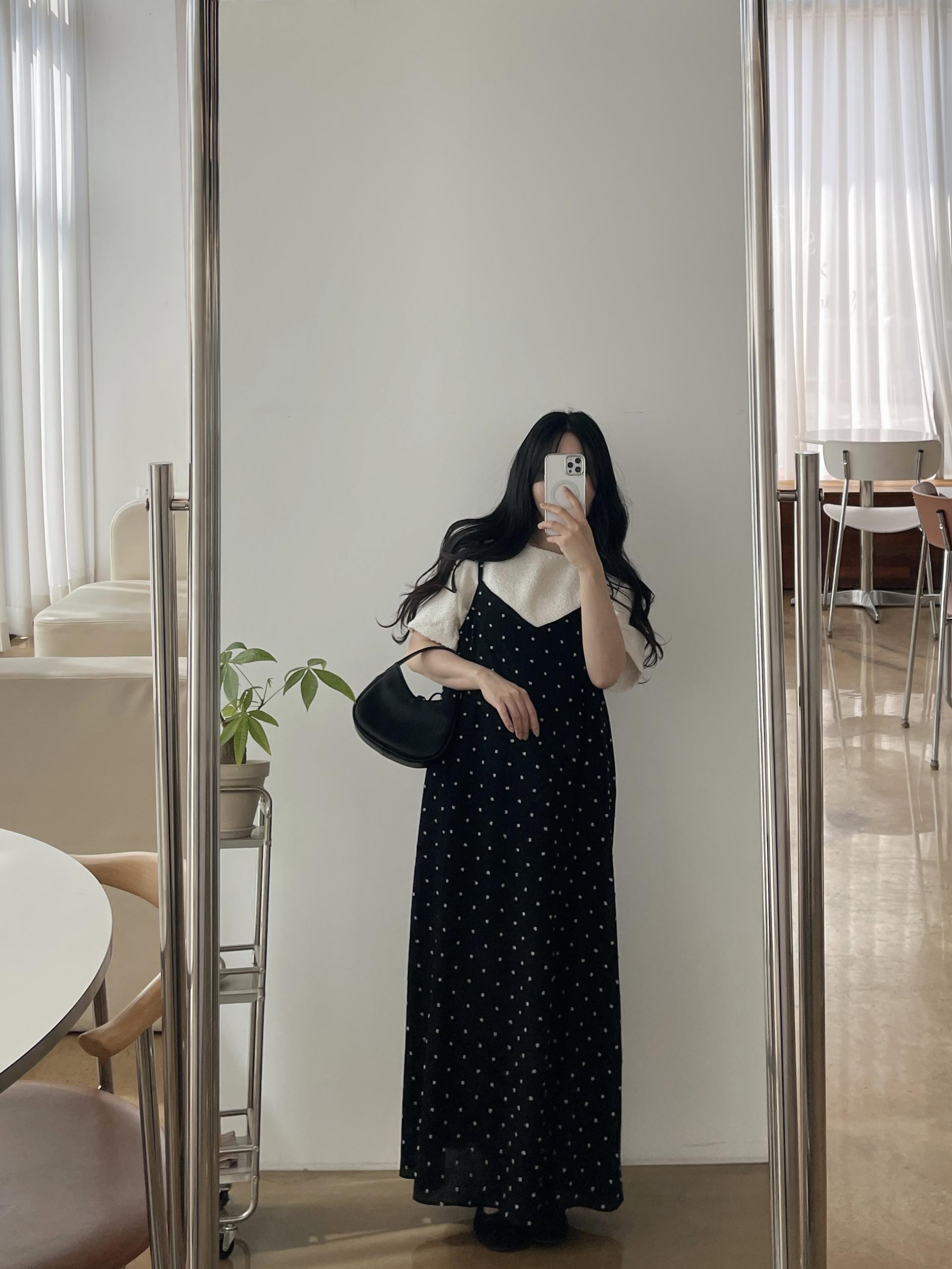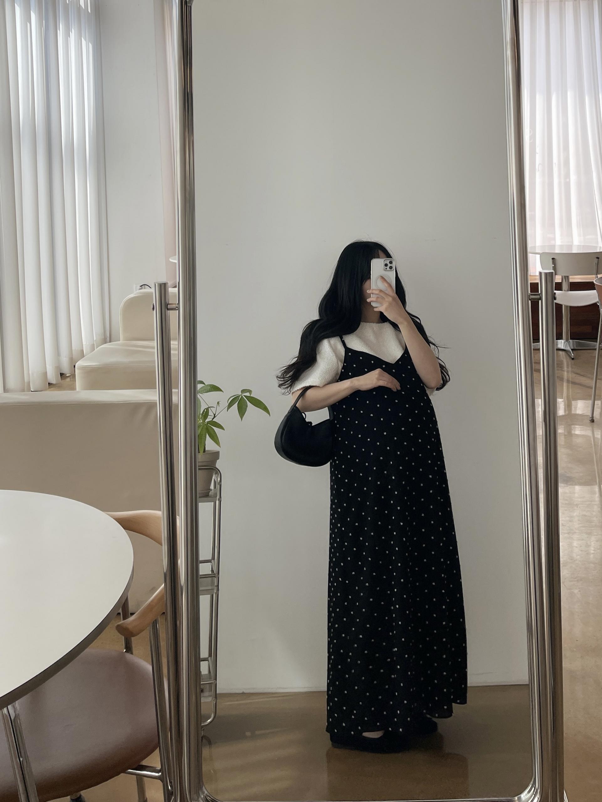 도트가 입체적으로 퐁퐁 들어가 있어 더 귀엽고 유니크하게 입는 원피스입니다!