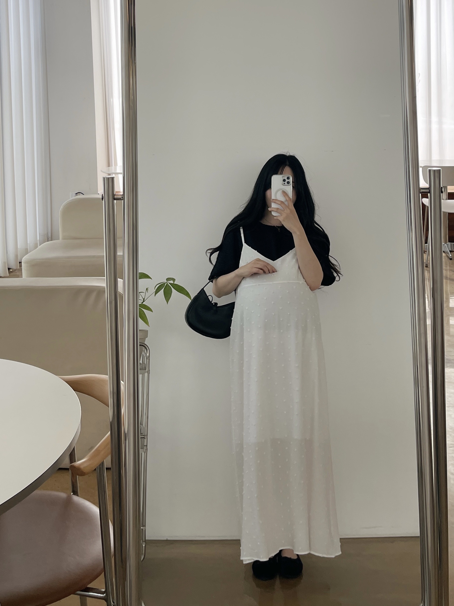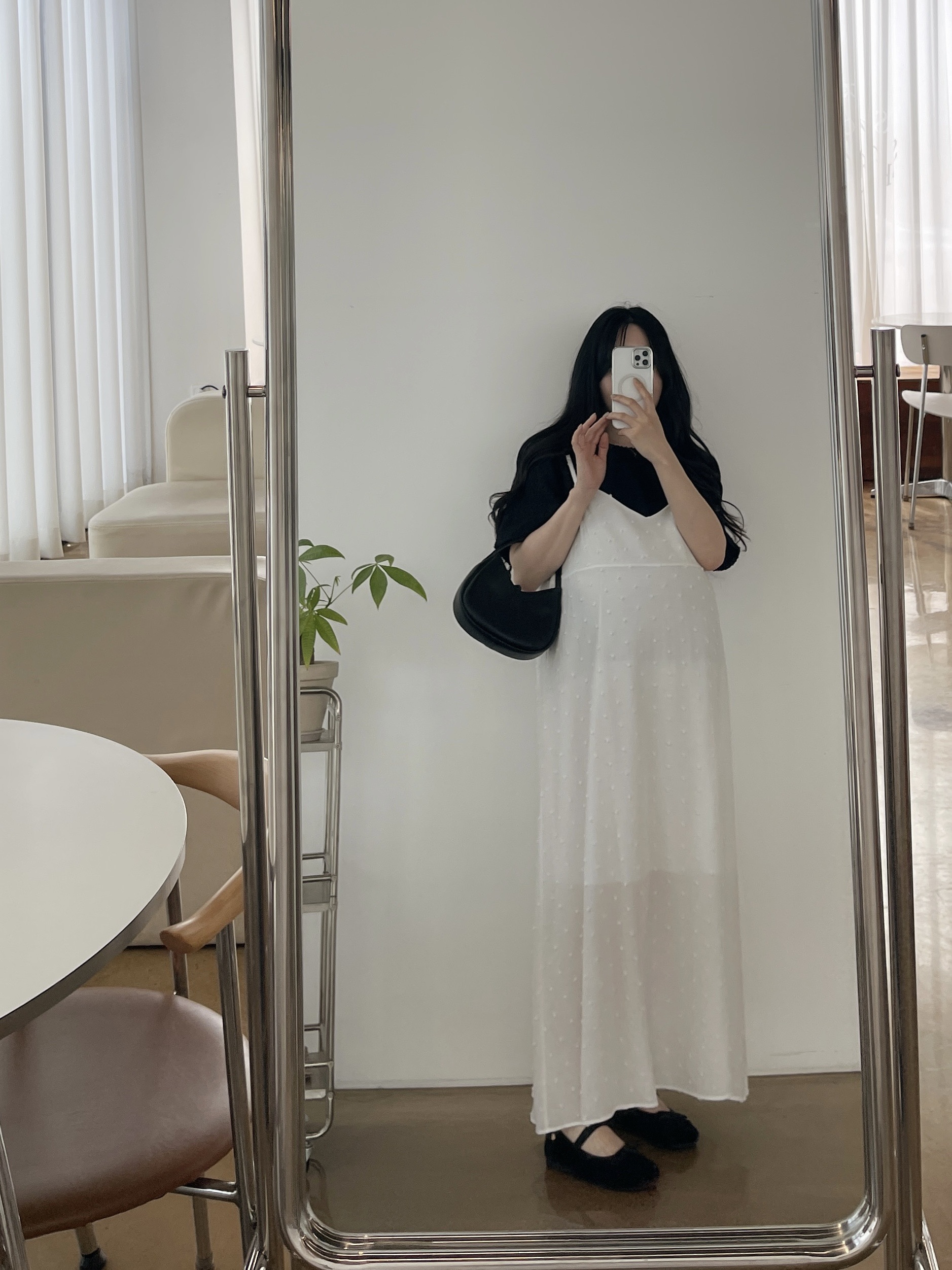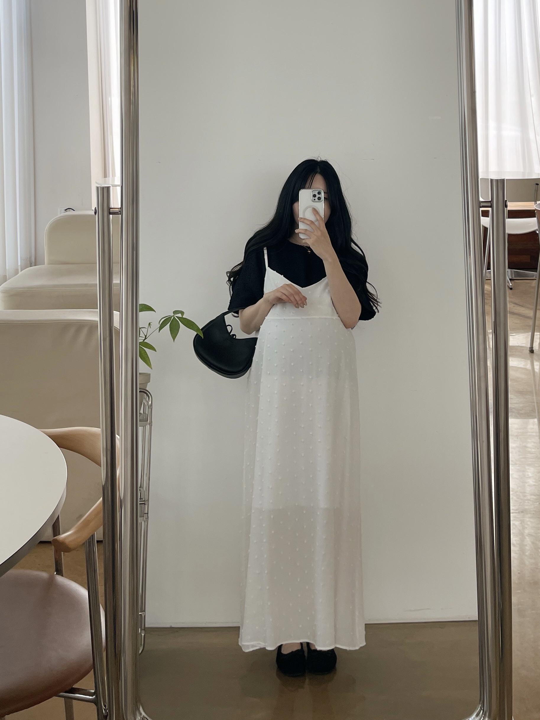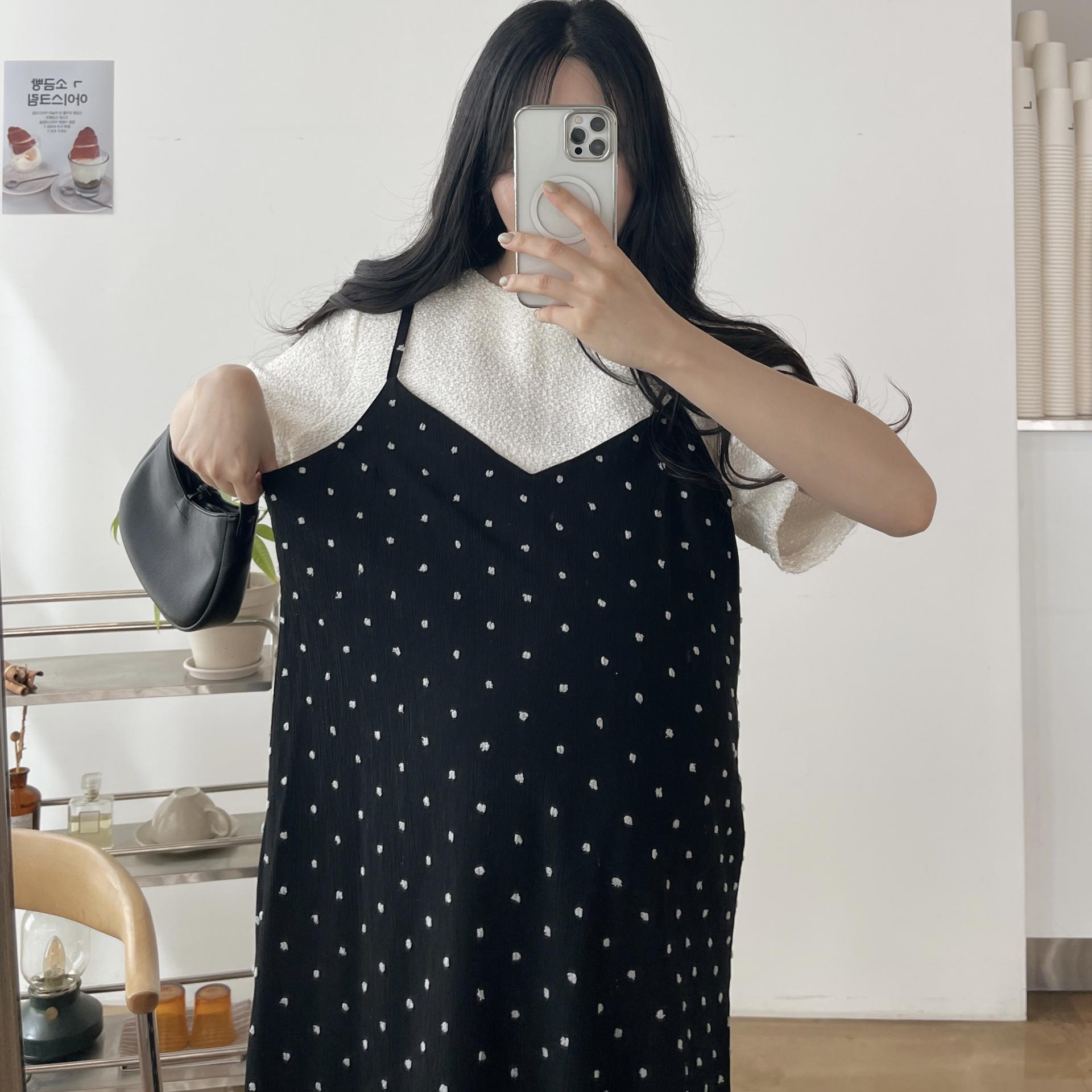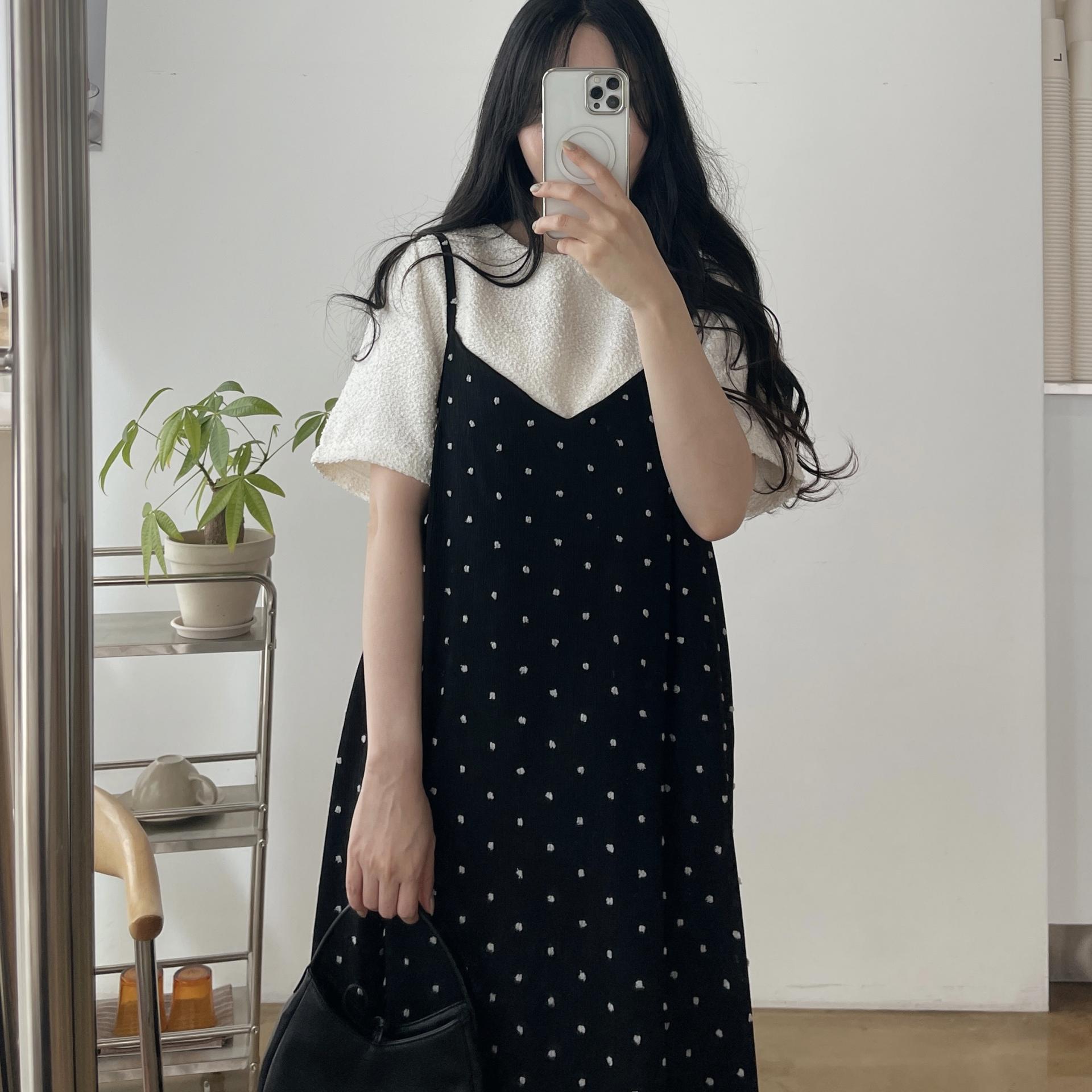 퐁퐁뷔스티에원피스(화이트-1사이즈착용)+메리트위드반팔BL(블랙-1사이즈착용)