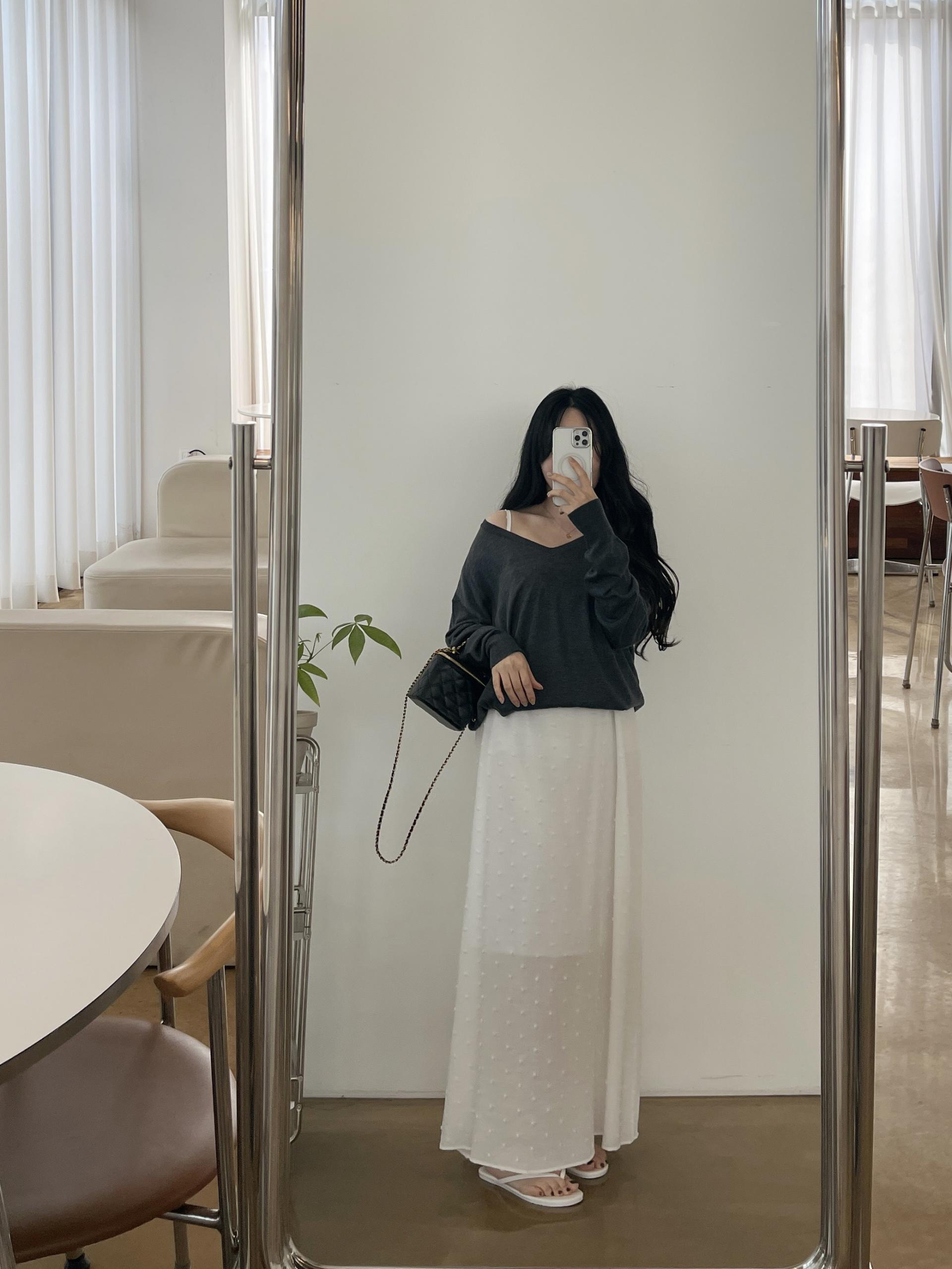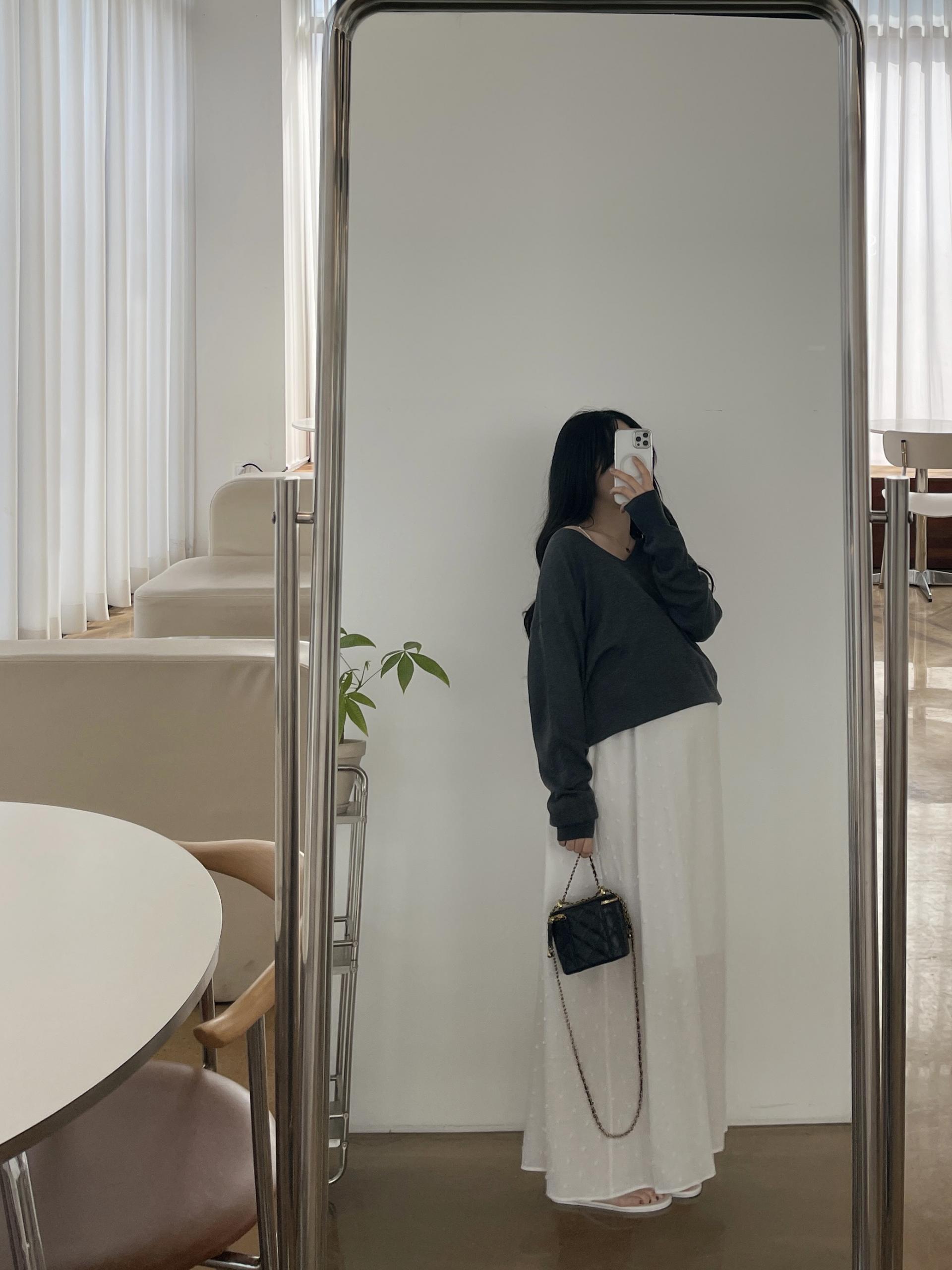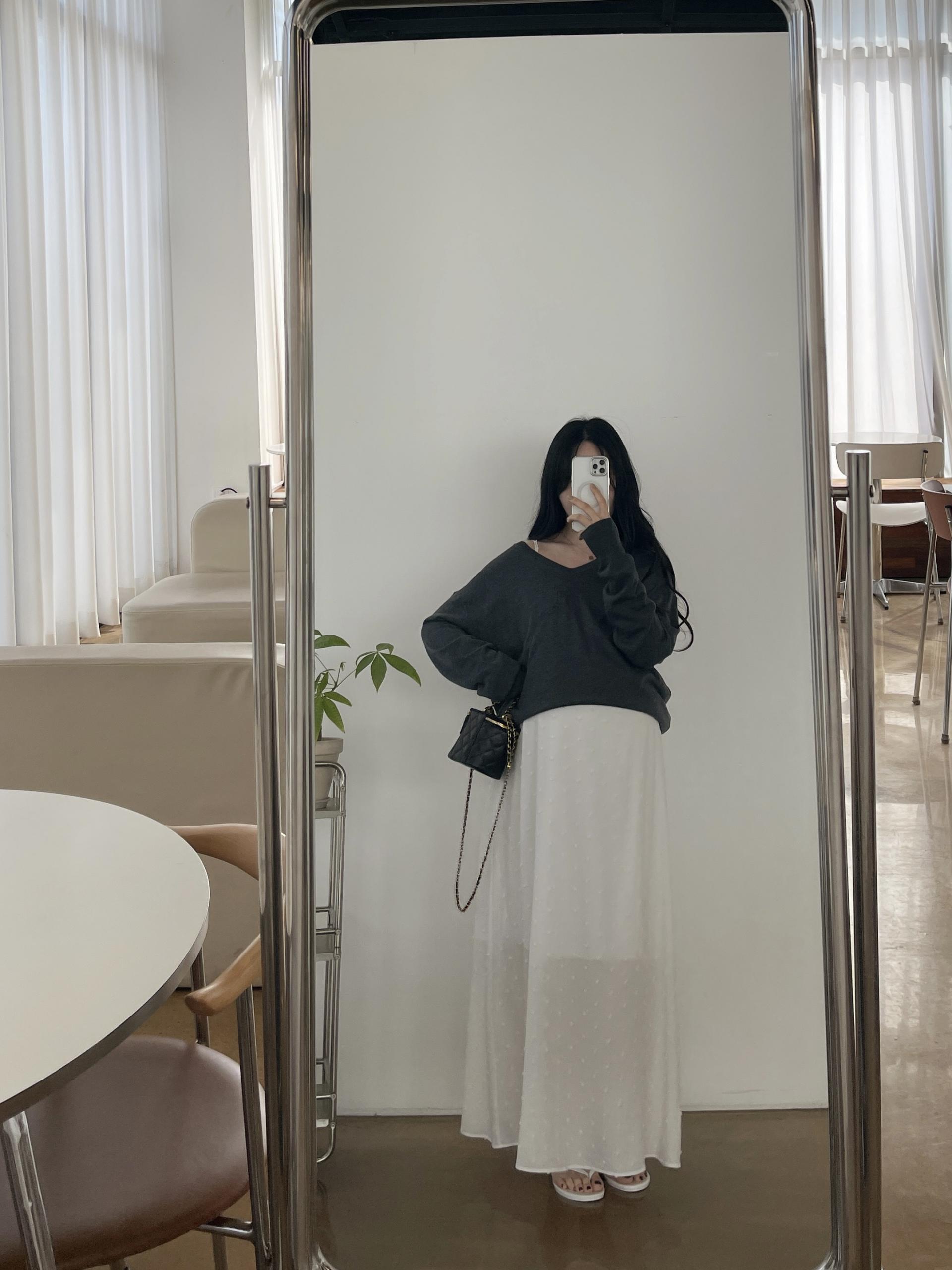 퐁퐁뷔스티에원피스(화이트-1사이즈착용)+소프트 루즈핏 V넥니트(차콜)