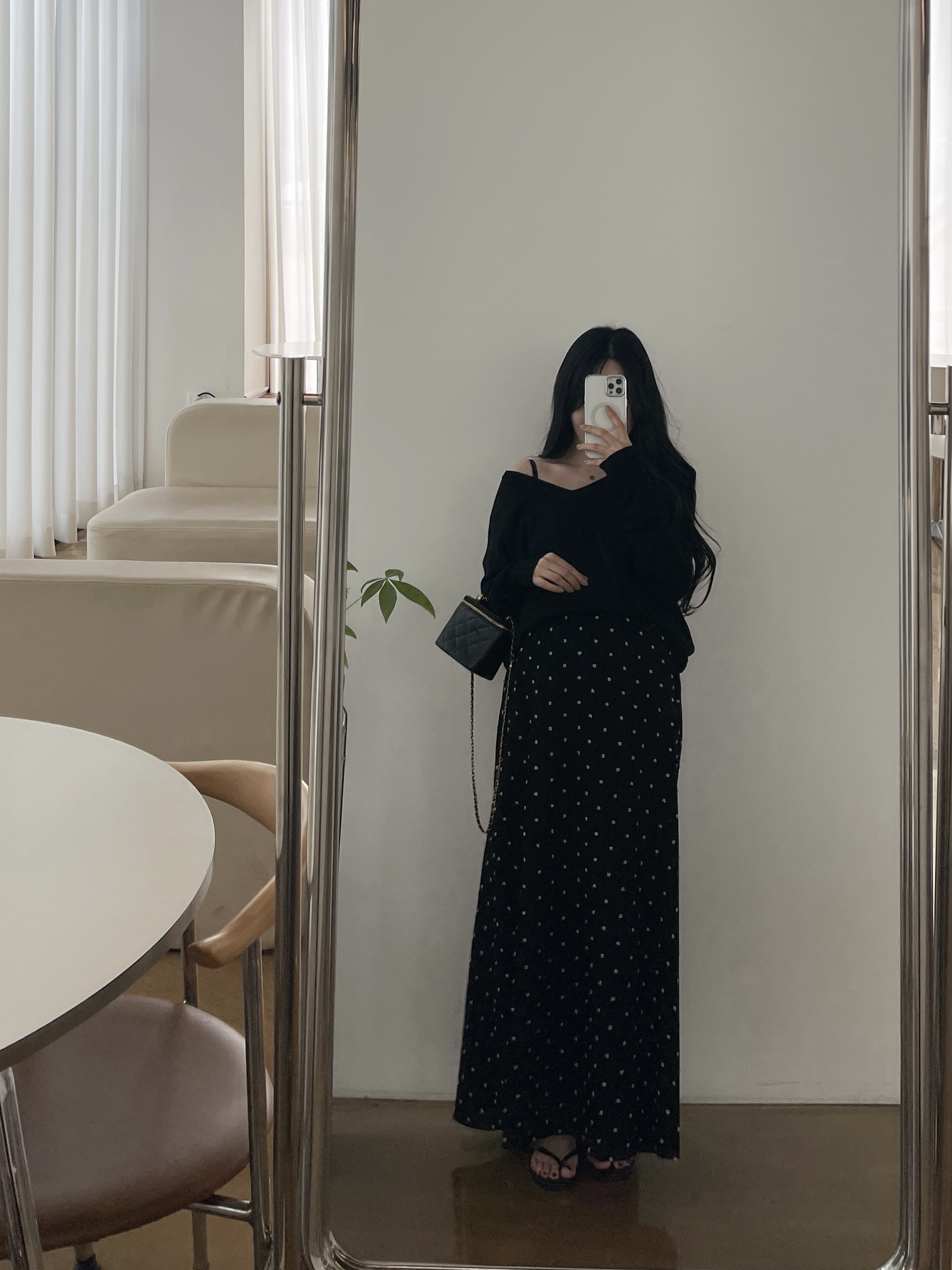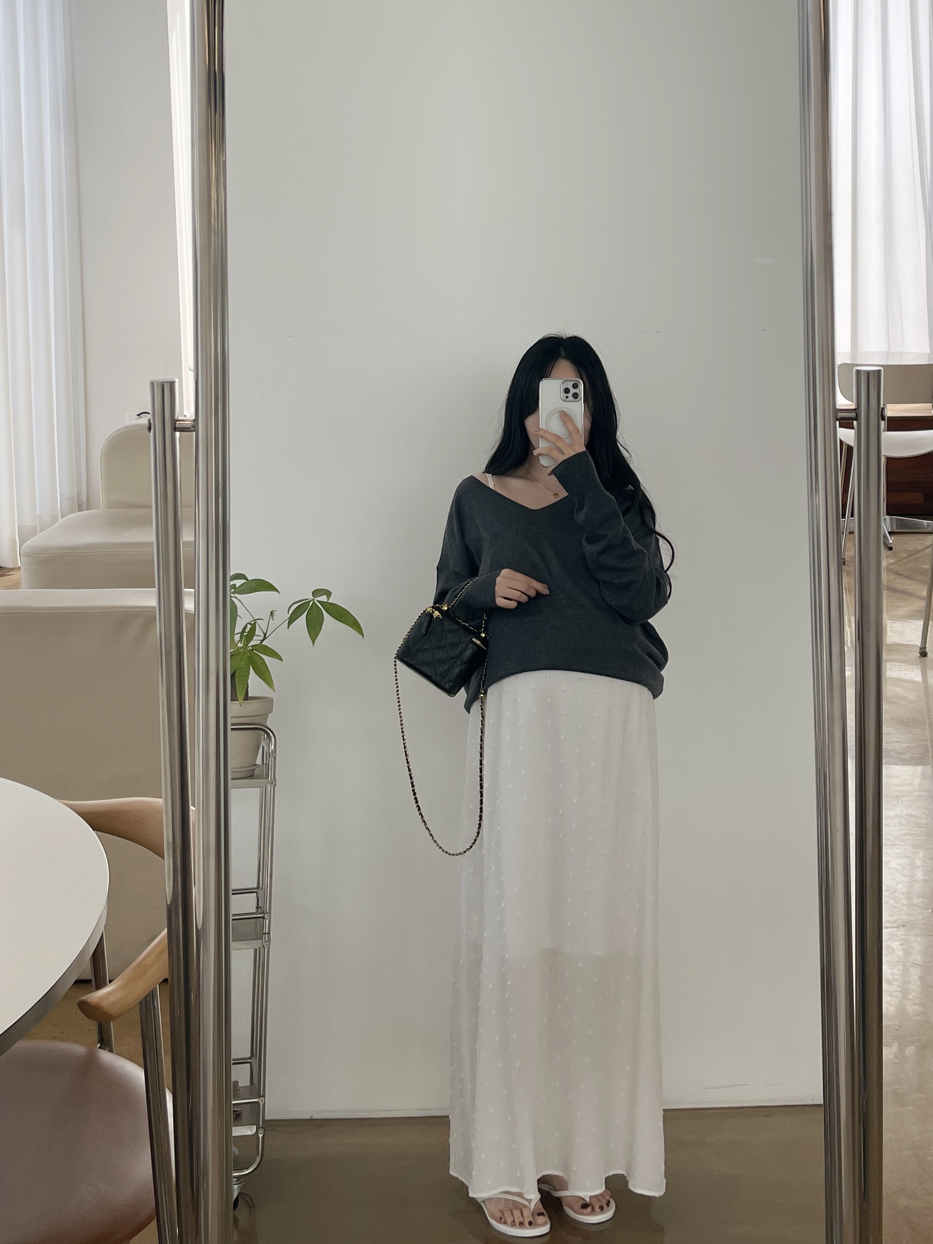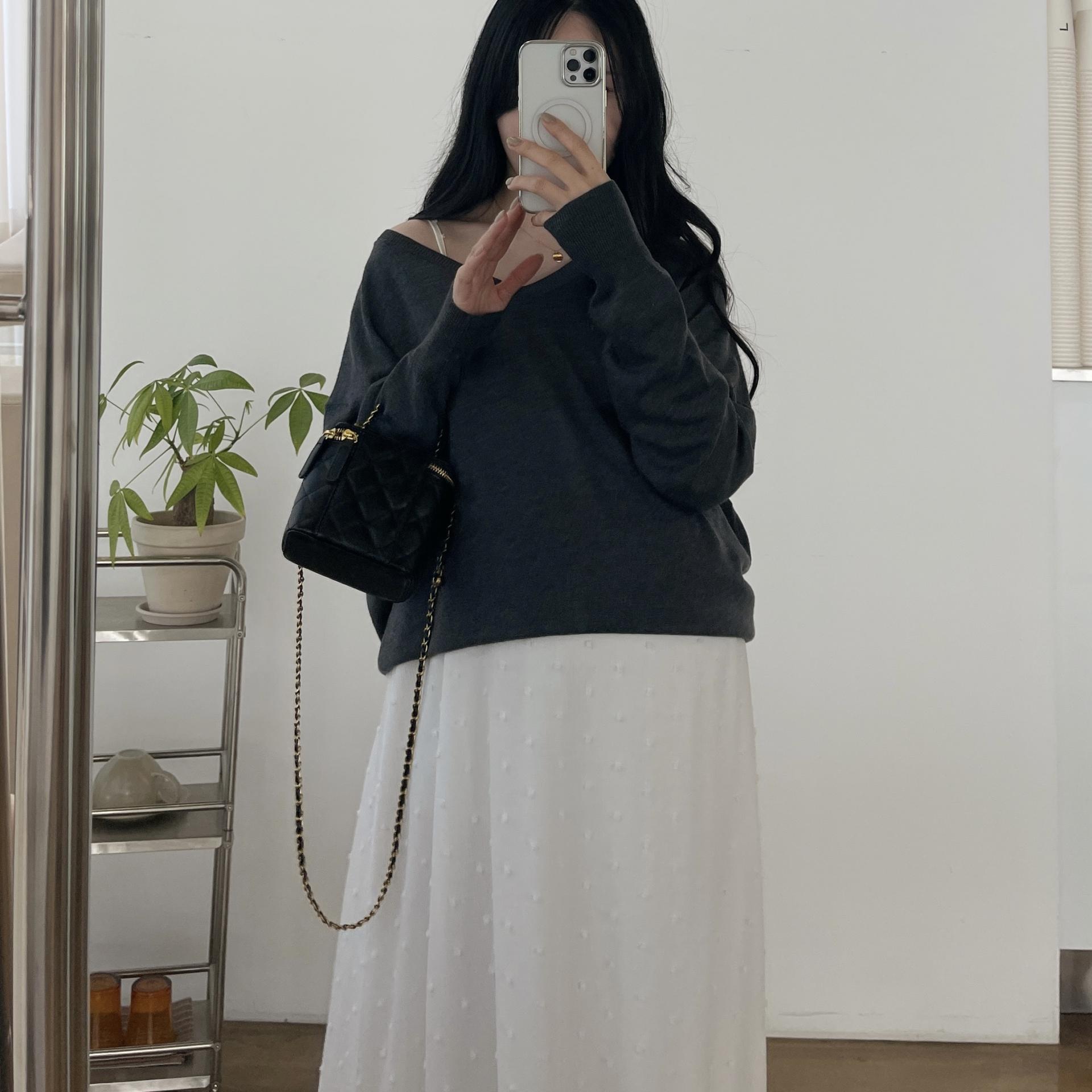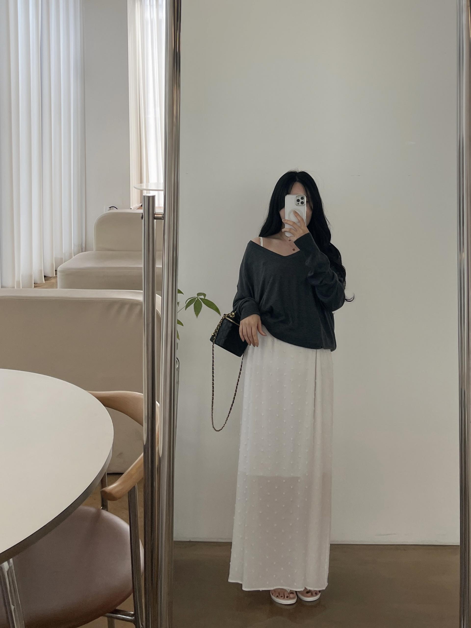 퐁퐁뷔스티에원피스(화이트-1사이즈착용)+소프트 루즈핏 V넥니트(차콜)