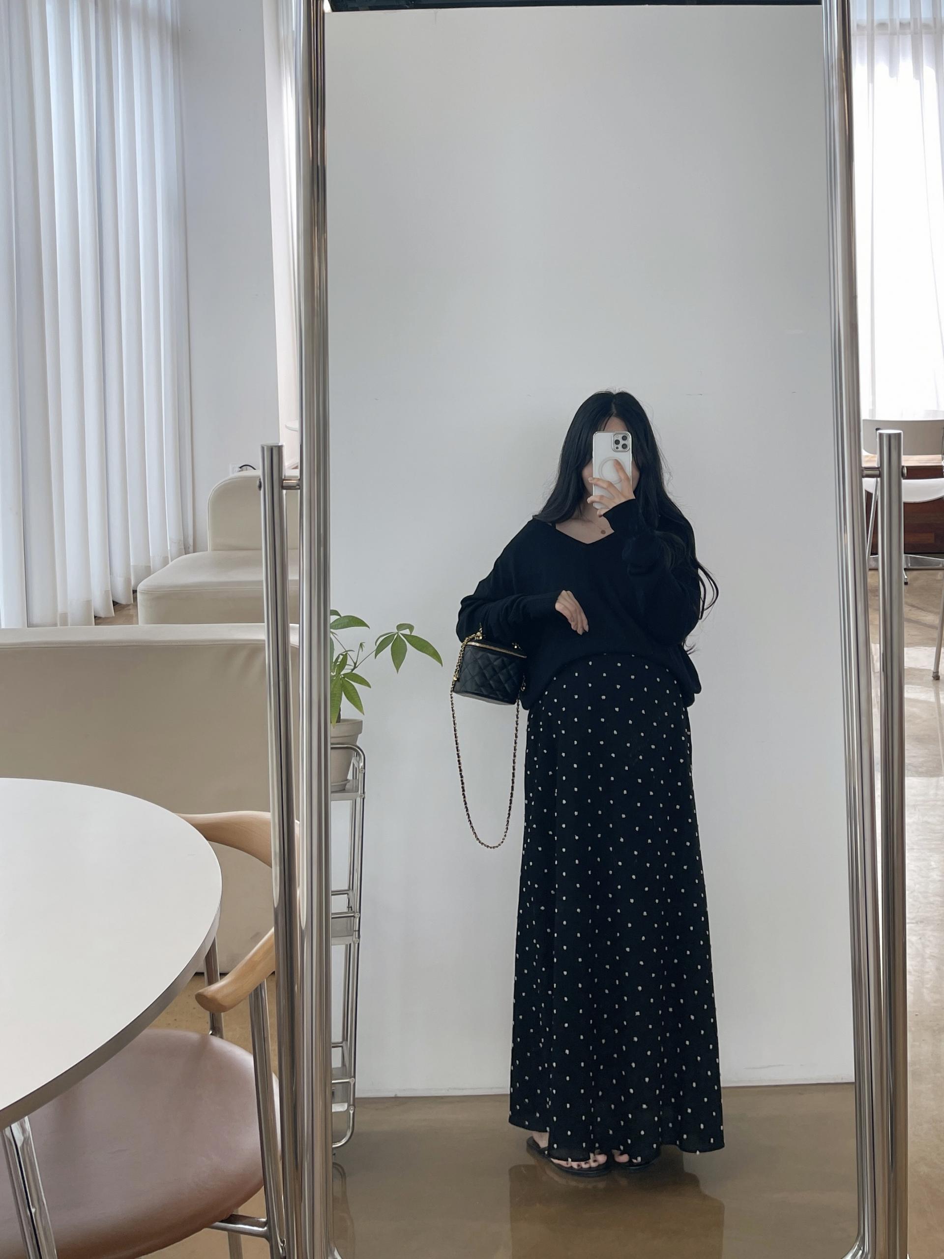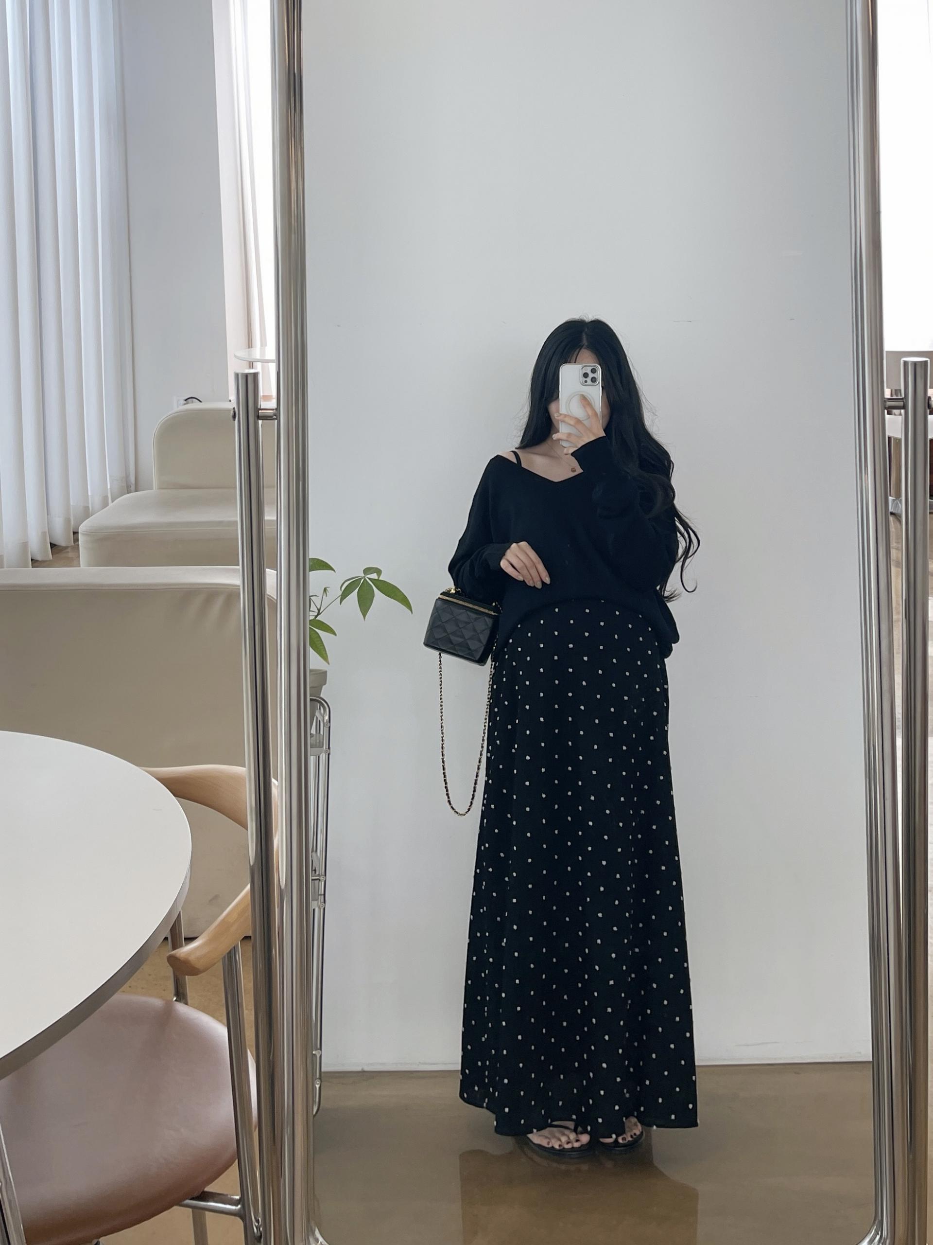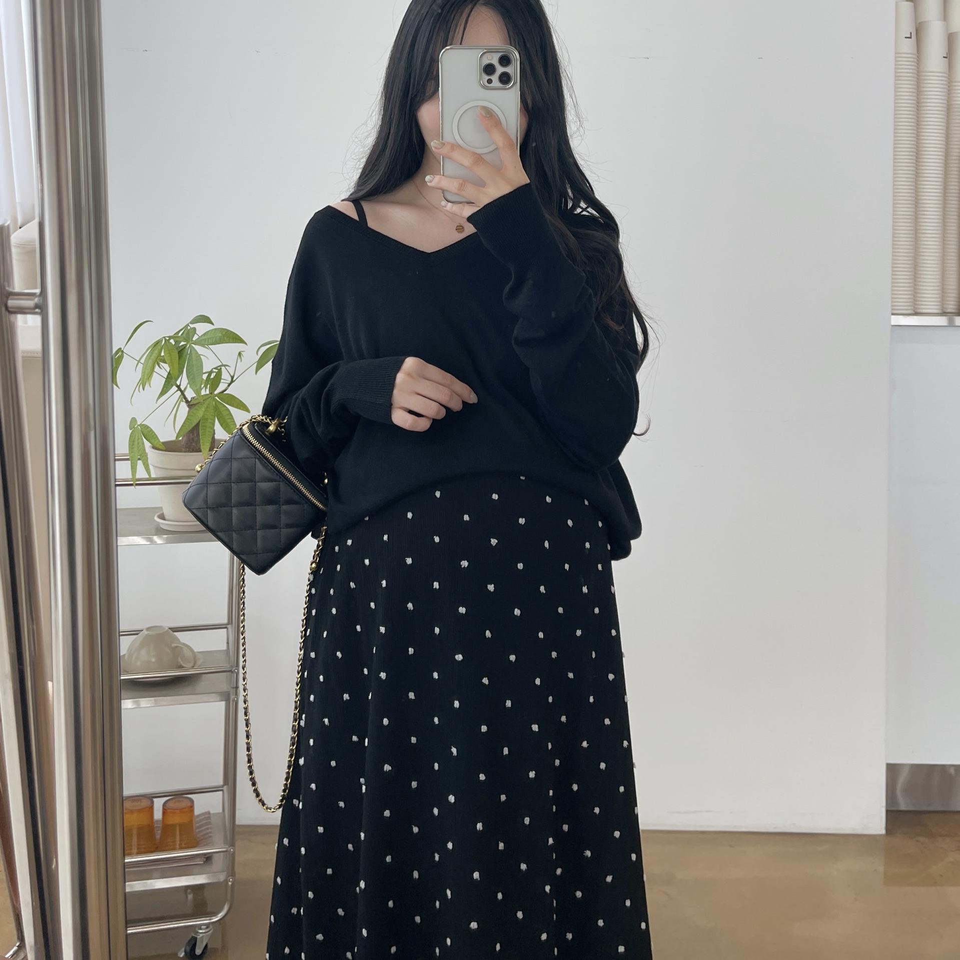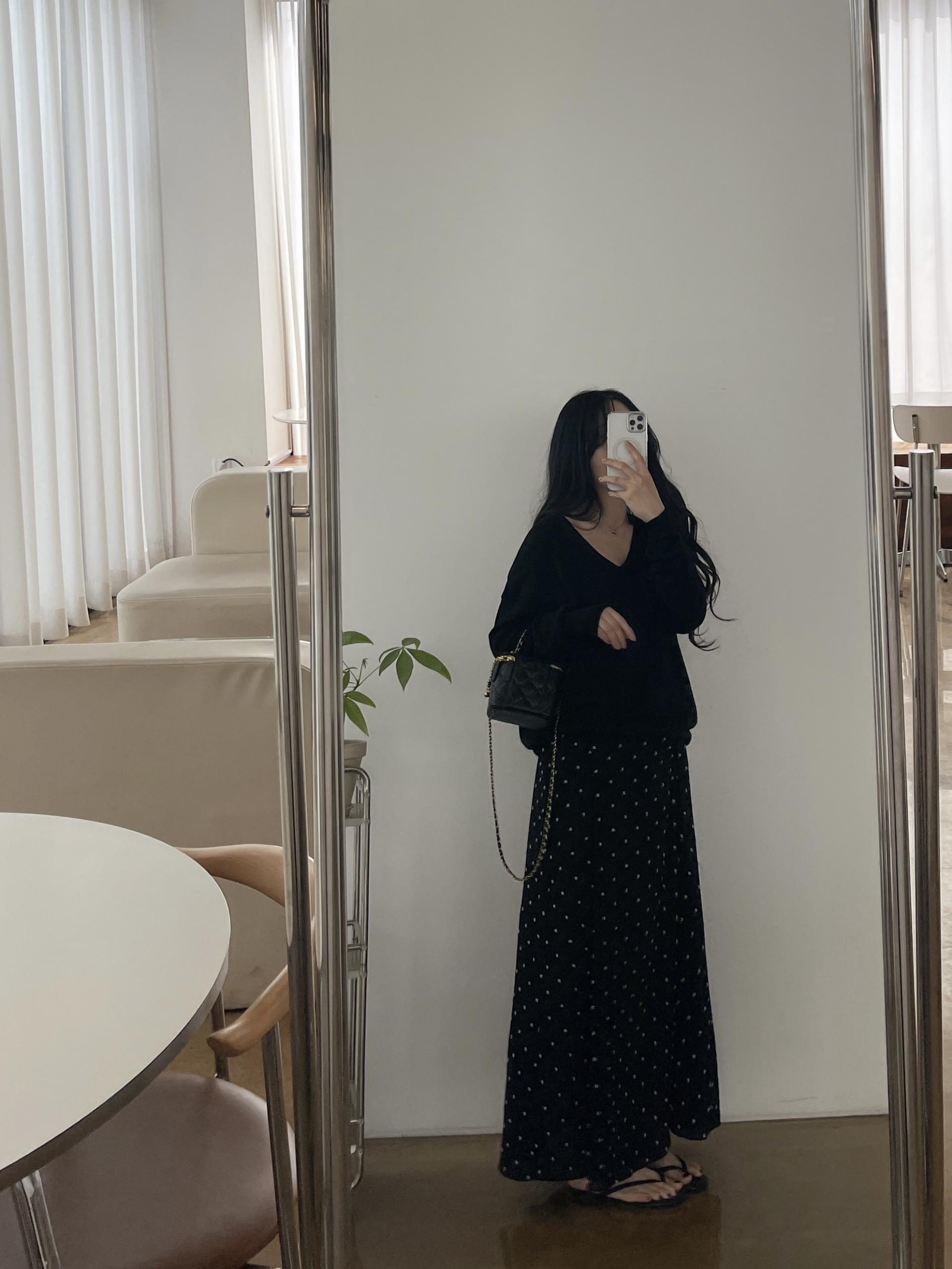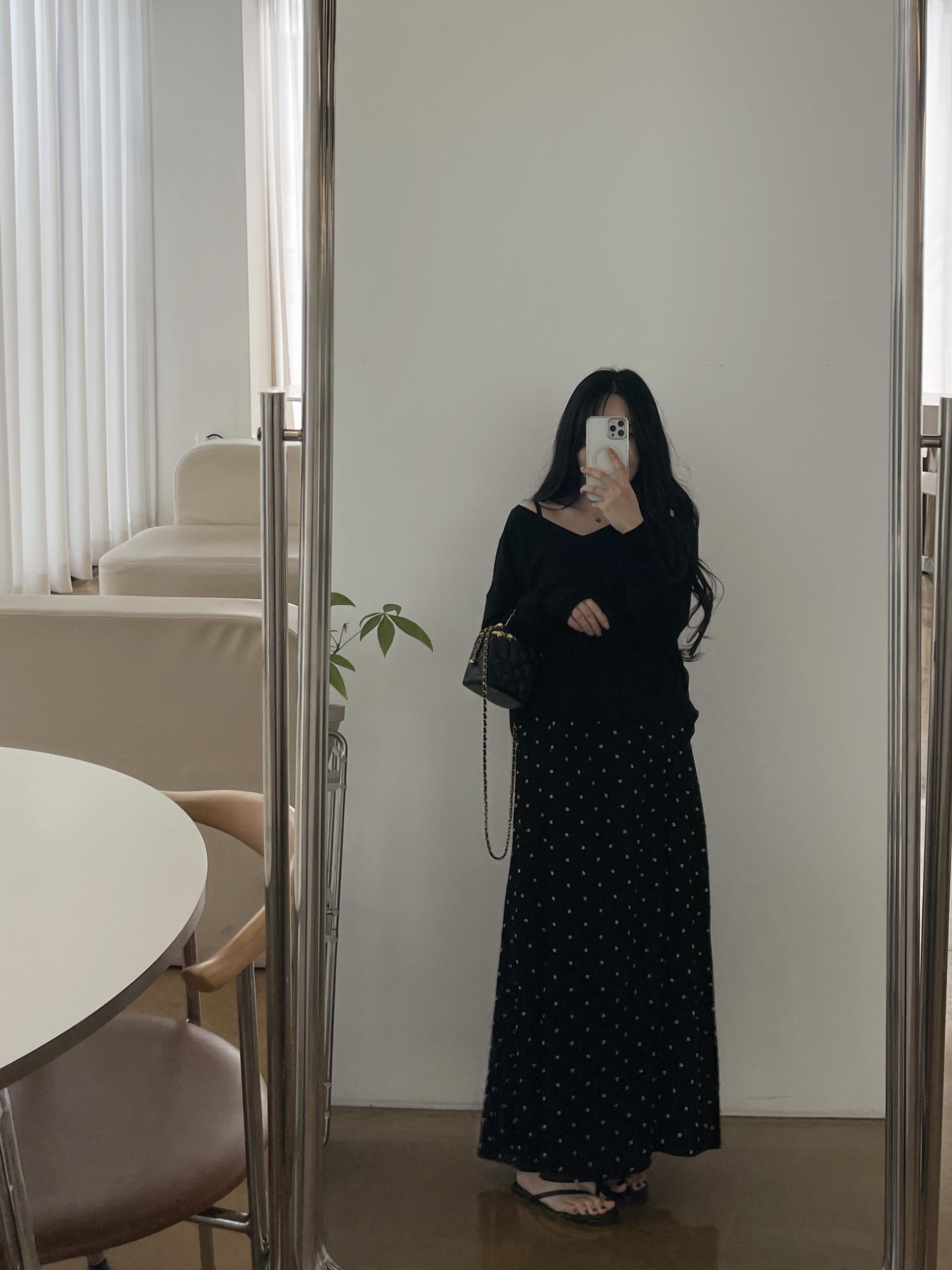 퐁퐁뷔스티에원피스(블랙-1사이즈착용)+소프트 루즈핏 V넥니트(블랙)