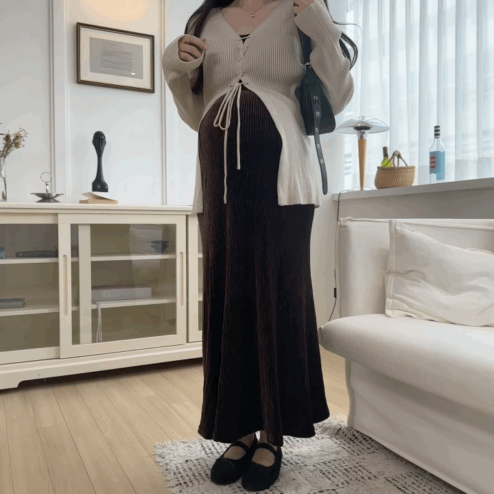 어텀,여리핏리본가디건(크림) + 크림플리츠(브라운)