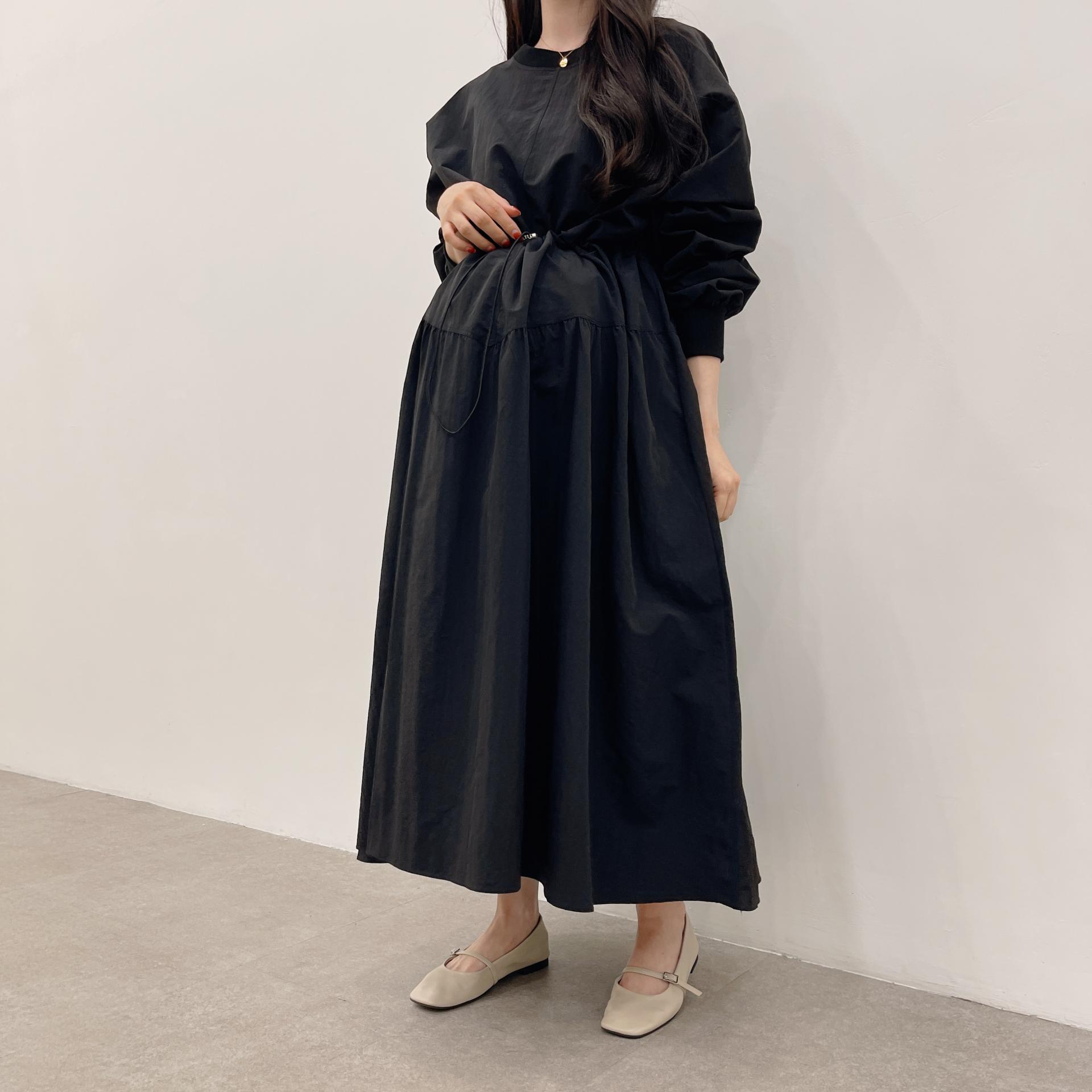 바스락소재 맨투맨형식의 허리스트링으로 정말 예쁜핏인 원피스에요! 허리스트링 쪼으기도 쉽고 라인잡기도 쉬운 아이라 적극추천!!