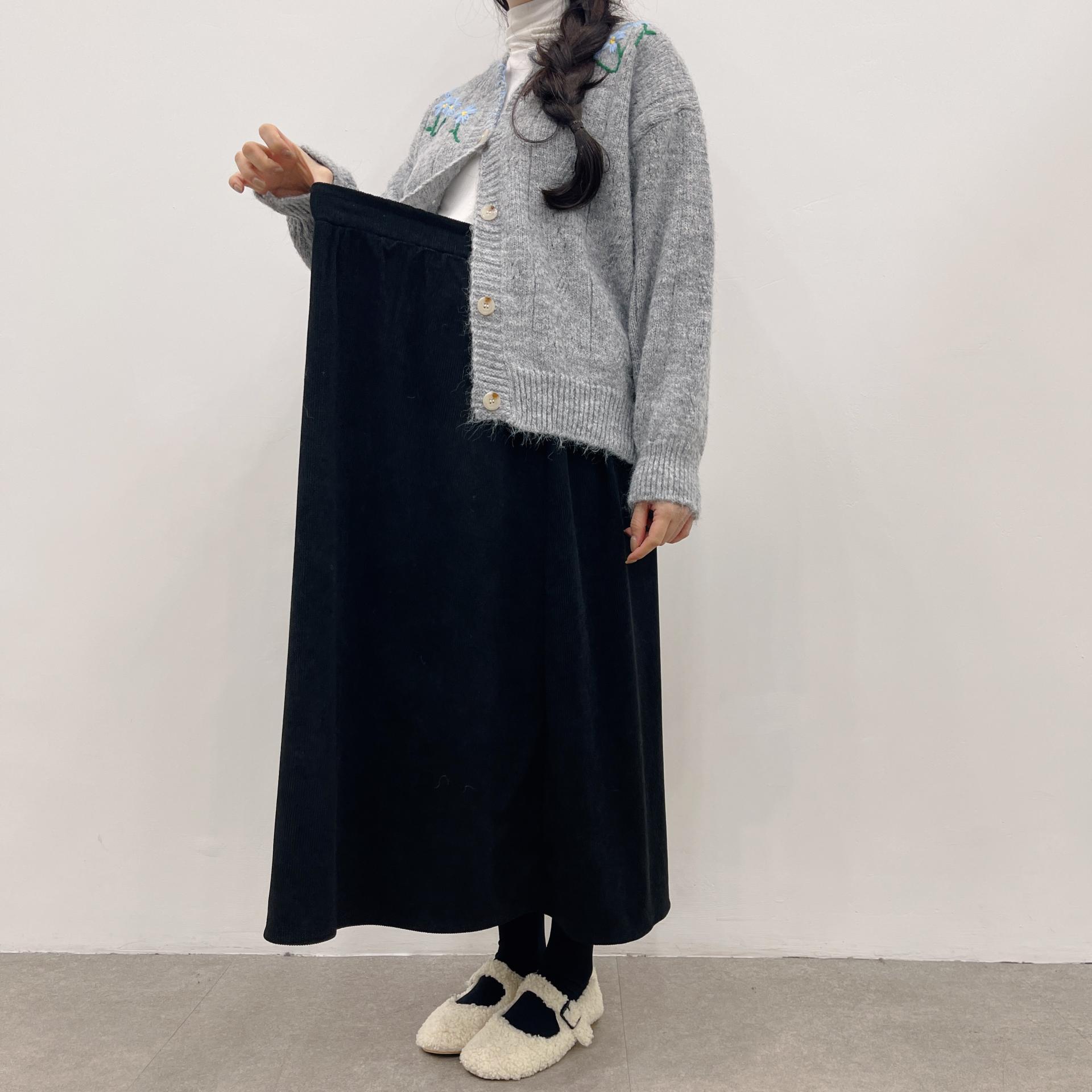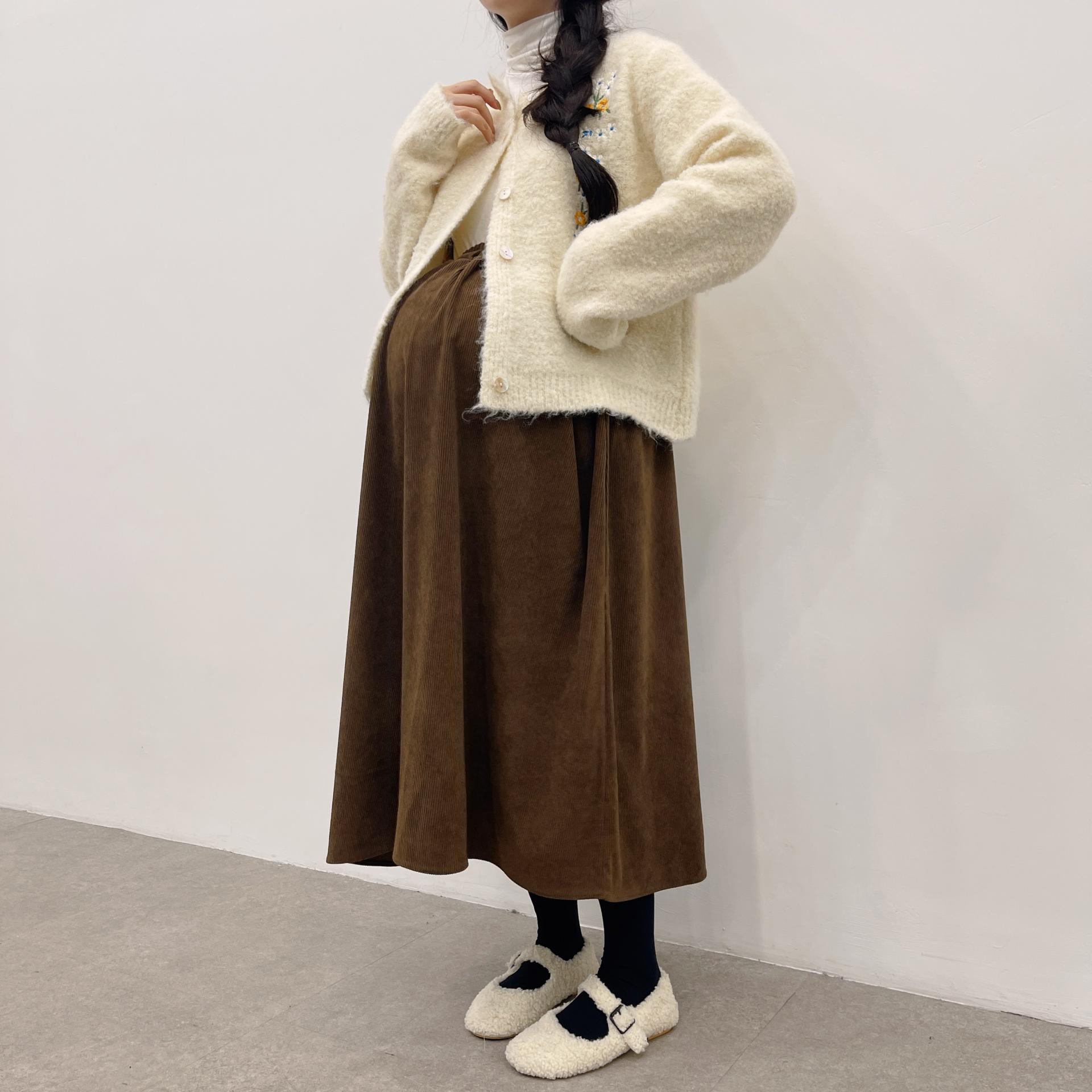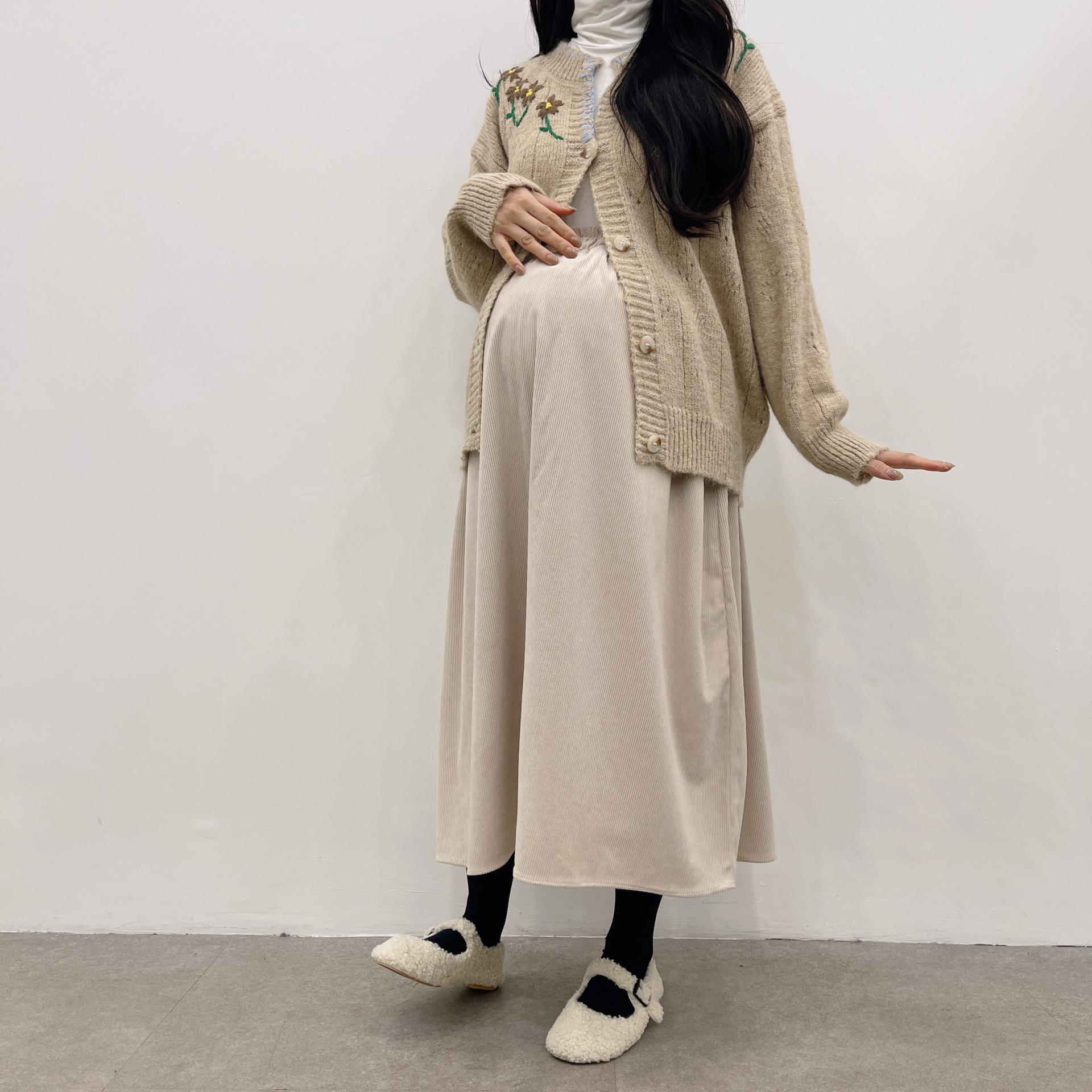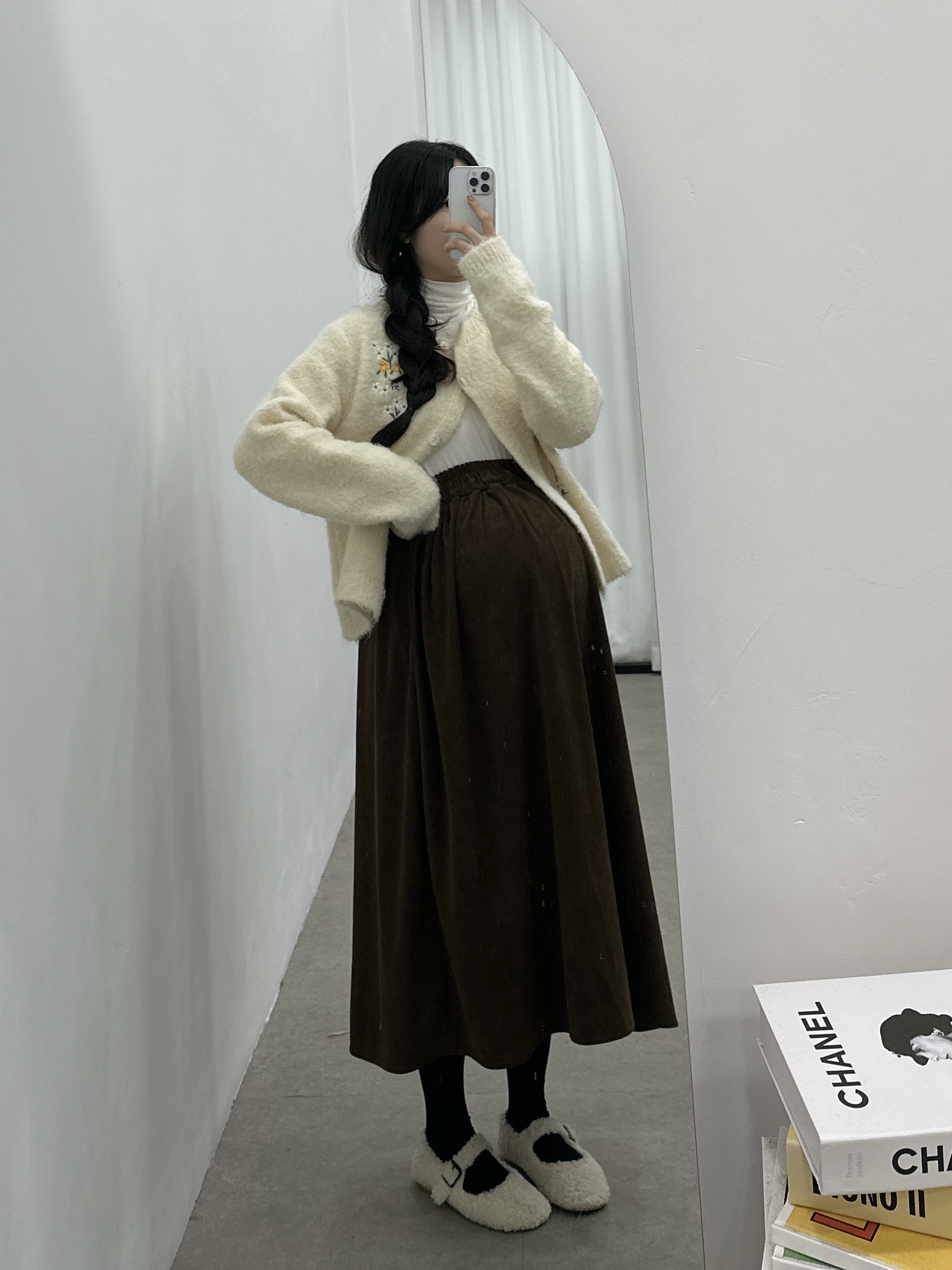 소프트한 골덴소재의 밴딩스커트! 밴딩편안함은 물론, 플레어핏으로 편하고 귀엽게 착용하기 좋고 롱~기장은 아니라 키작녀언니들에게도 안성맞춤!