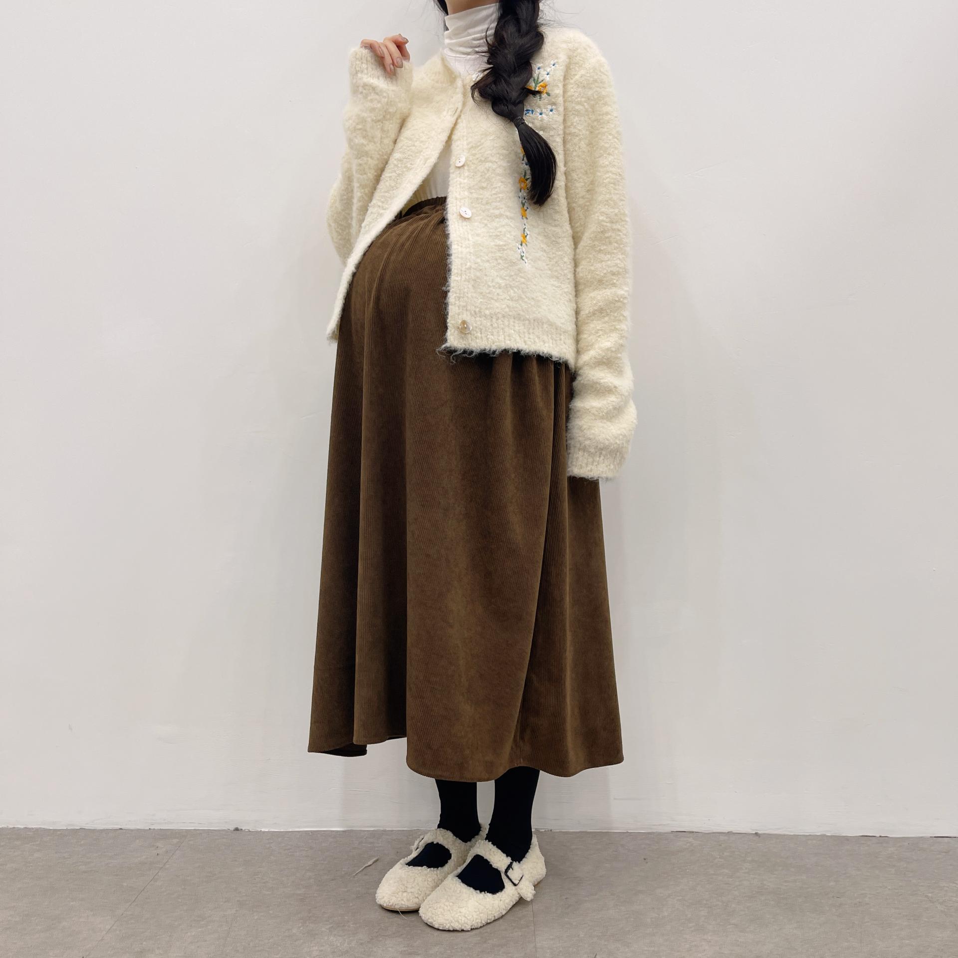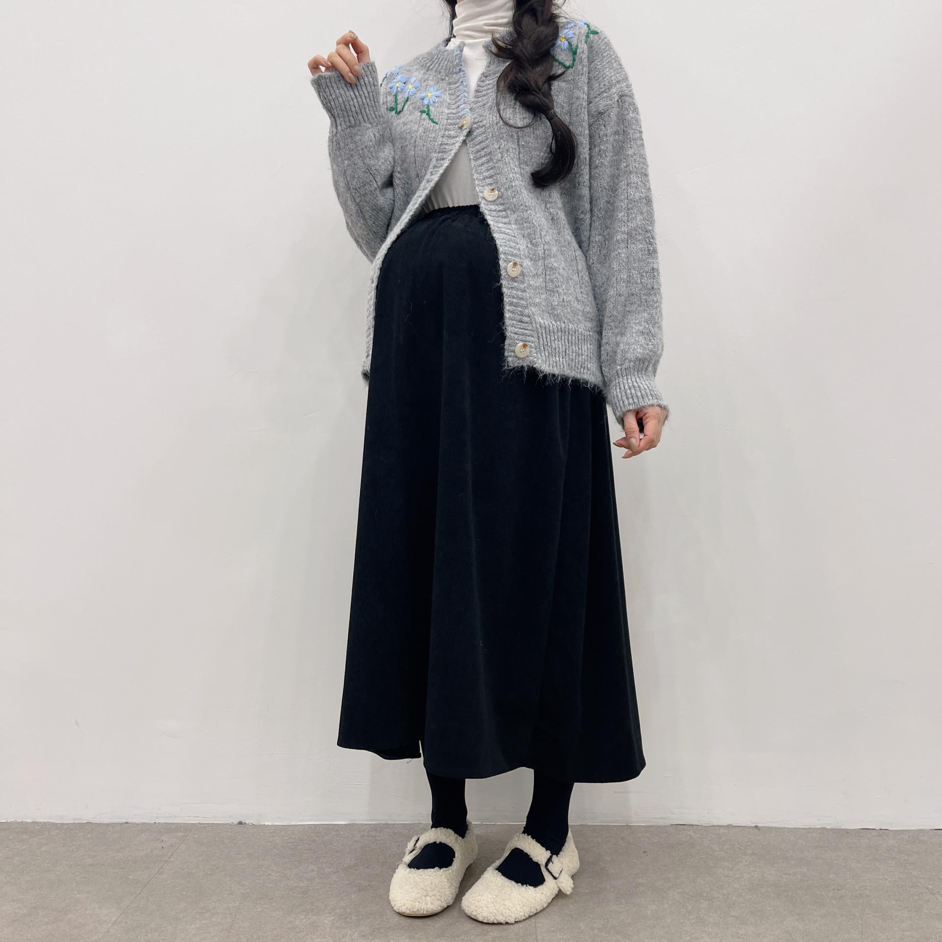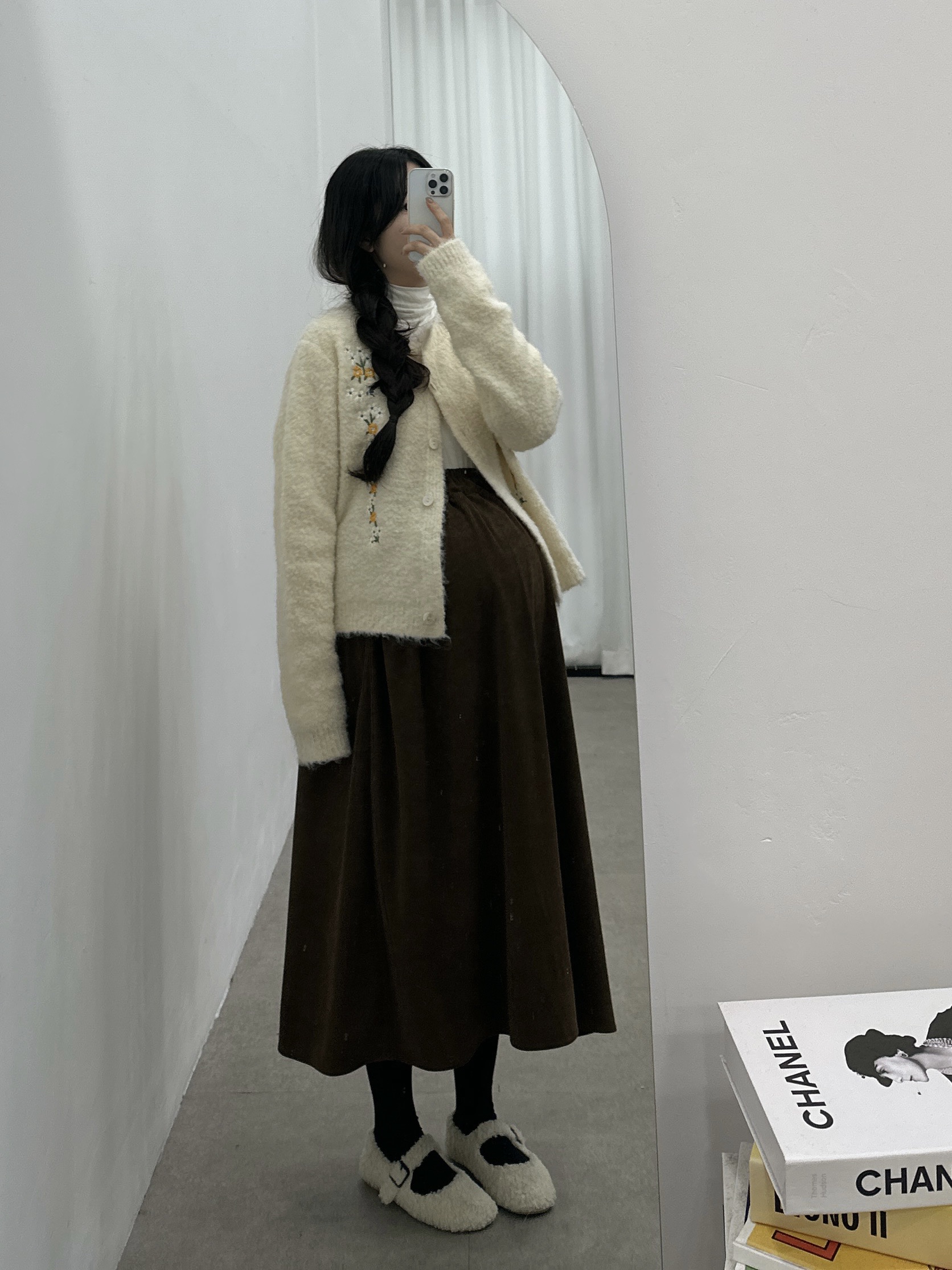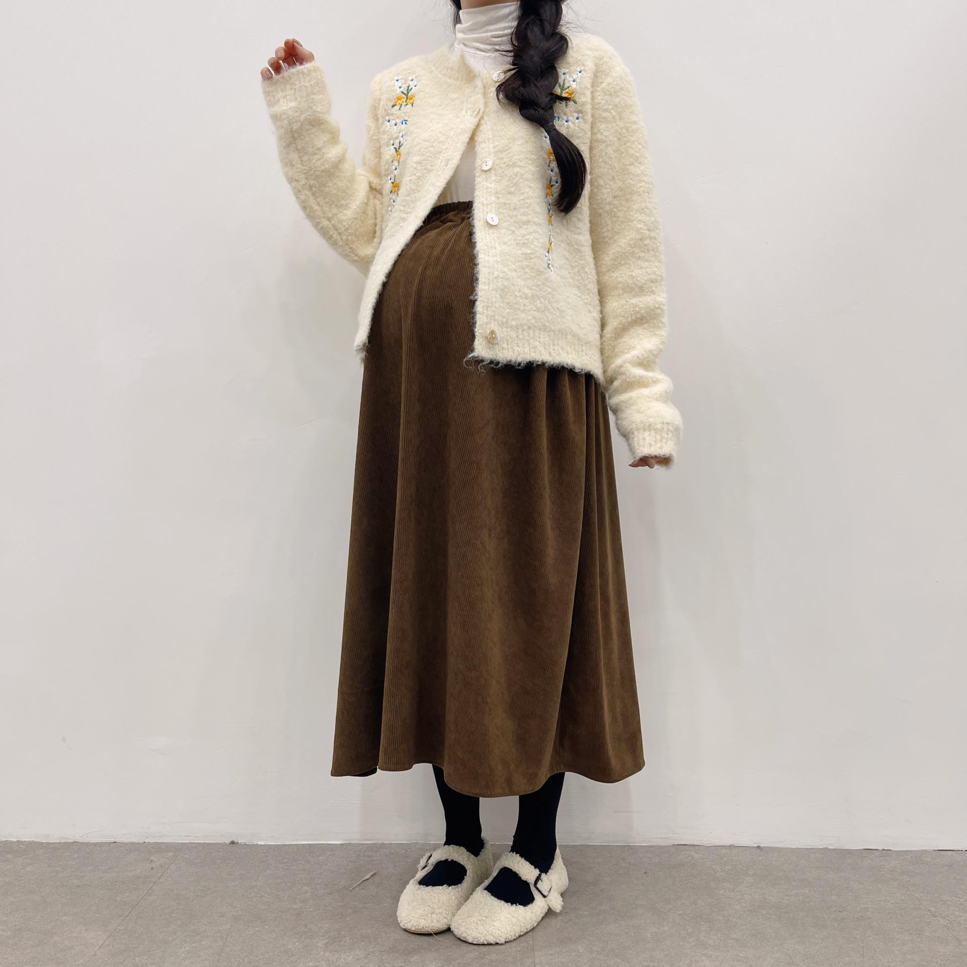 소프트한 골덴소재의 밴딩스커트! 밴딩편안함은 물론, 플레어핏으로 편하고 귀엽게 착용하기 좋고 롱~기장은 아니라 키작녀언니들에게도 안성맞춤!