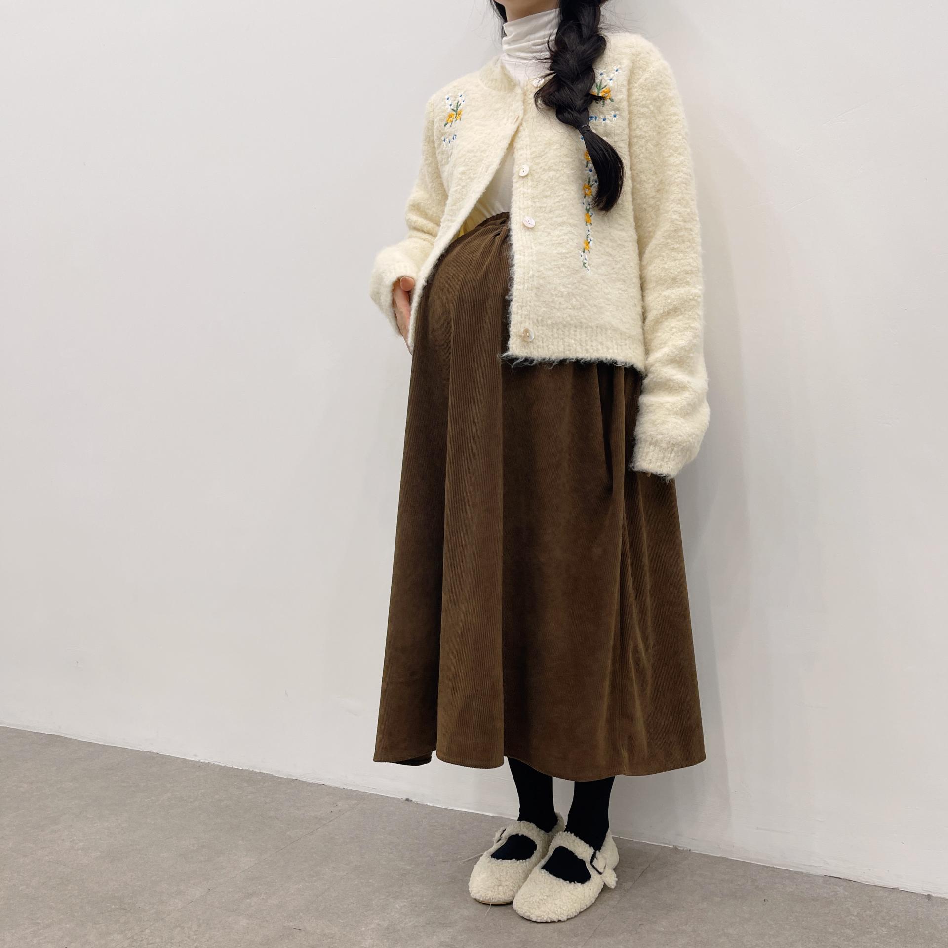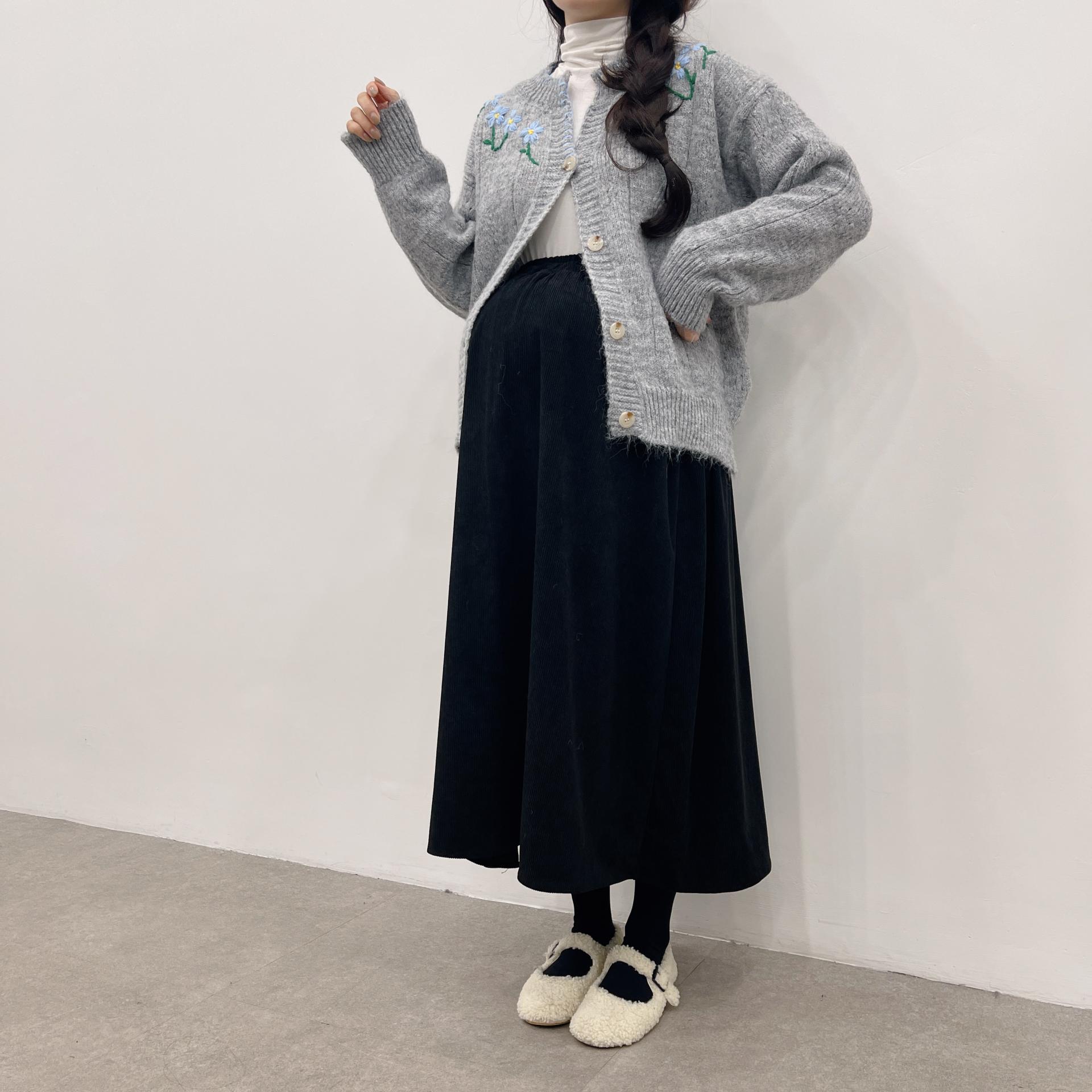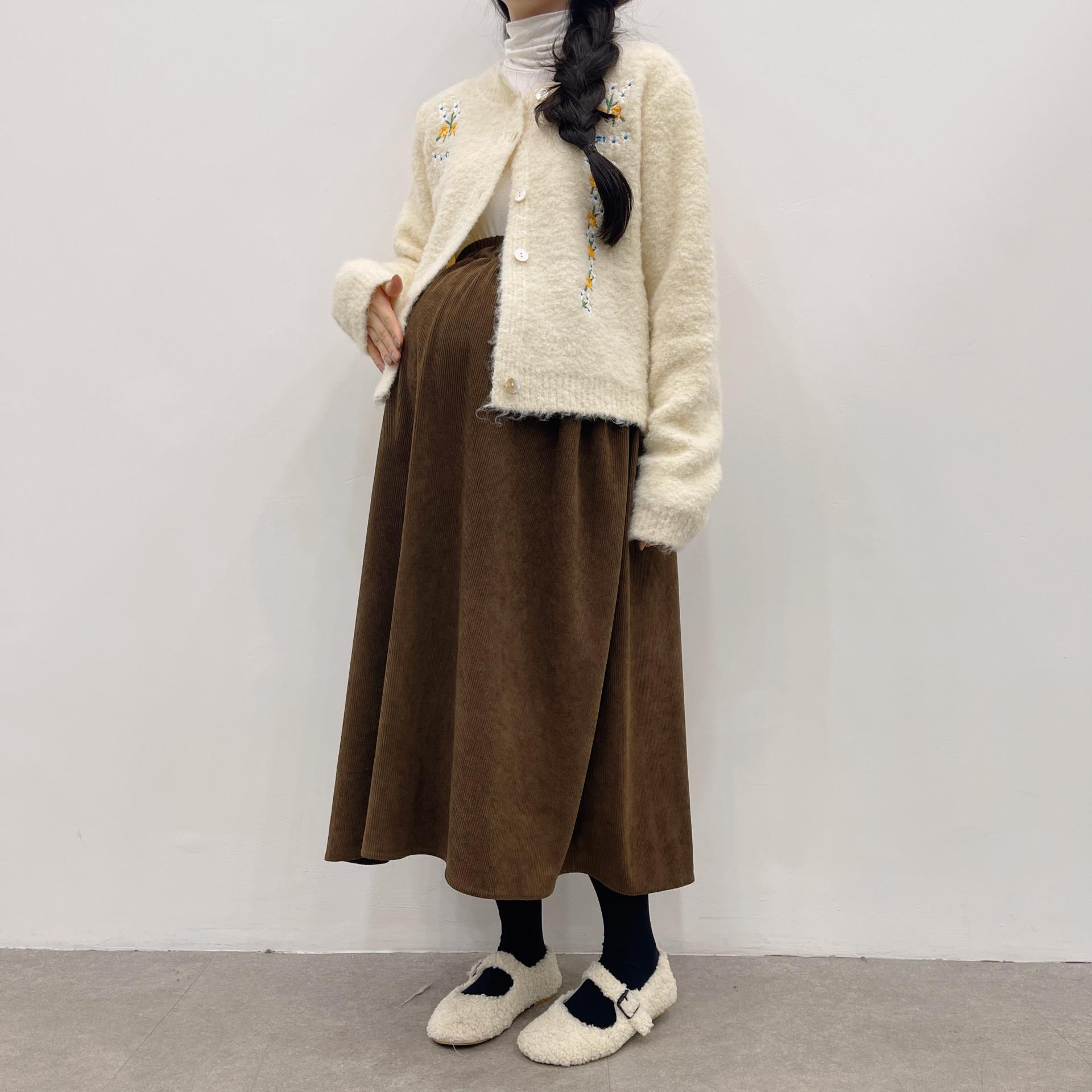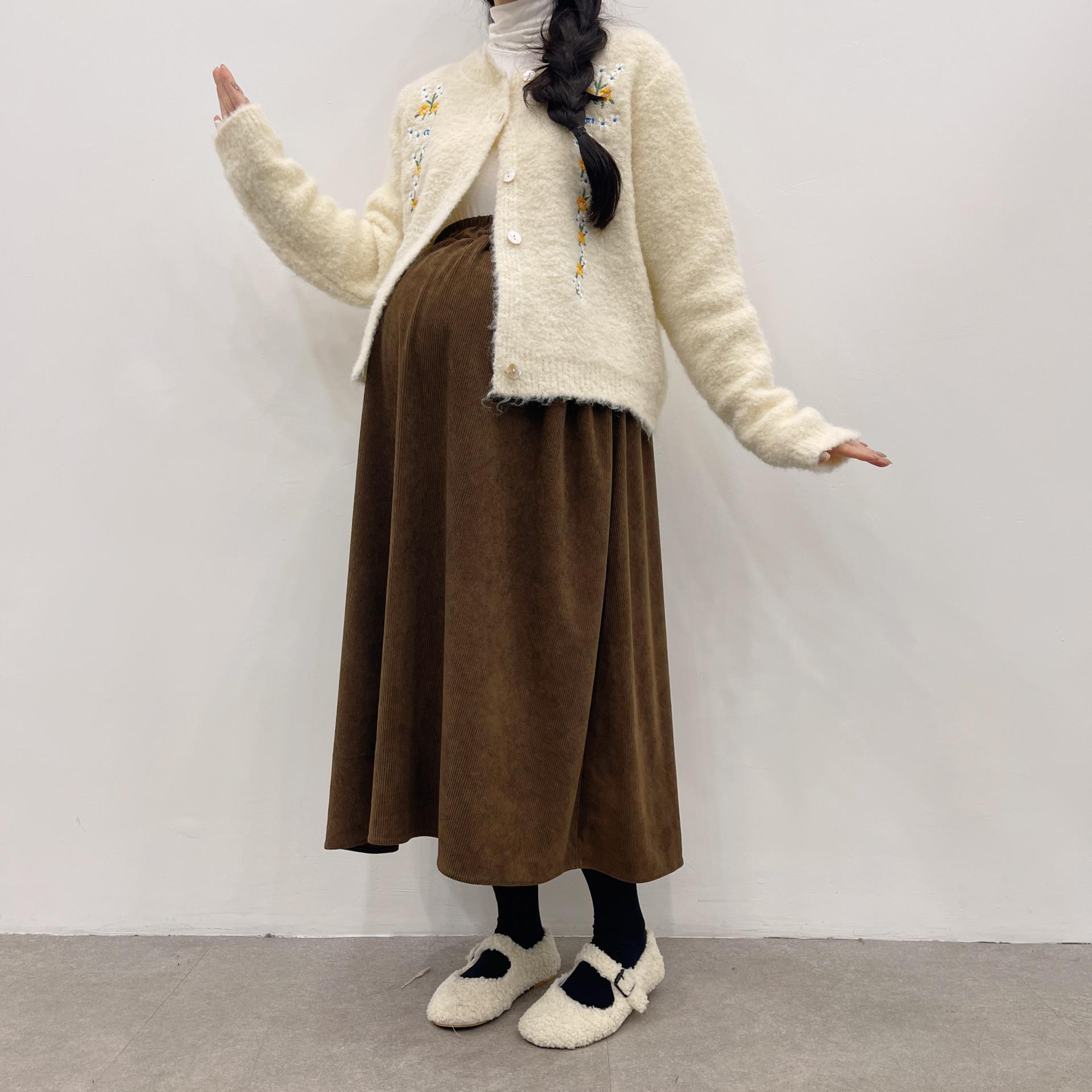 소프트한 골덴소재의 밴딩스커트! 밴딩편안함은 물론, 플레어핏으로 편하고 귀엽게 착용하기 좋고 롱~기장은 아니라 키작녀언니들에게도 안성맞춤!
