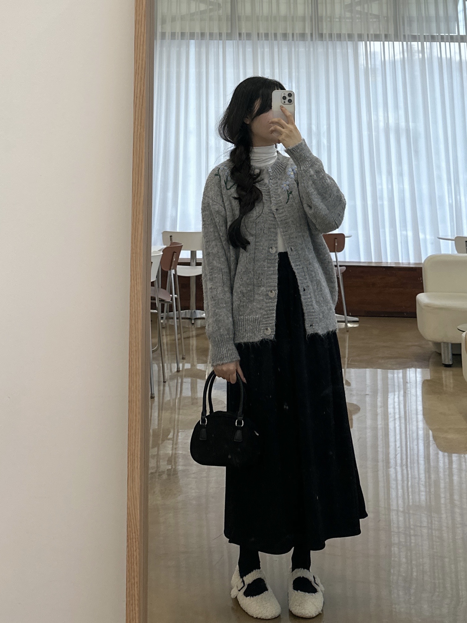 블랙(+코디상품 : 패링턴 자수가디건 그레이 / 이너폴라티)