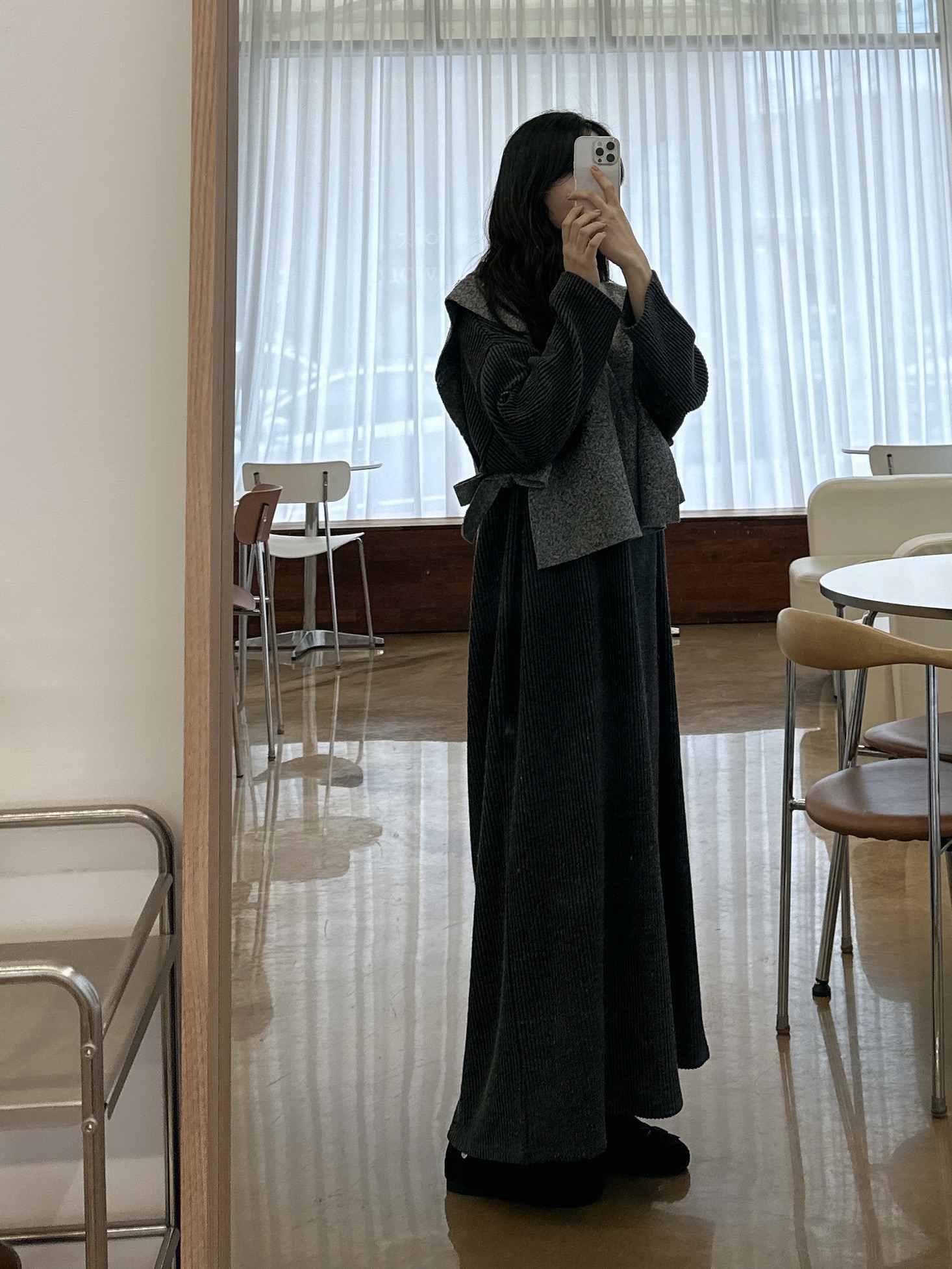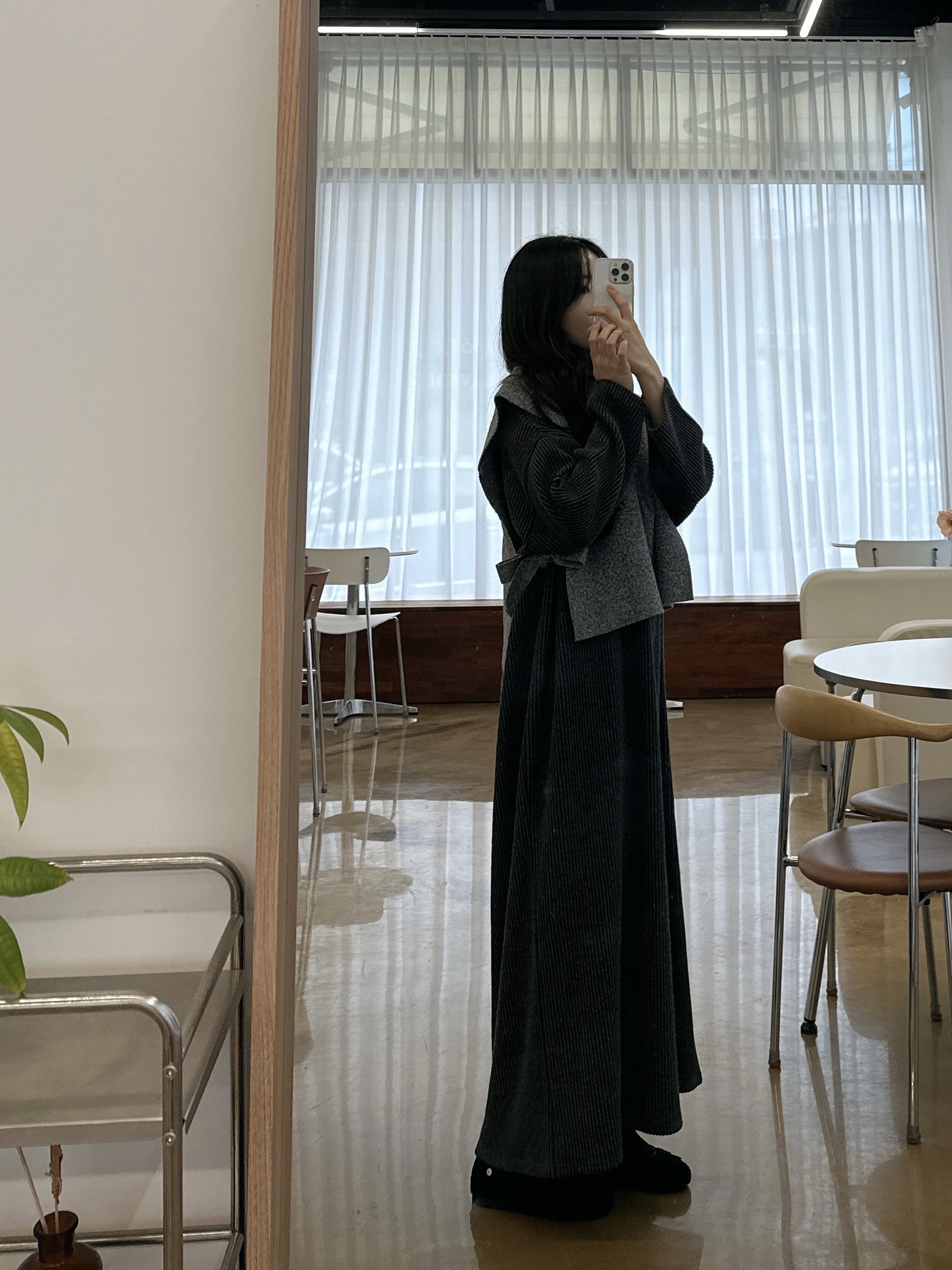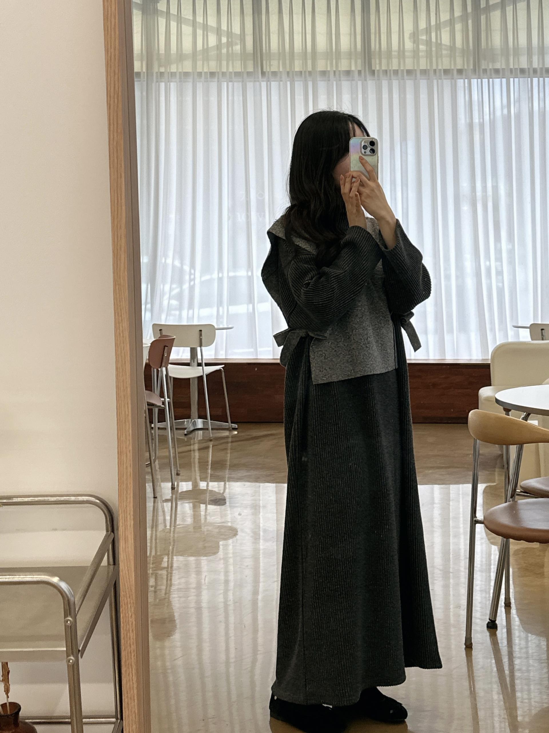 데일리로 즐기기좋은 맥시롱기장의 골지폴라원피스입니다 왼쪽에 핸드메이드라벨로 포인트를 주고, 낙낙한 핏감으로 기분좋게 입으실 수 있는 폴라원피스입니다!