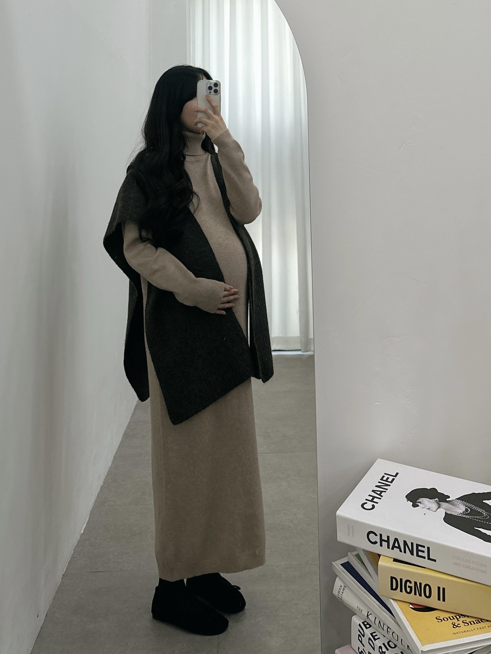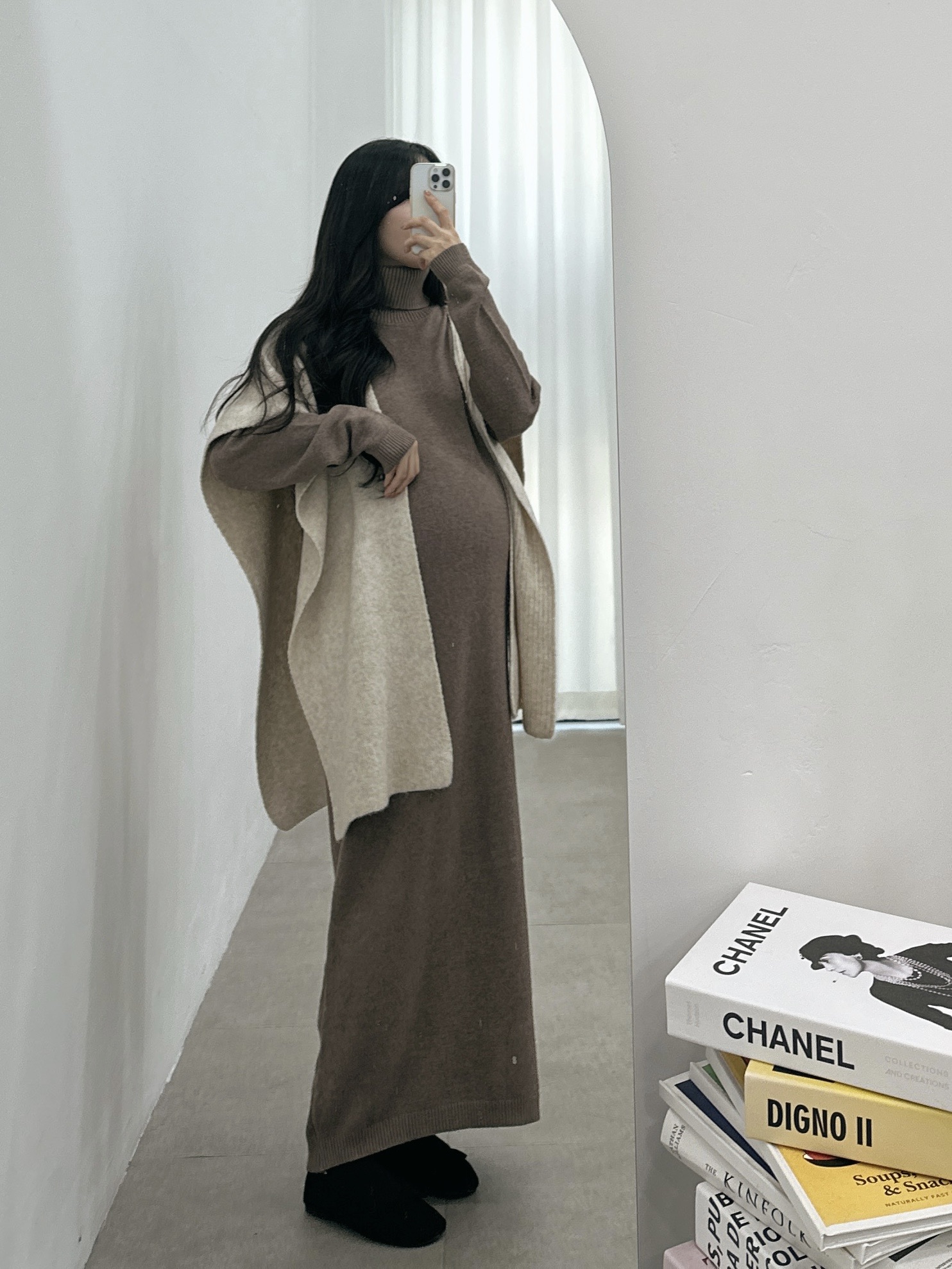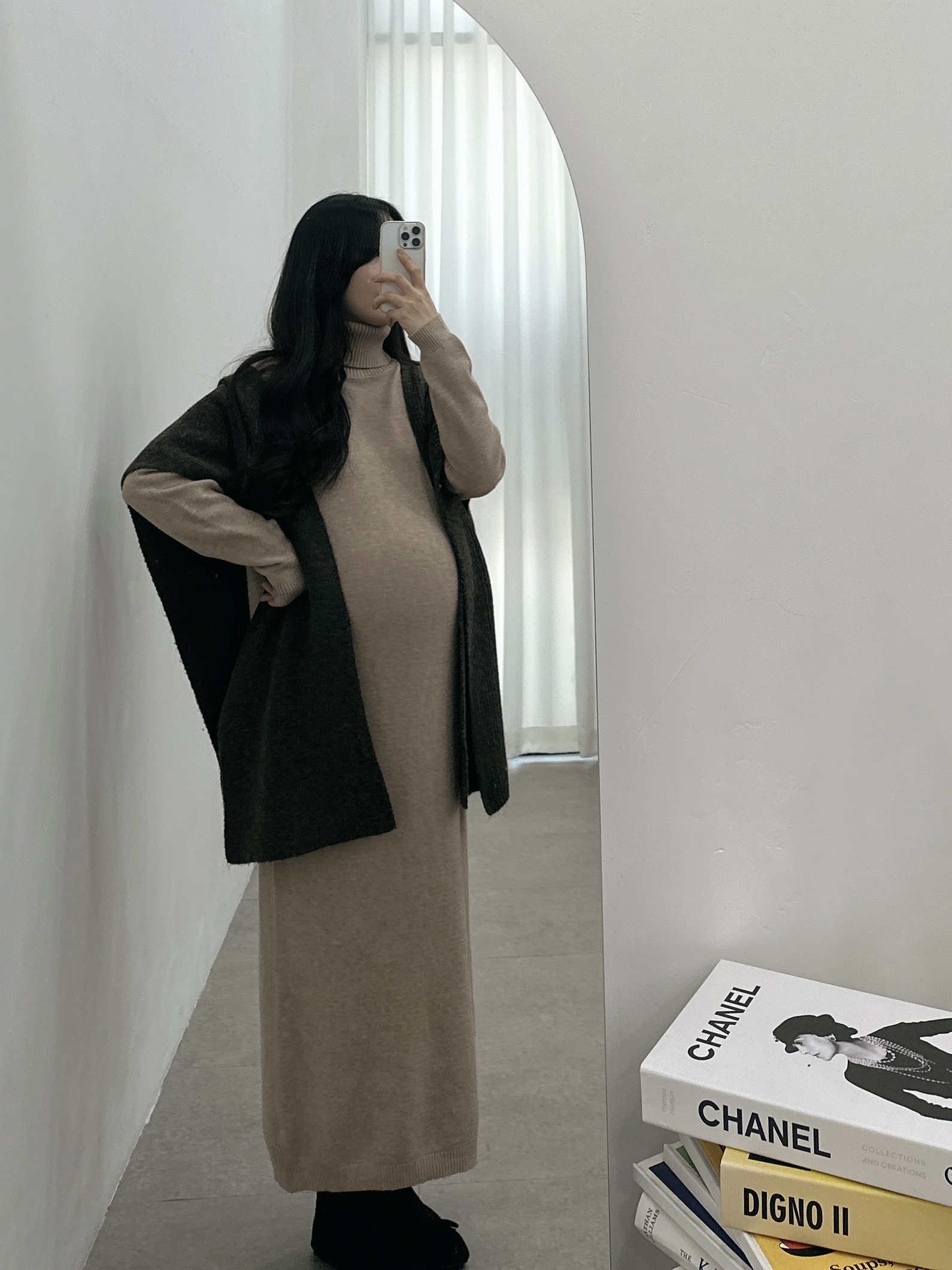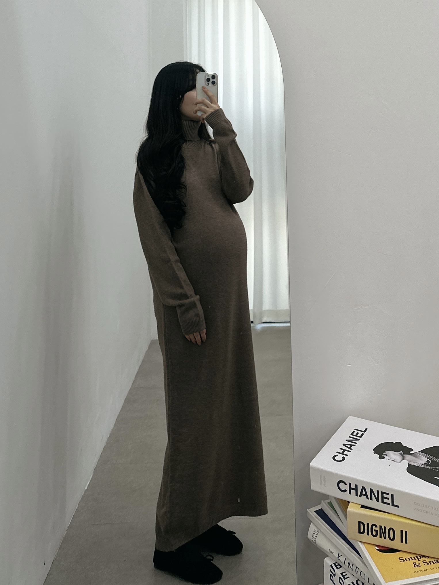 부드러우면서 많이 두껍지 않아서 데일리로 즐겨입기 좋은 폴라원피스입니다. 폴라넥이 쪼으지 않아서 불편함없어요