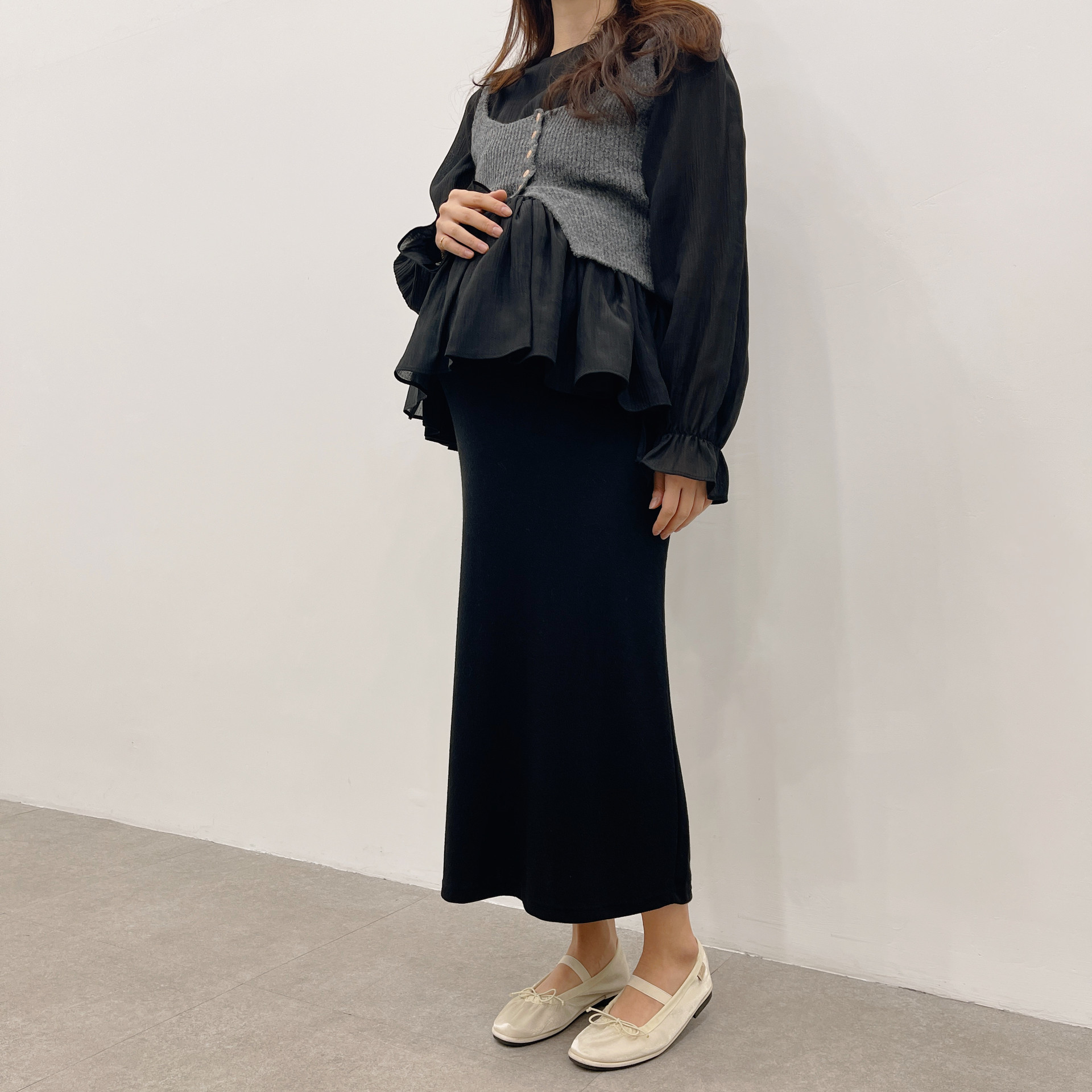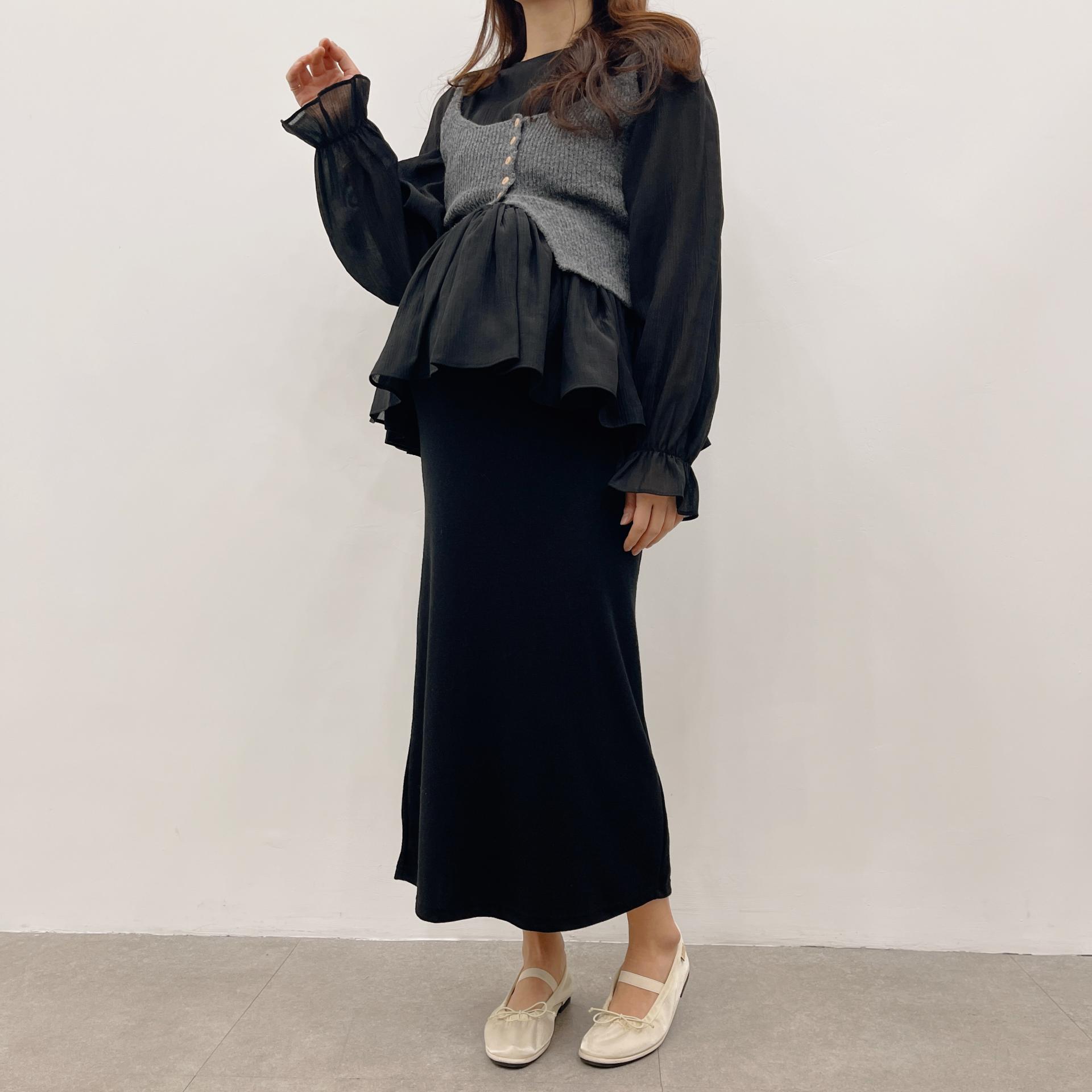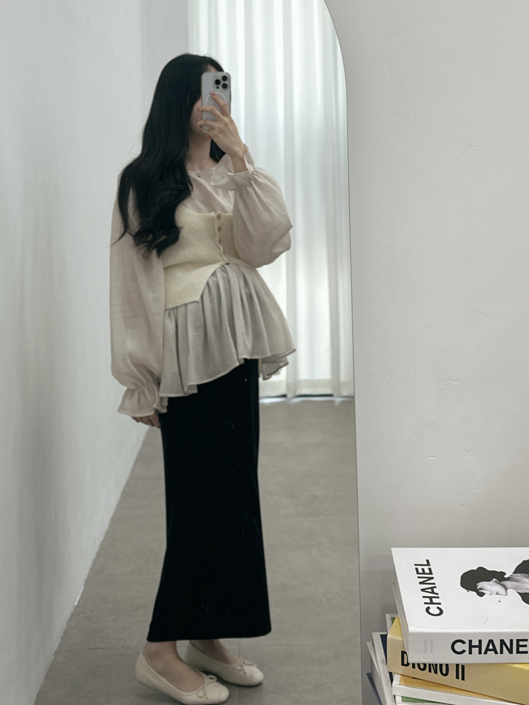 차콜 ( 벨르 핀턱 프릴 블라우스 + 러브레이스스커트)