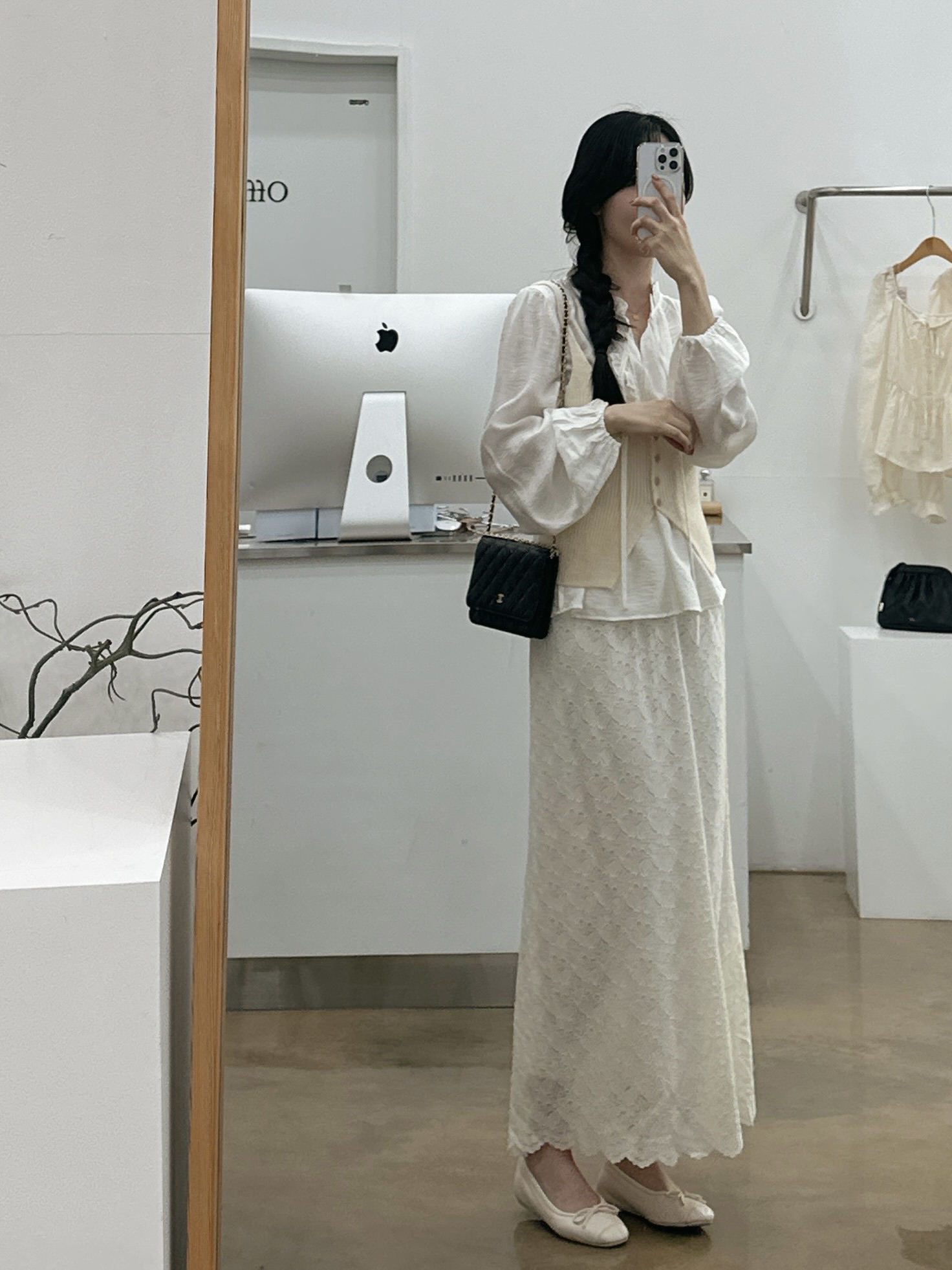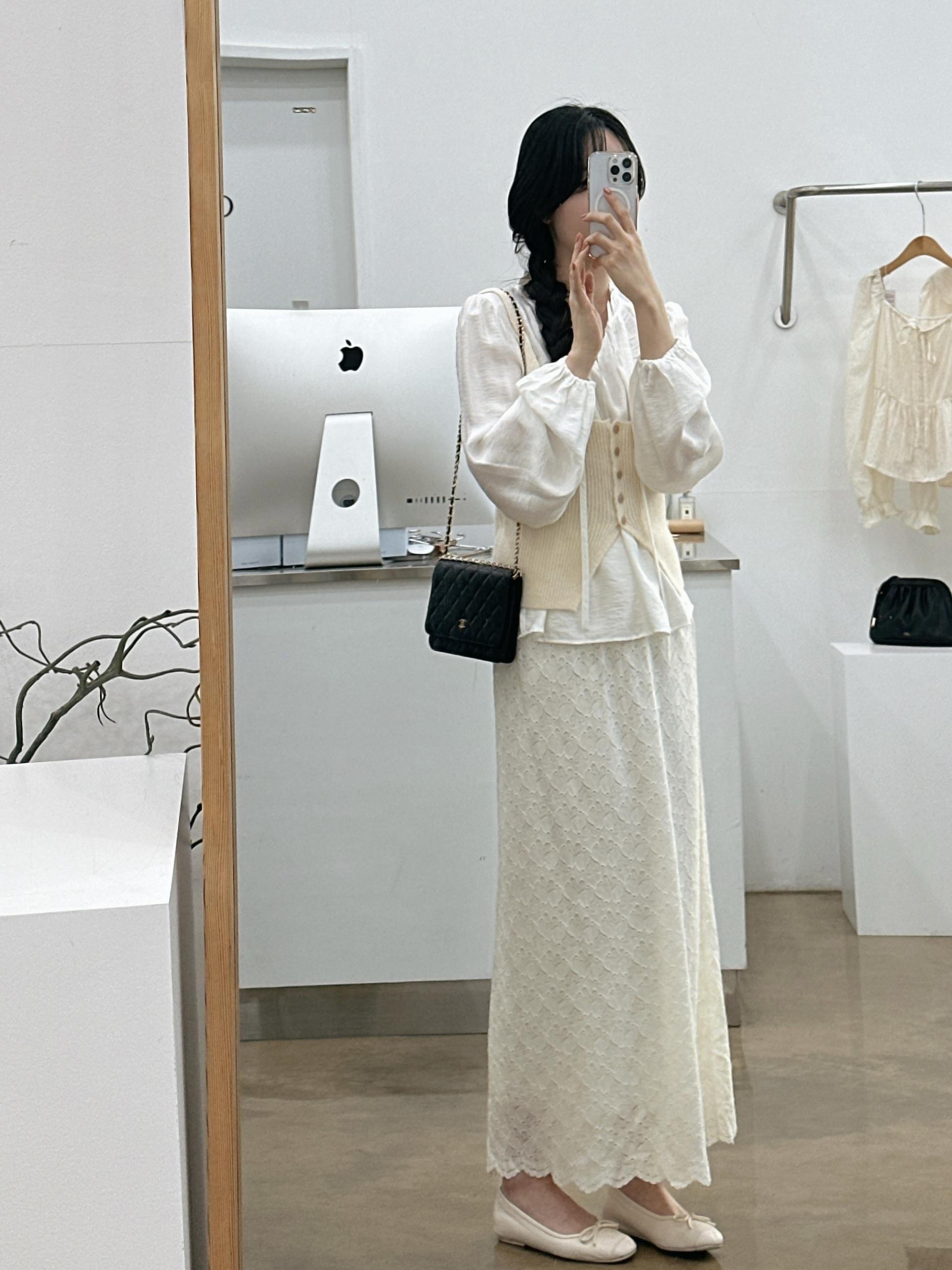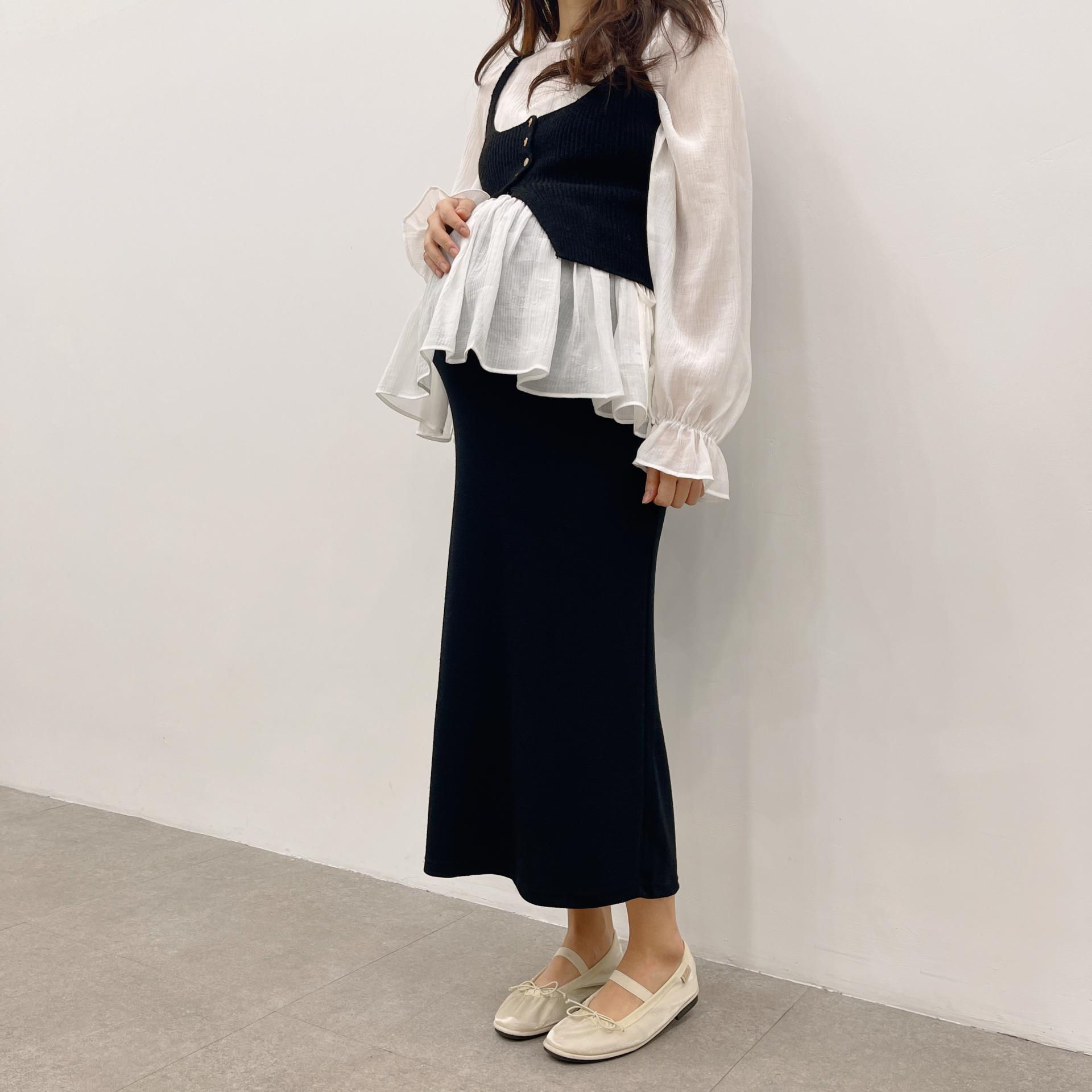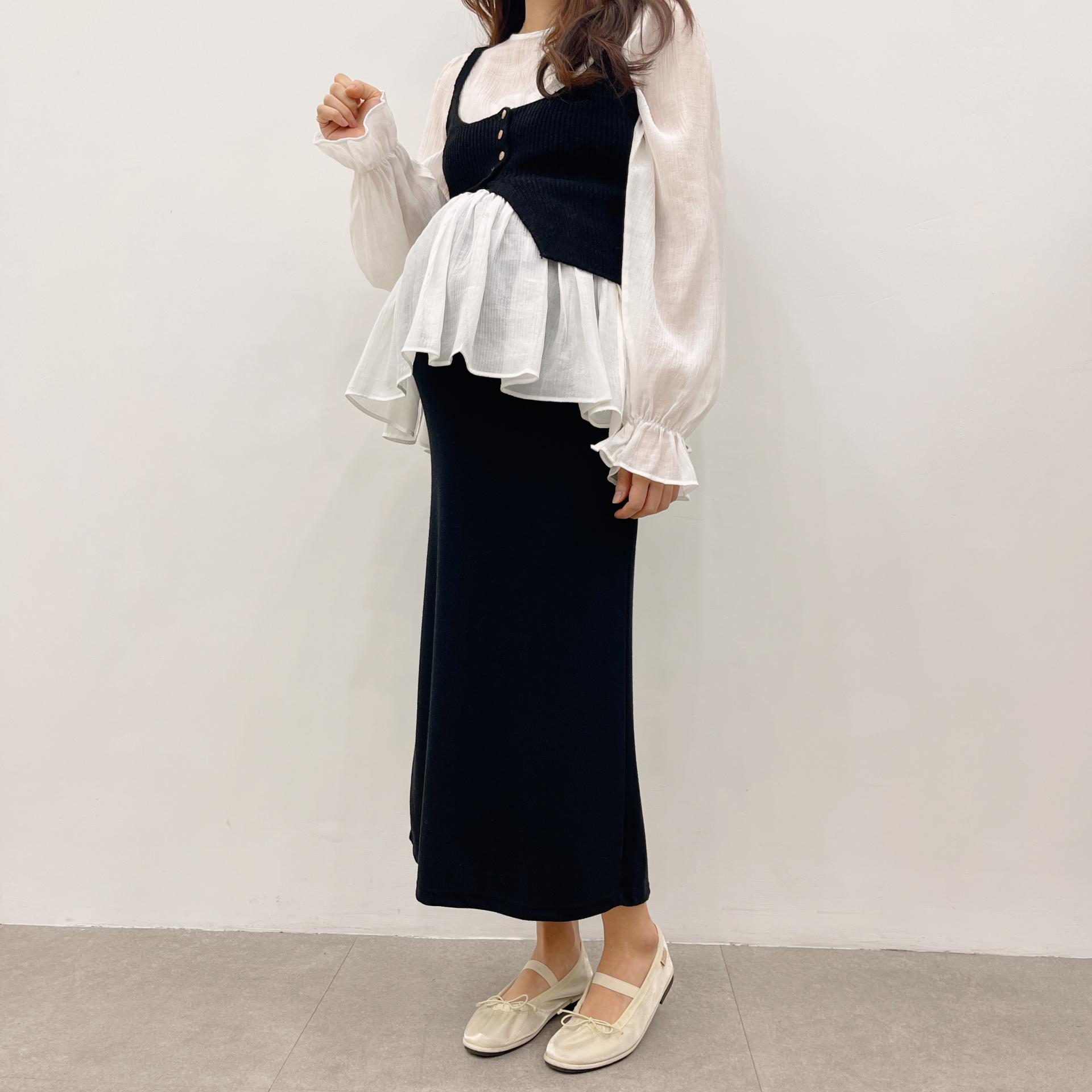 차콜 ( 벨르 핀턱 프릴 블라우스 + 러브레이스스커트)