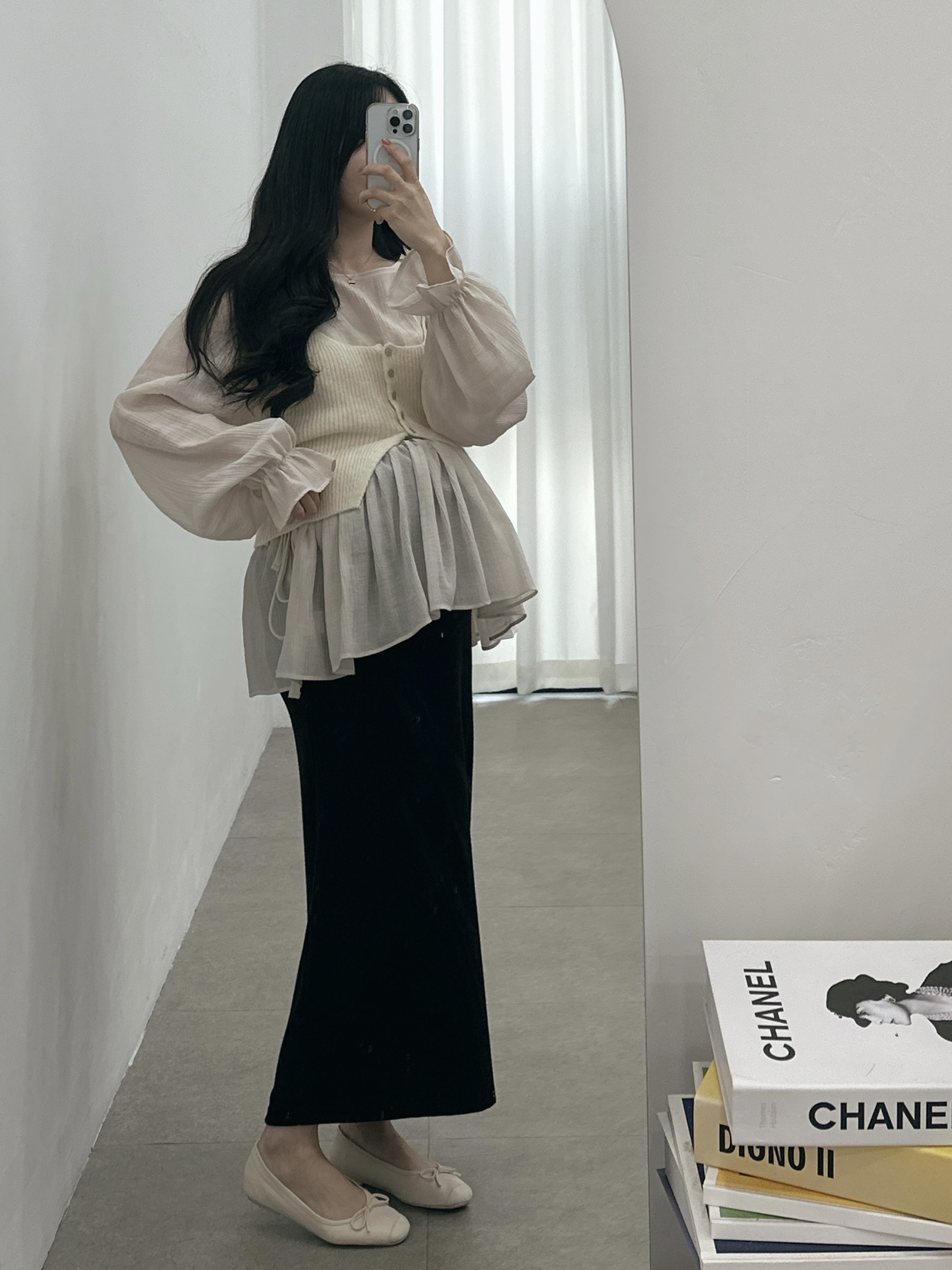 블랙 ( 쉬폰레이어드블라우스 + 임부말랑스커트)
