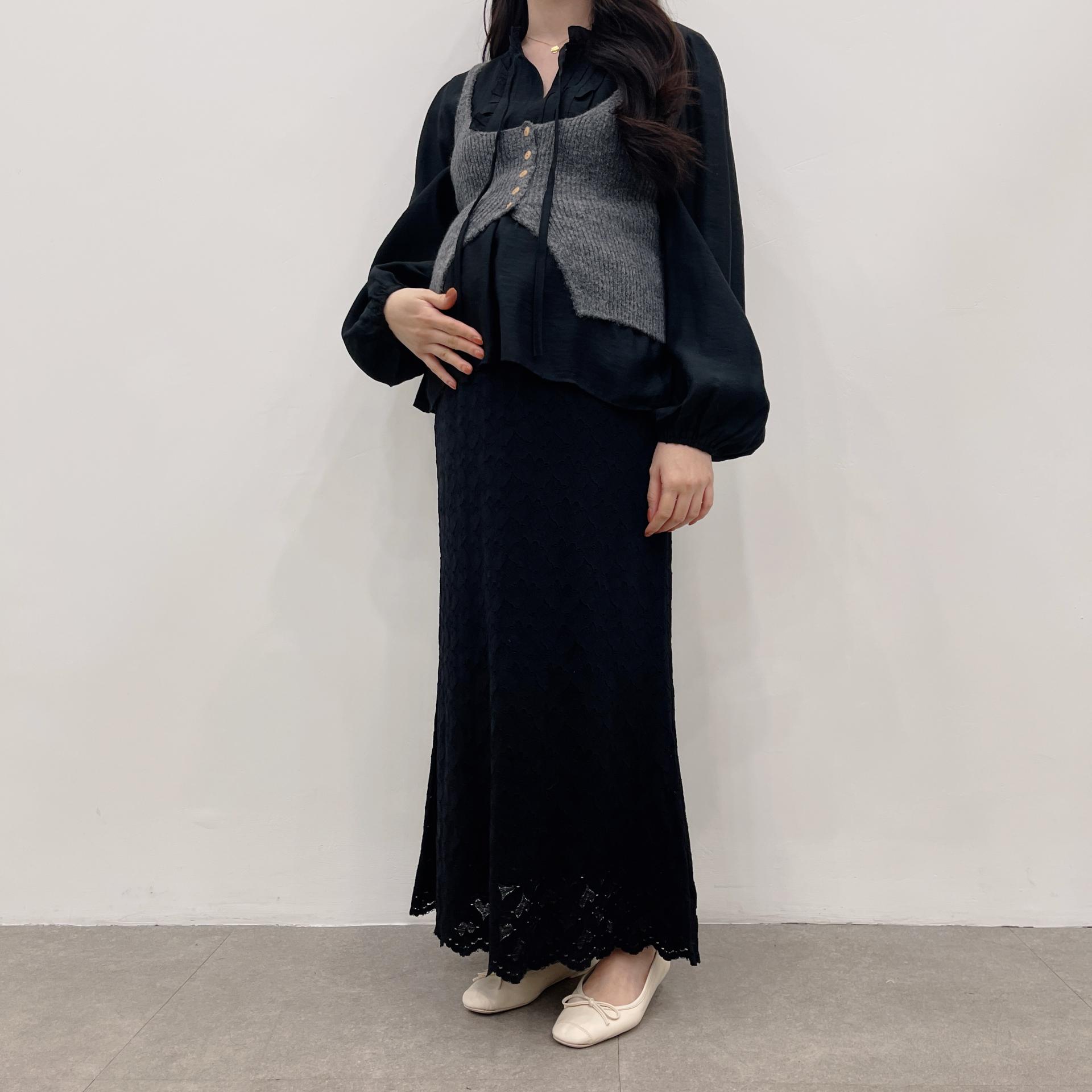 차콜 ( 쉬폰레이어드블라우스 + 임부말랑스커트)