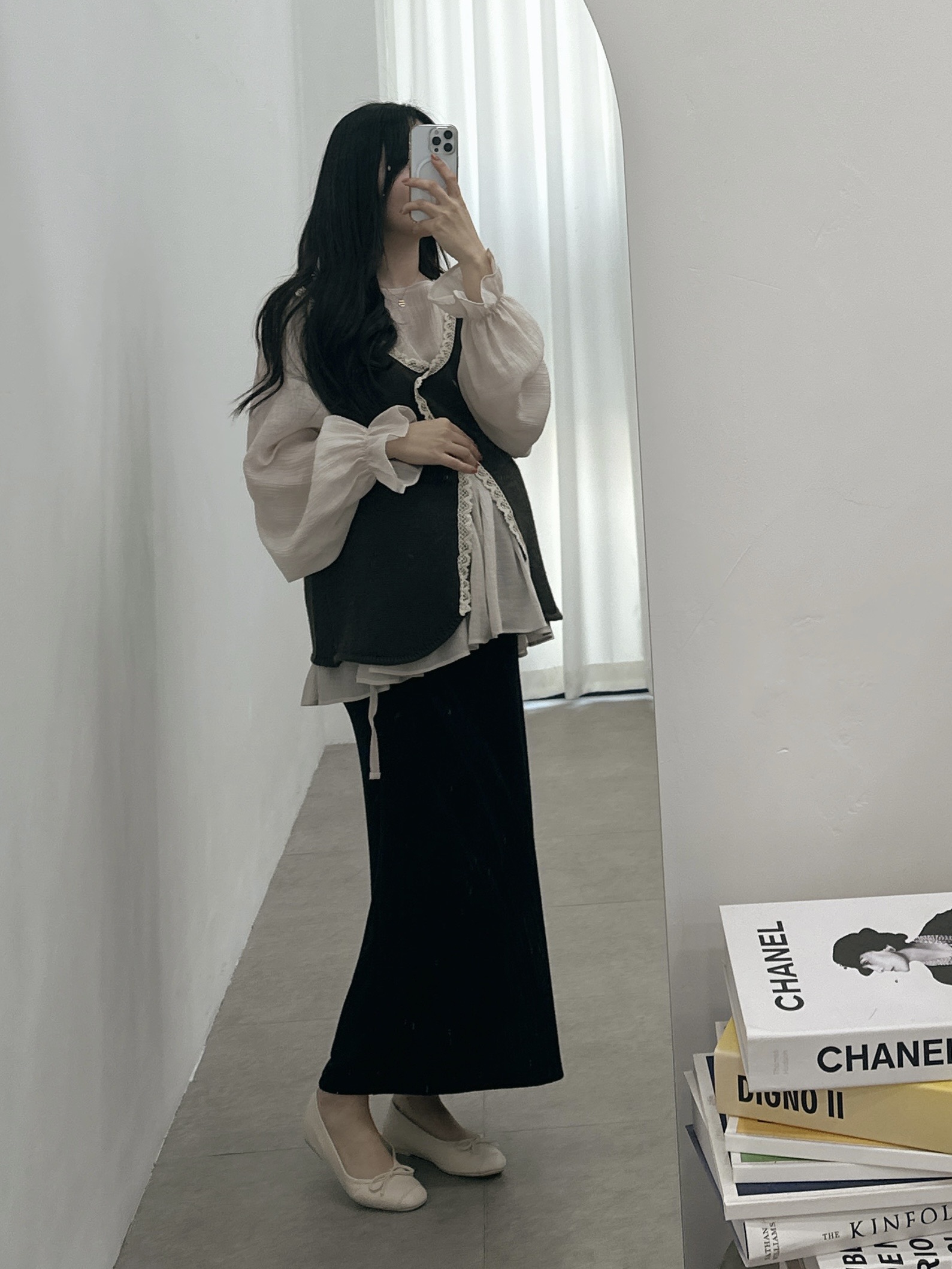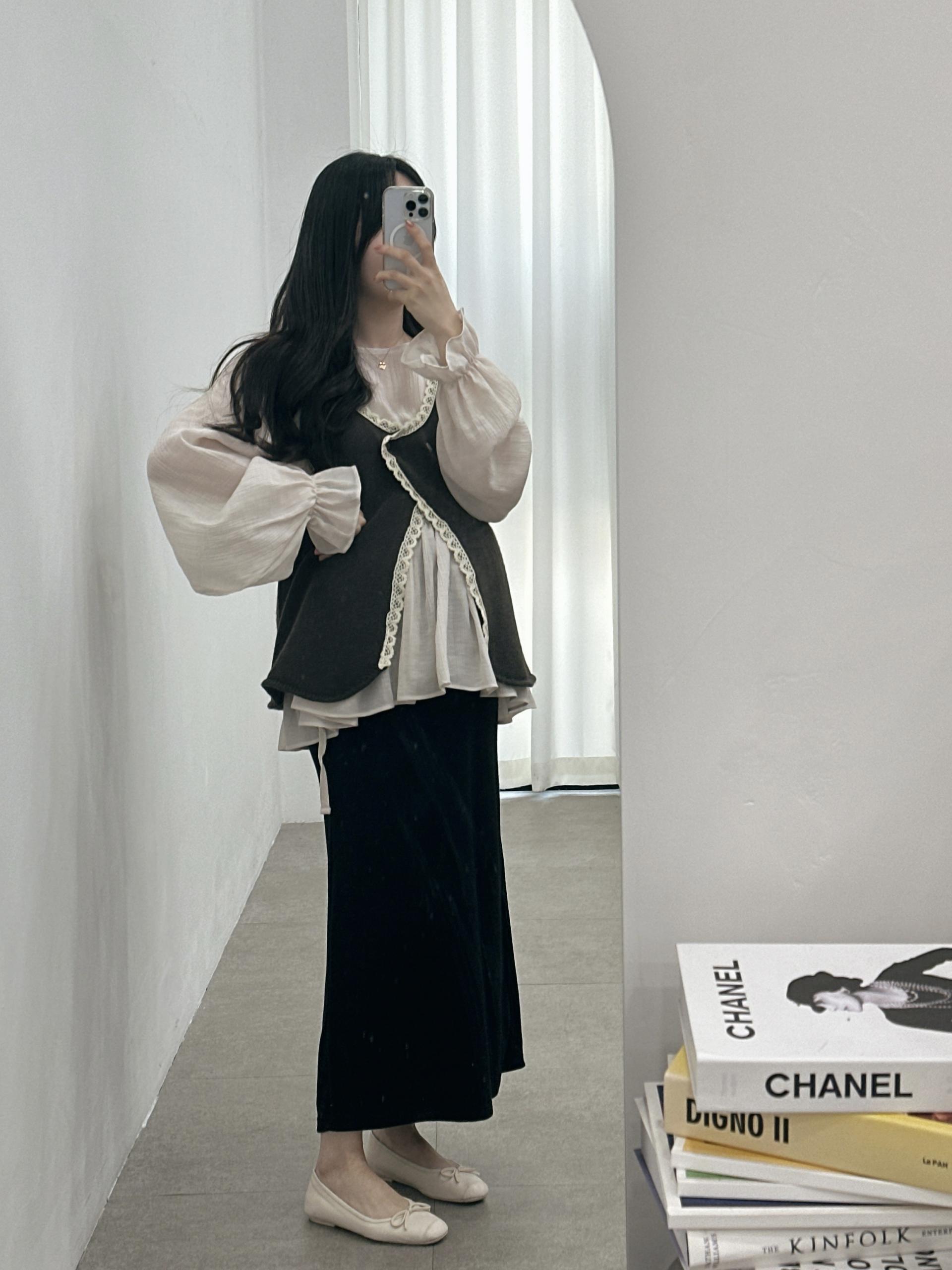 크림 ( 쉬폰레이어드블라우스 + 임부말랑스커트)