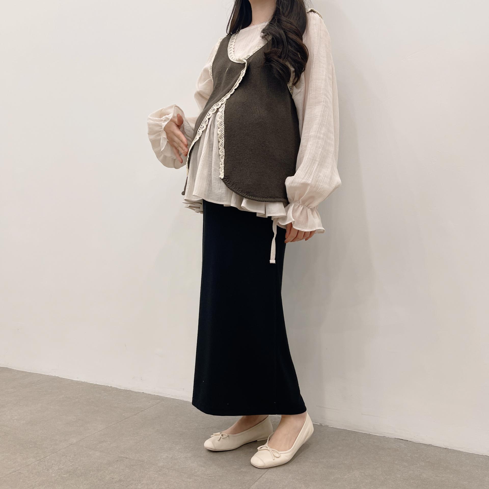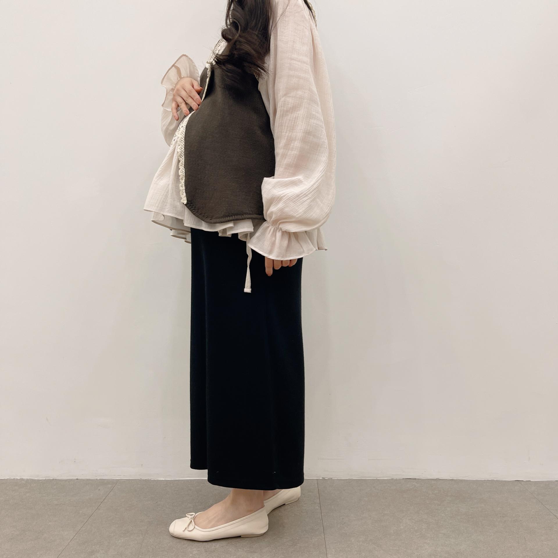 브라운 ( 쉬폰레이어드블라우스 + 임부말랑스커트)
