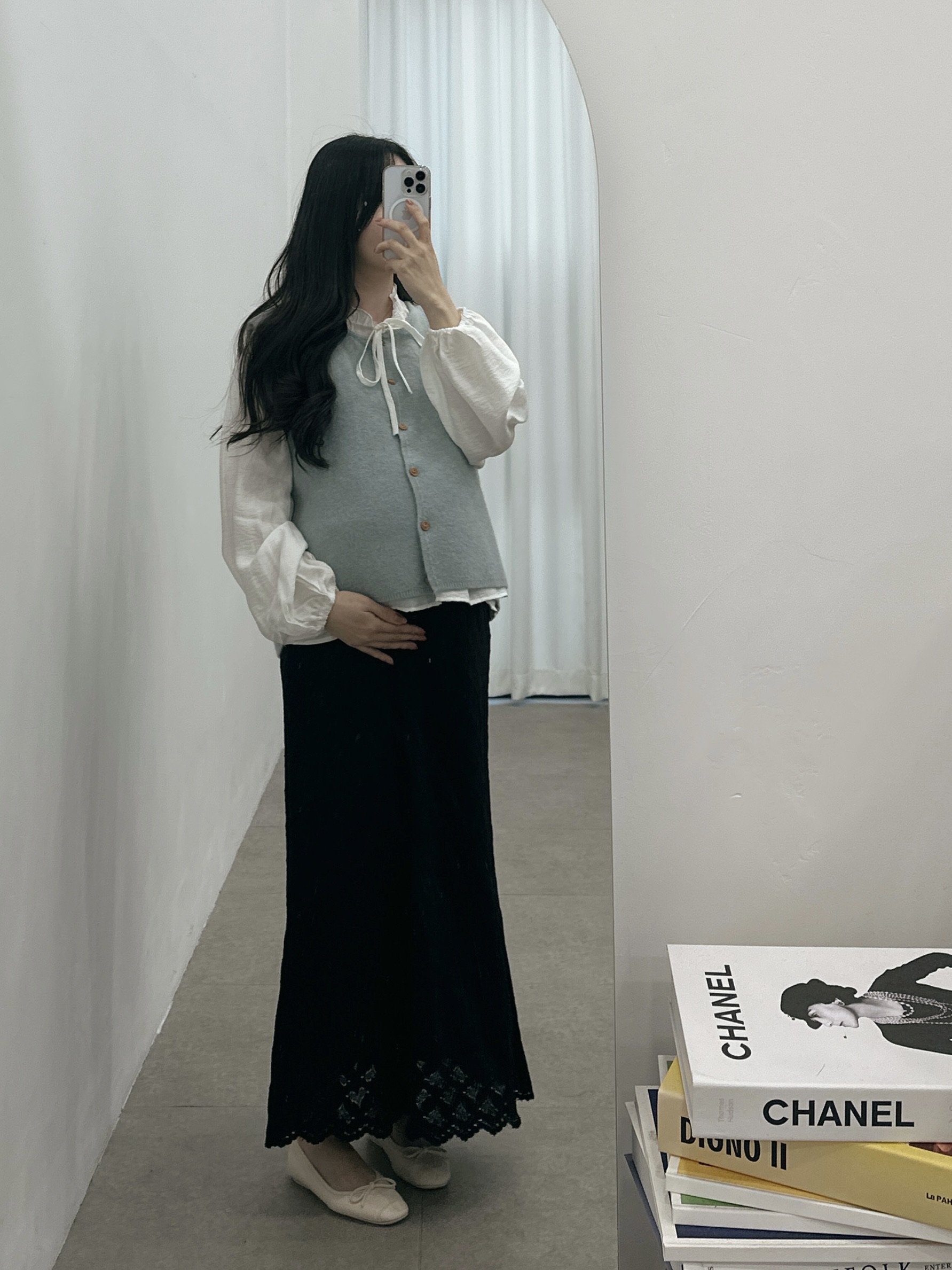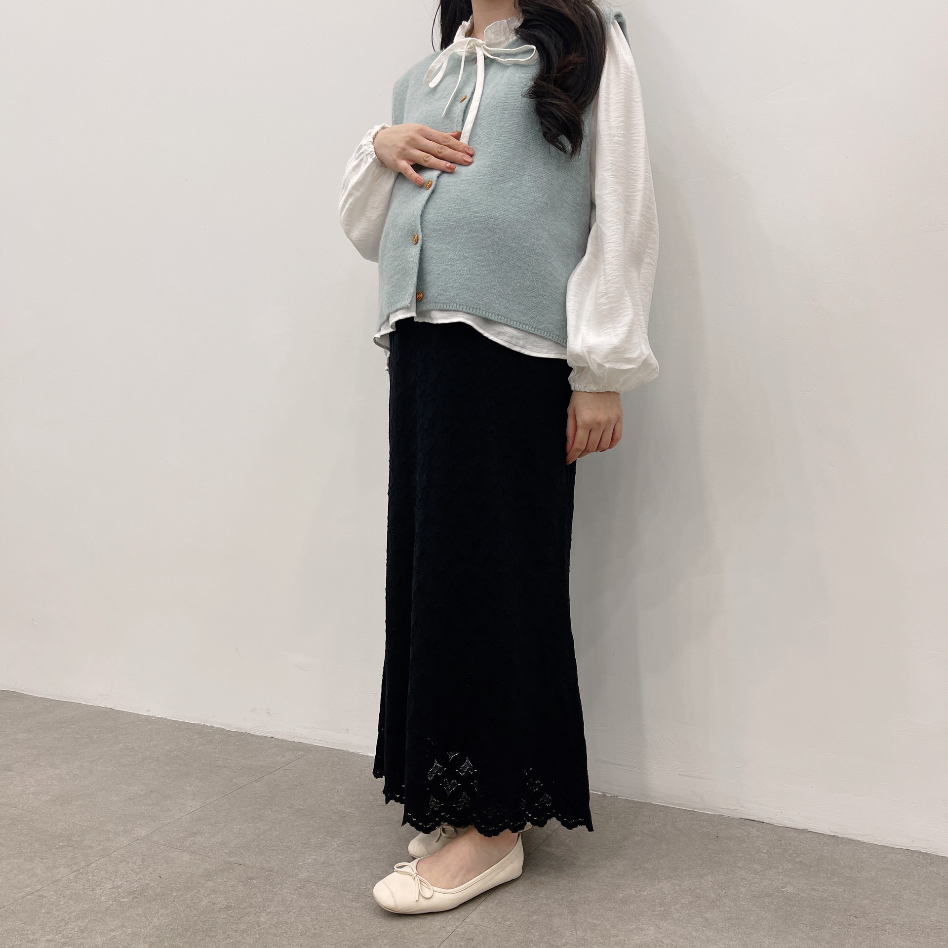 크림 ( 쉬폰레이어드블라우스 + 임부말랑스커트)