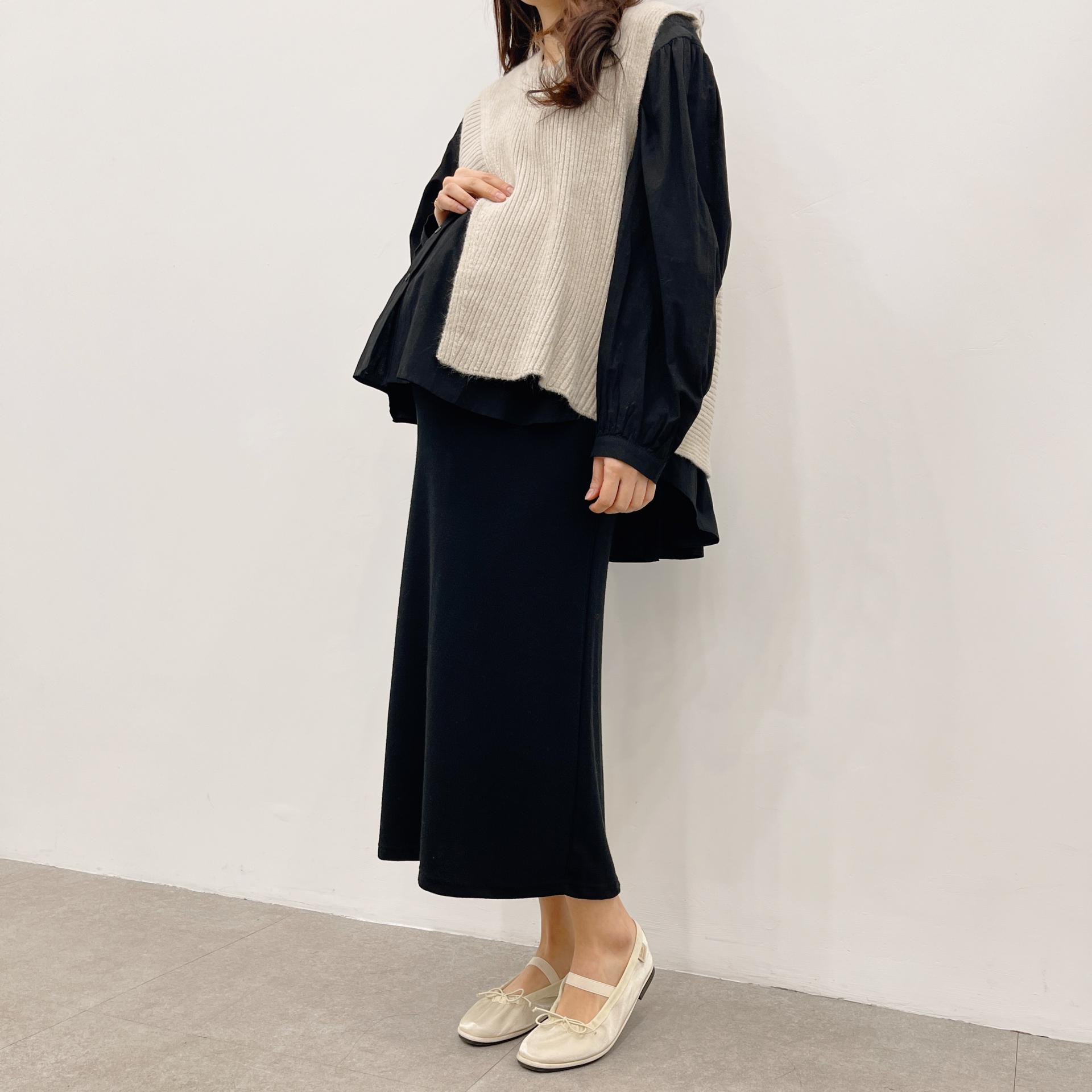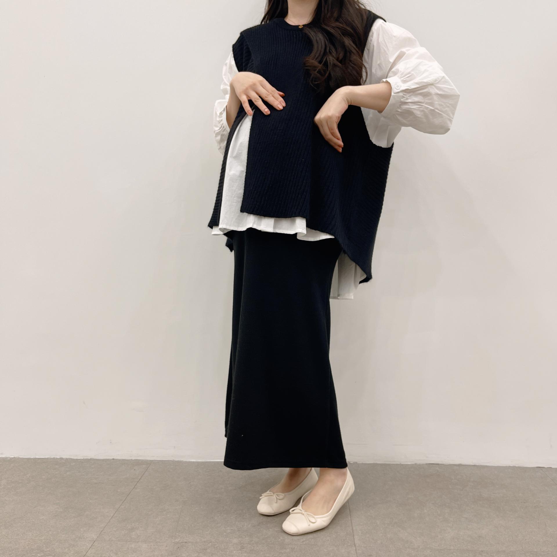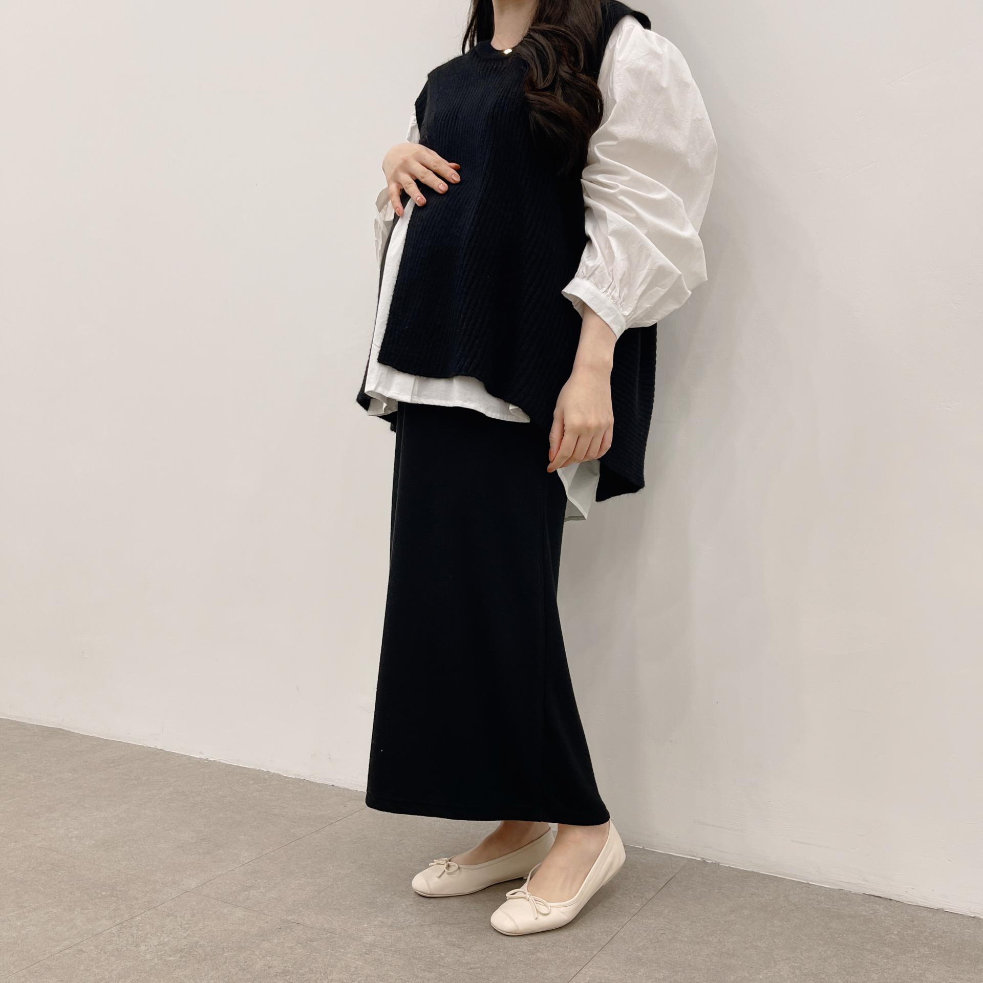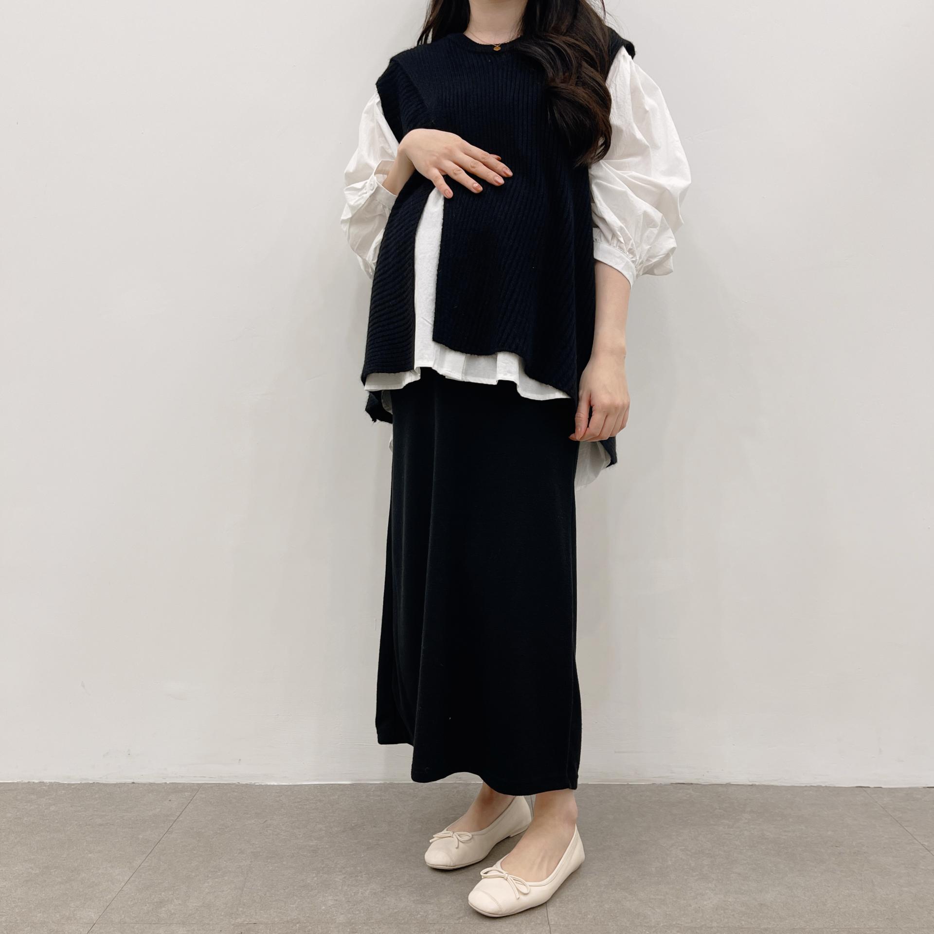 블랙+ 임부말랑스커트 + 사선트임니트조끼 (연베이지)