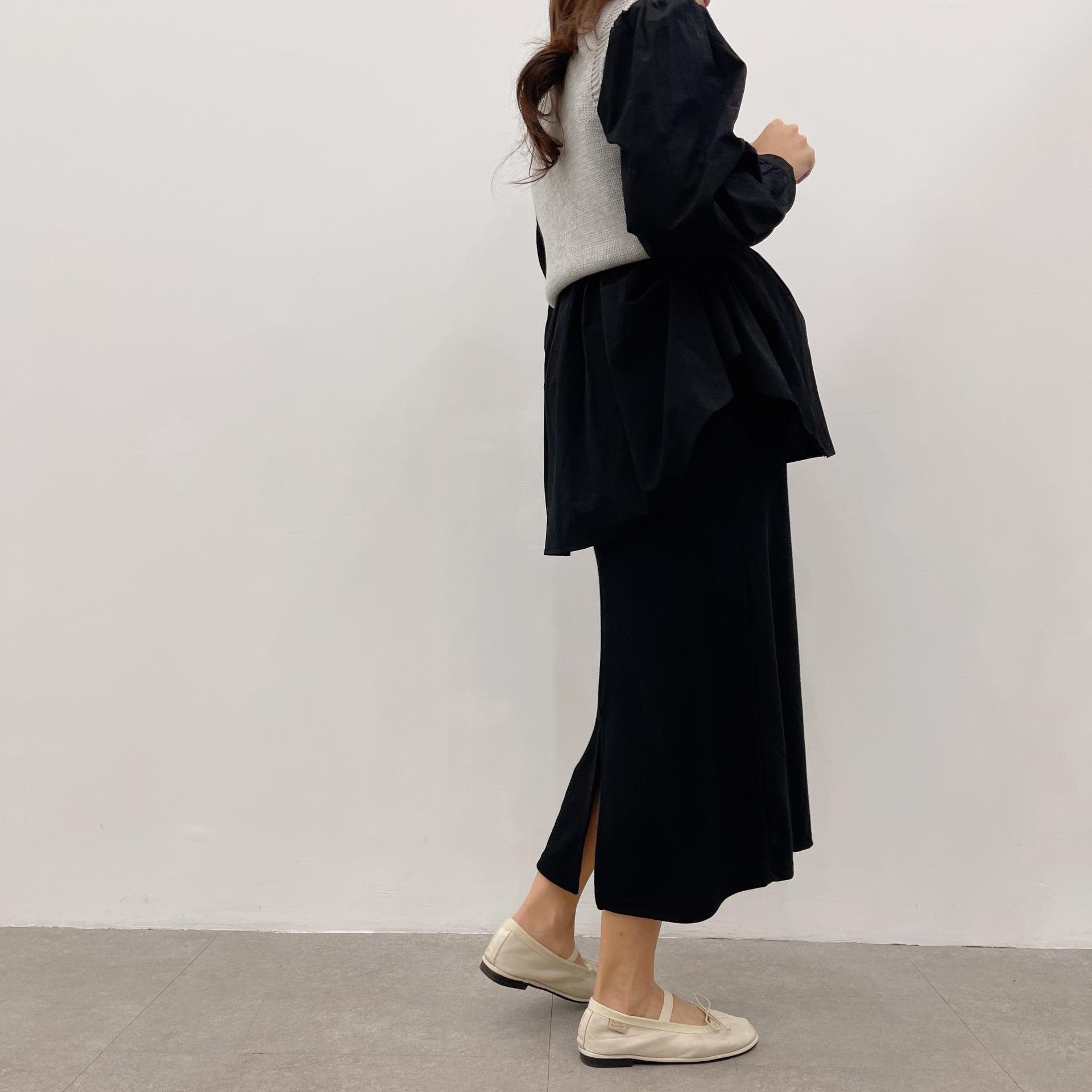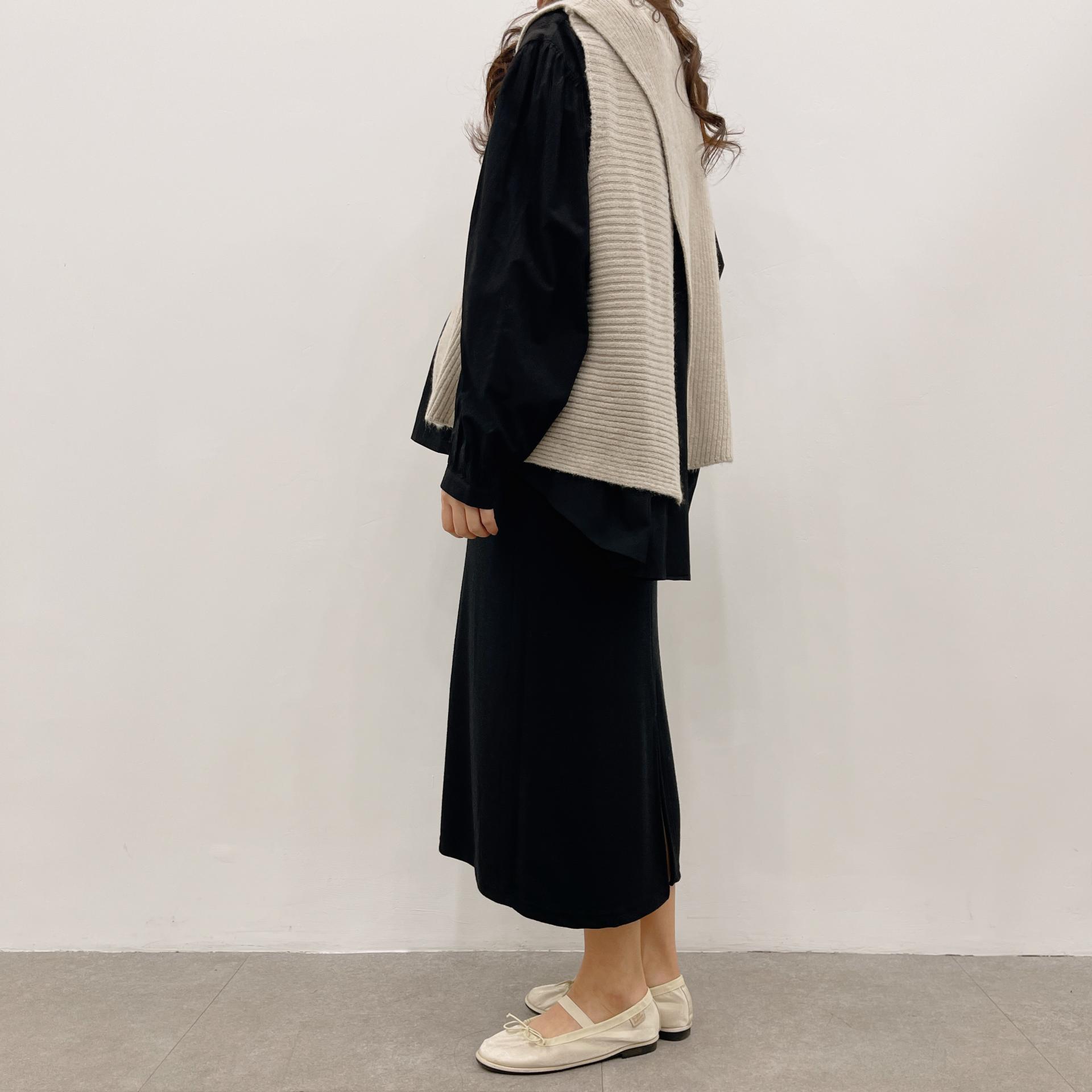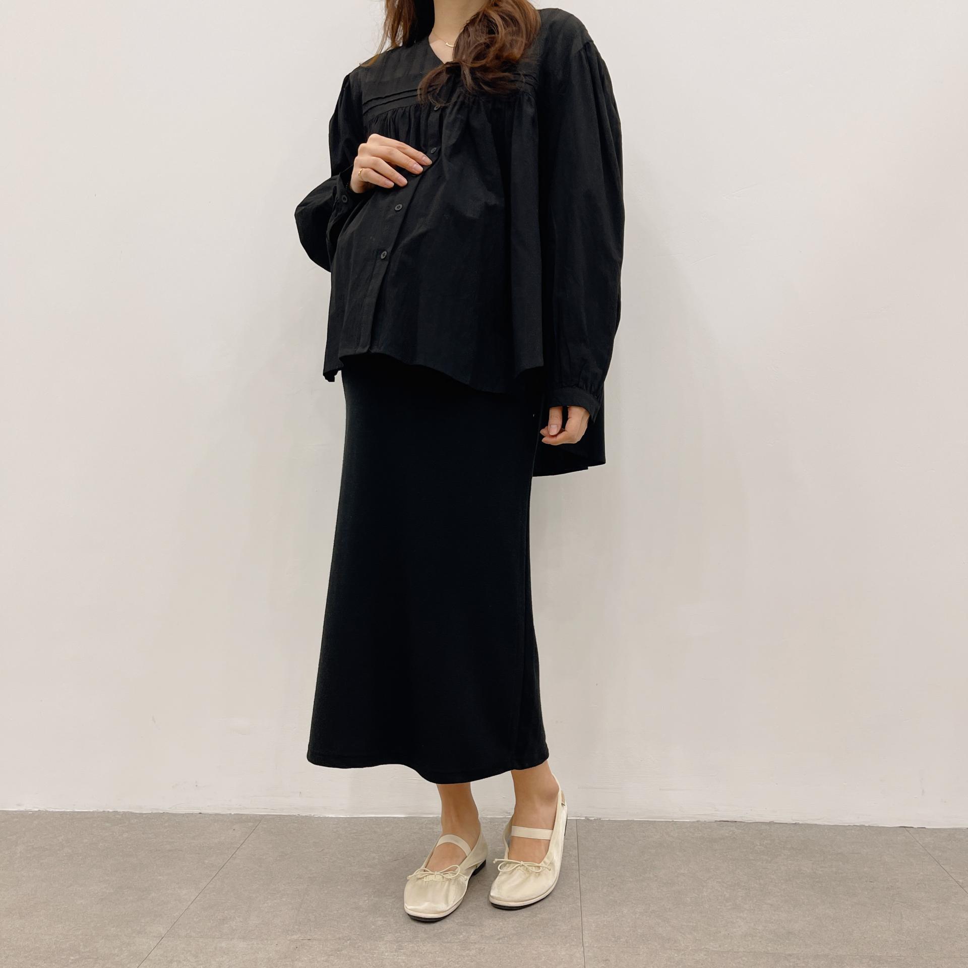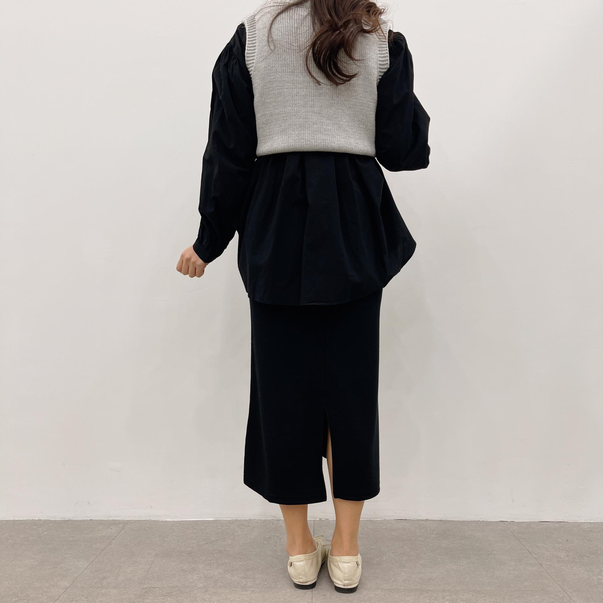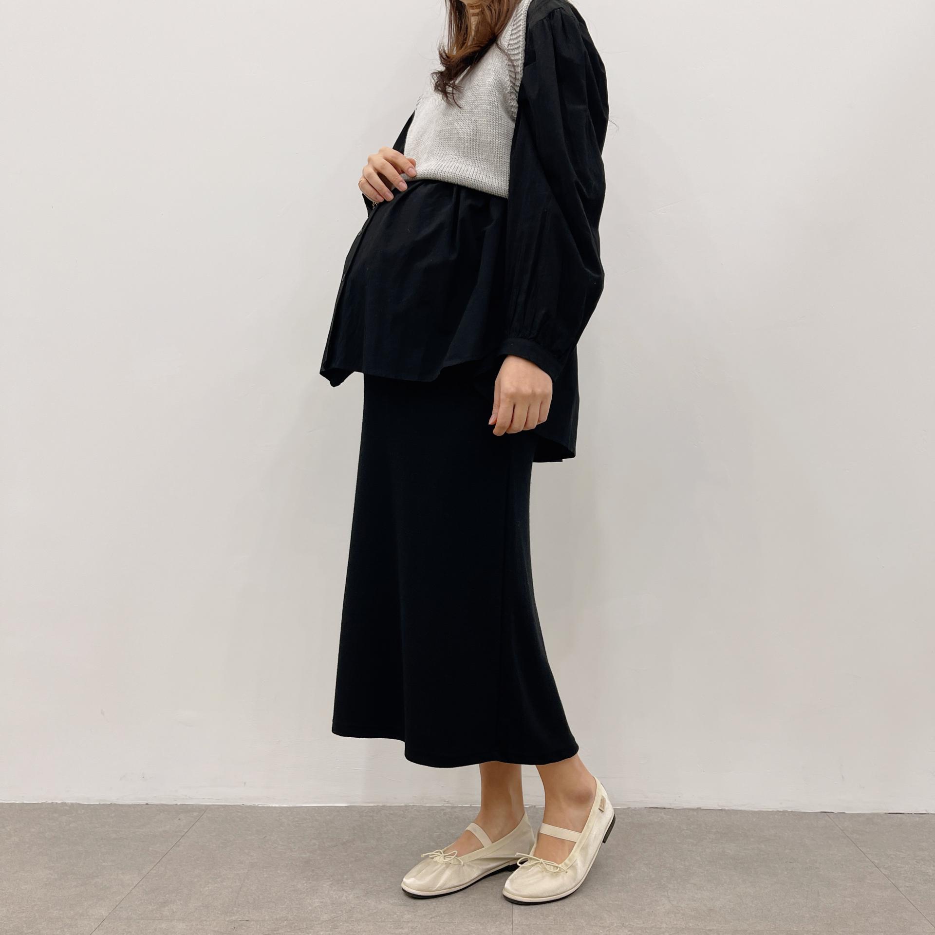 블랙+ 임부말랑스커트 + 사선트임니트조끼 (연베이지)