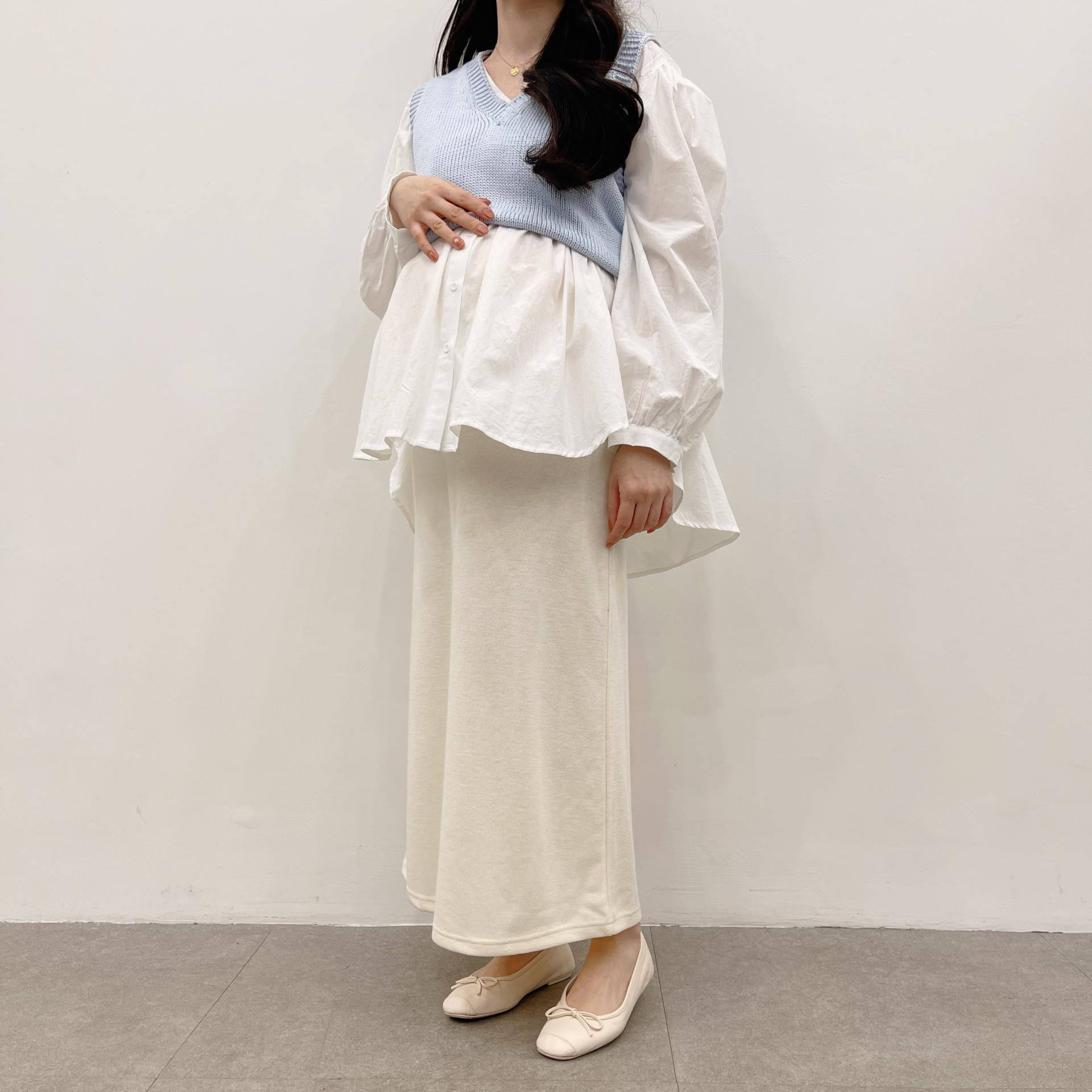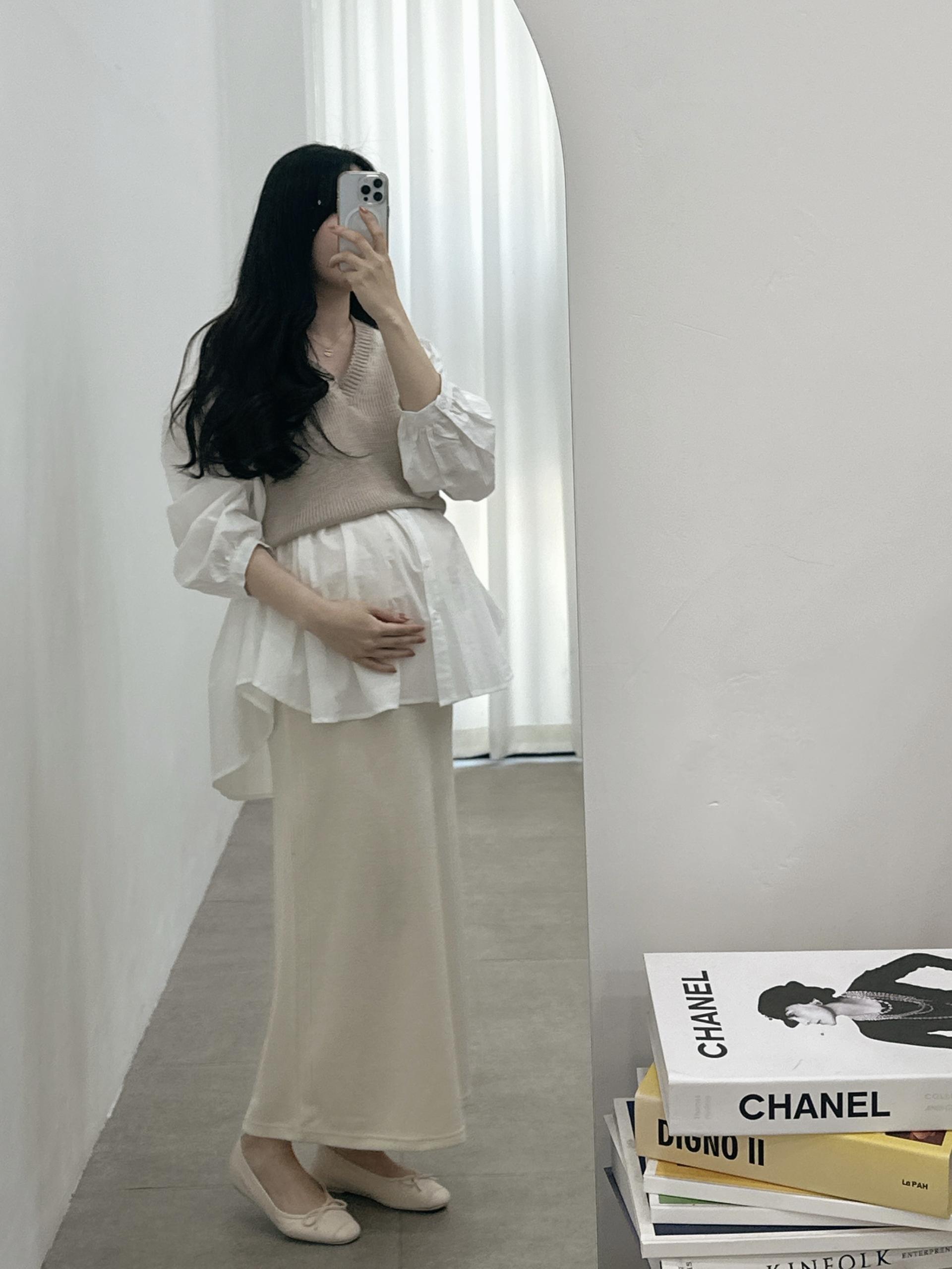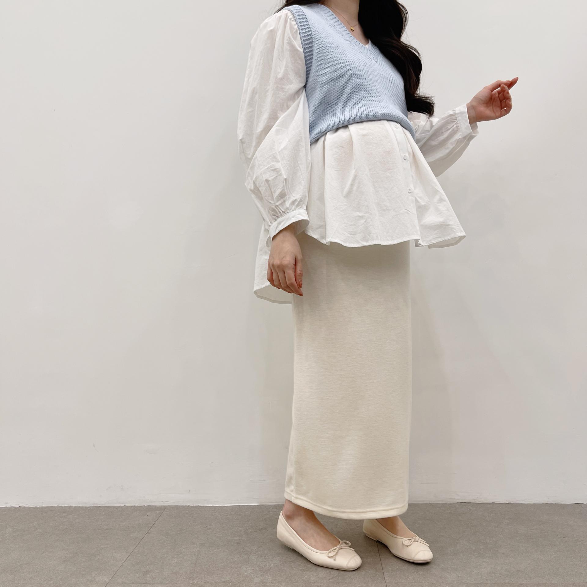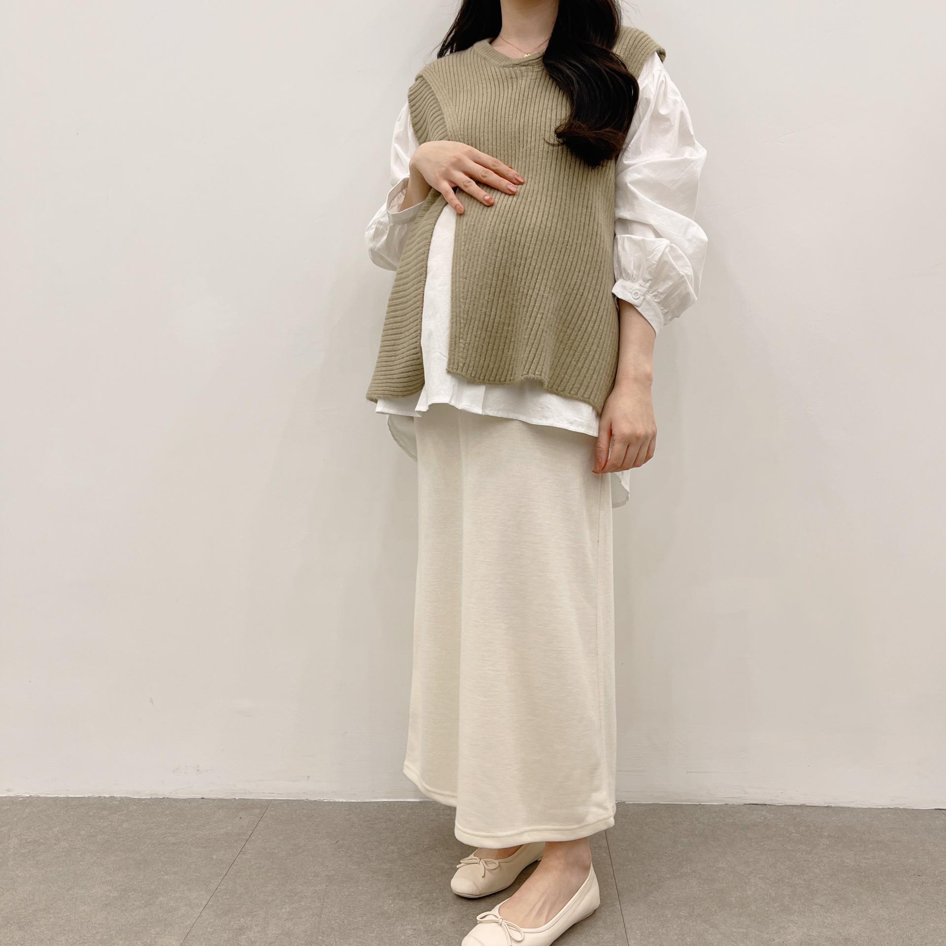화이트 + 임부말랑스커트 + 클래식V넥니트VEST(소라)