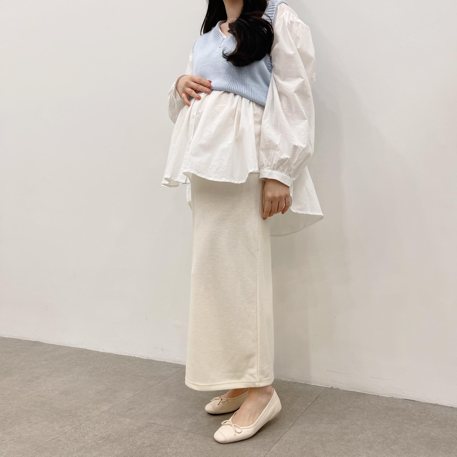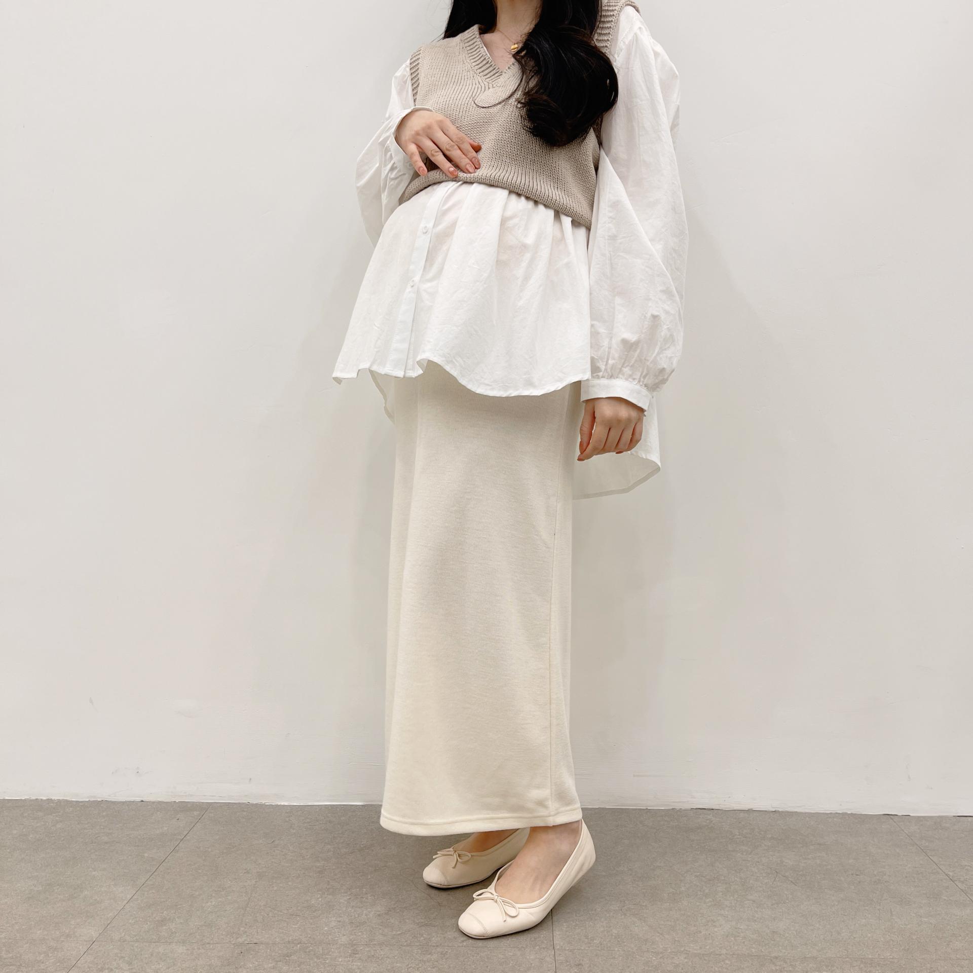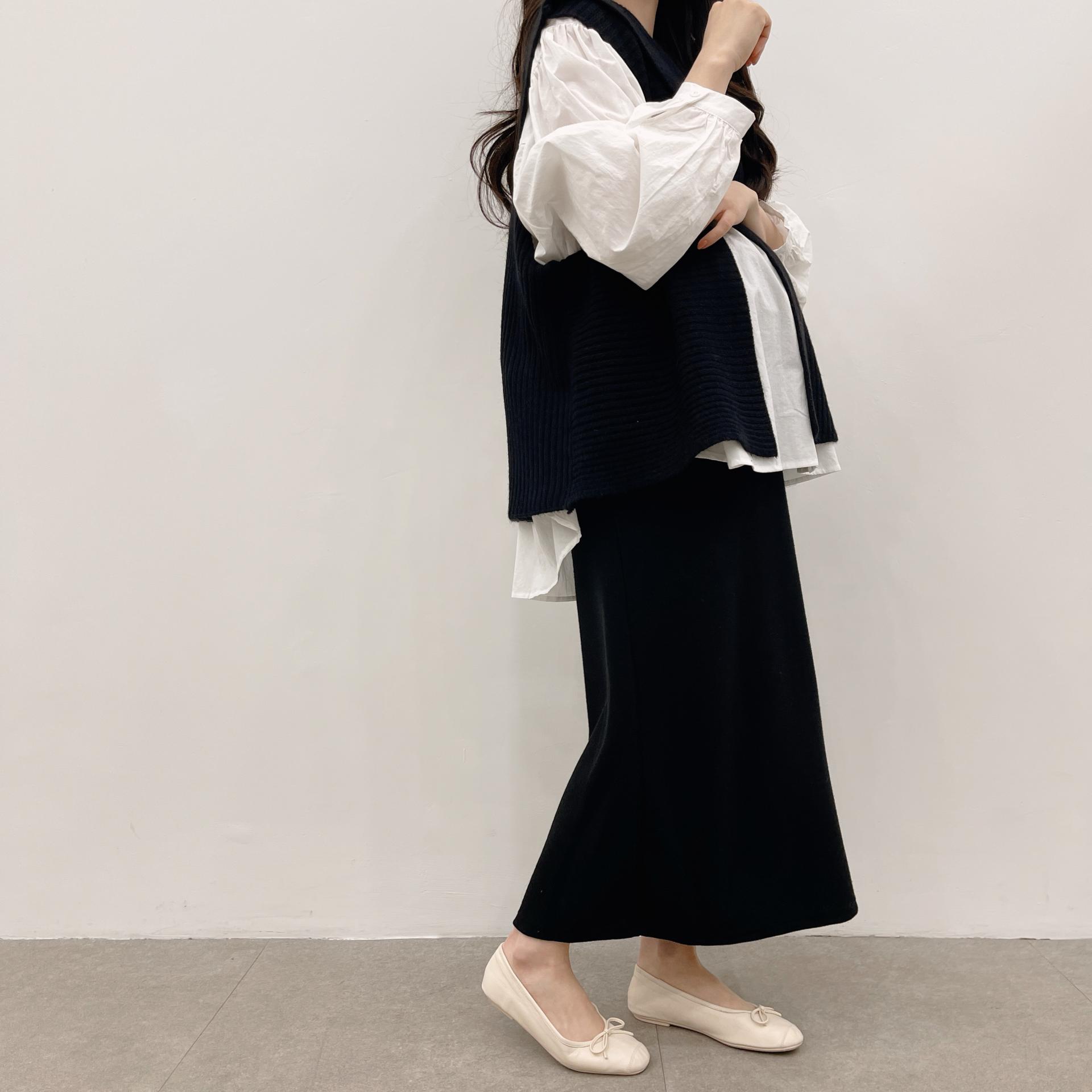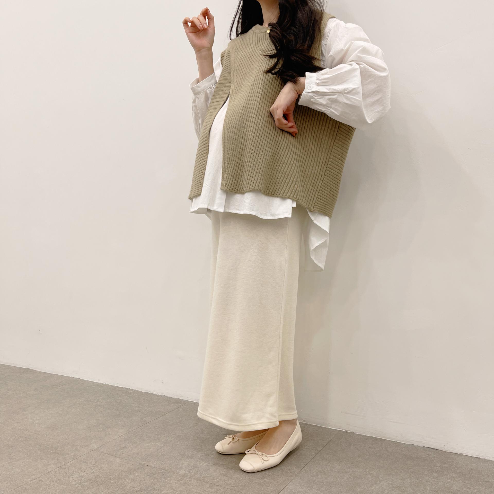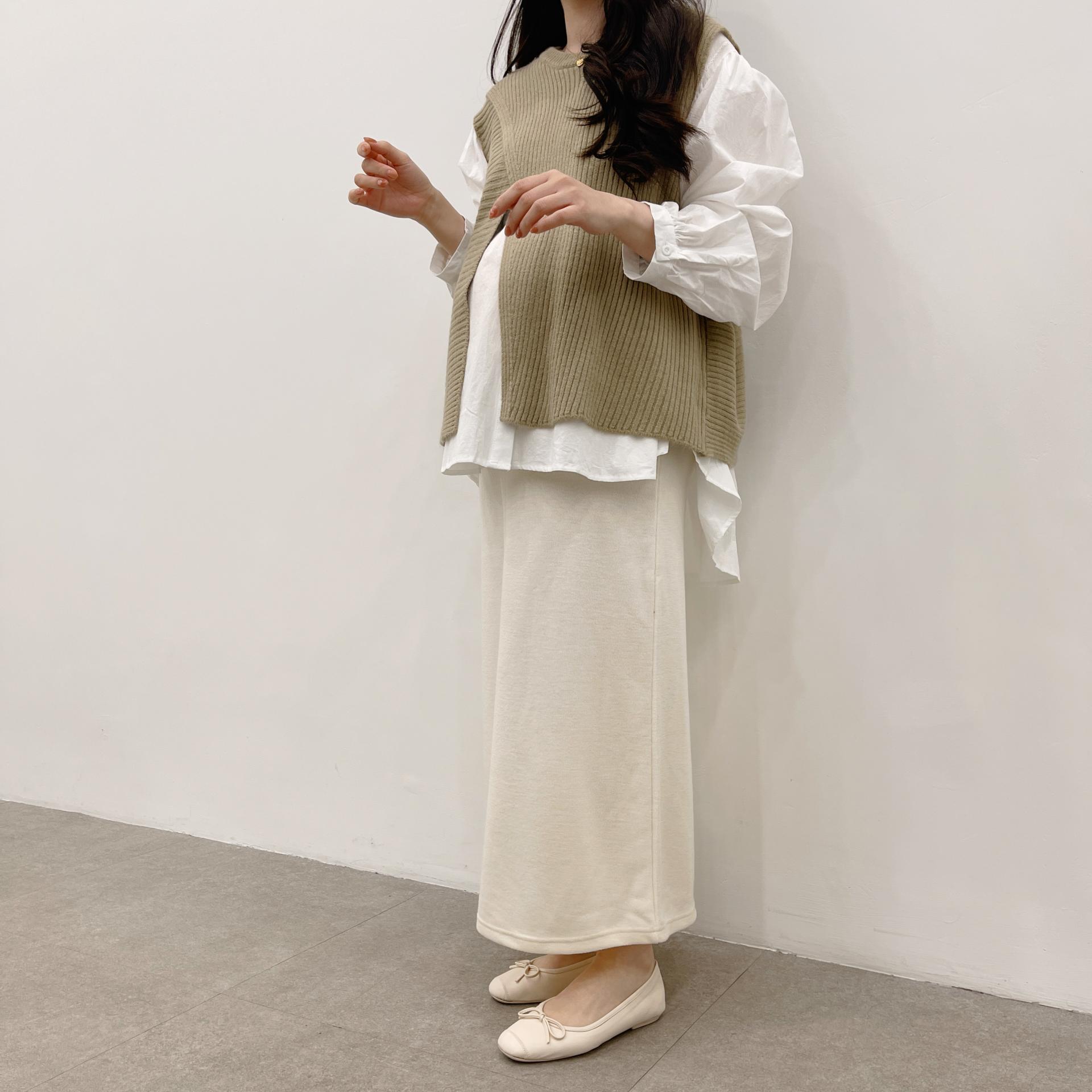 화이트 + 임부말랑스커트 + 클래식V넥니트VEST(소라)