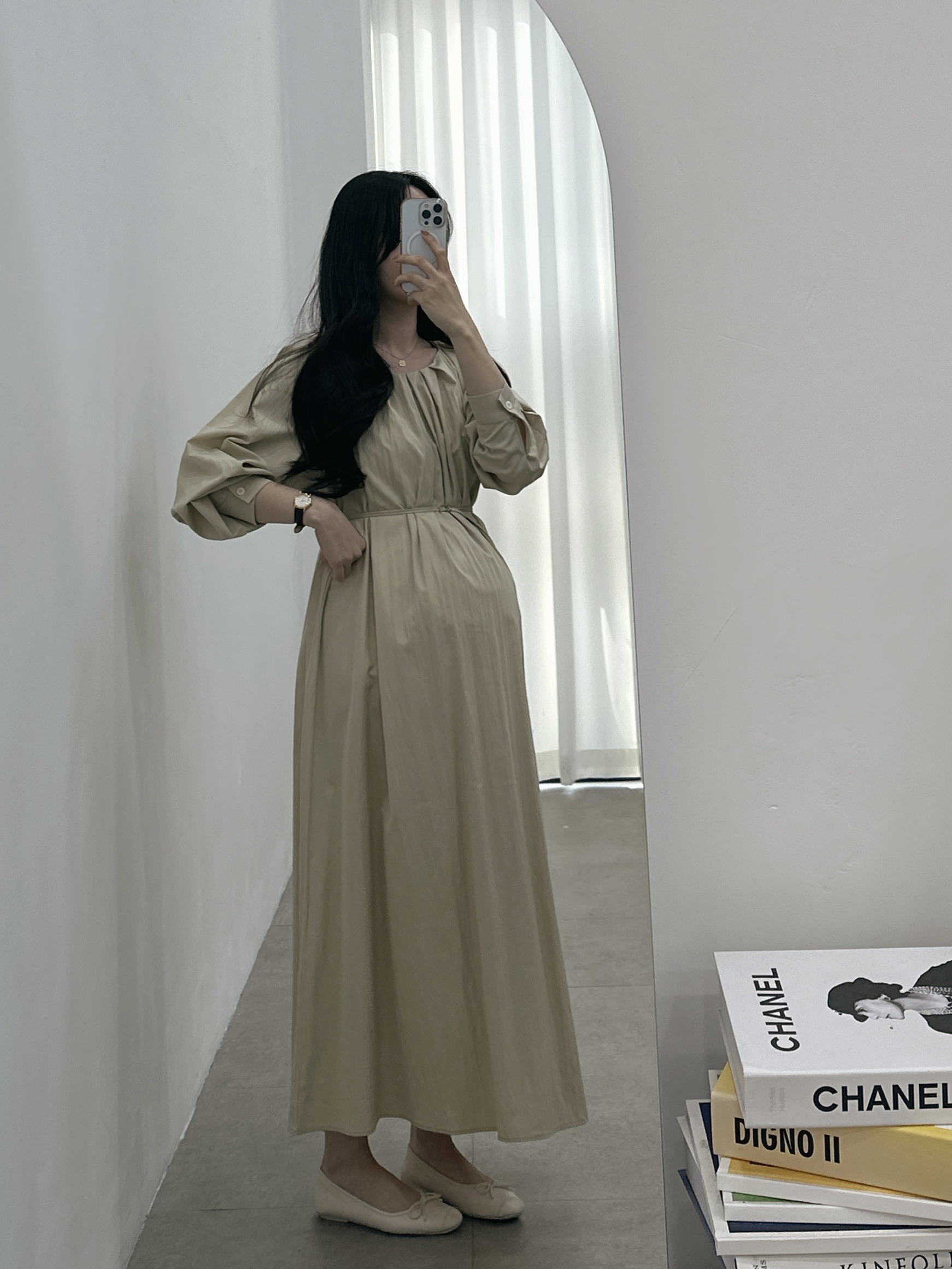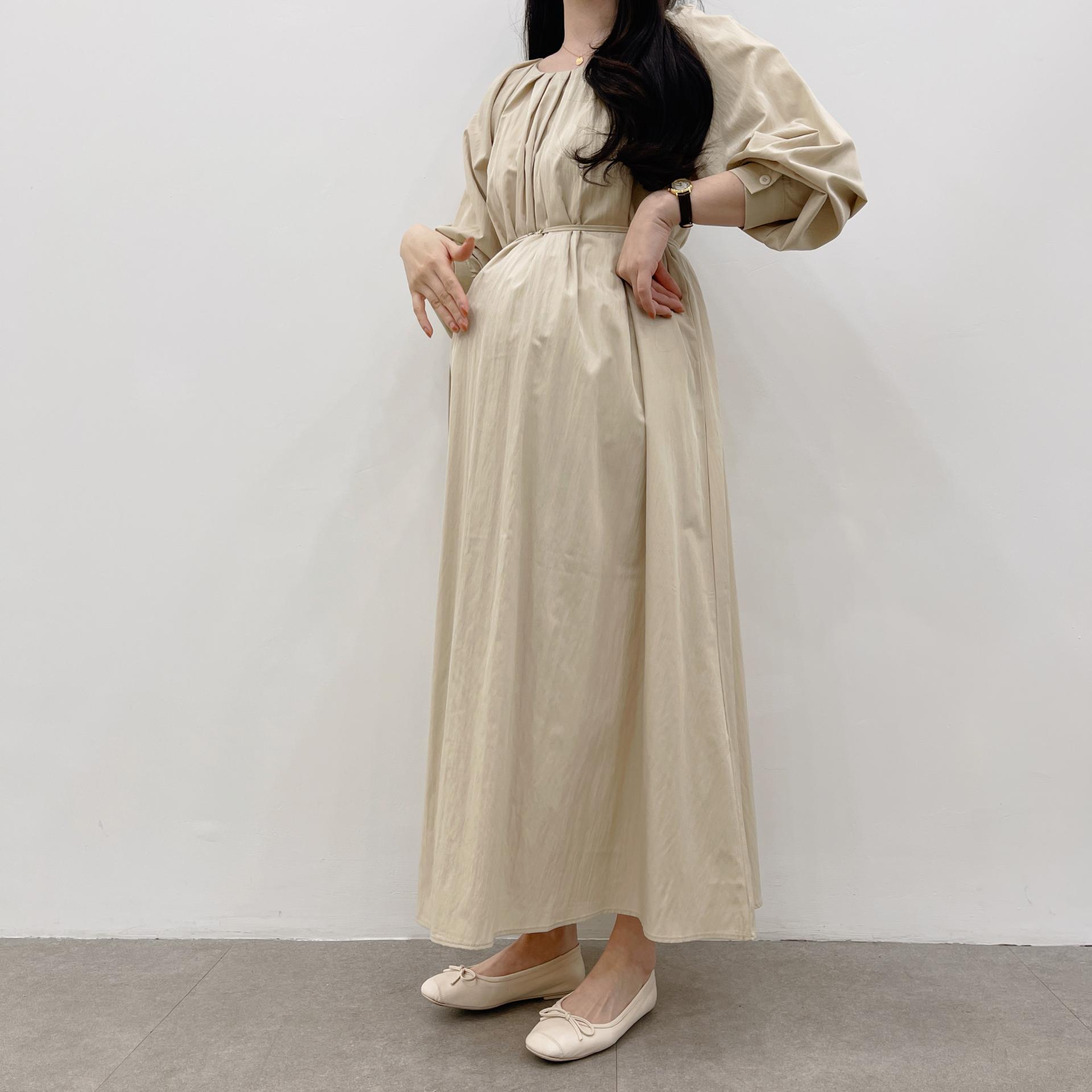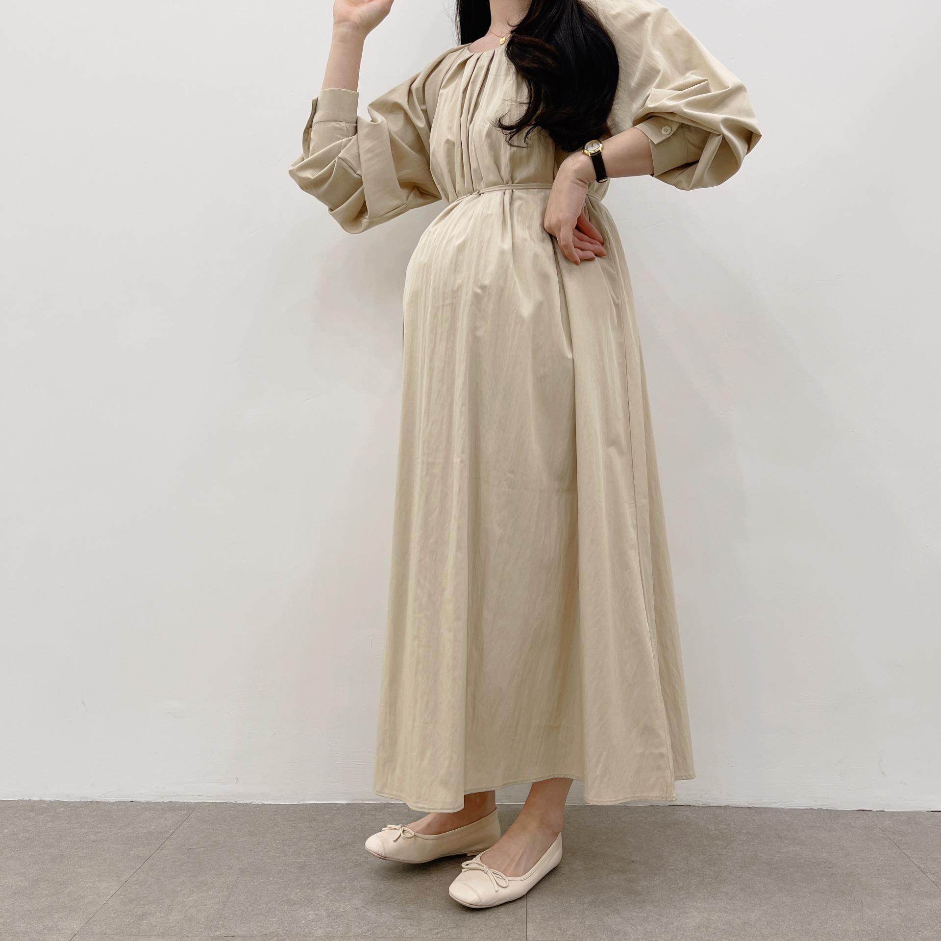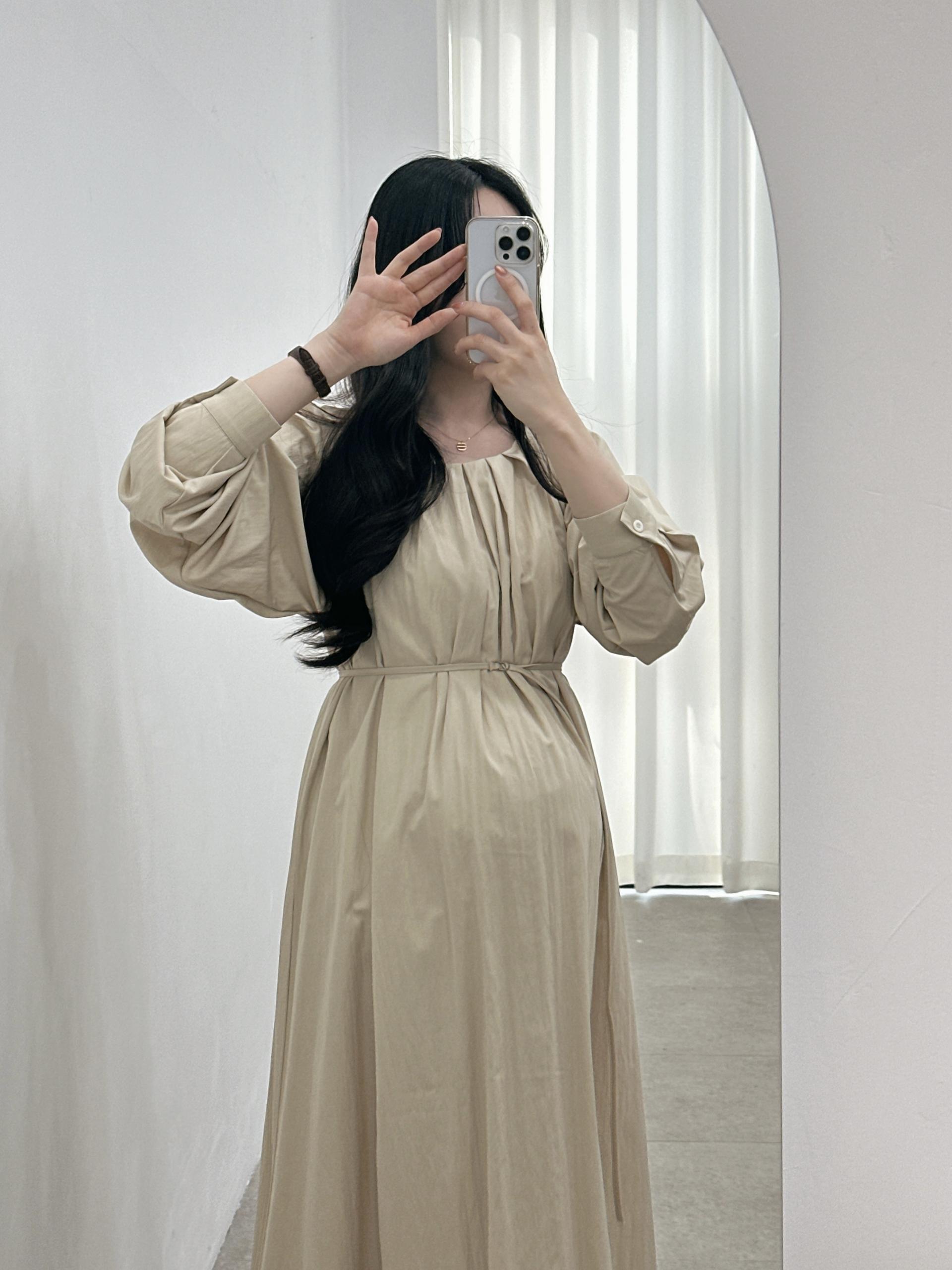 바스락소재의 심플하고 모던한 디자인의 원피스에요 넥라인 주름과 얇은허리끈벨트가 어우러져 너무예쁜핏을 만들어줘요, 격식있는 자리에도 충분한 아이에요!