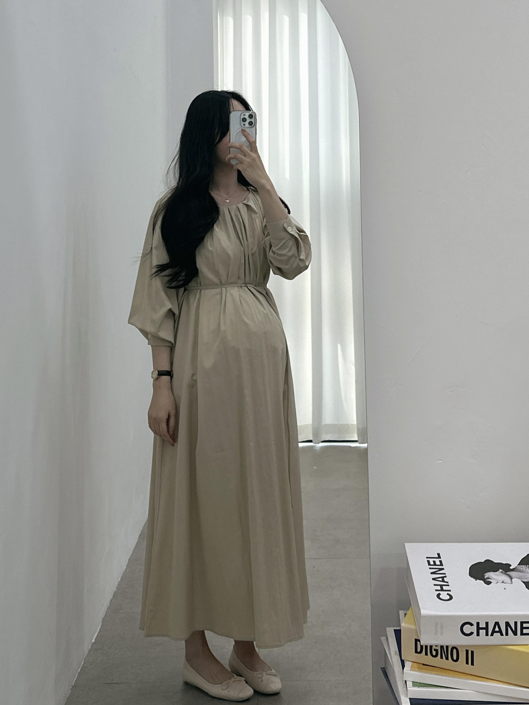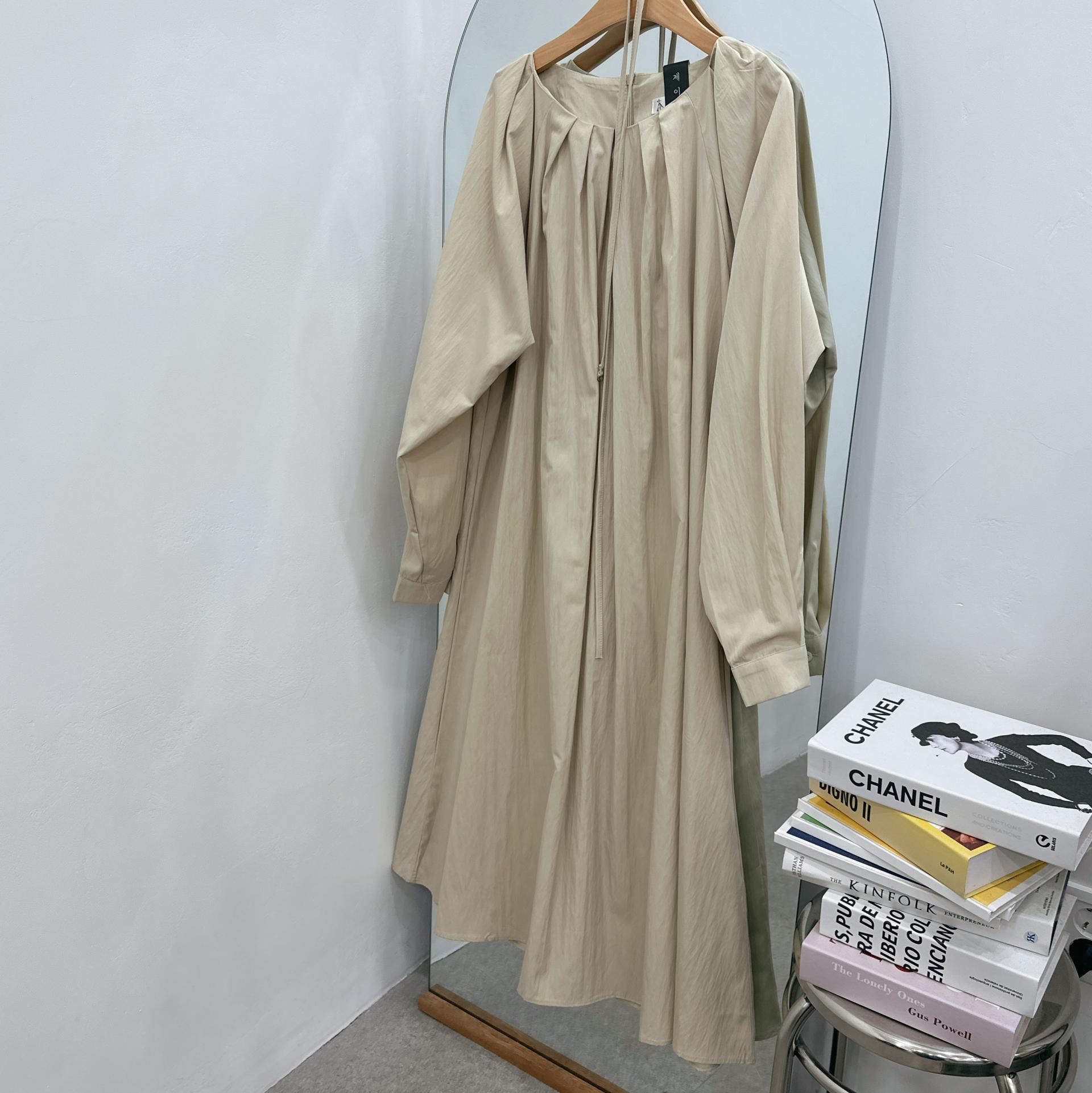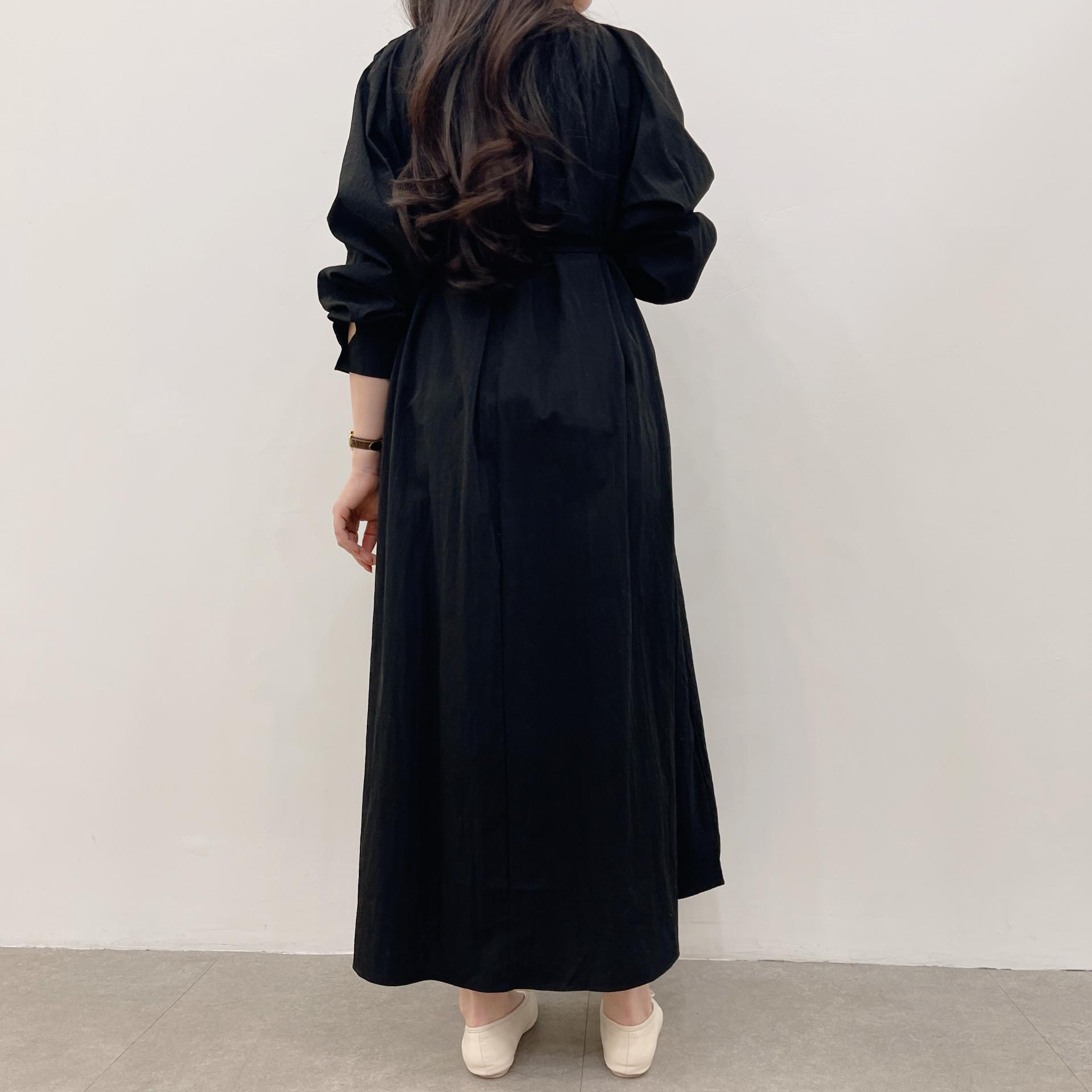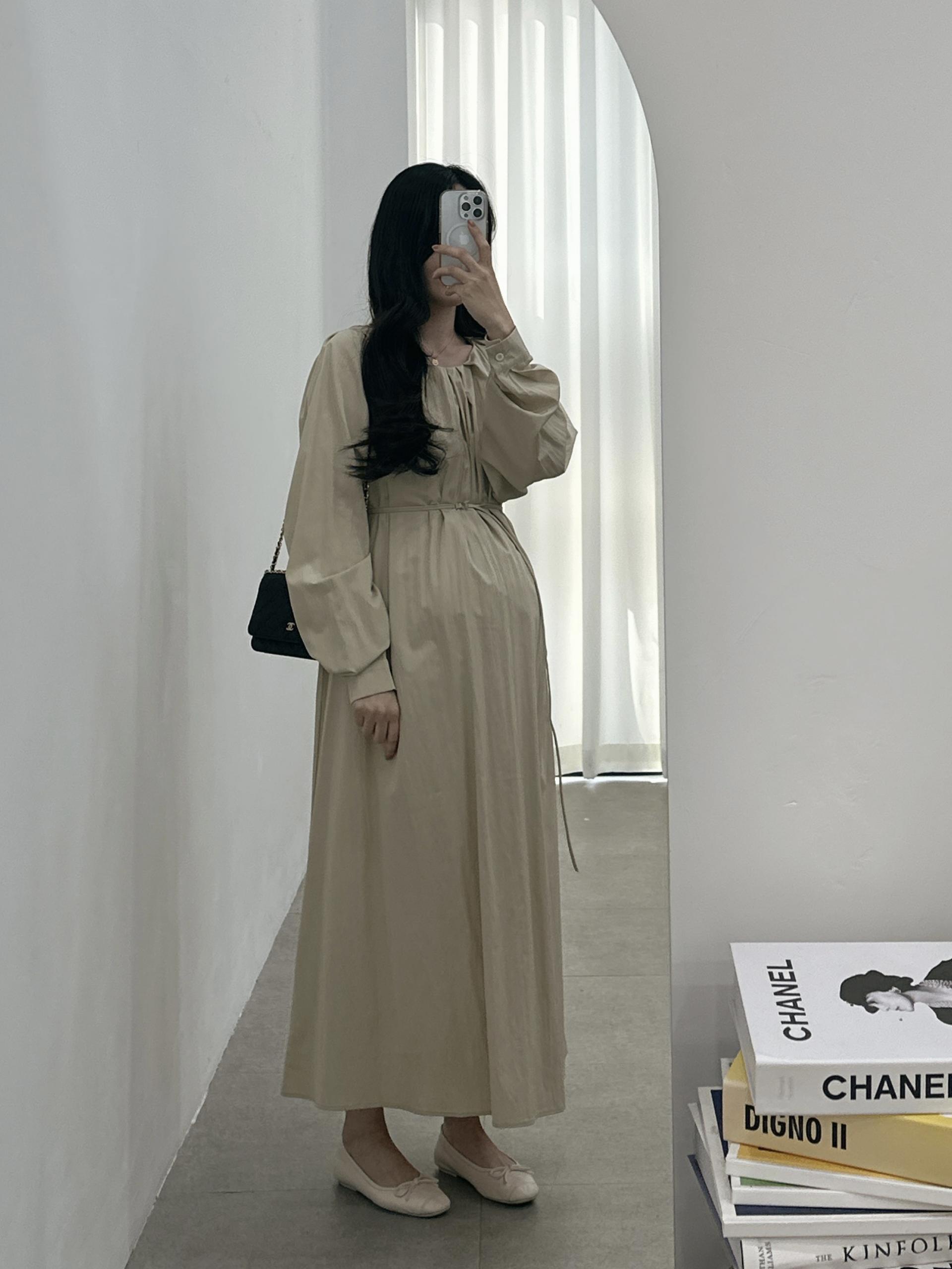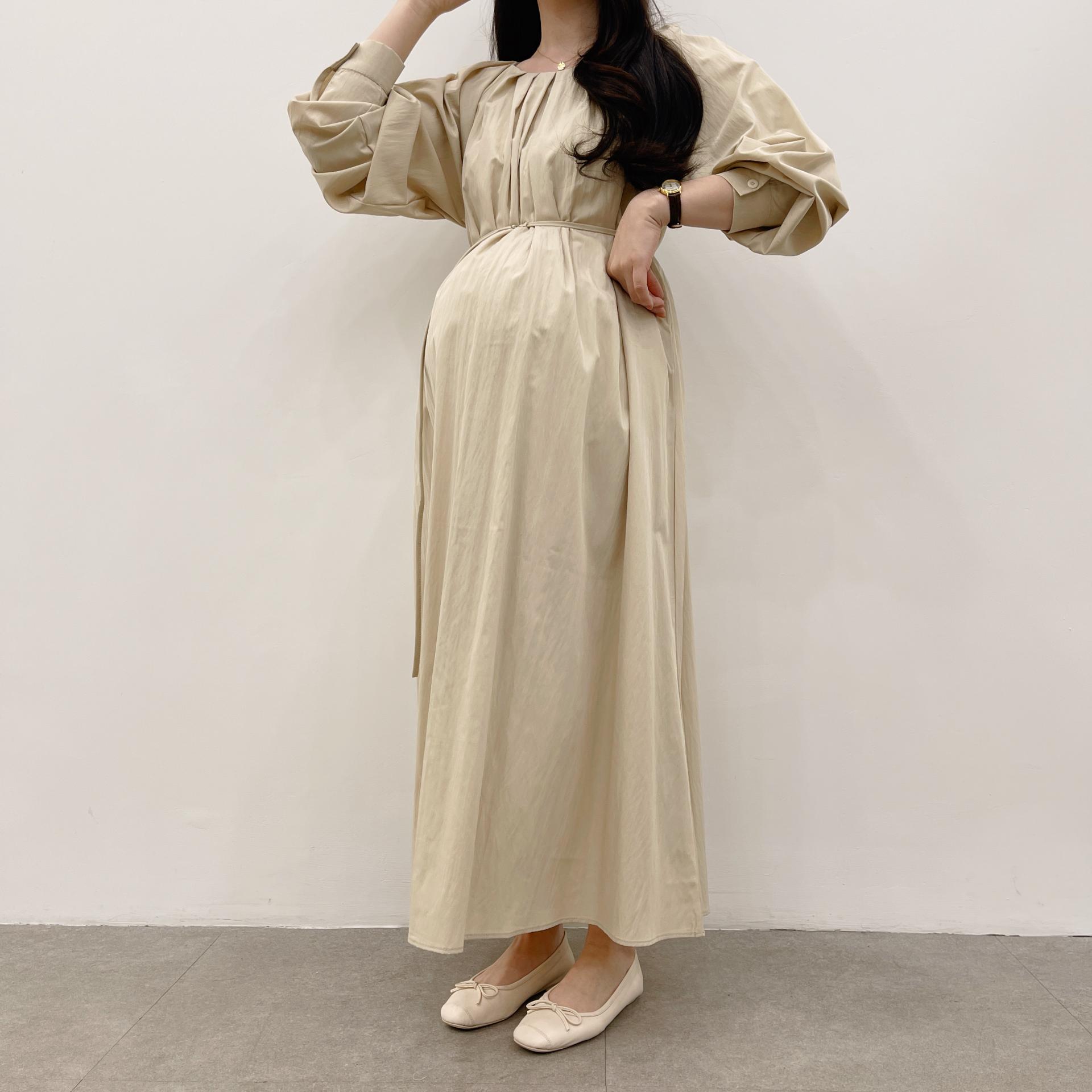 바스락소재의 심플하고 모던한 디자인의 원피스에요 넥라인 주름과 얇은허리끈벨트가 어우러져 너무예쁜핏을 만들어줘요, 격식있는 자리에도 충분한 아이에요!
