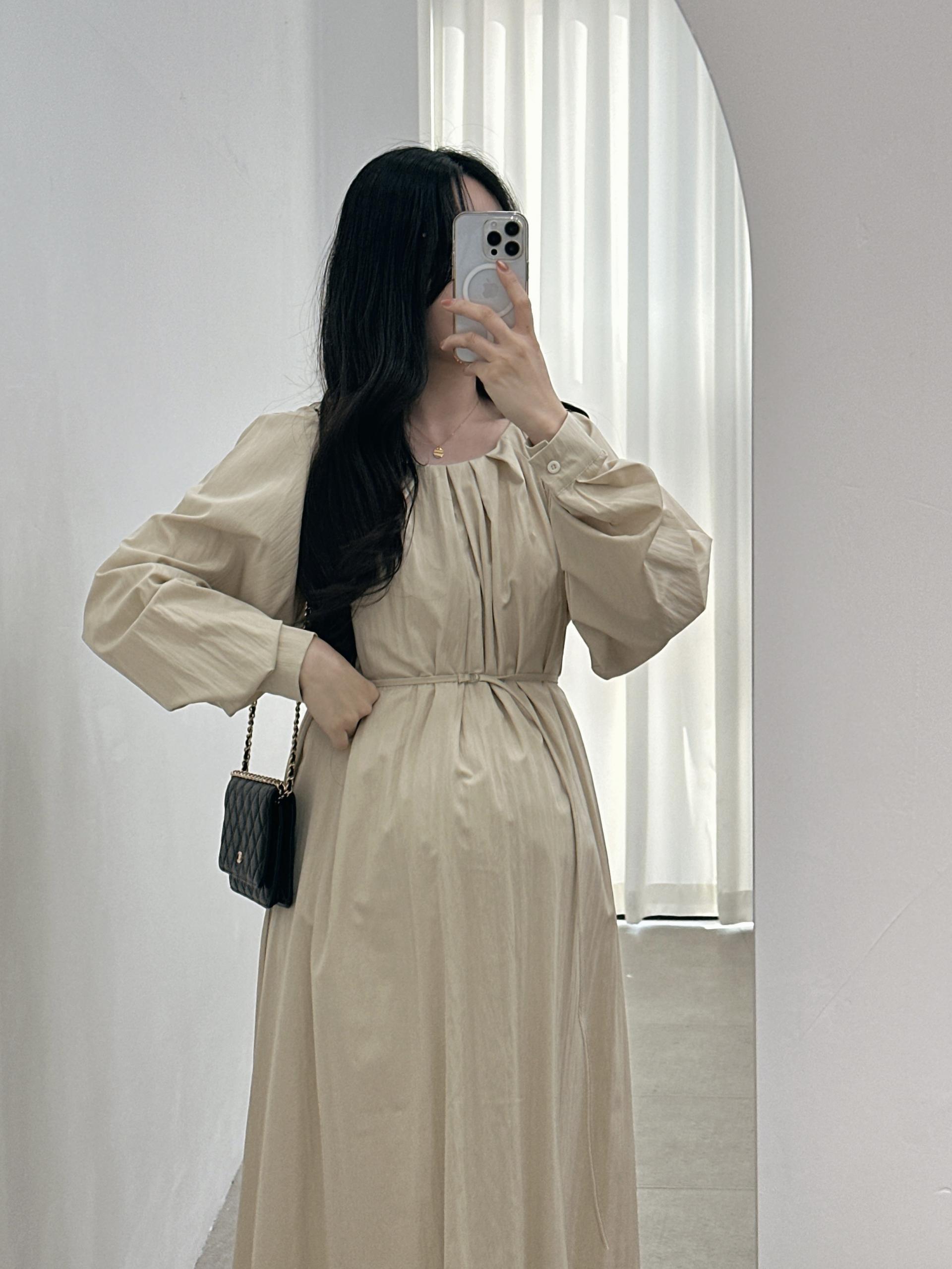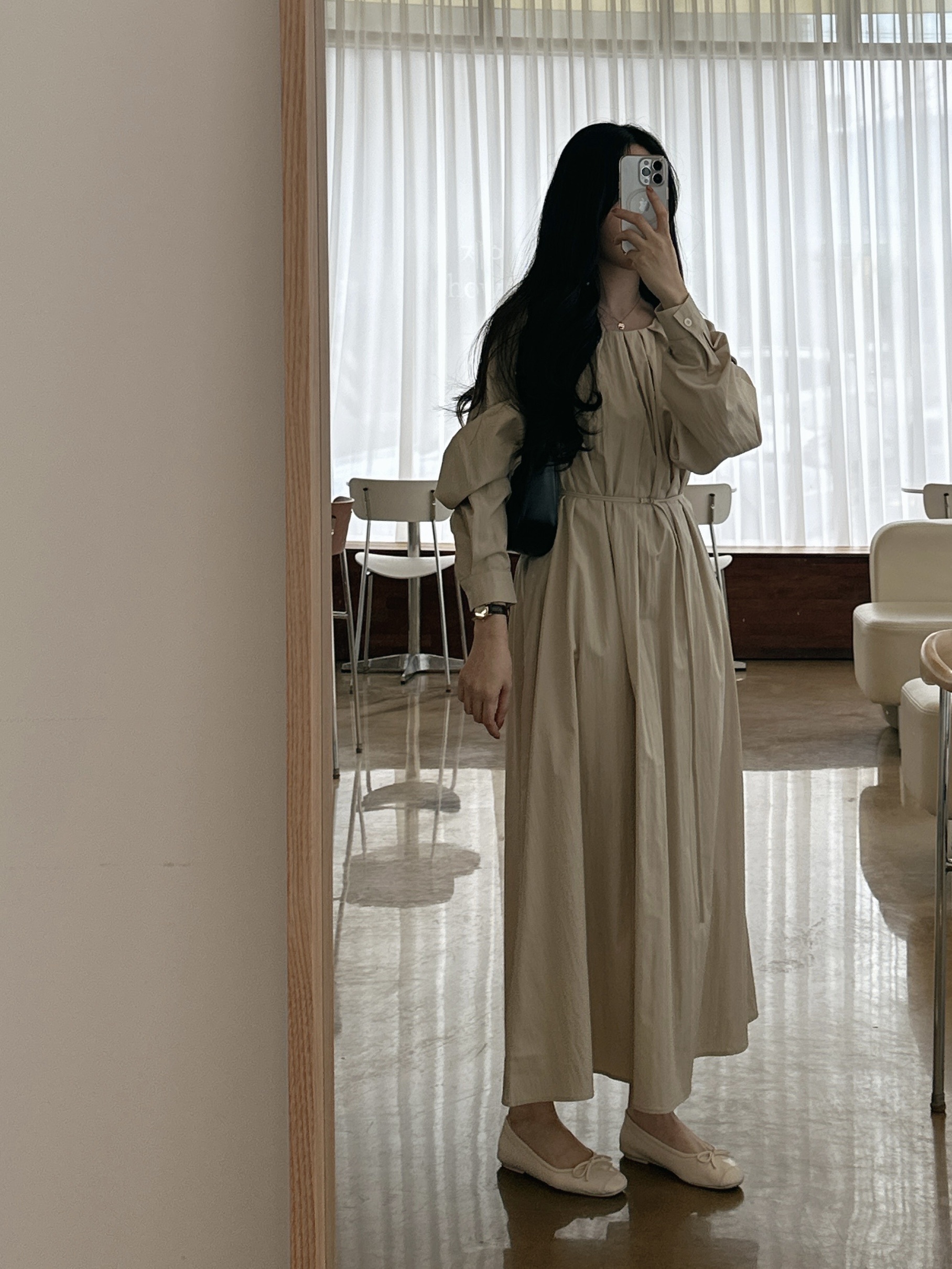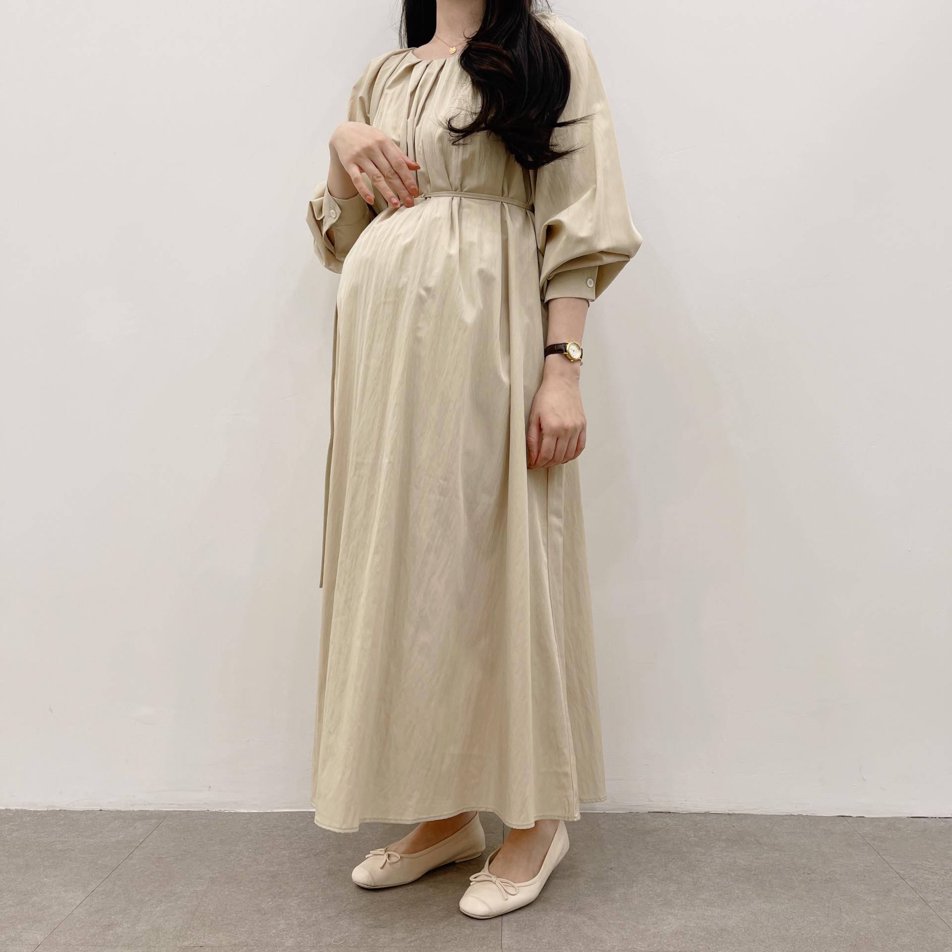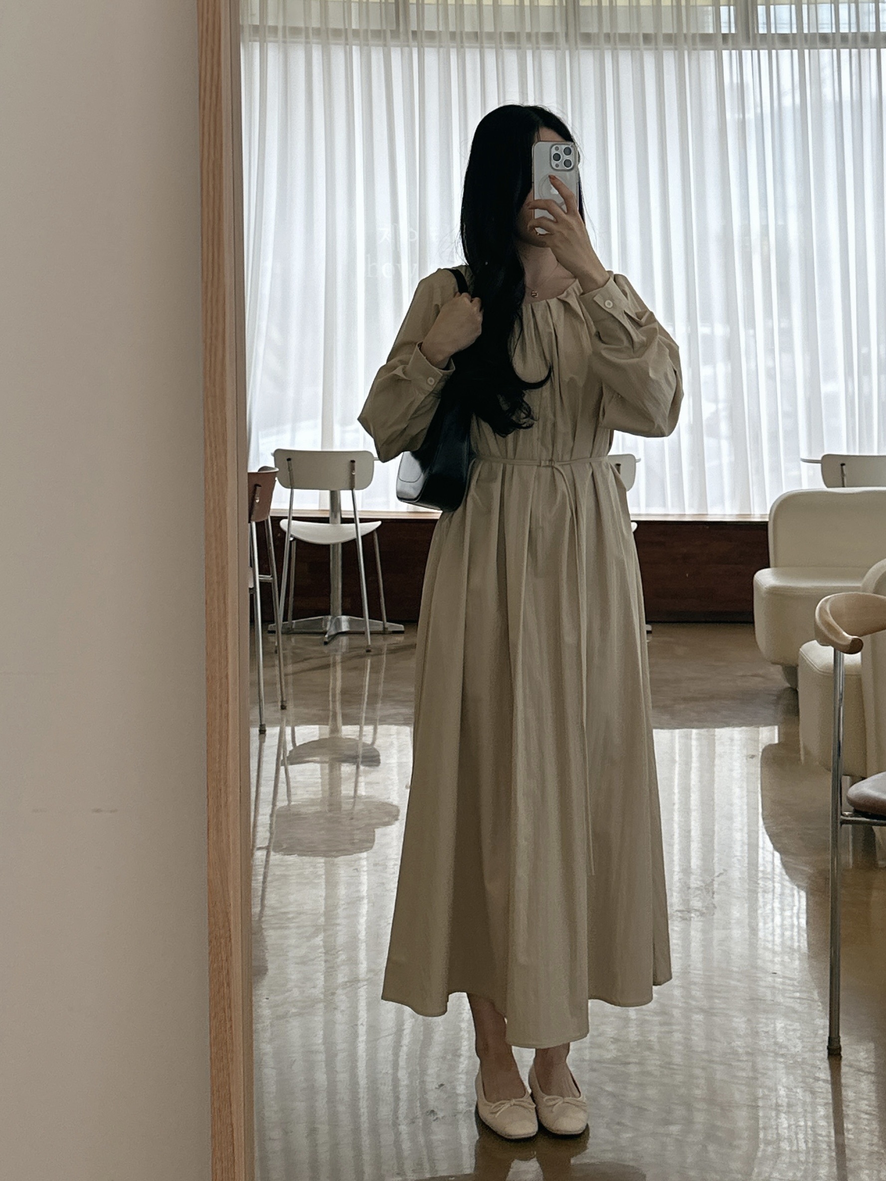 바스락소재의 심플하고 모던한 디자인의 원피스에요 넥라인 주름과 얇은허리끈벨트가 어우러져 너무예쁜핏을 만들어줘요, 격식있는 자리에도 충분한 아이에요!