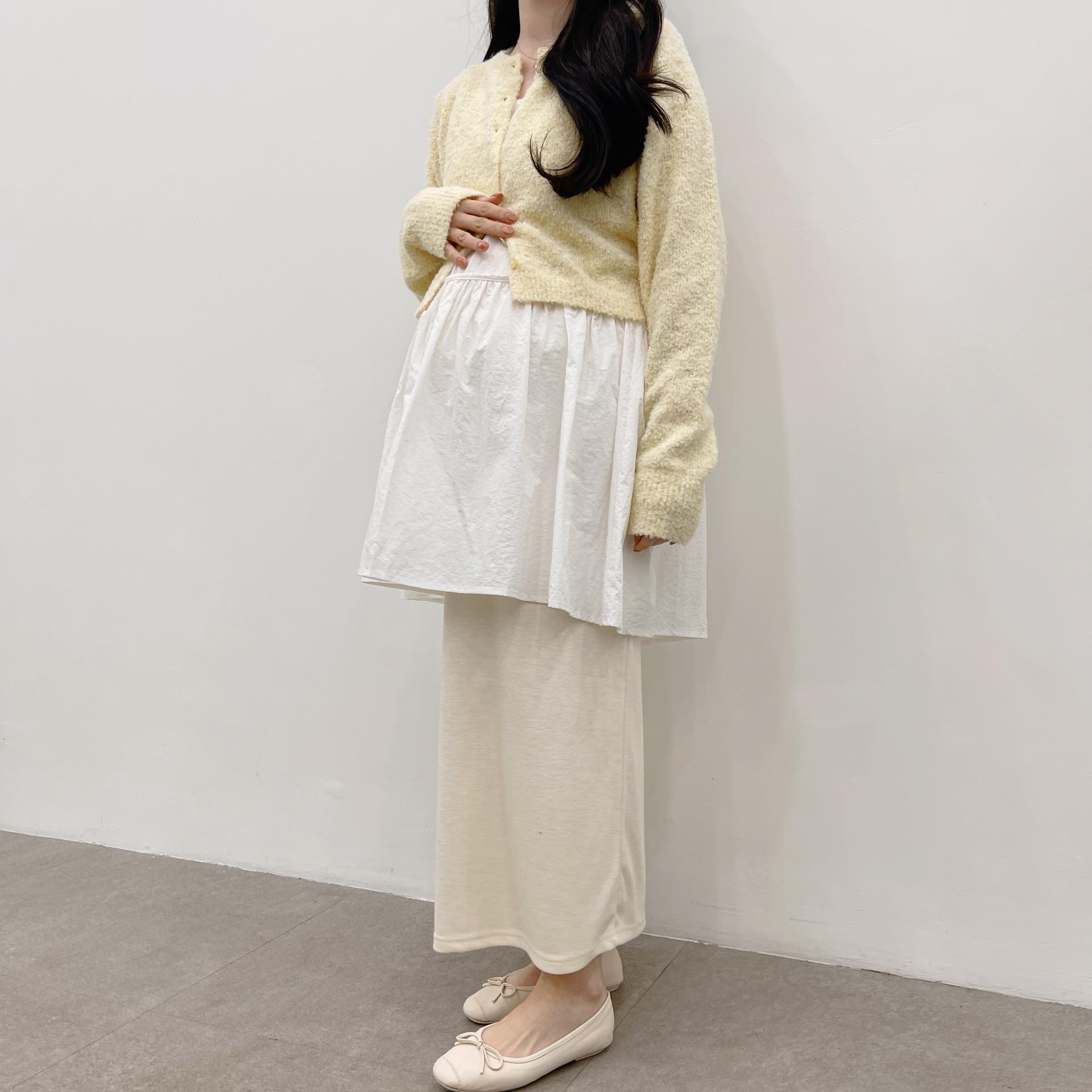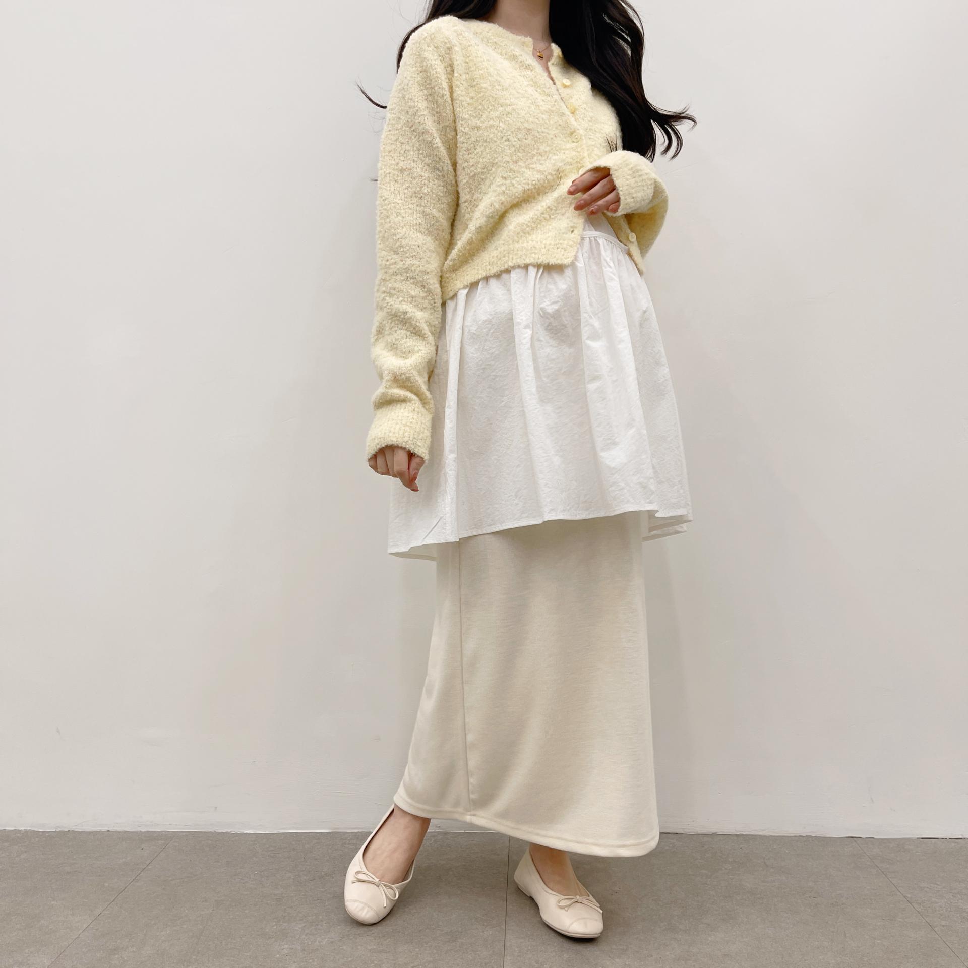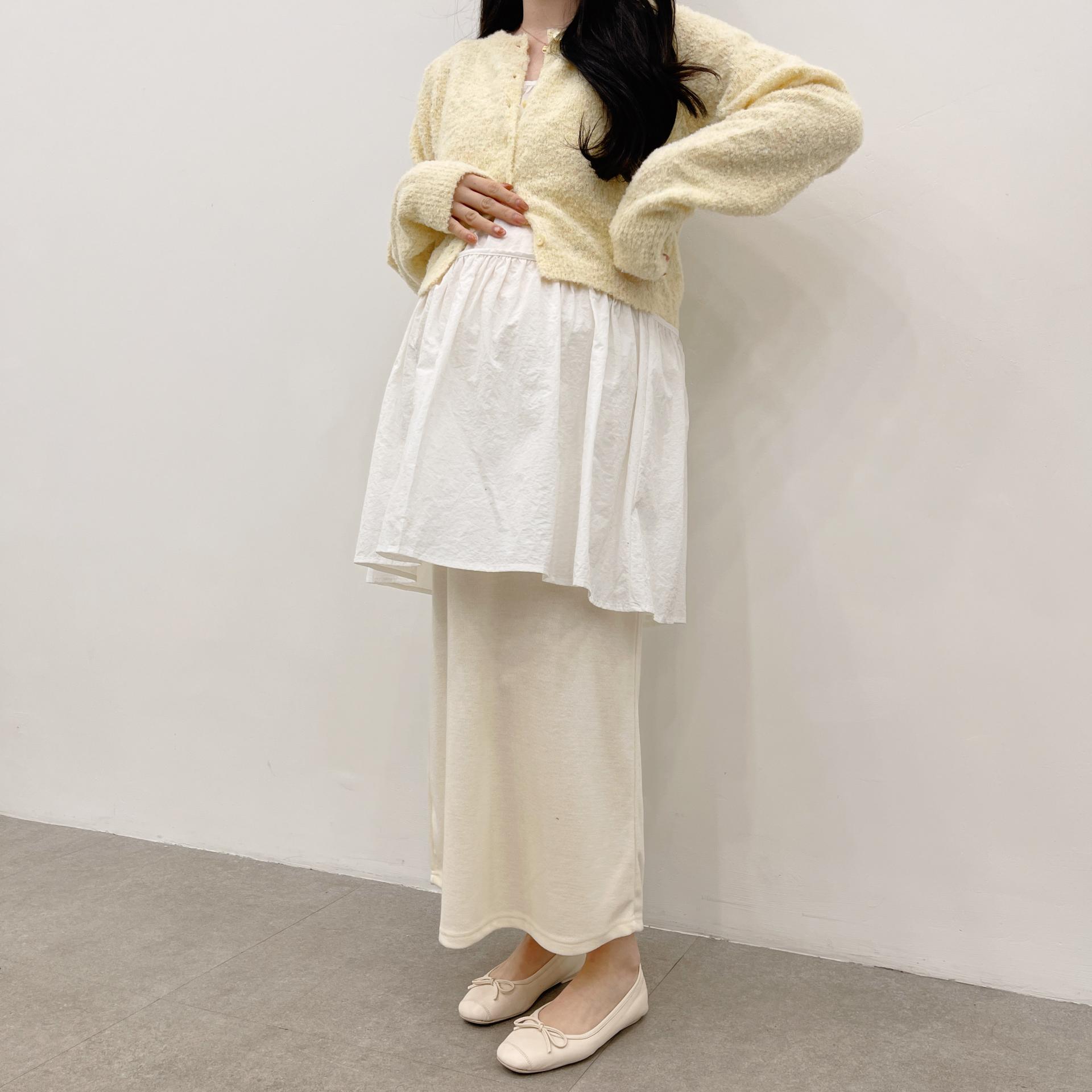 레몬옐로우(코디상품 : 바스락레이어드끈나시 화이트컬러 + 임부말랑스커트 크림컬러)