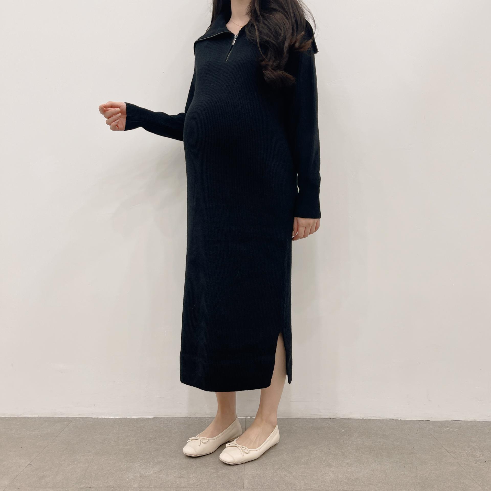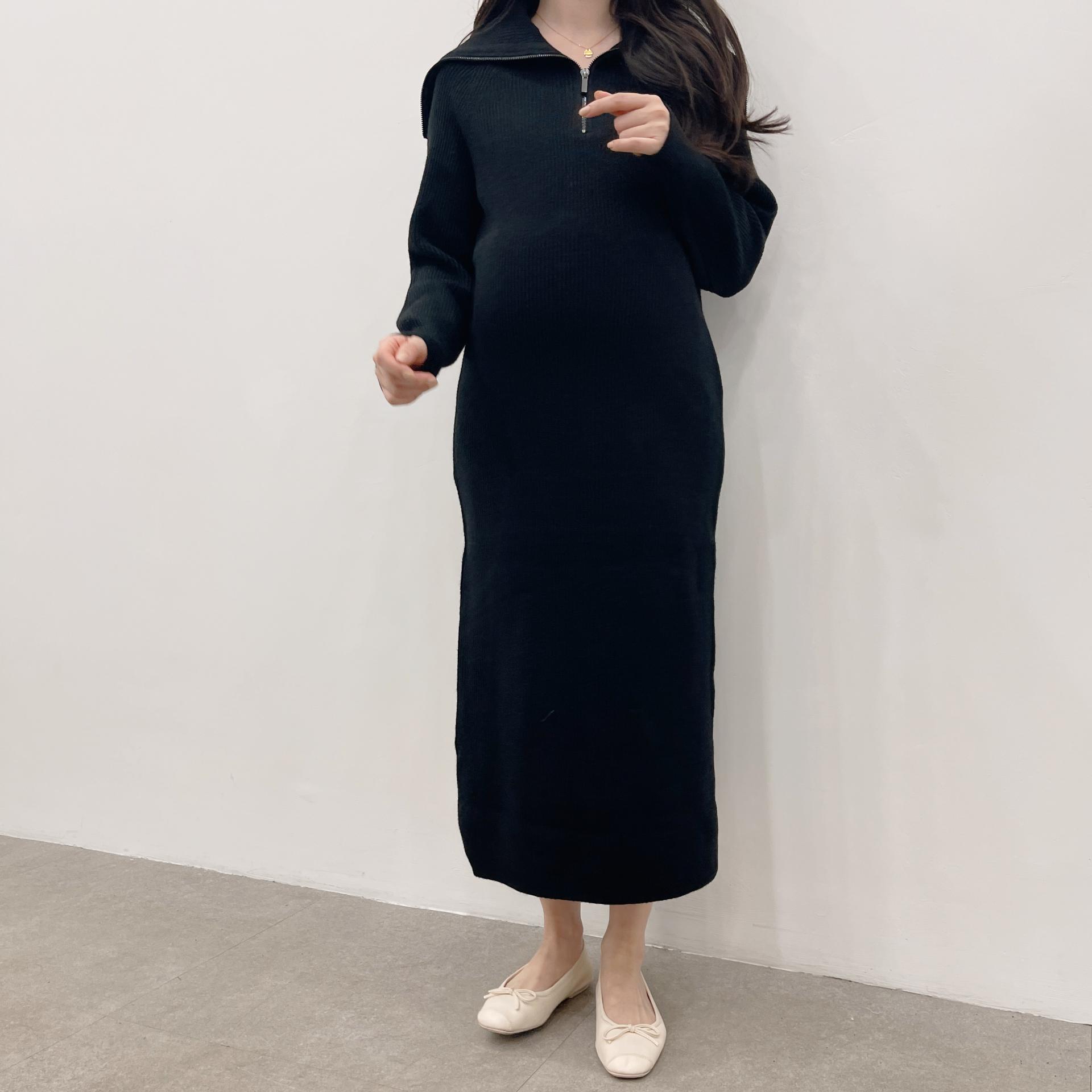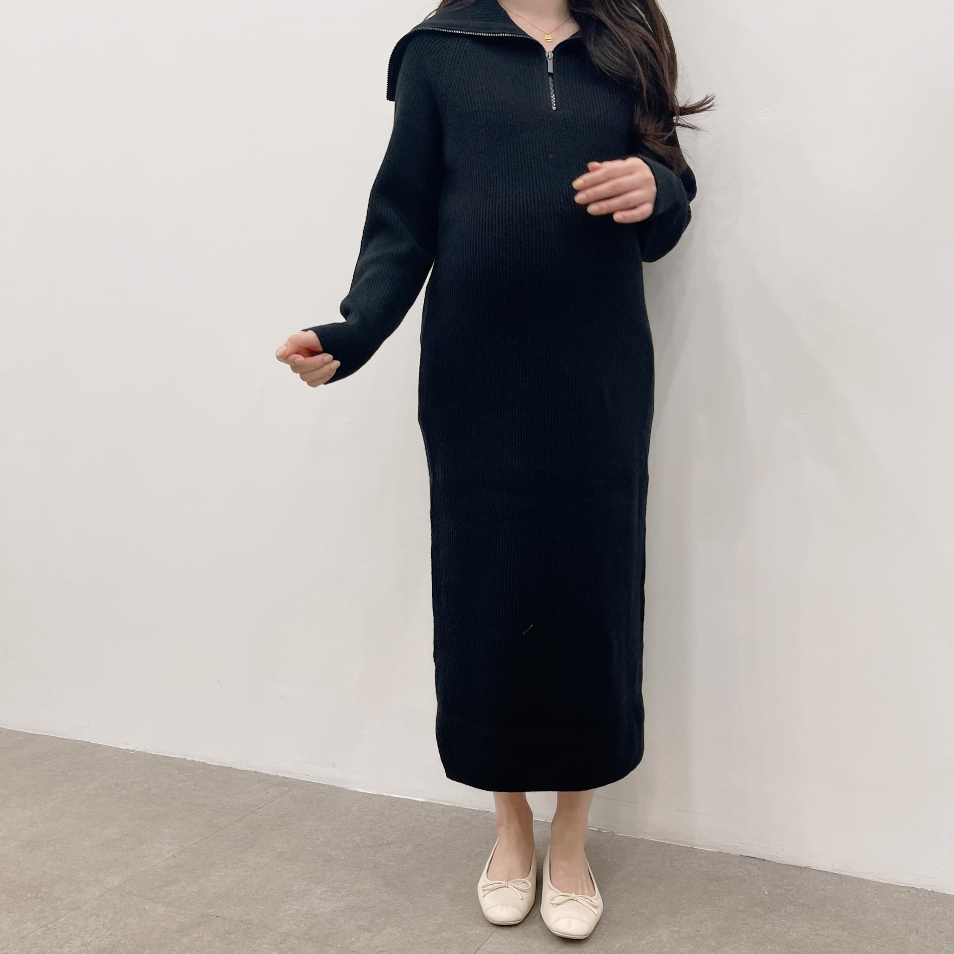 도톰한편인 부드러운 니트소재의 세라지퍼카라 원피스입니다!