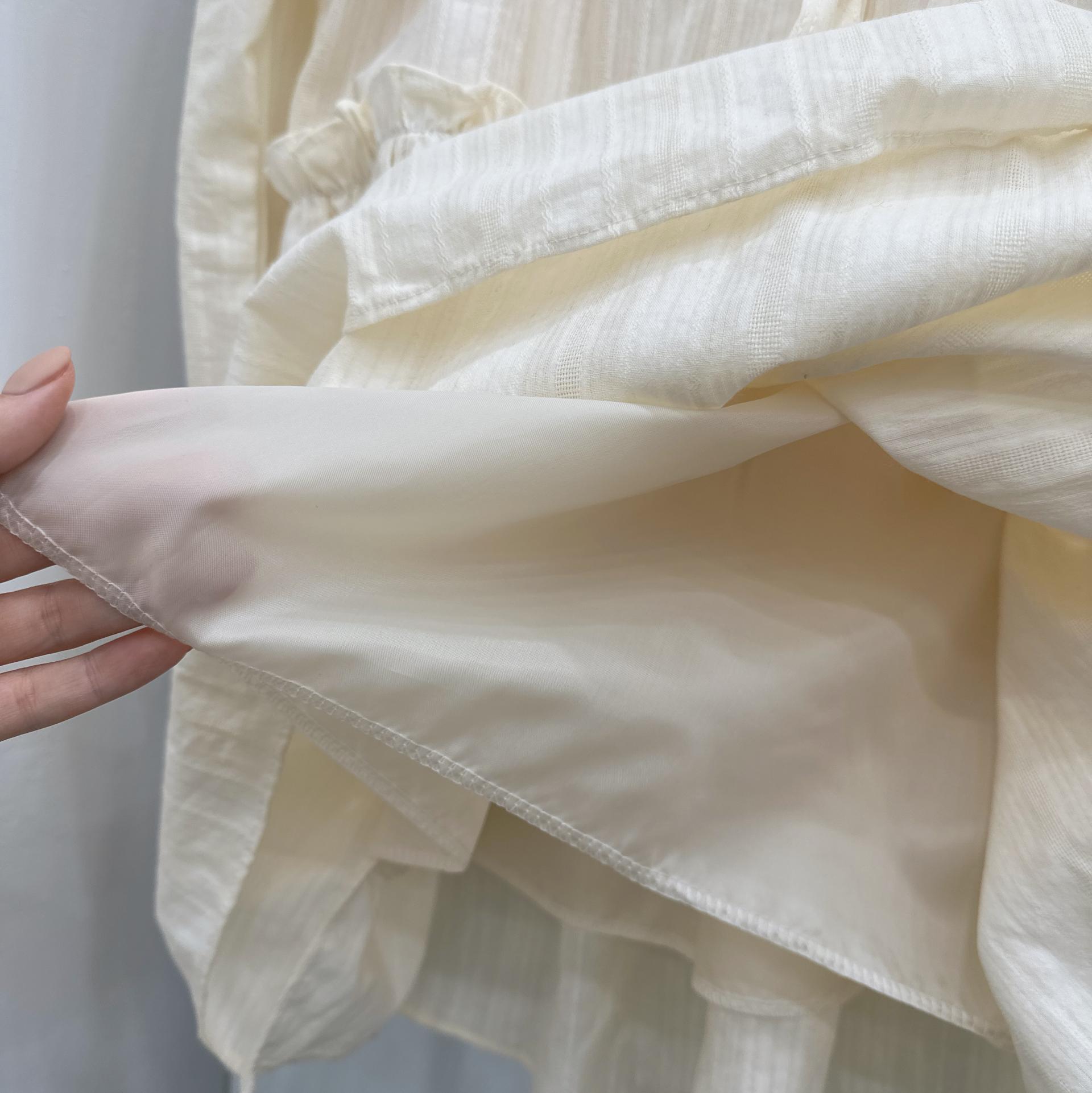 - 크림/아이보리/화이트 색상 등의 밝은 의류는 색상 특성상 재질에 관계없이 약간의 비침이 있어요. 스킨색 속옷이나 이너 착용 해주세요.
