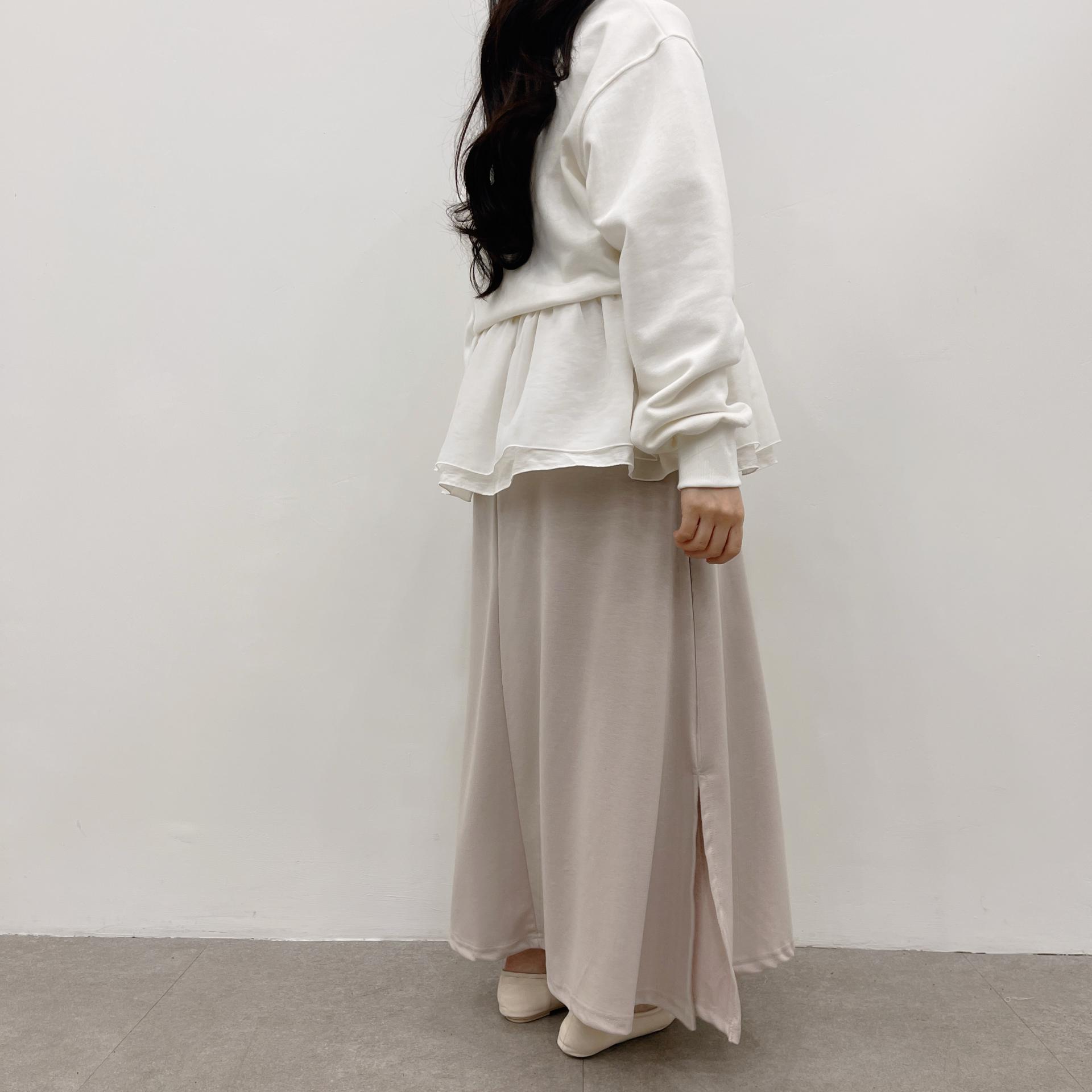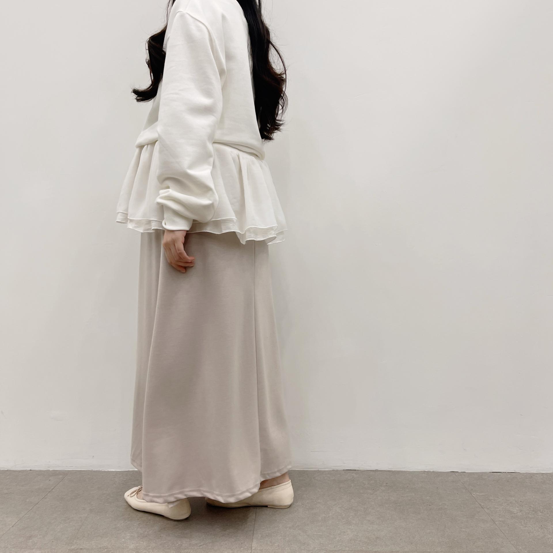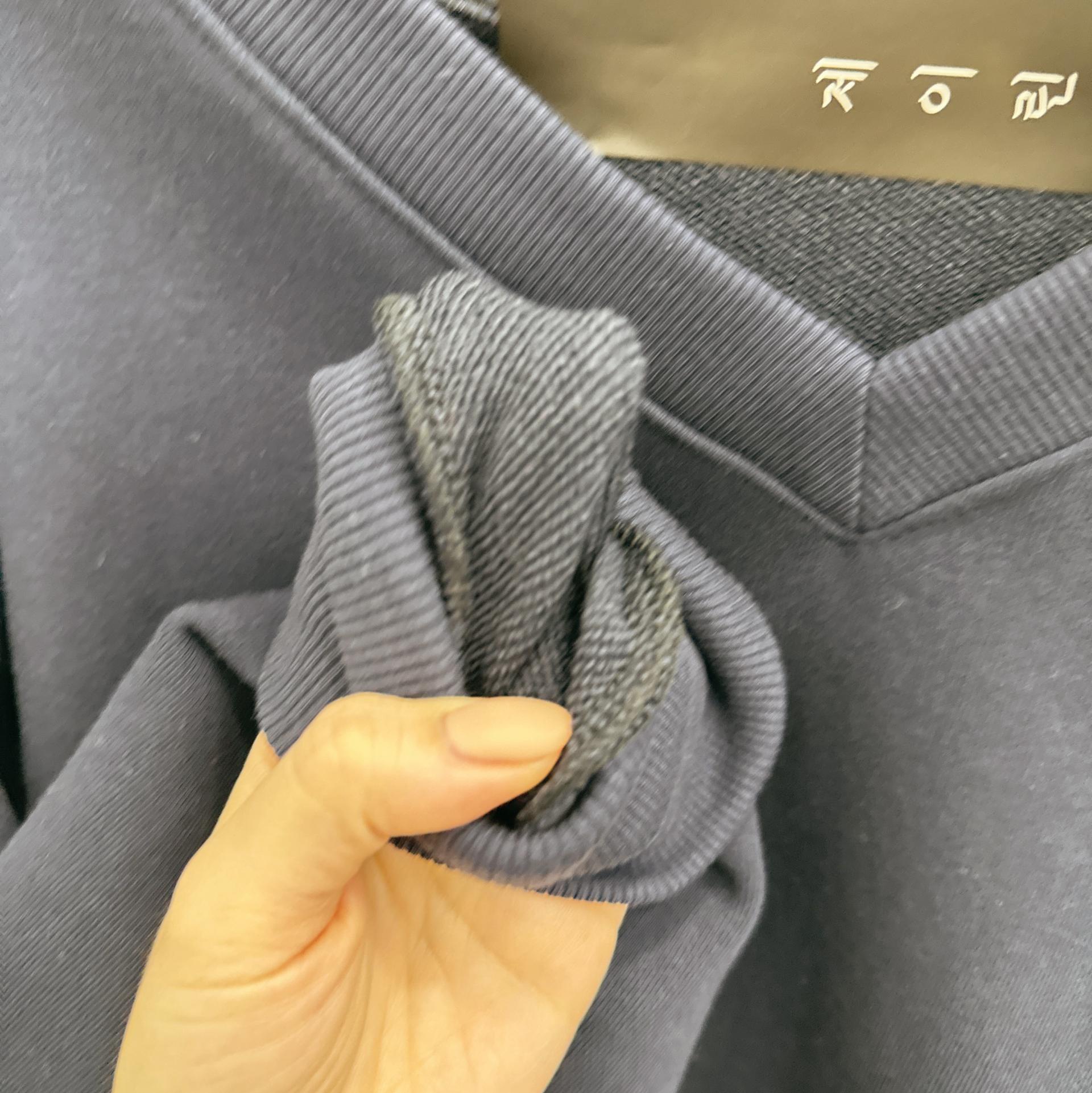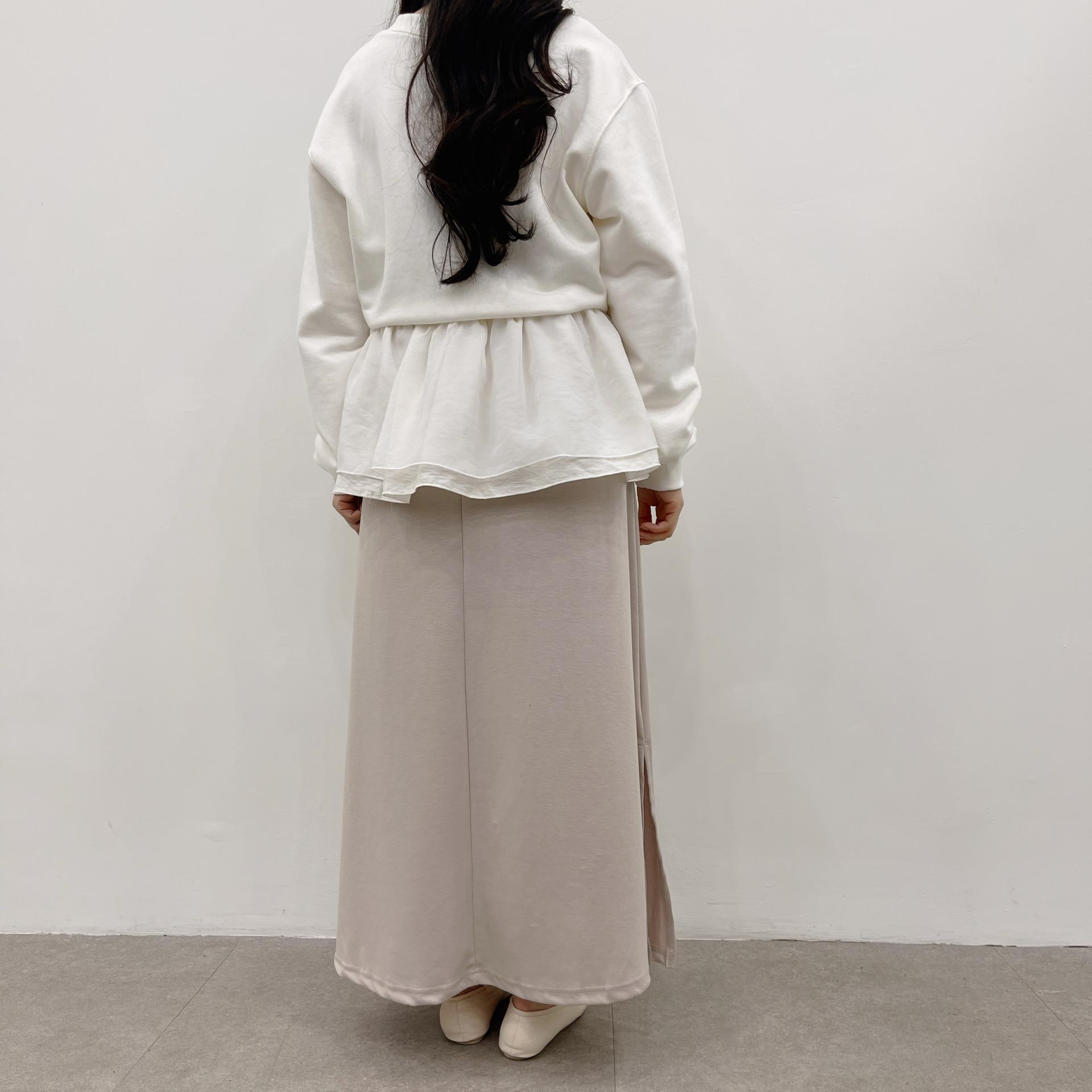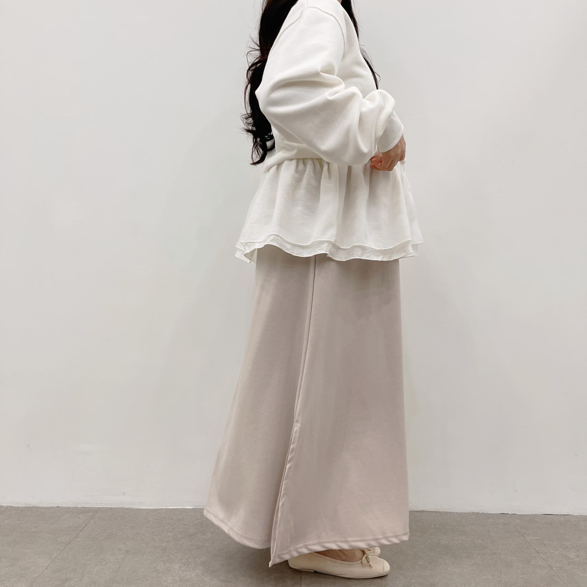 밑단 쉬폰레이어드가 일체형인 브이넥 맨투맨이에요 안쪽에 허리스트링이 있어서 핏이 너무예쁘게 잡힌답니다!!