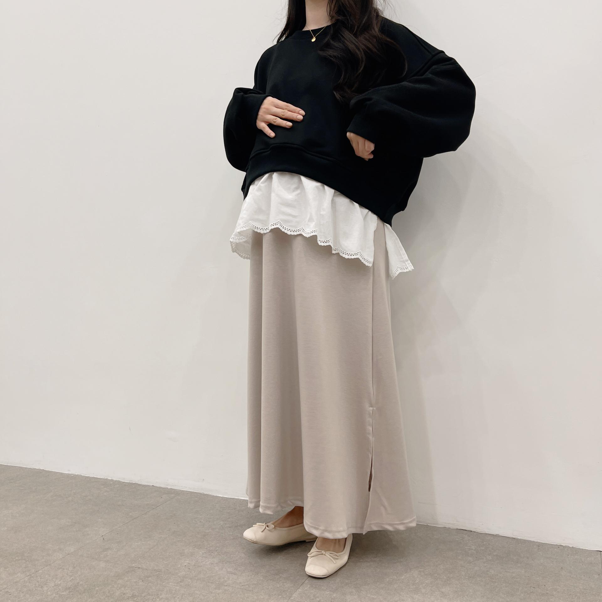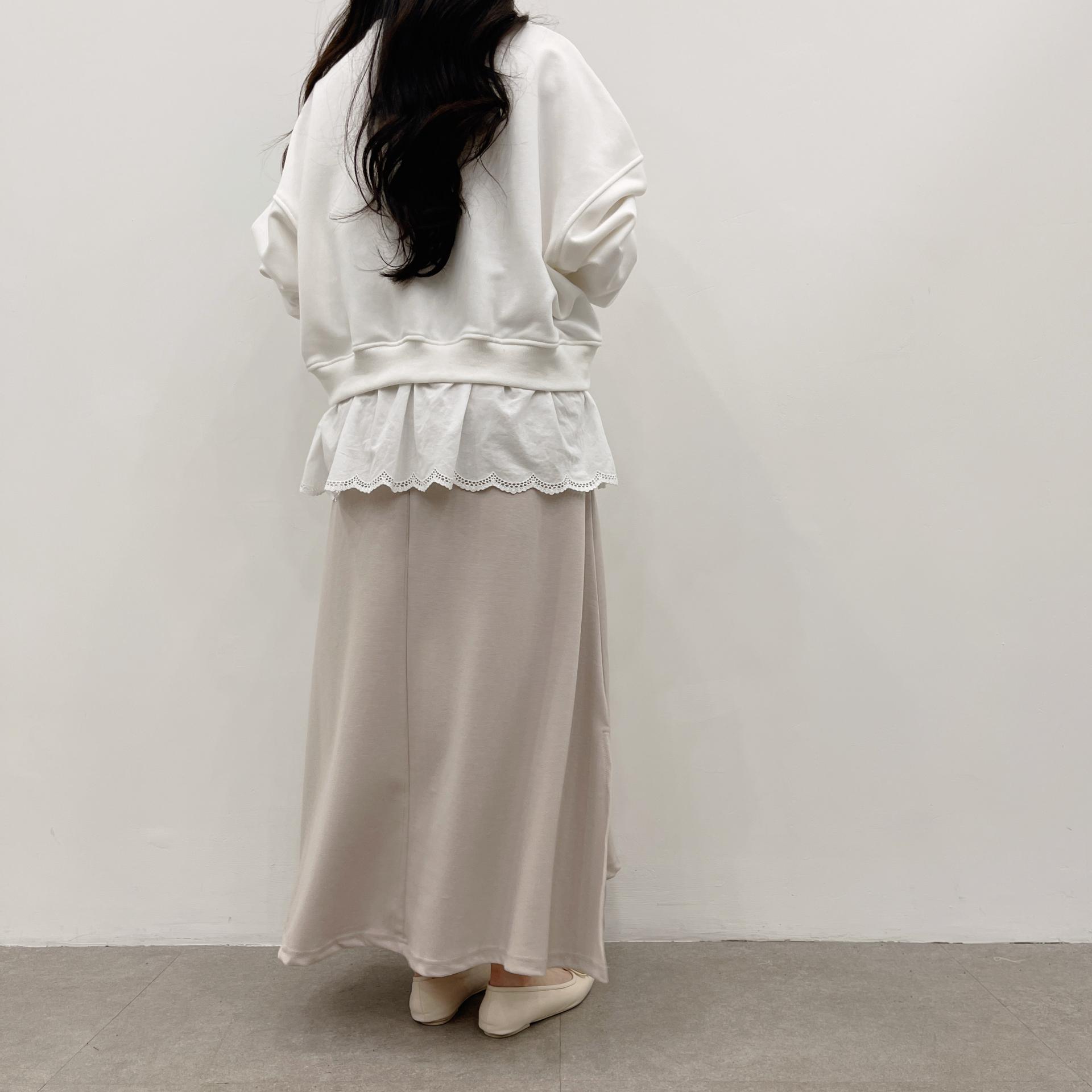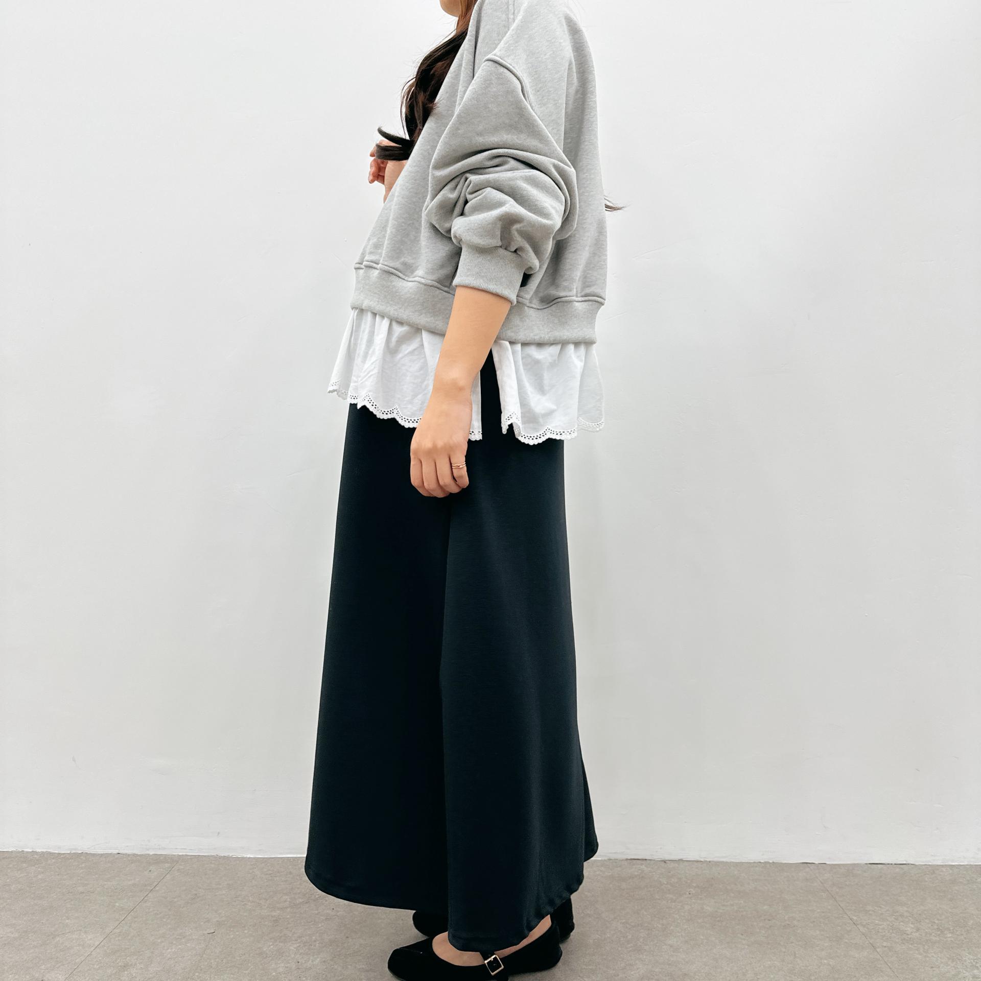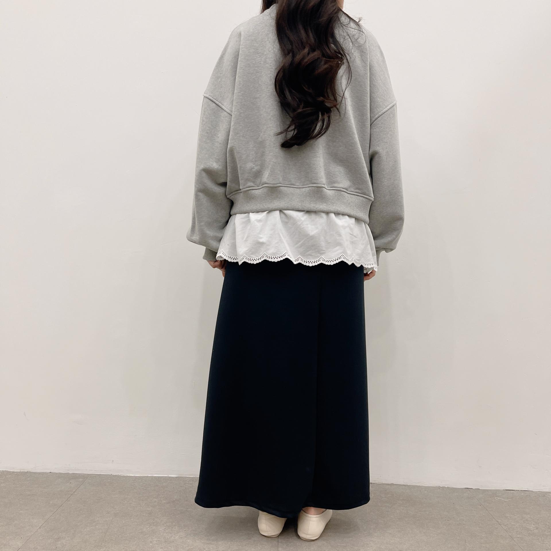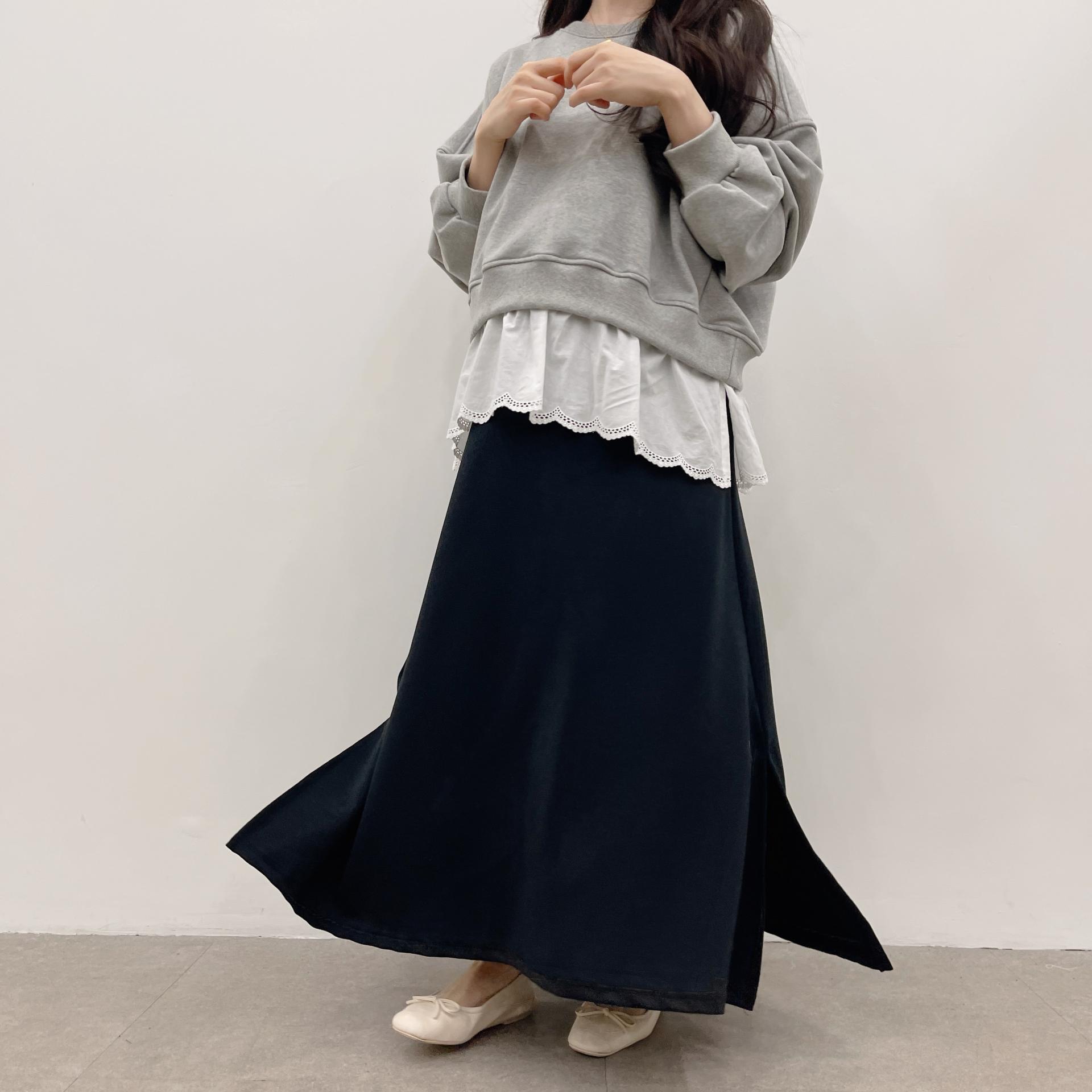 밑단 레이스레이어드가 붙어있는! 맨투맨입니다 러블리하면서 오버된 어꺠라인과 핏이 세련되고 편하게 만들어줘요:)