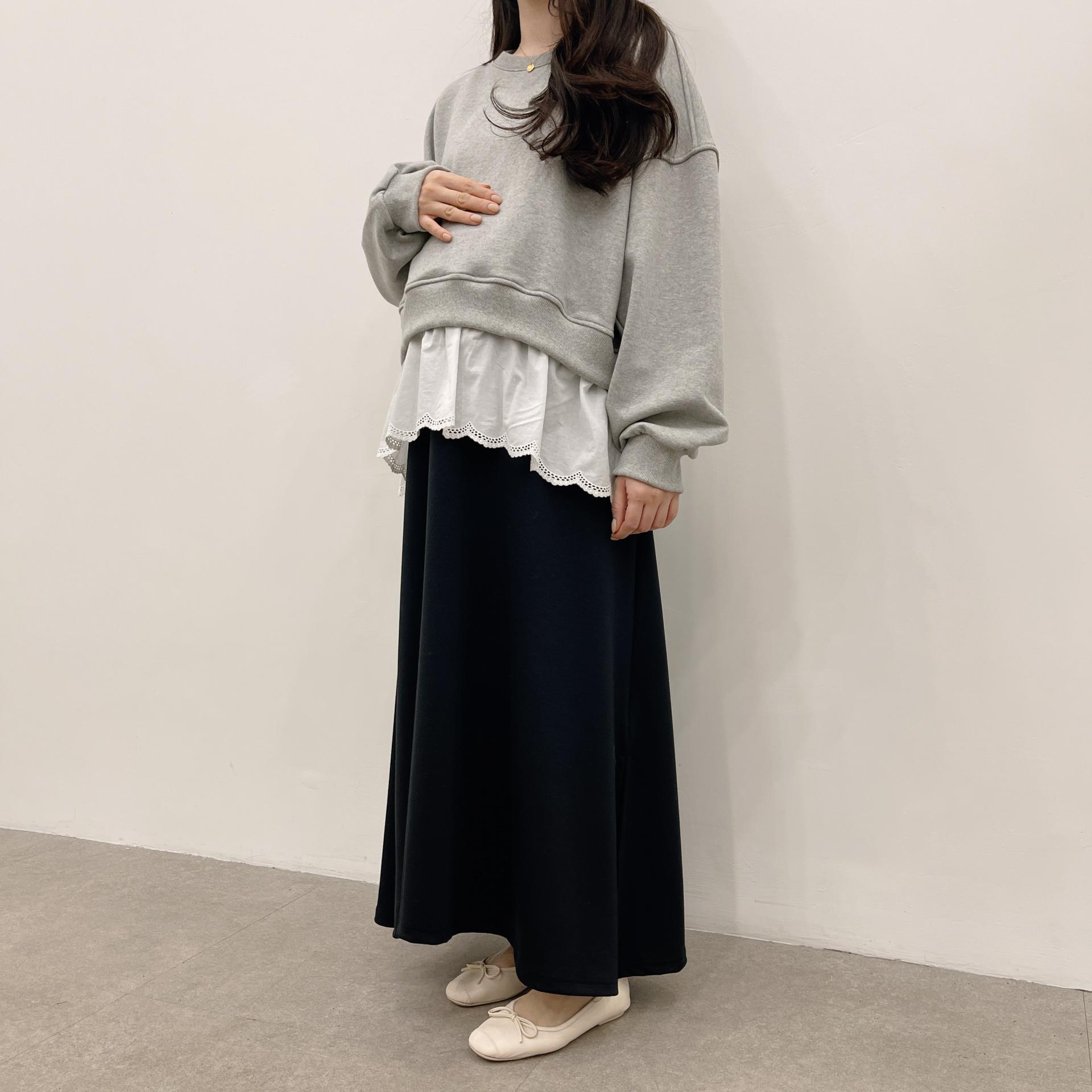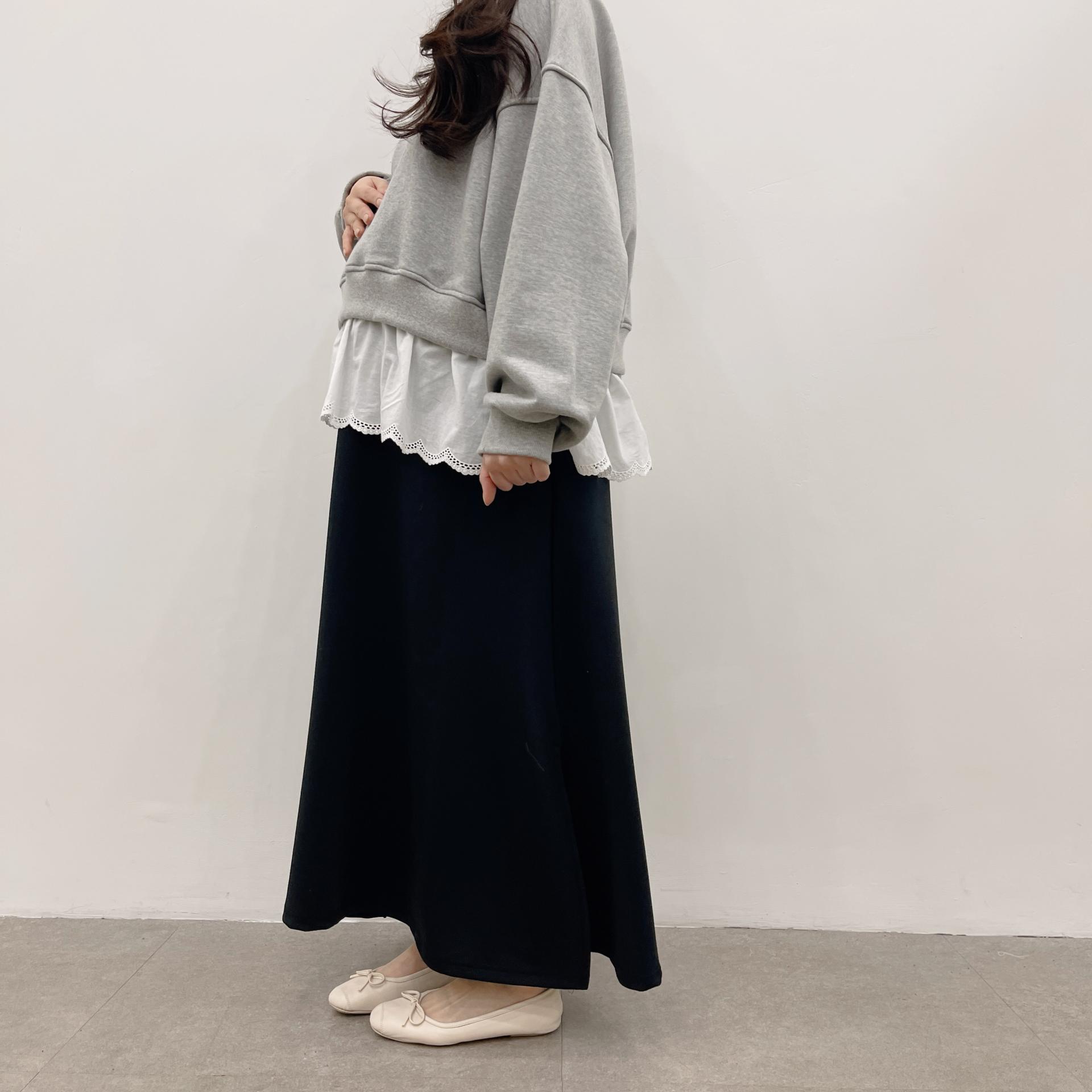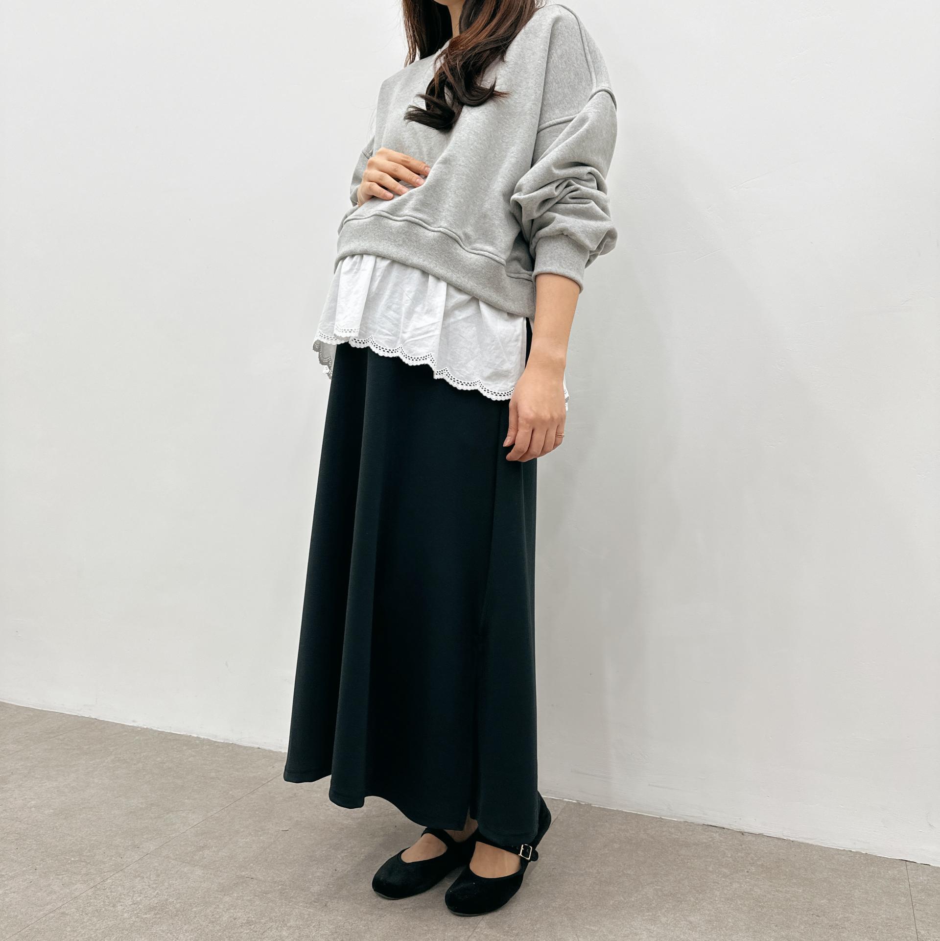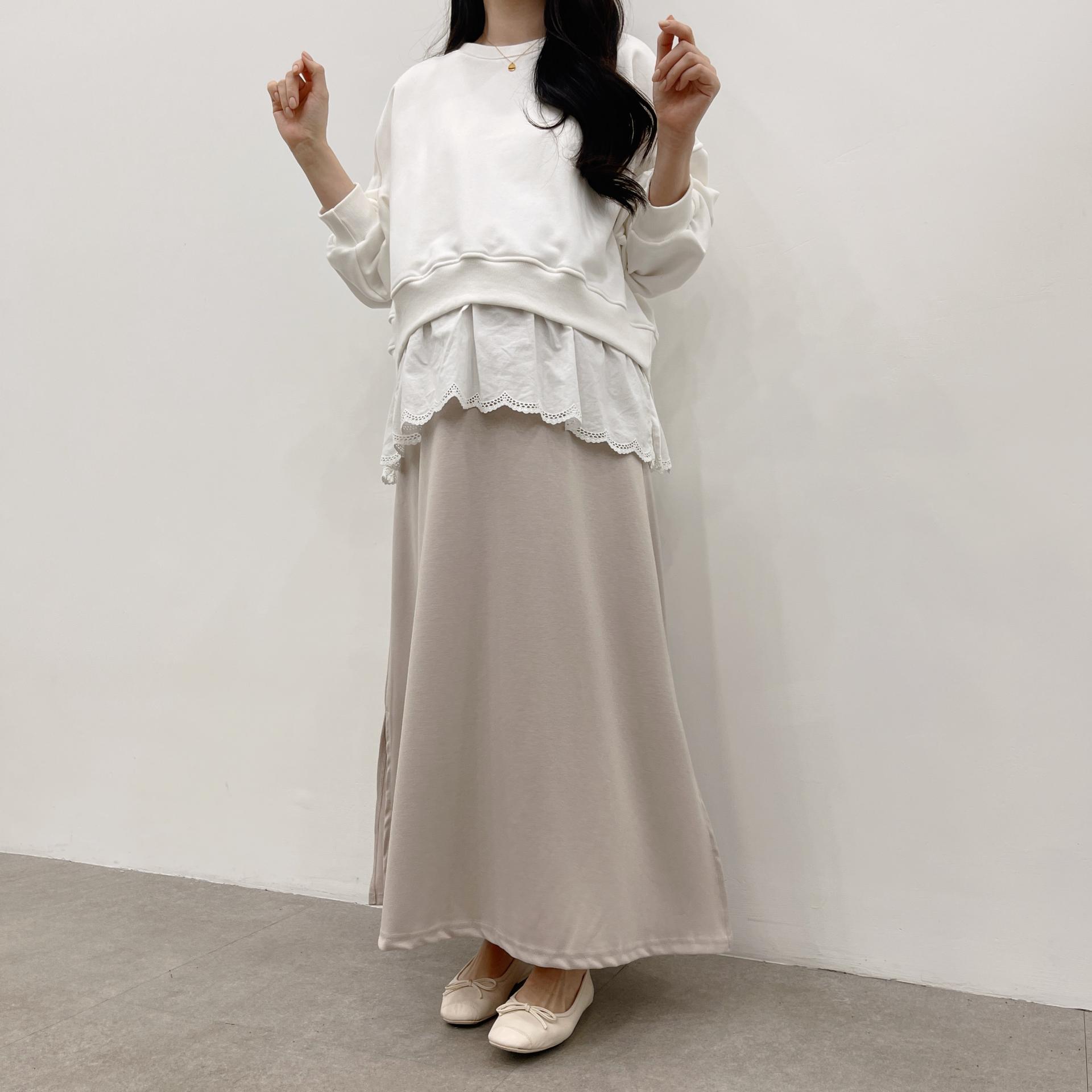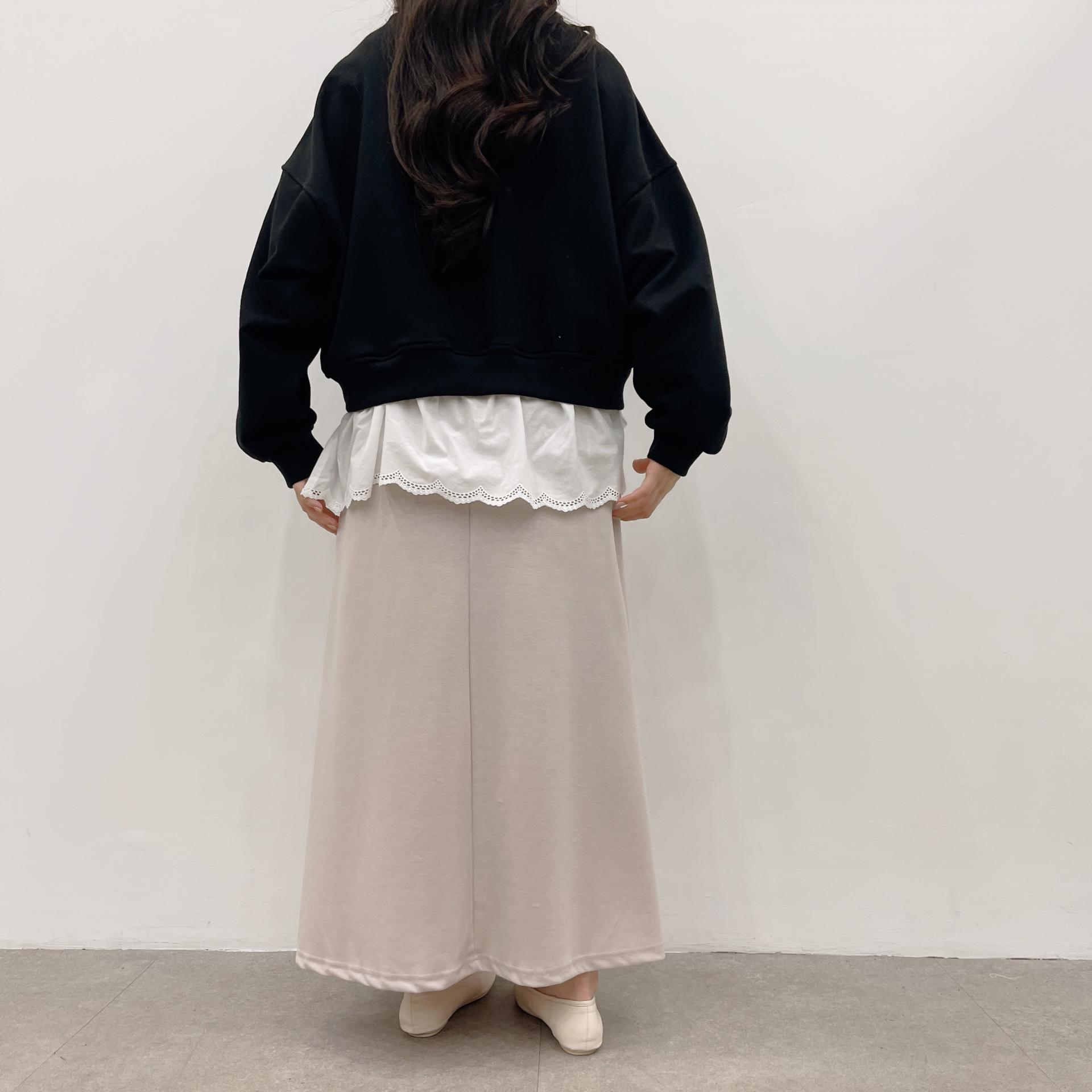 밑단 레이스레이어드가 붙어있는! 맨투맨입니다 러블리하면서 오버된 어꺠라인과 핏이 세련되고 편하게 만들어줘요:)
