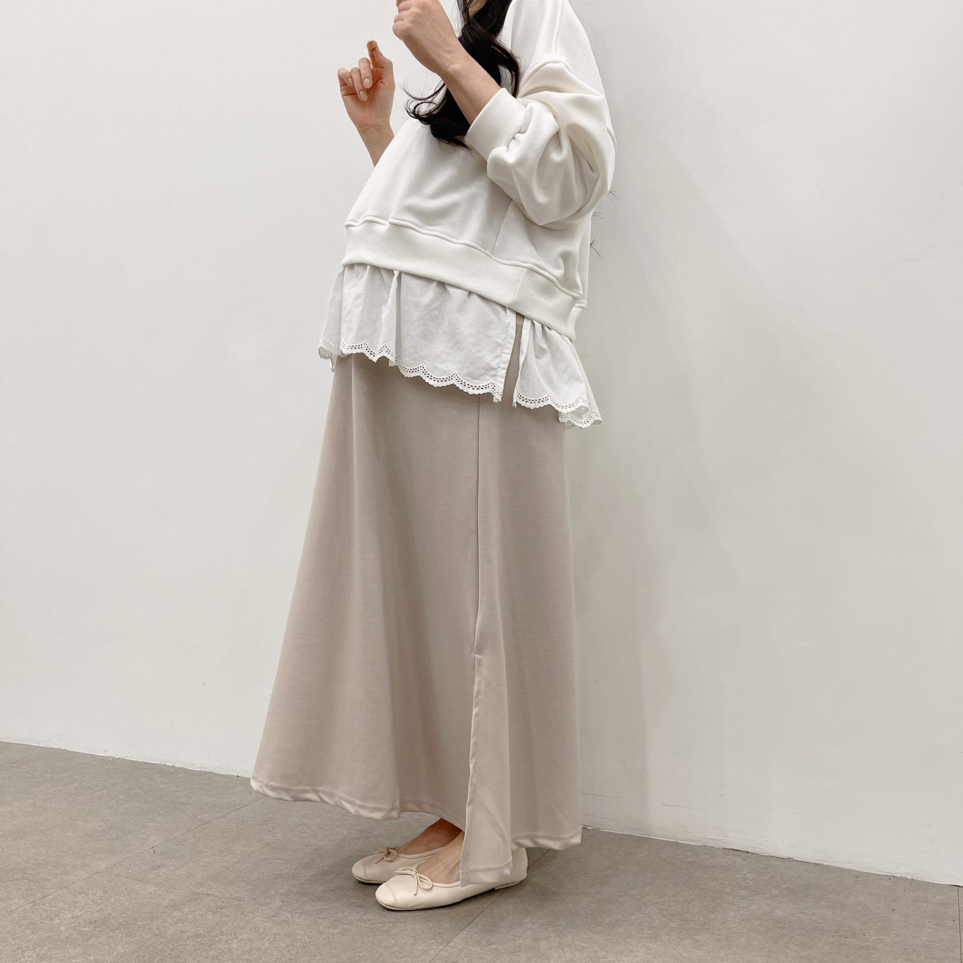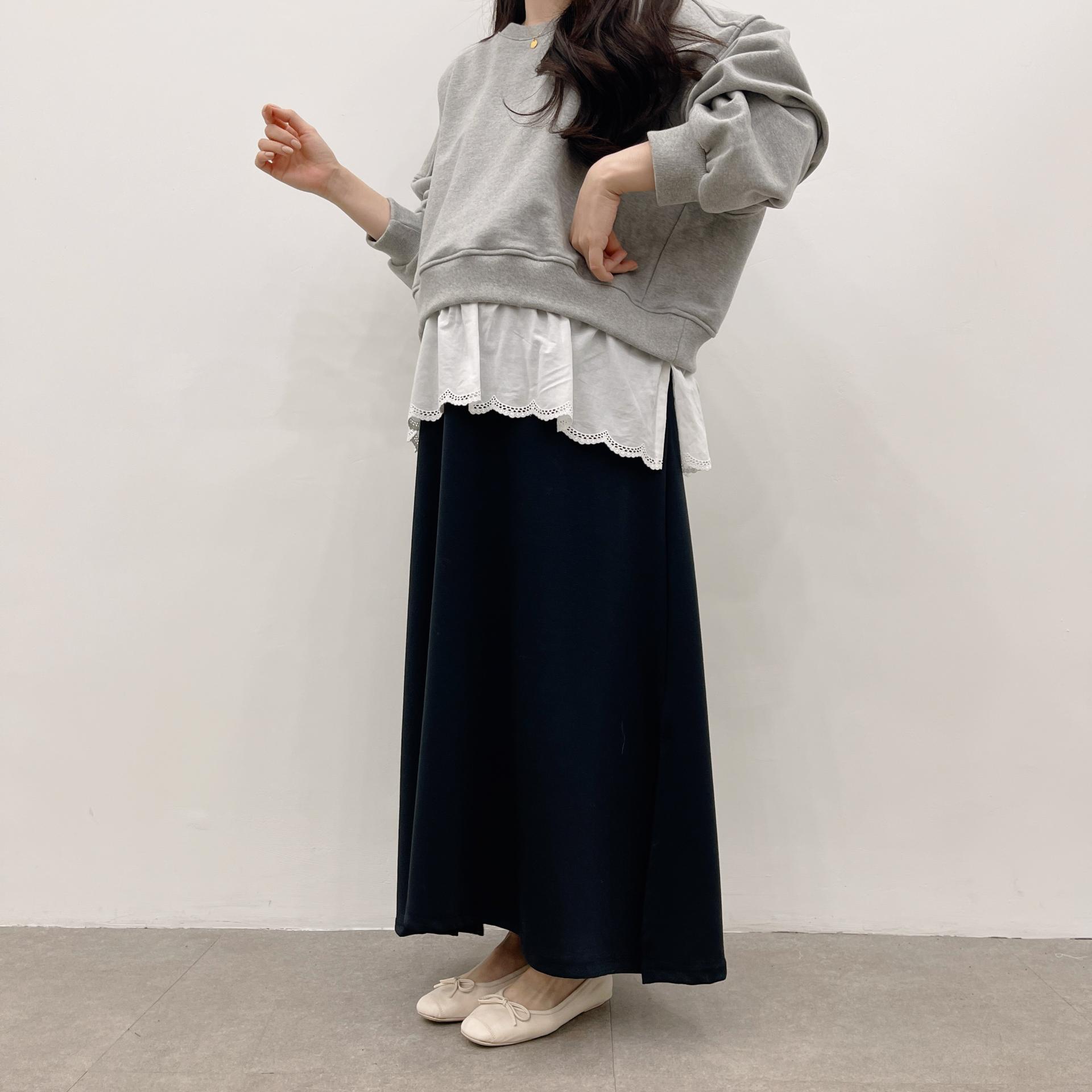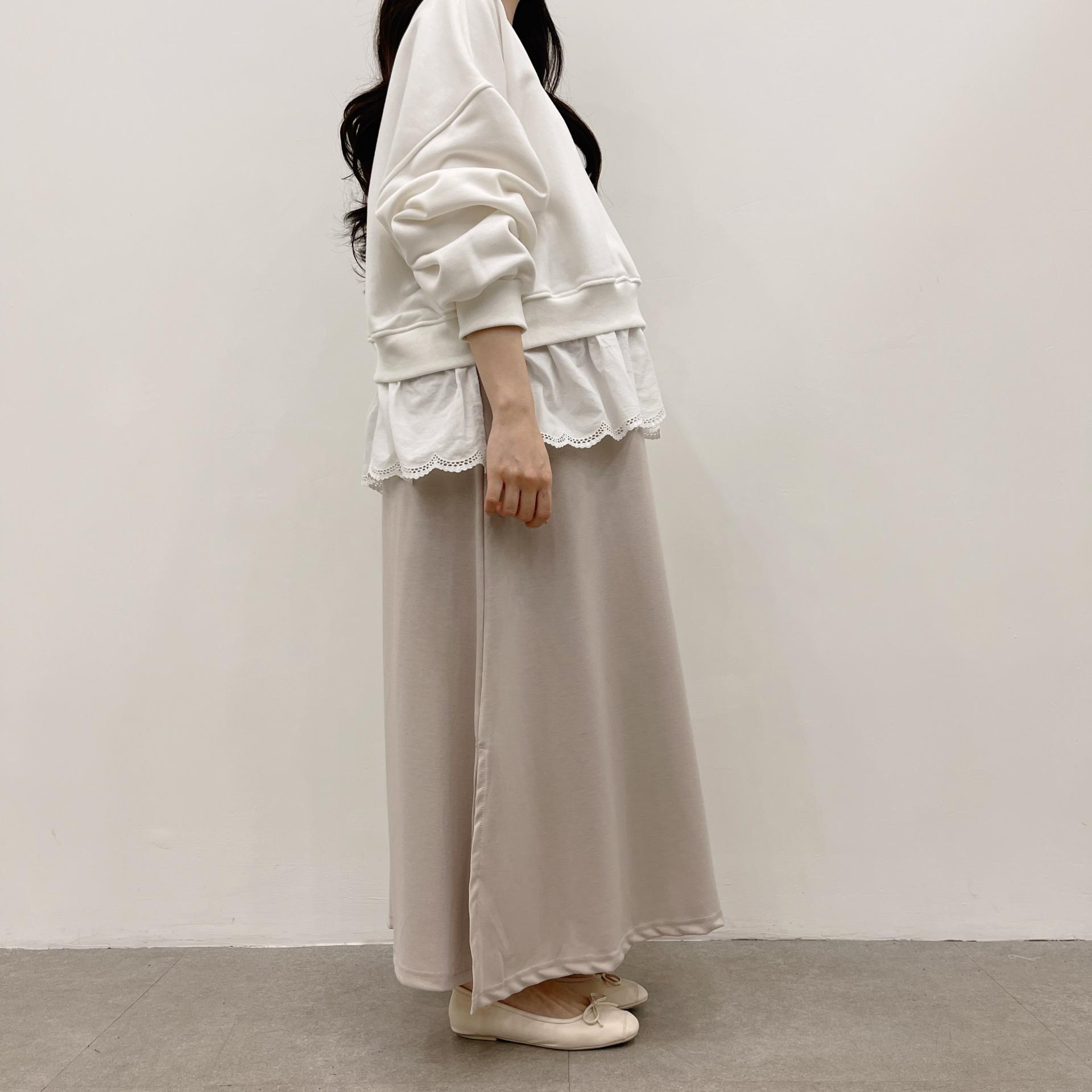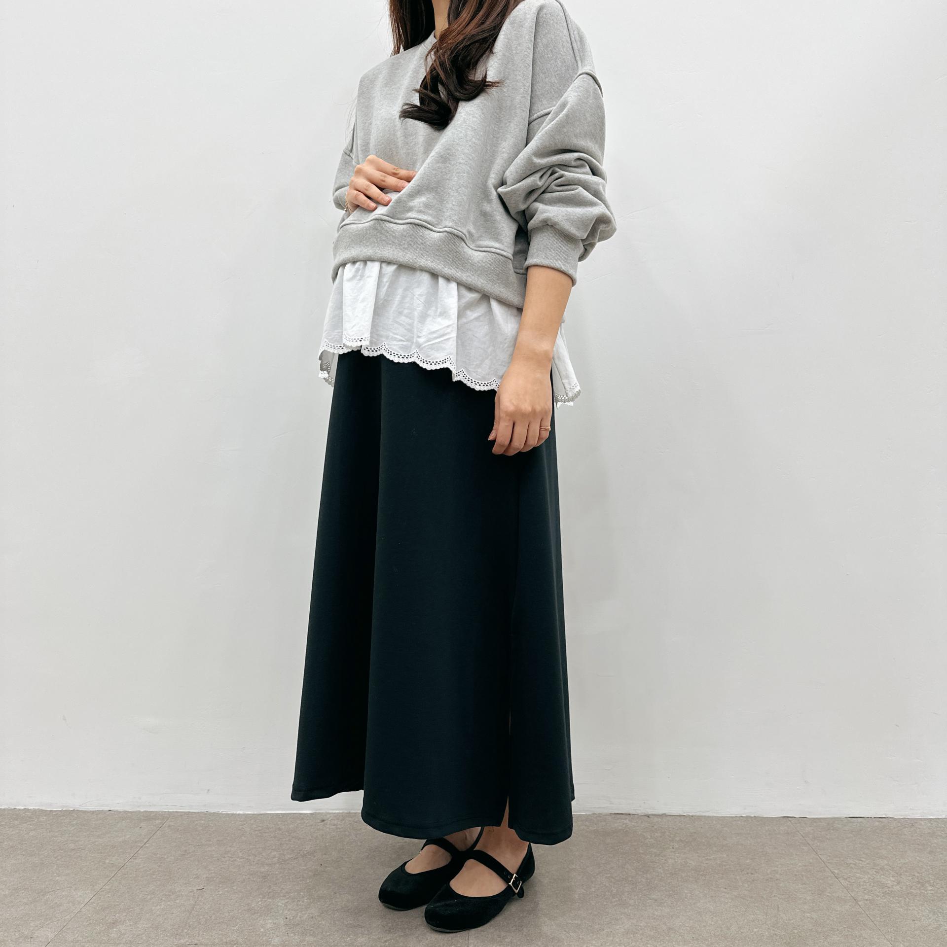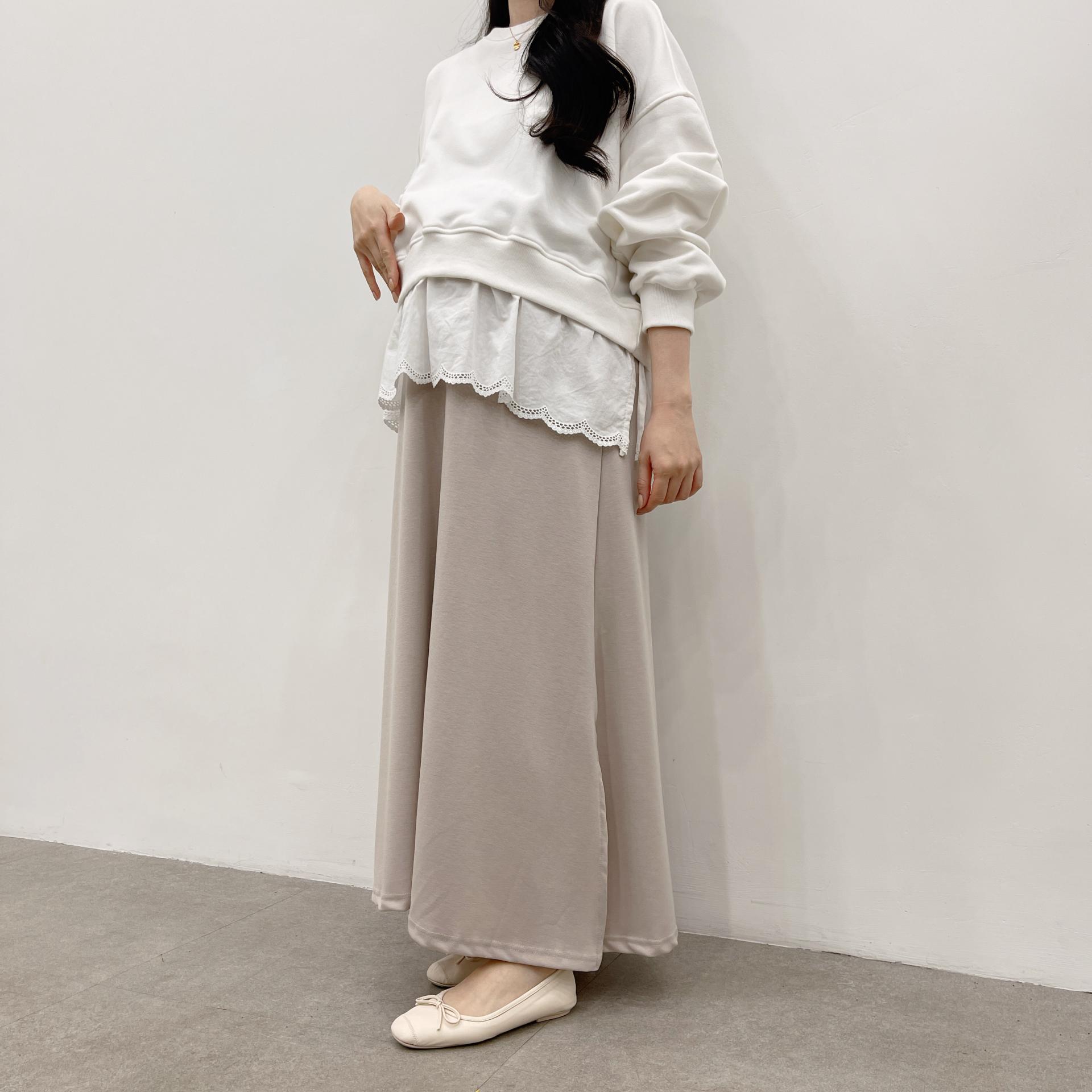 밑단 레이스레이어드가 붙어있는! 맨투맨입니다 러블리하면서 오버된 어꺠라인과 핏이 세련되고 편하게 만들어줘요:)