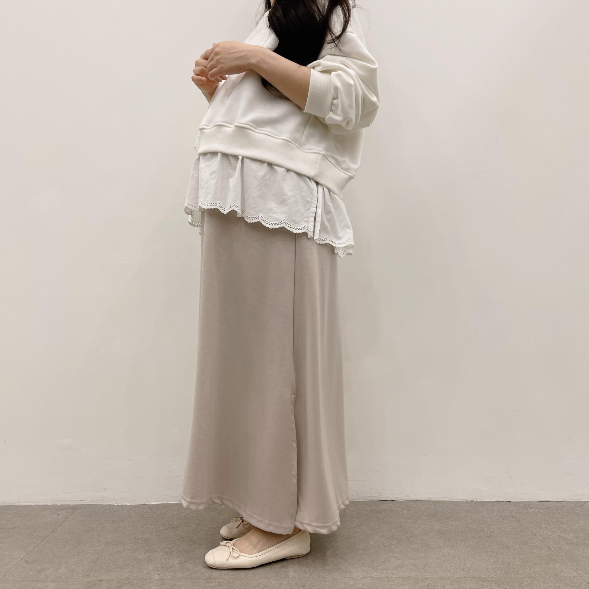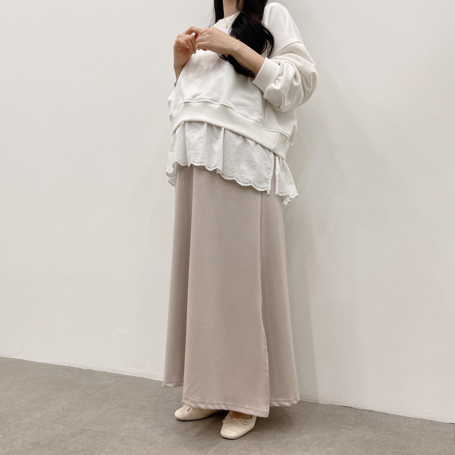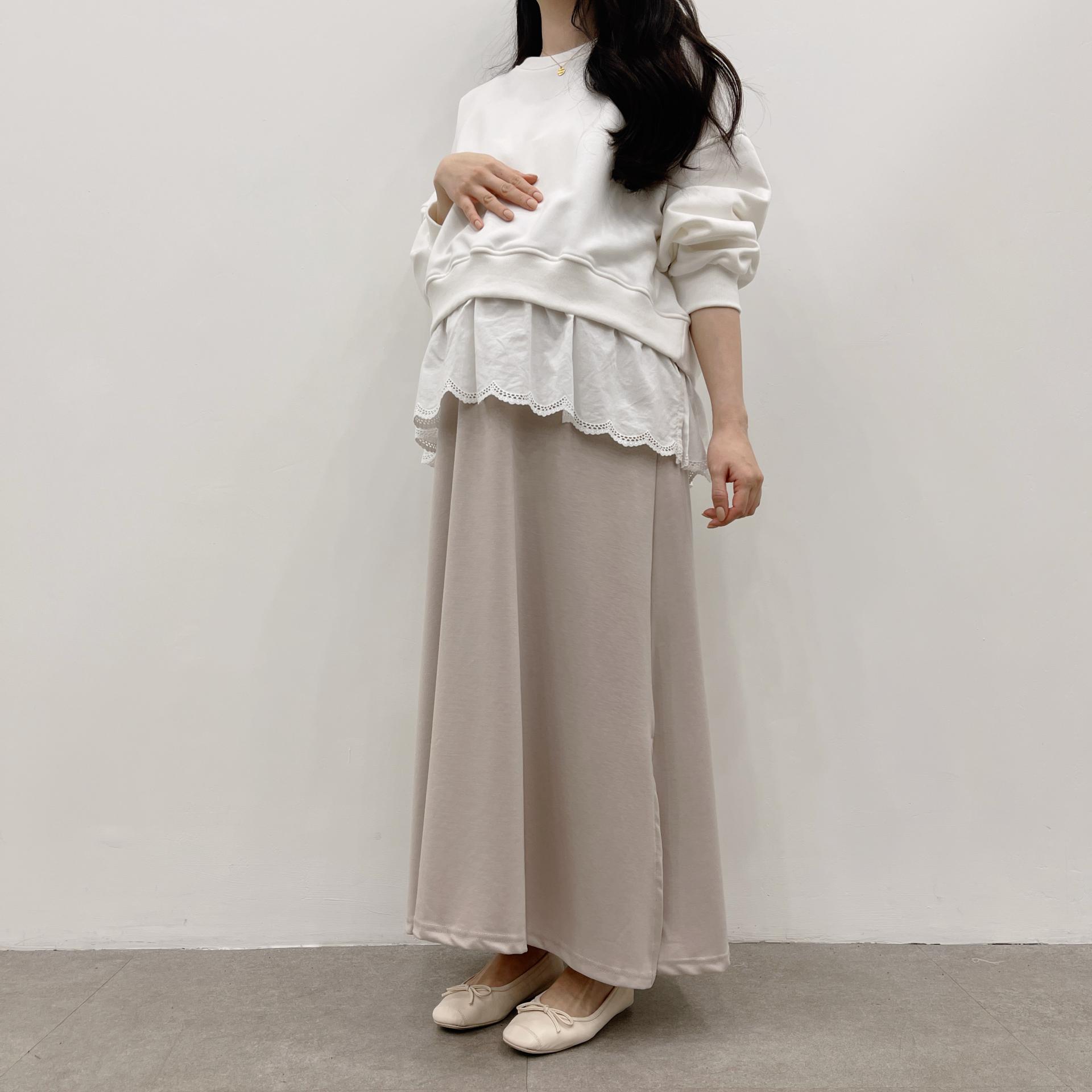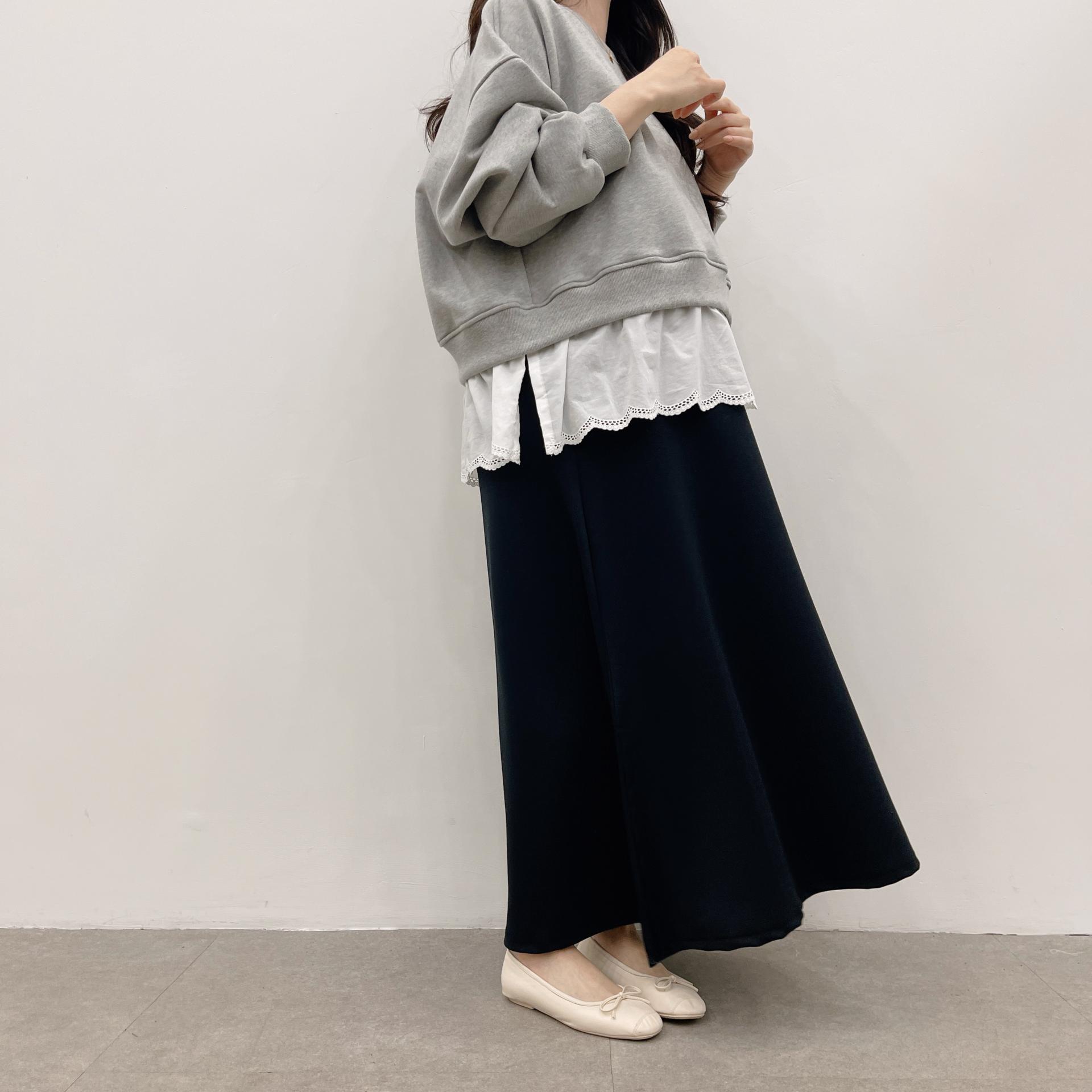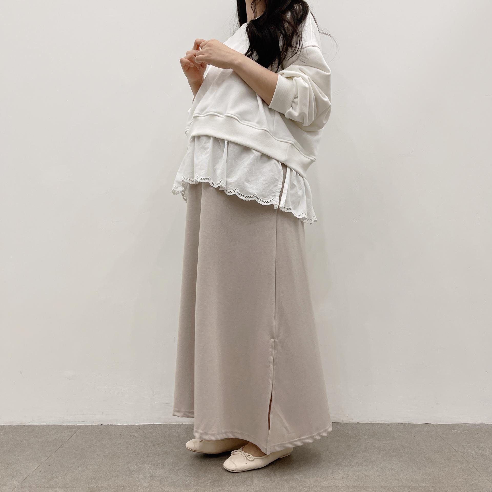밑단 레이스레이어드가 붙어있는! 맨투맨입니다 러블리하면서 오버된 어꺠라인과 핏이 세련되고 편하게 만들어줘요:)