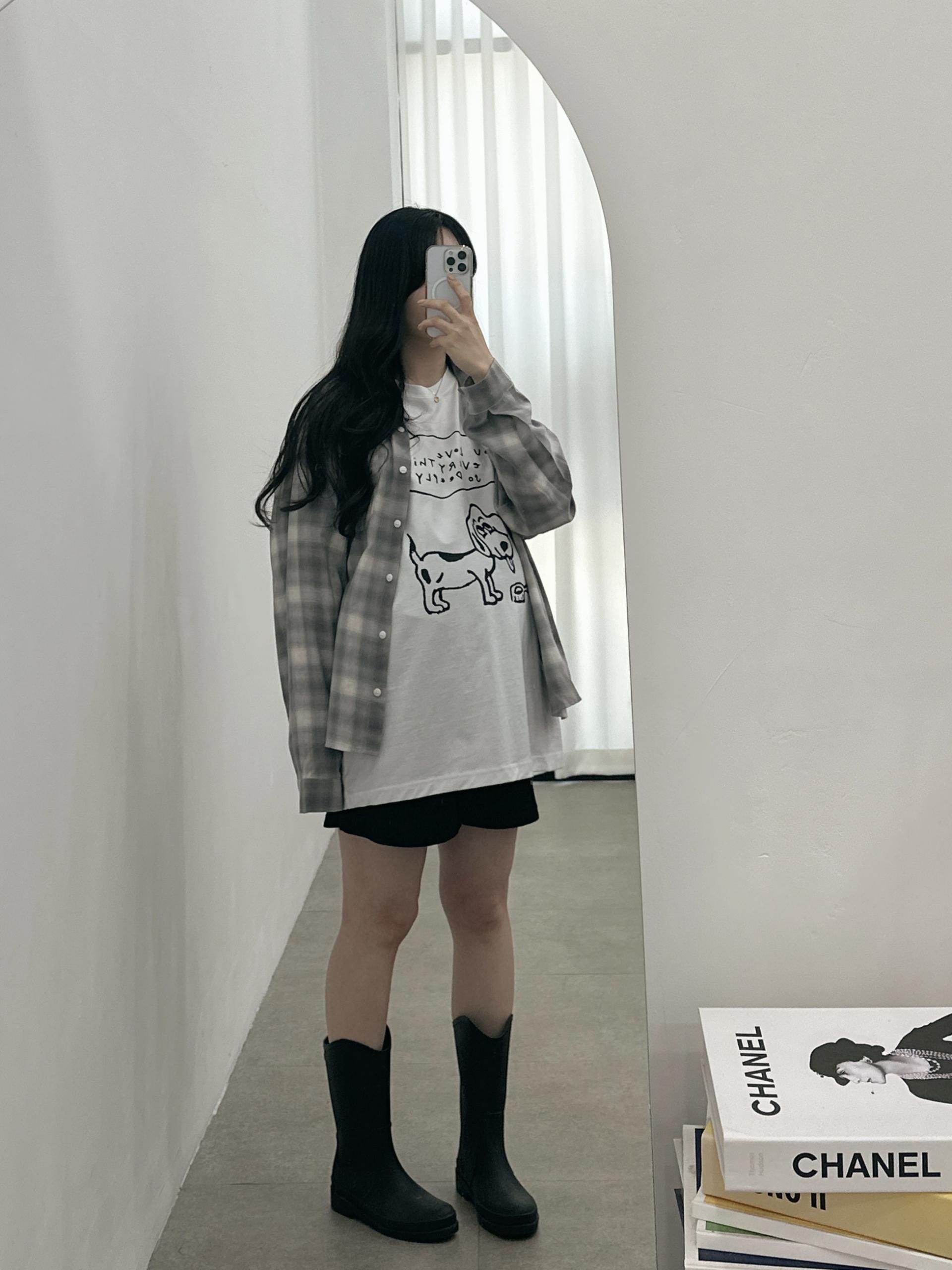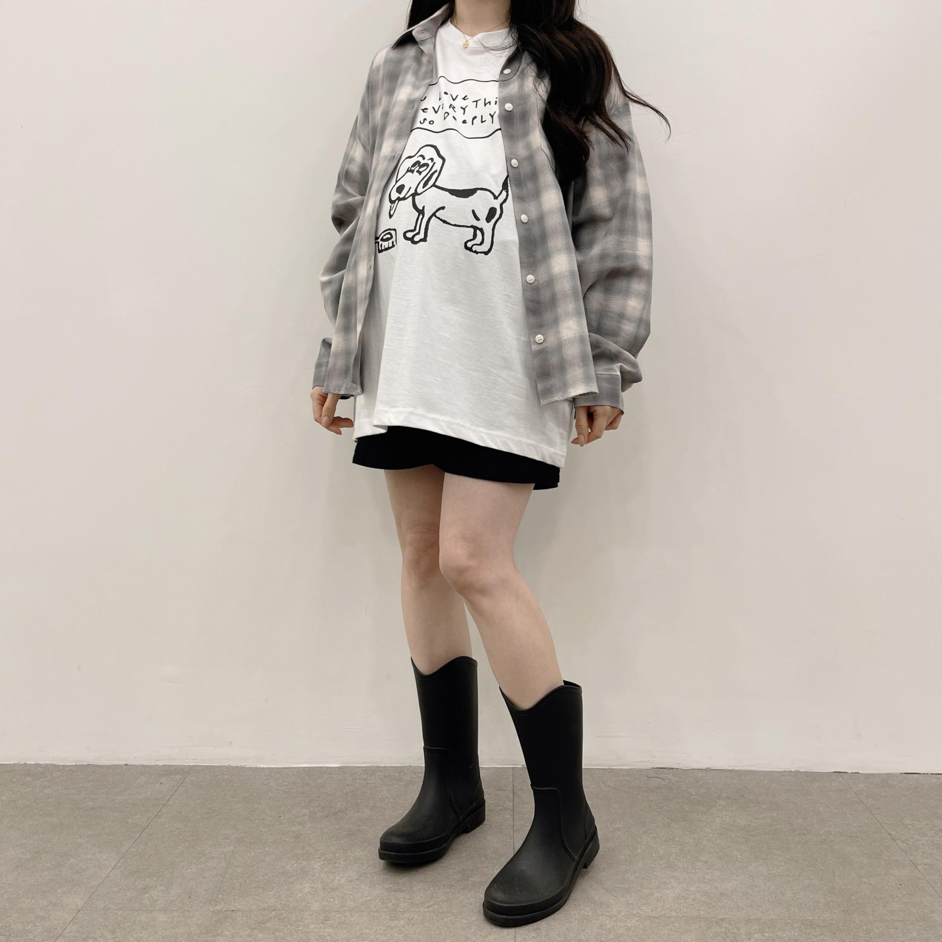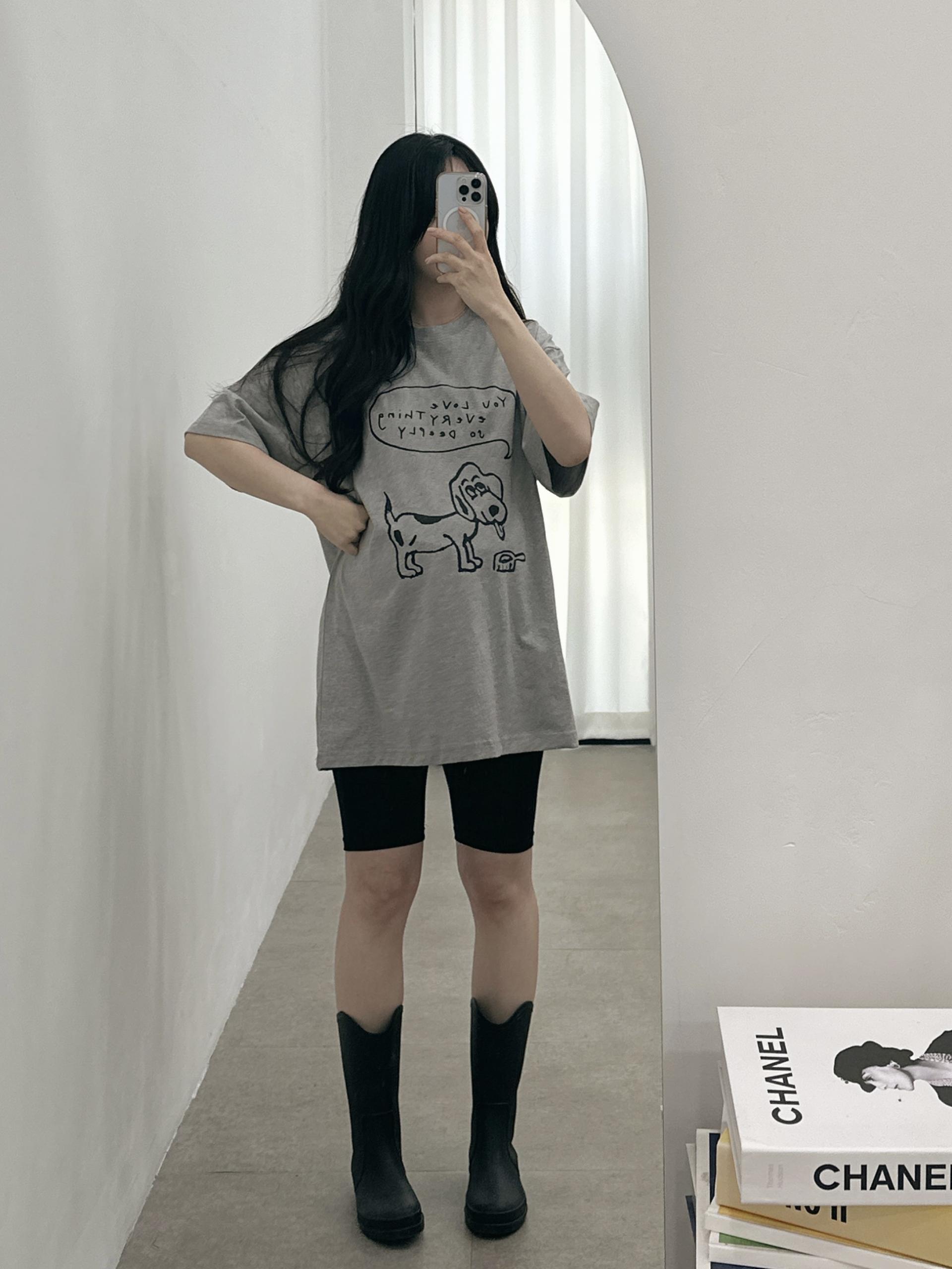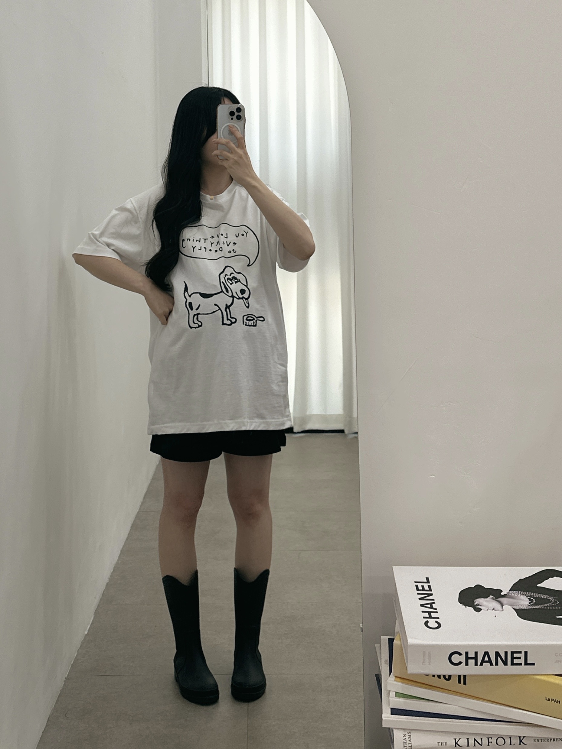 박시한핏의 멍멍이프린팅, 갬성있는 반팔티랍니다 코디하기좋은 티셔츠에요:)