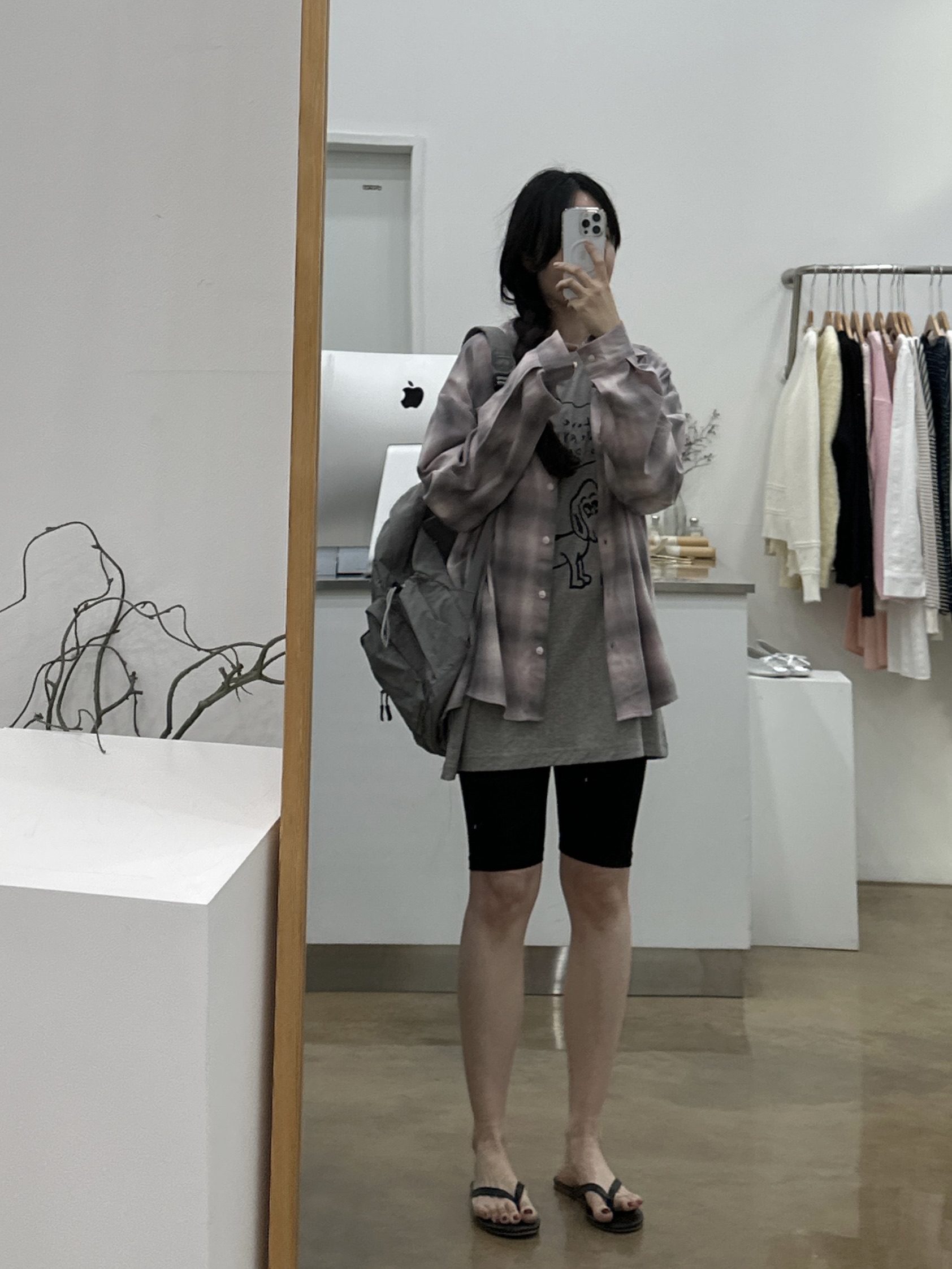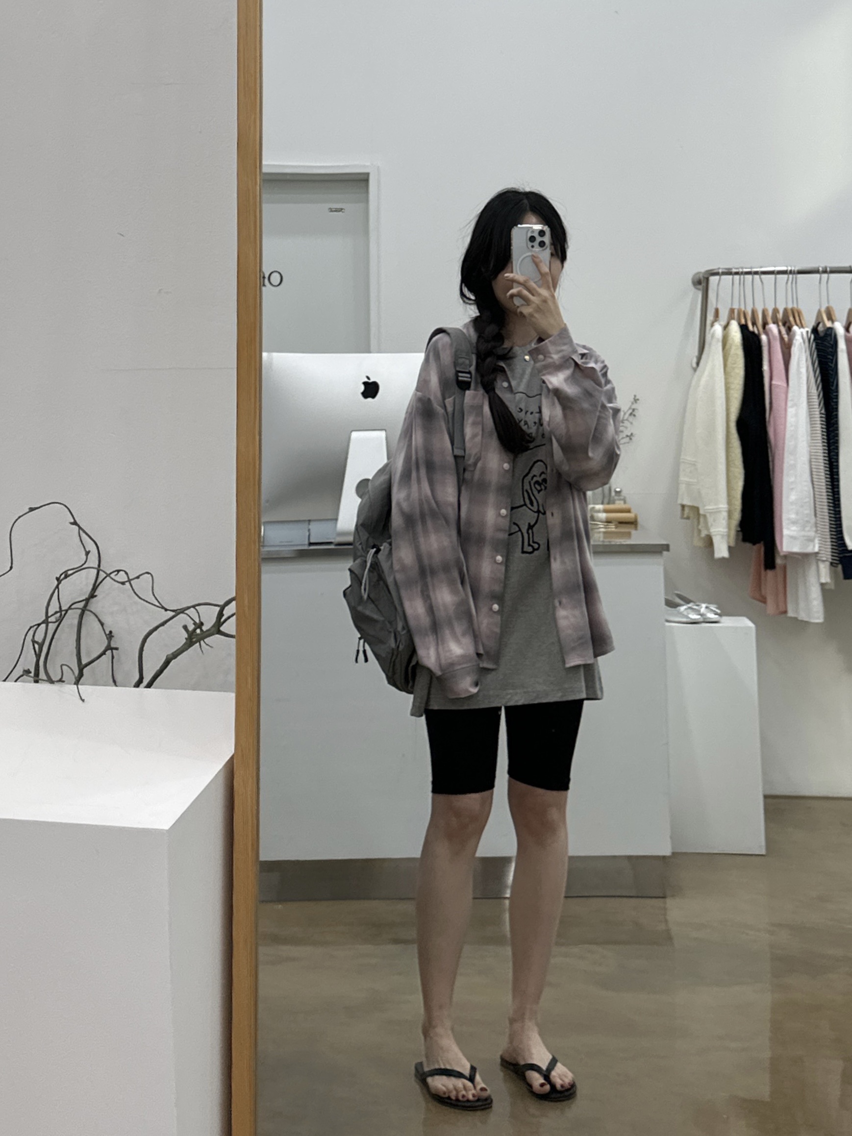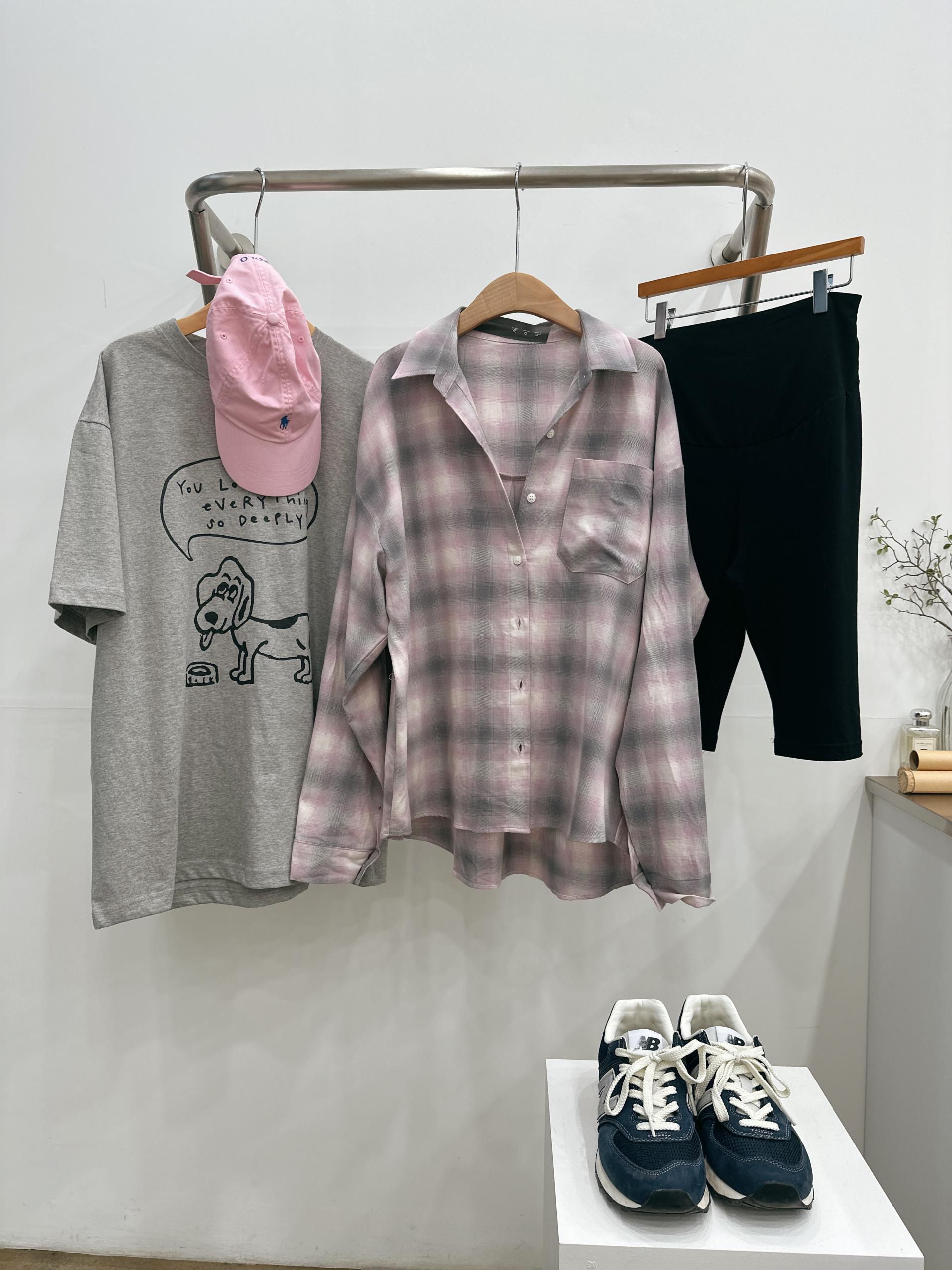 그레이(+코디상품: 임부와플반바지 + 헤이그체크셔츠)