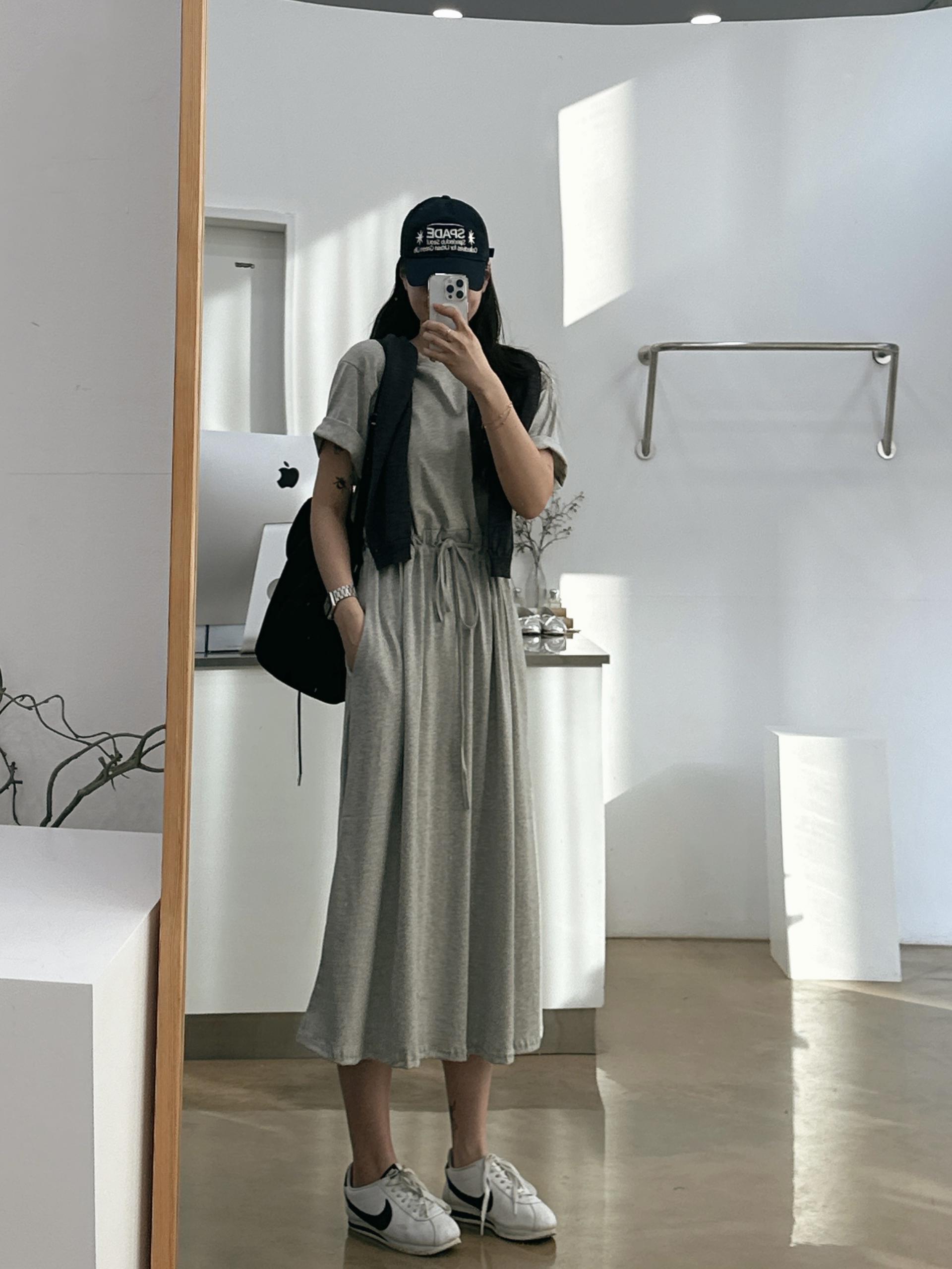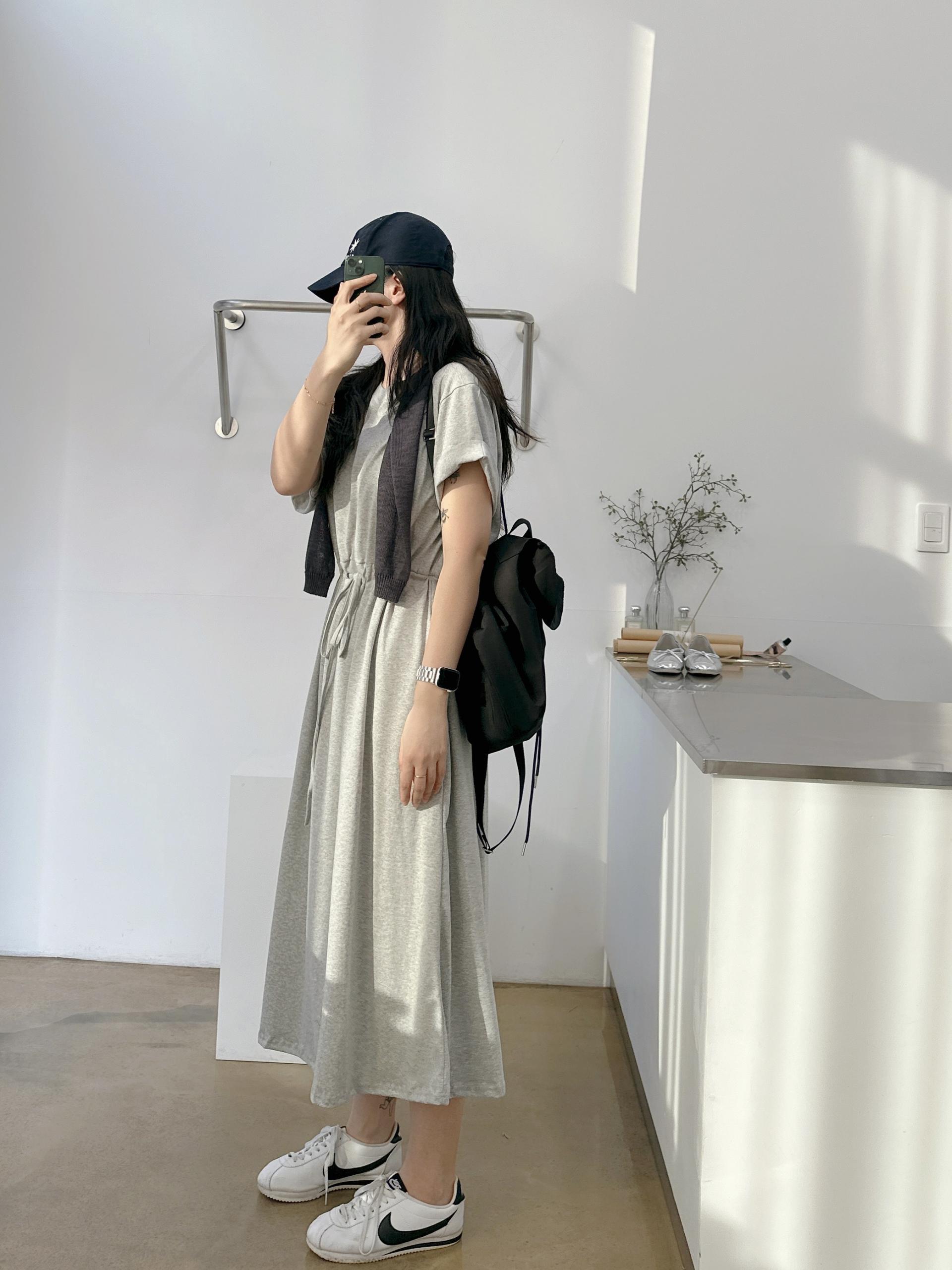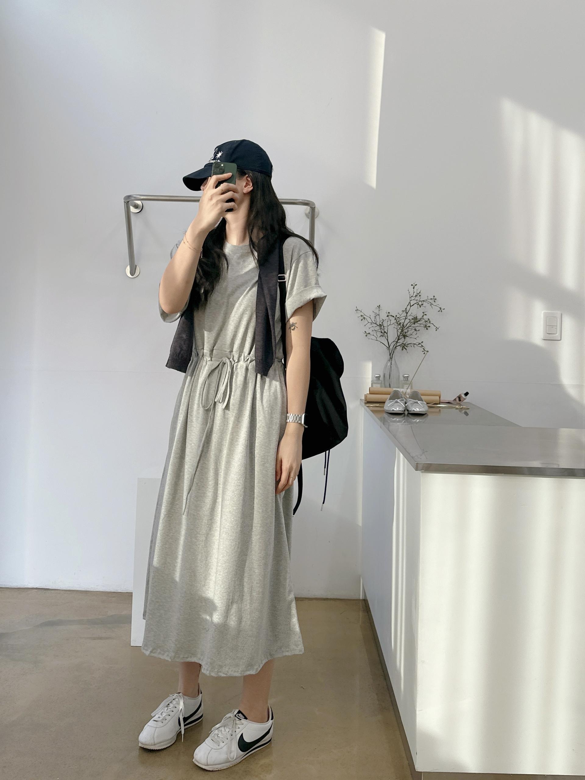 데일리원피스로 추천드리는 앞스트링으로 예쁜 핏 만드실 수 있는 그리고 꼭 스트링 다 안쪼아도 예쁜 ! 얇아서 시원한 코튼소재의 원피스입니다!