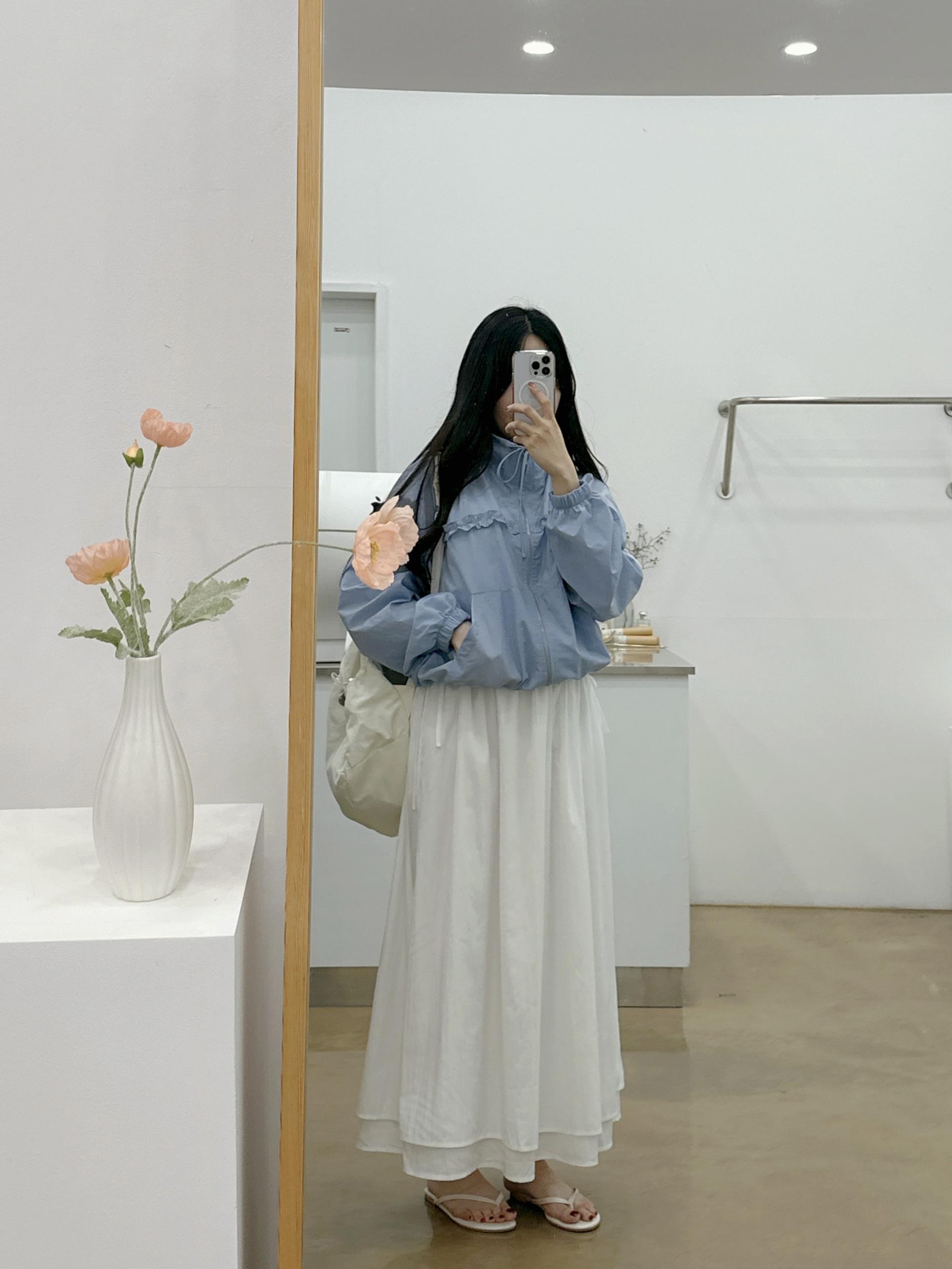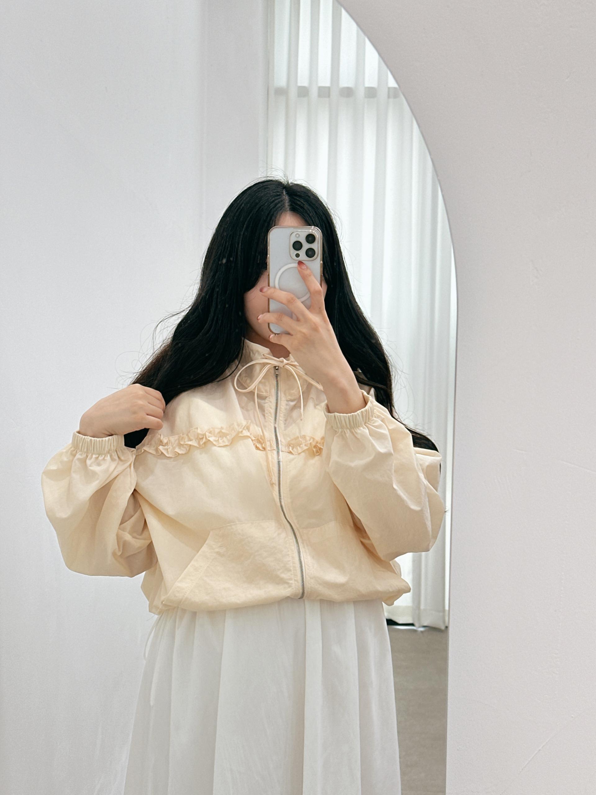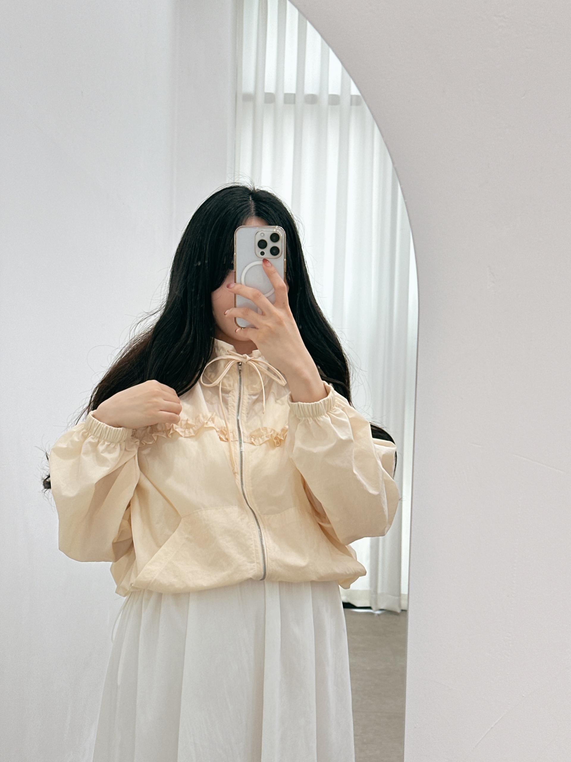 여름장마철에도, 아침밤 쌀쌀할때에도, 에어컨바람밑에서도 좋은 여름에 걸치는 러블리한 바람막이입니다!얇은소재에요!