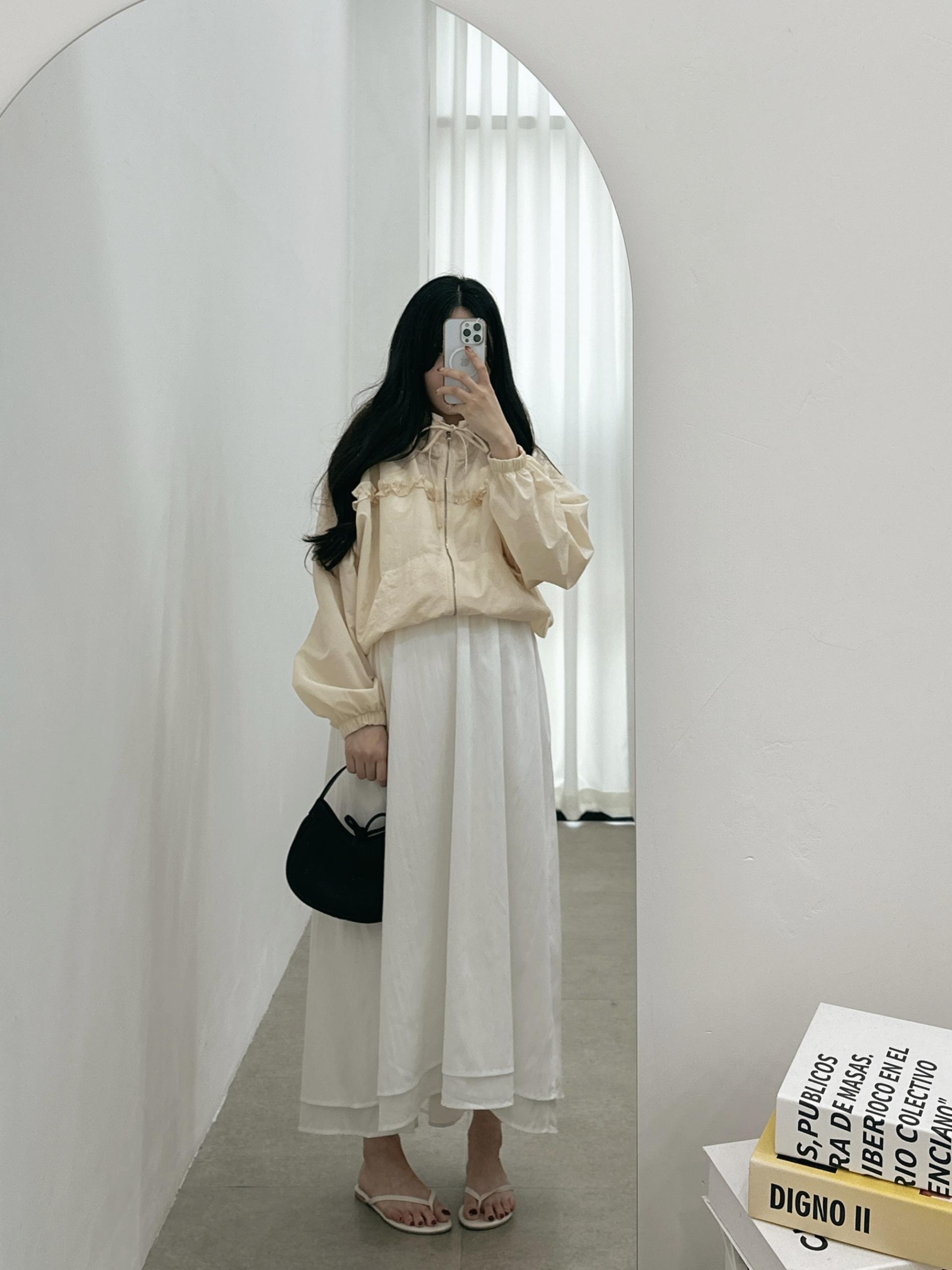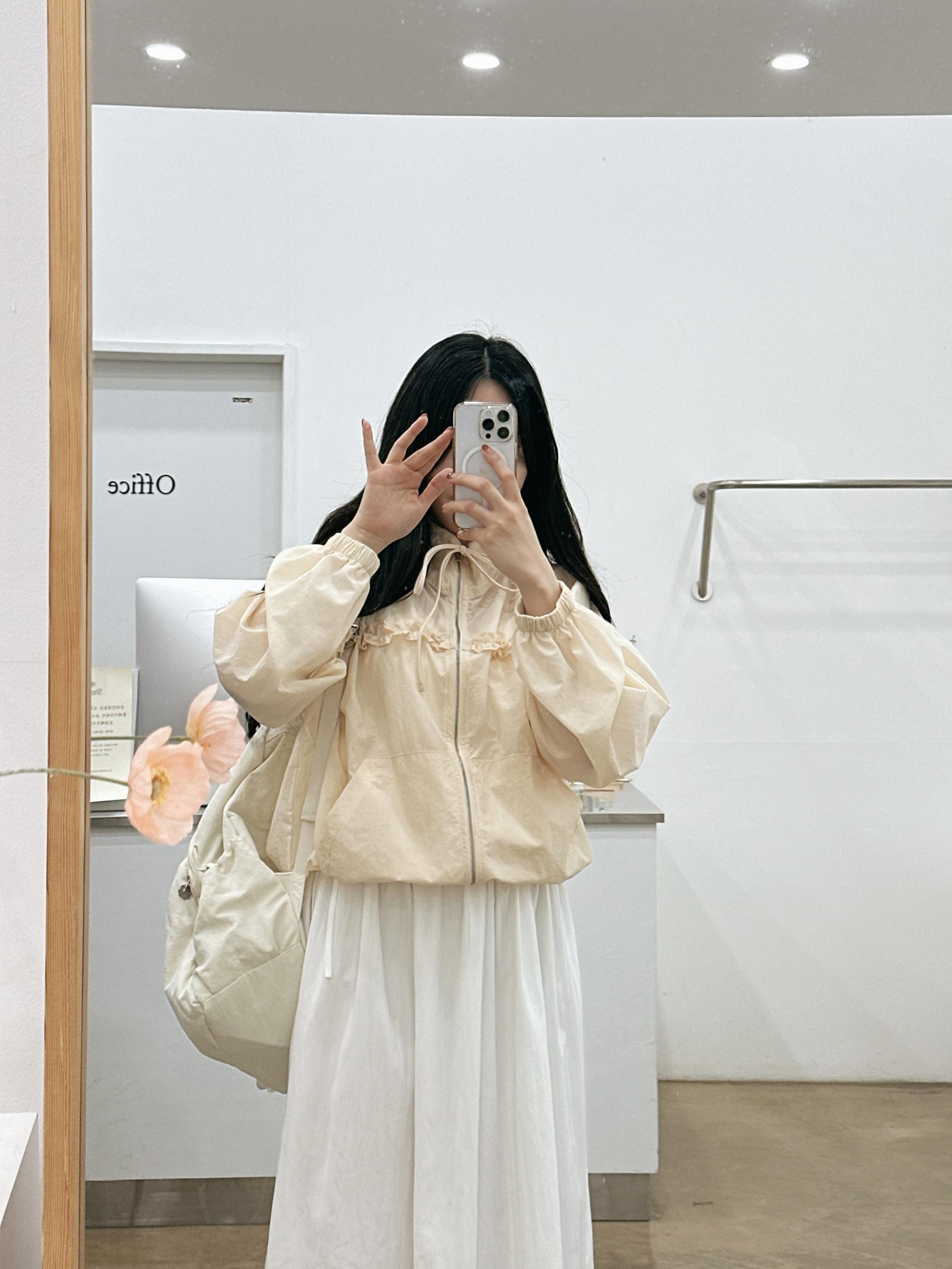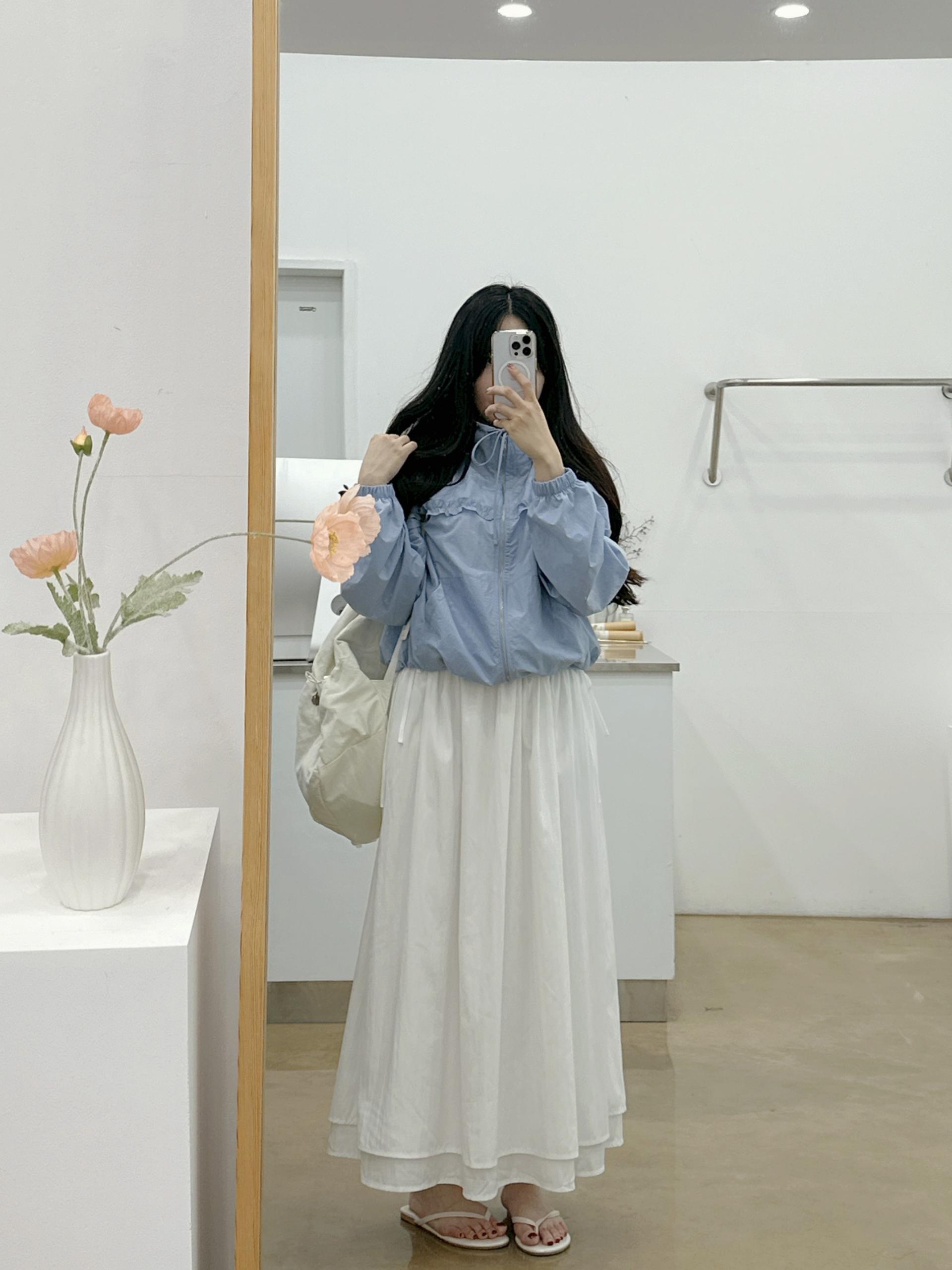 여름장마철에도, 아침밤 쌀쌀할때에도, 에어컨바람밑에서도 좋은 여름에 걸치는 러블리한 바람막이입니다!얇은소재에요!