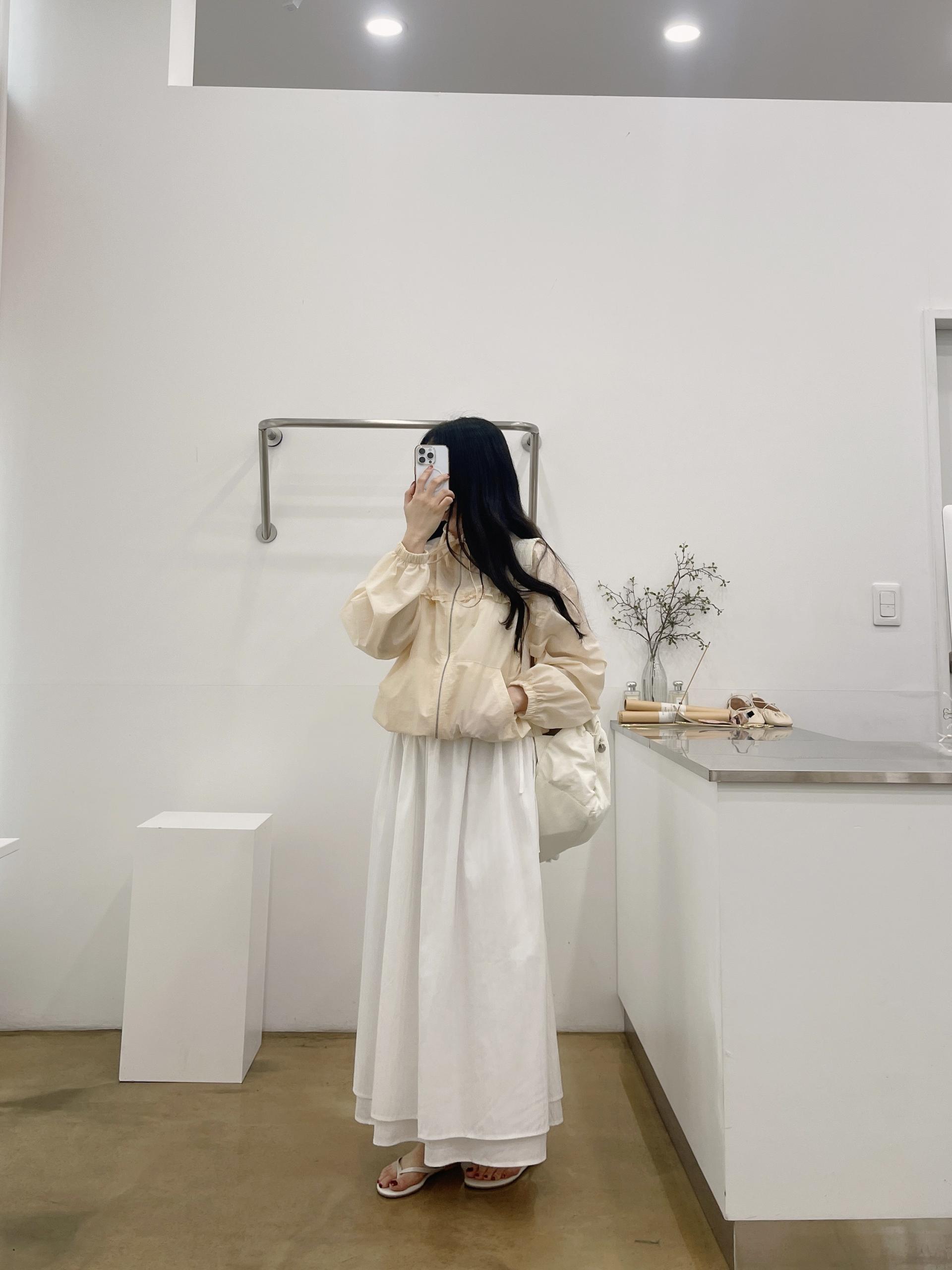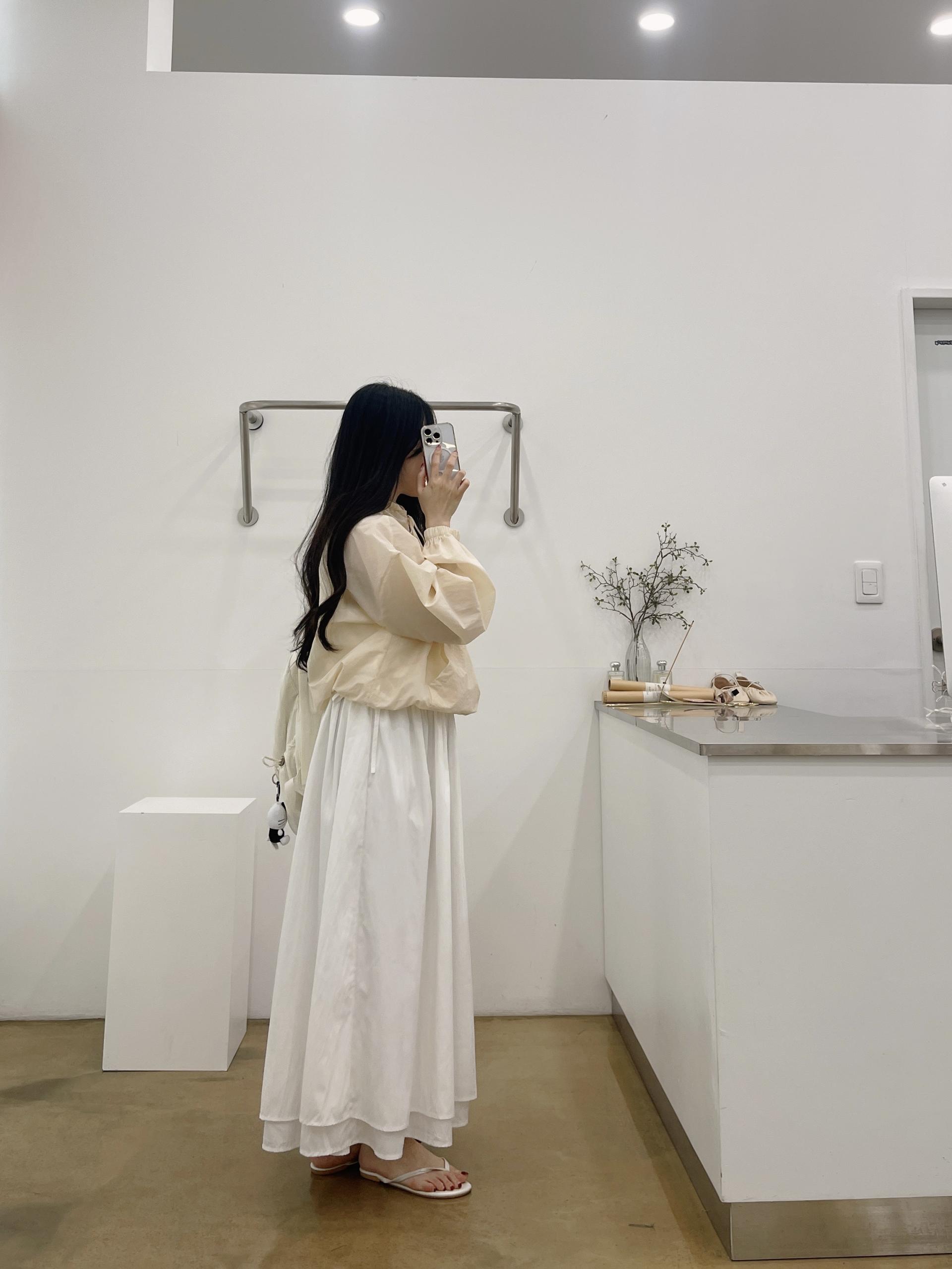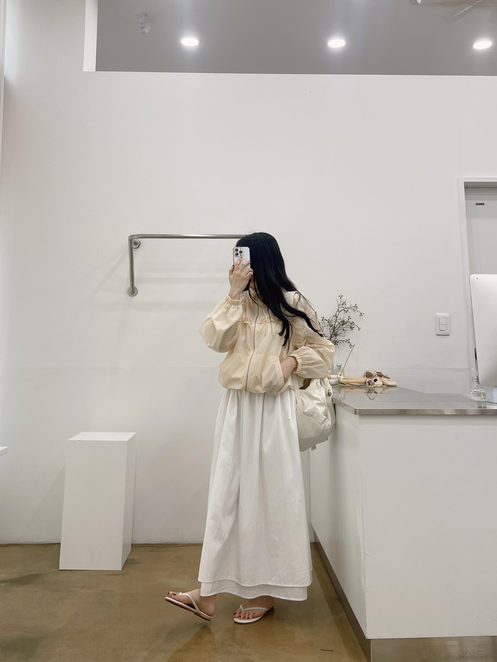 - 크림/아이보리/화이트 색상 등의 밝은 의류는 색상 특성상 재질에 관계없이 약간의 비침이 있어요. 스킨색 속옷이나 이너 착용 해주세요.