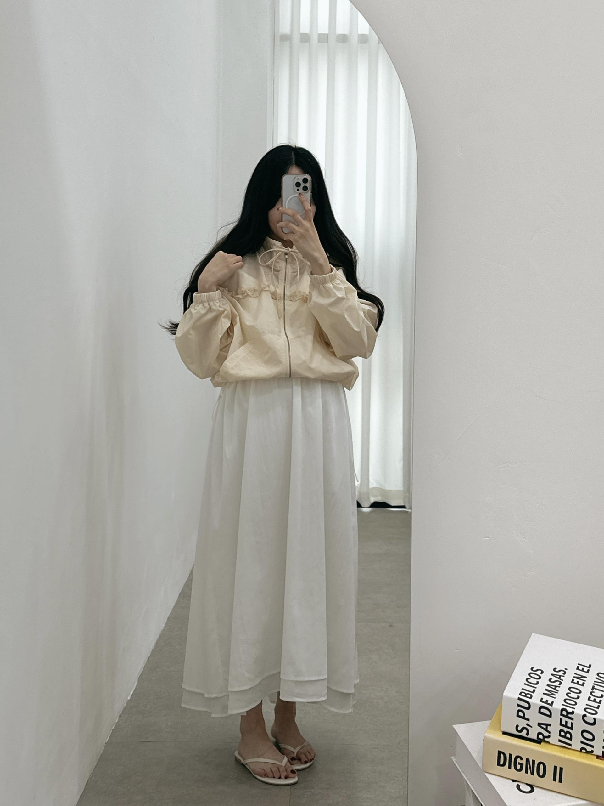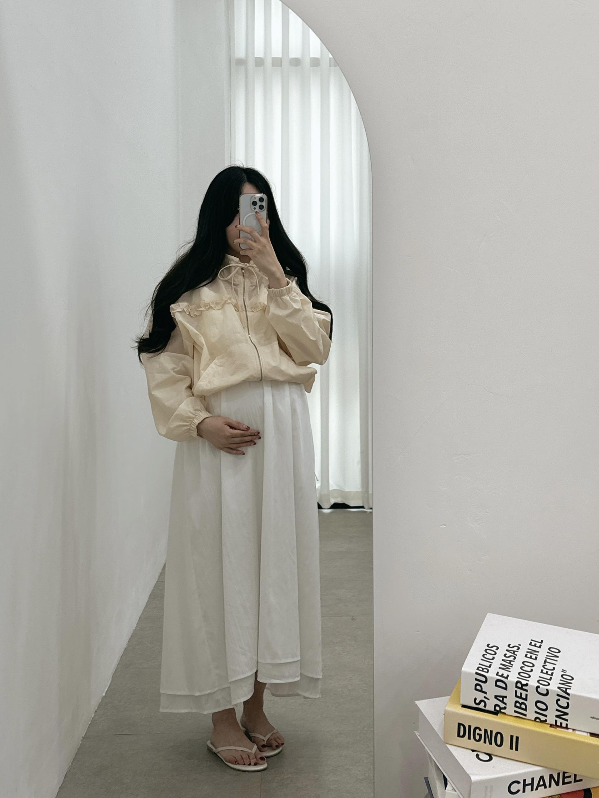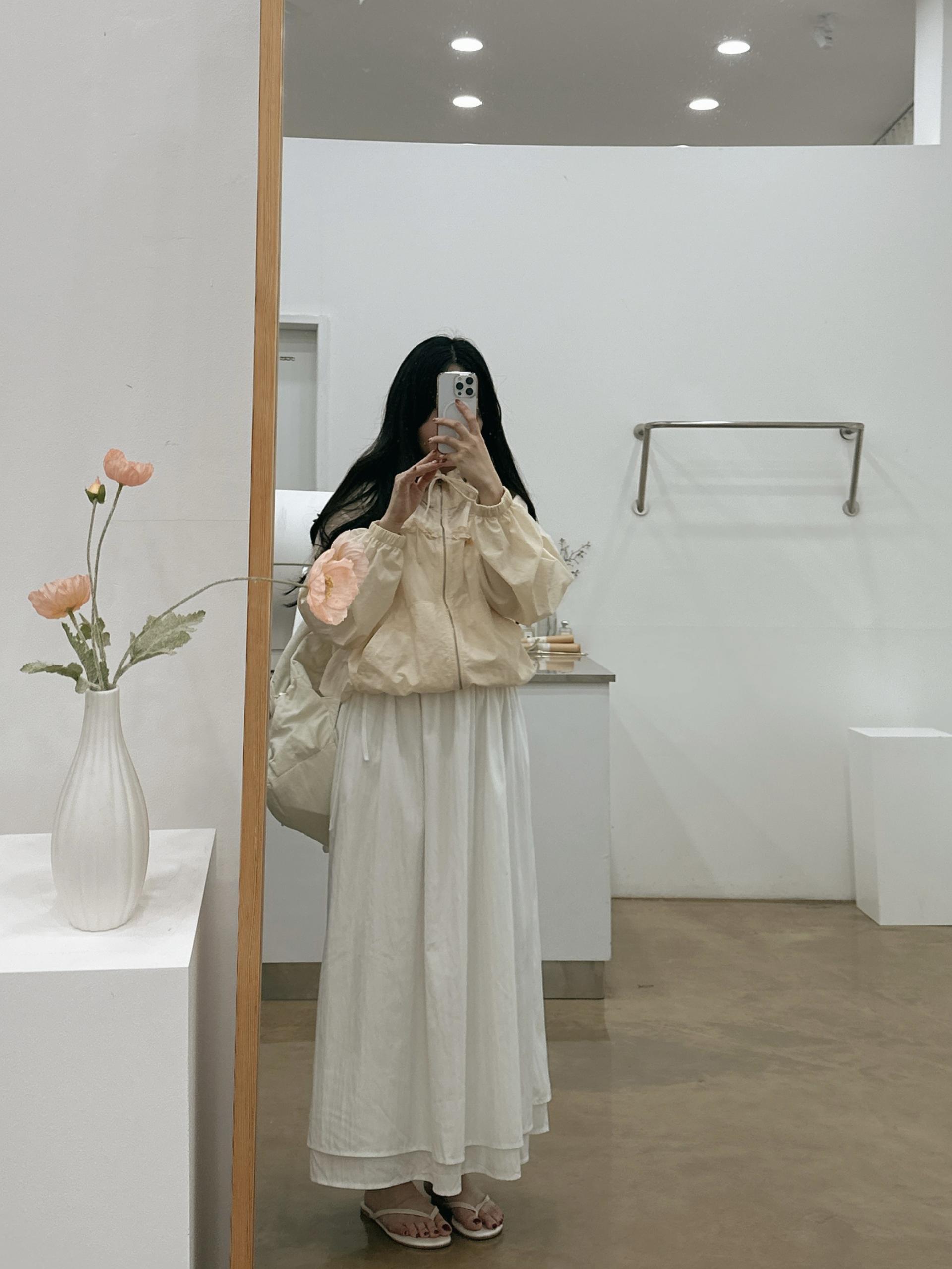 - 크림/아이보리/화이트 색상 등의 밝은 의류는 색상 특성상 재질에 관계없이 약간의 비침이 있어요. 스킨색 속옷이나 이너 착용 해주세요.