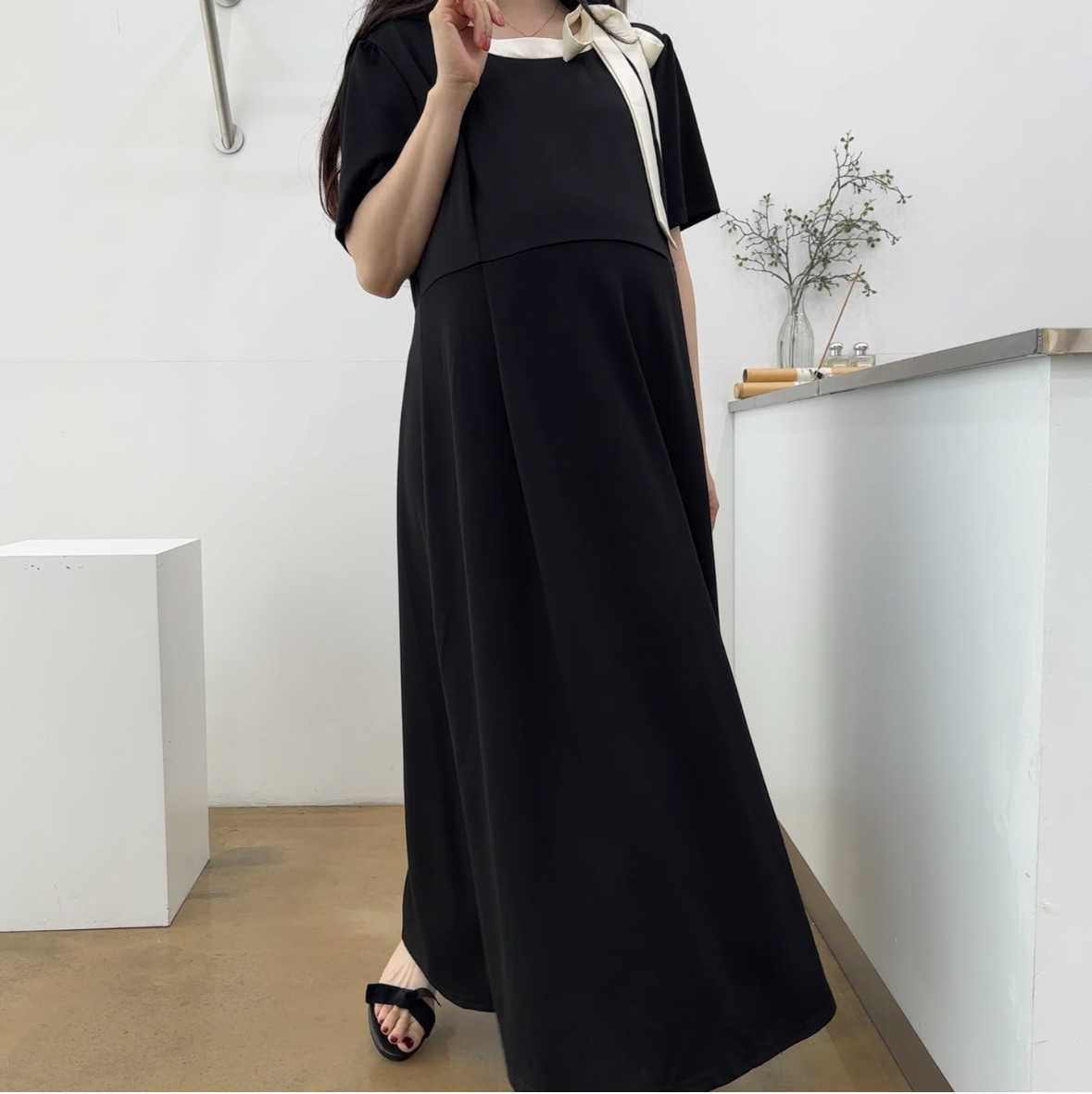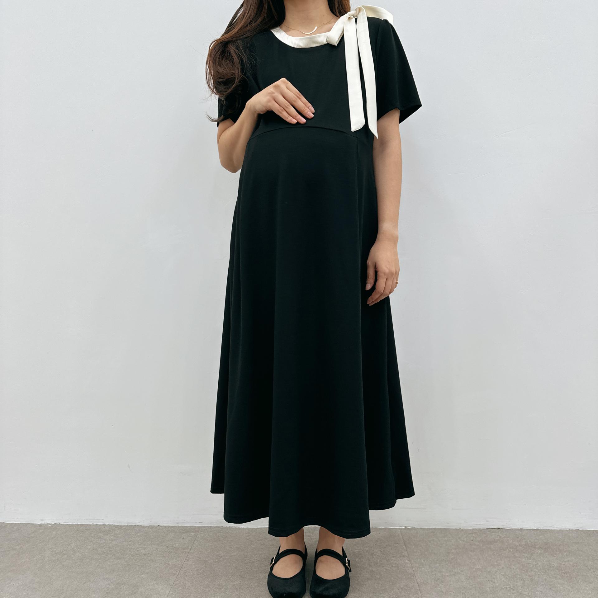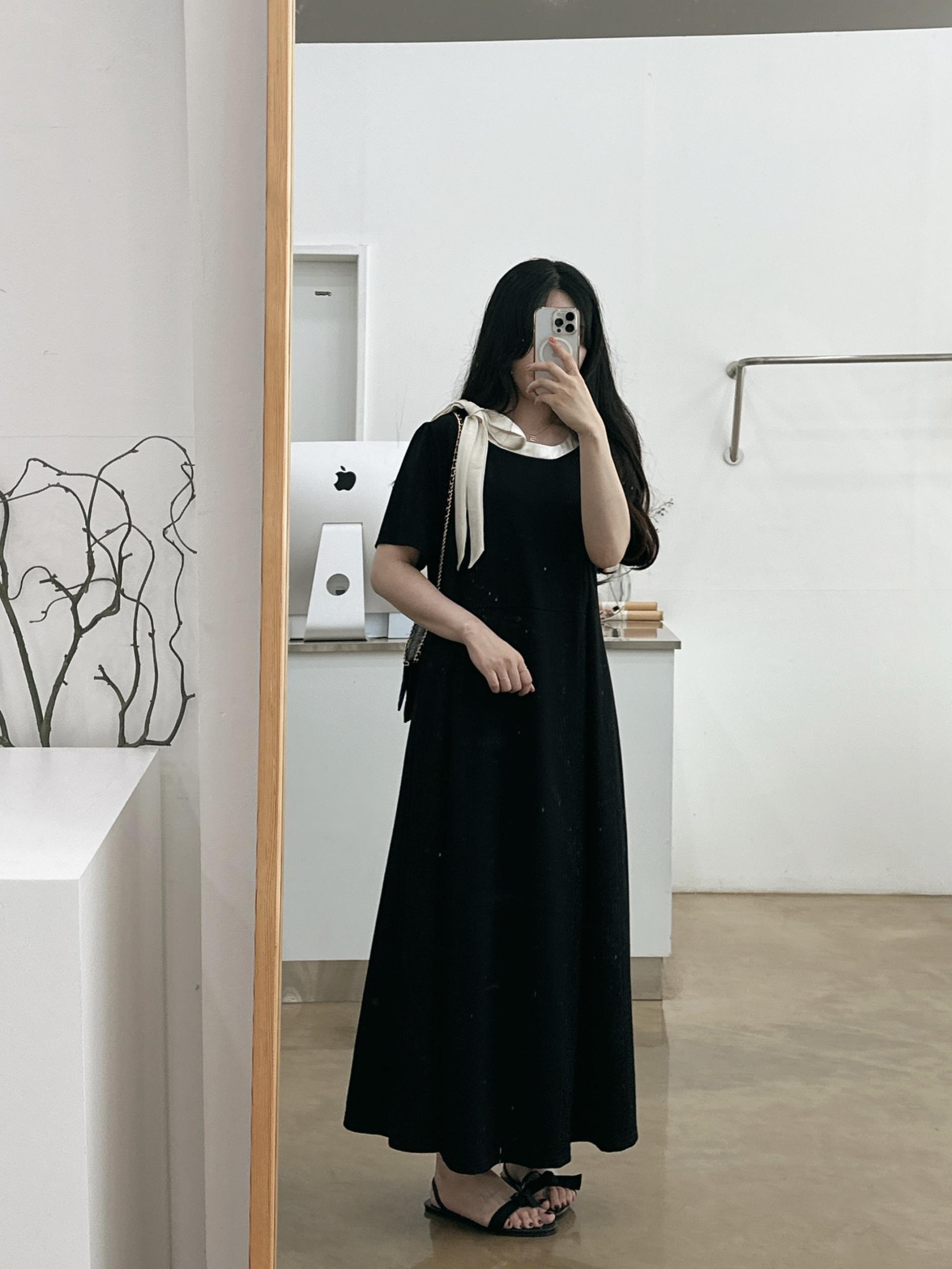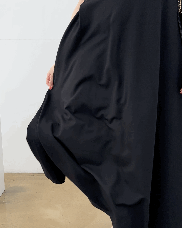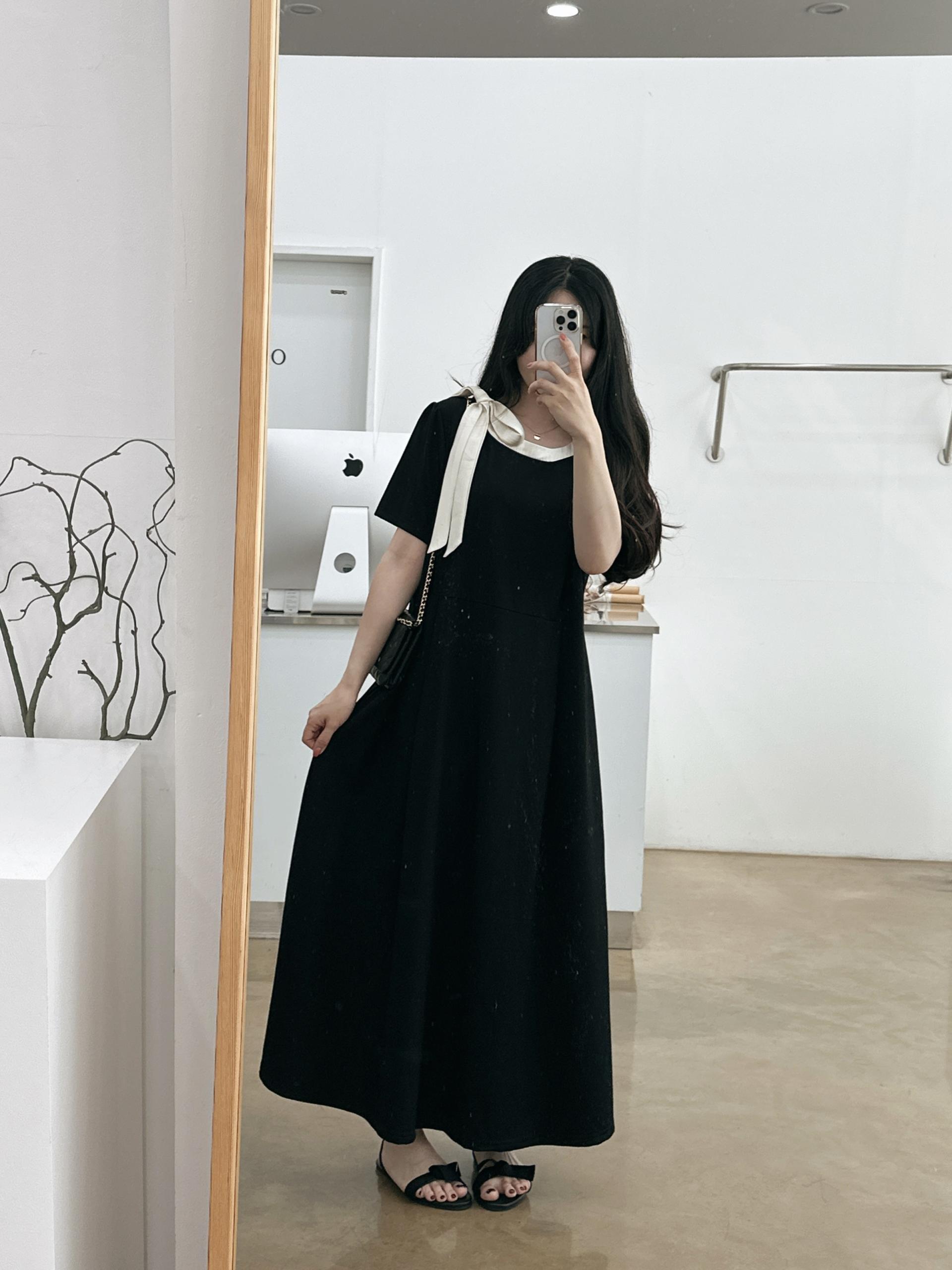 단정하고 고급스러운 핏, 구김없이 찰랑찰랑 원단 미쳤구요 옆 리본 간단하게 묶어주시면 세젤예핏완성입니다:)